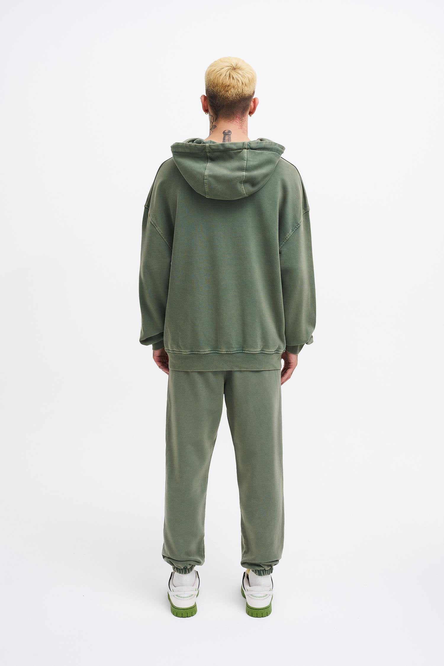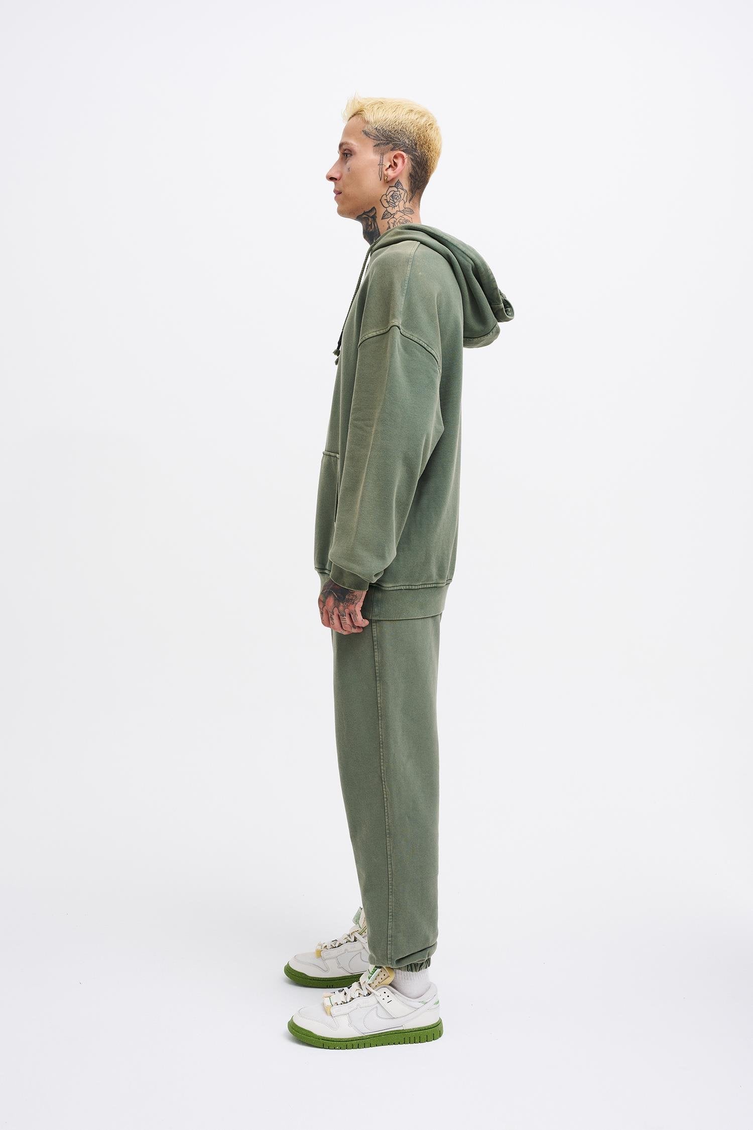 Erkek Yıkamalı Basic Baggy Eşofman Altı Yağ Yeşili