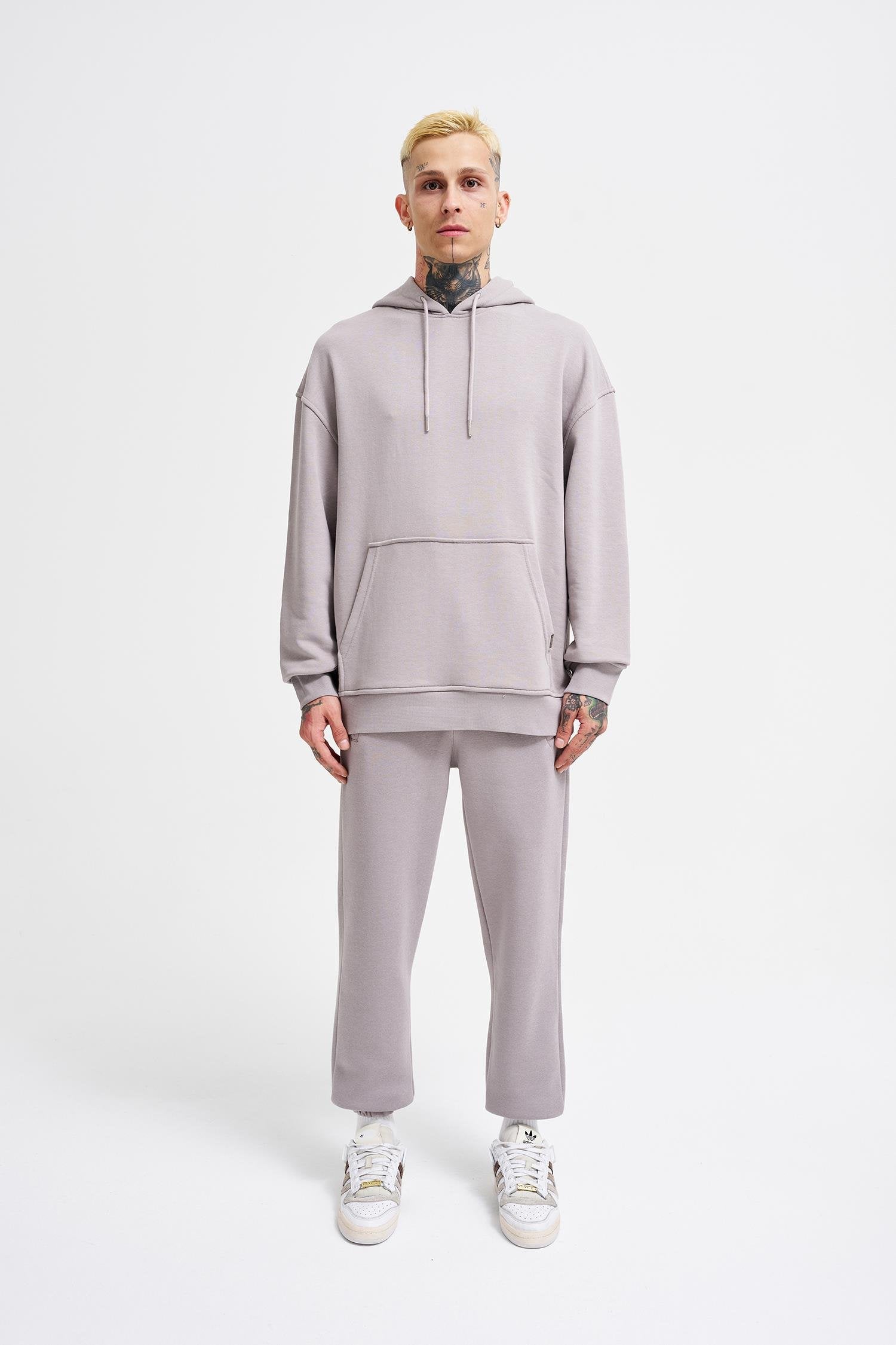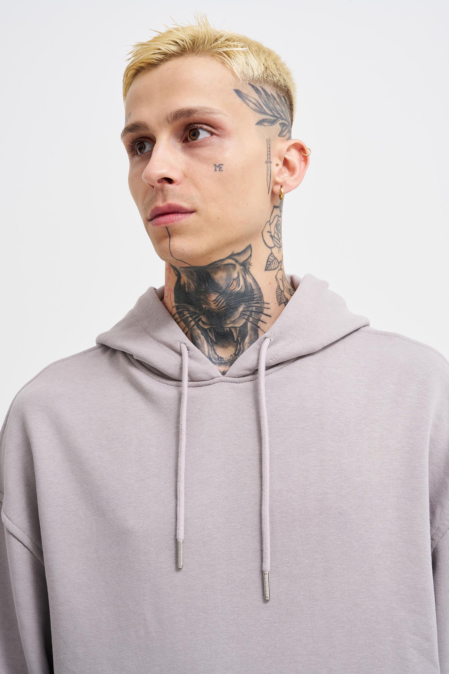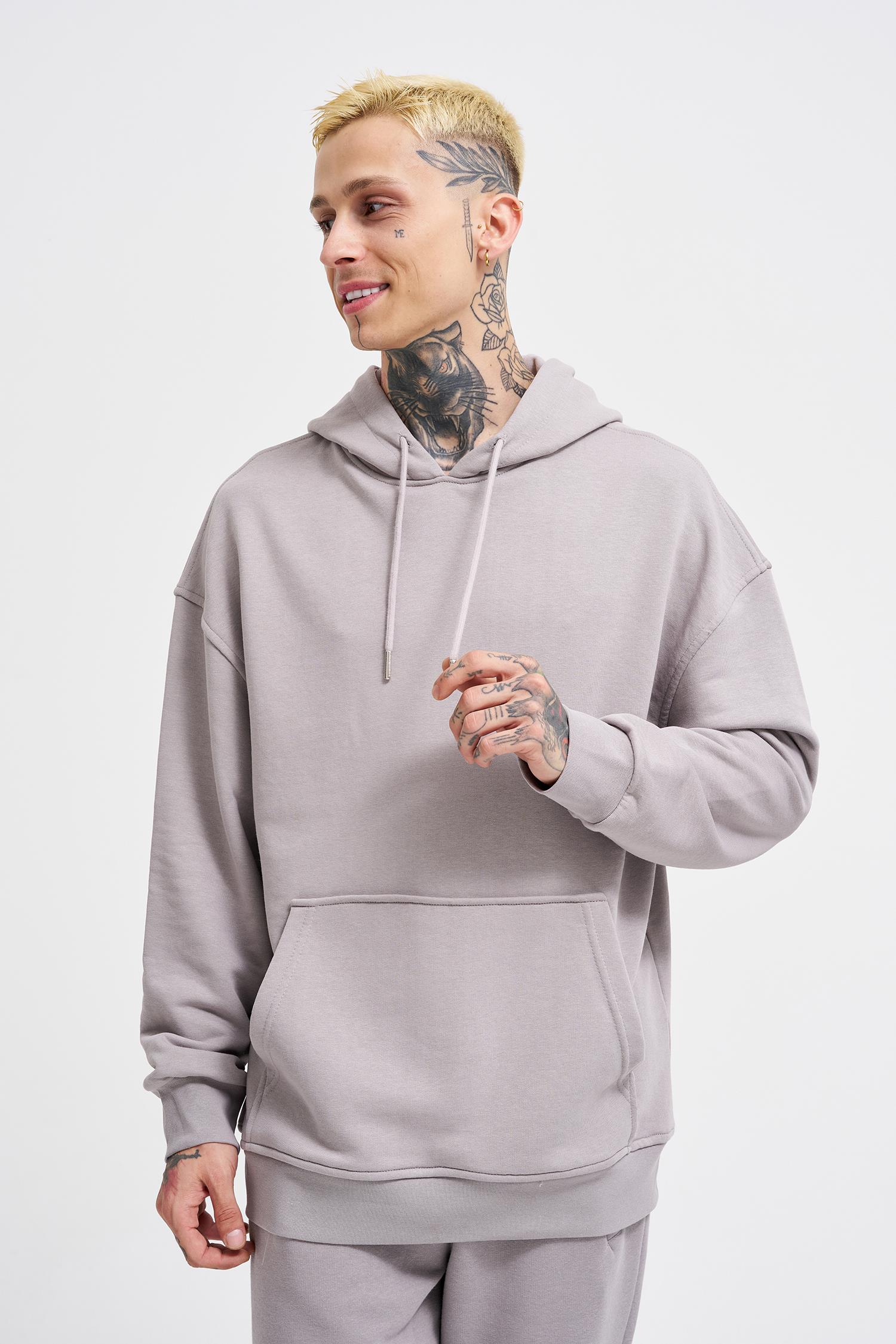 Erkek Kapüşonlu Oversize Sweatshirt Açık Gri