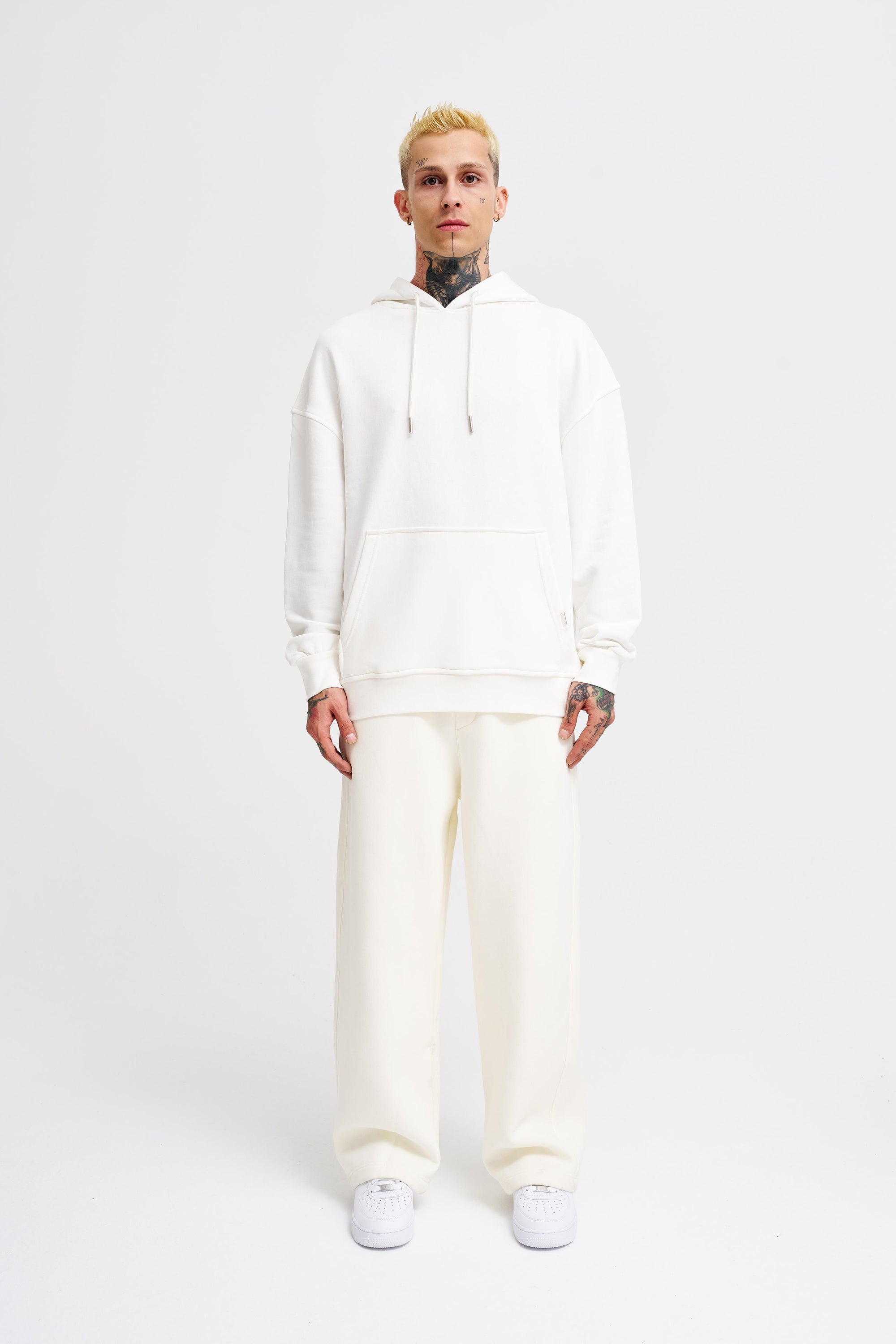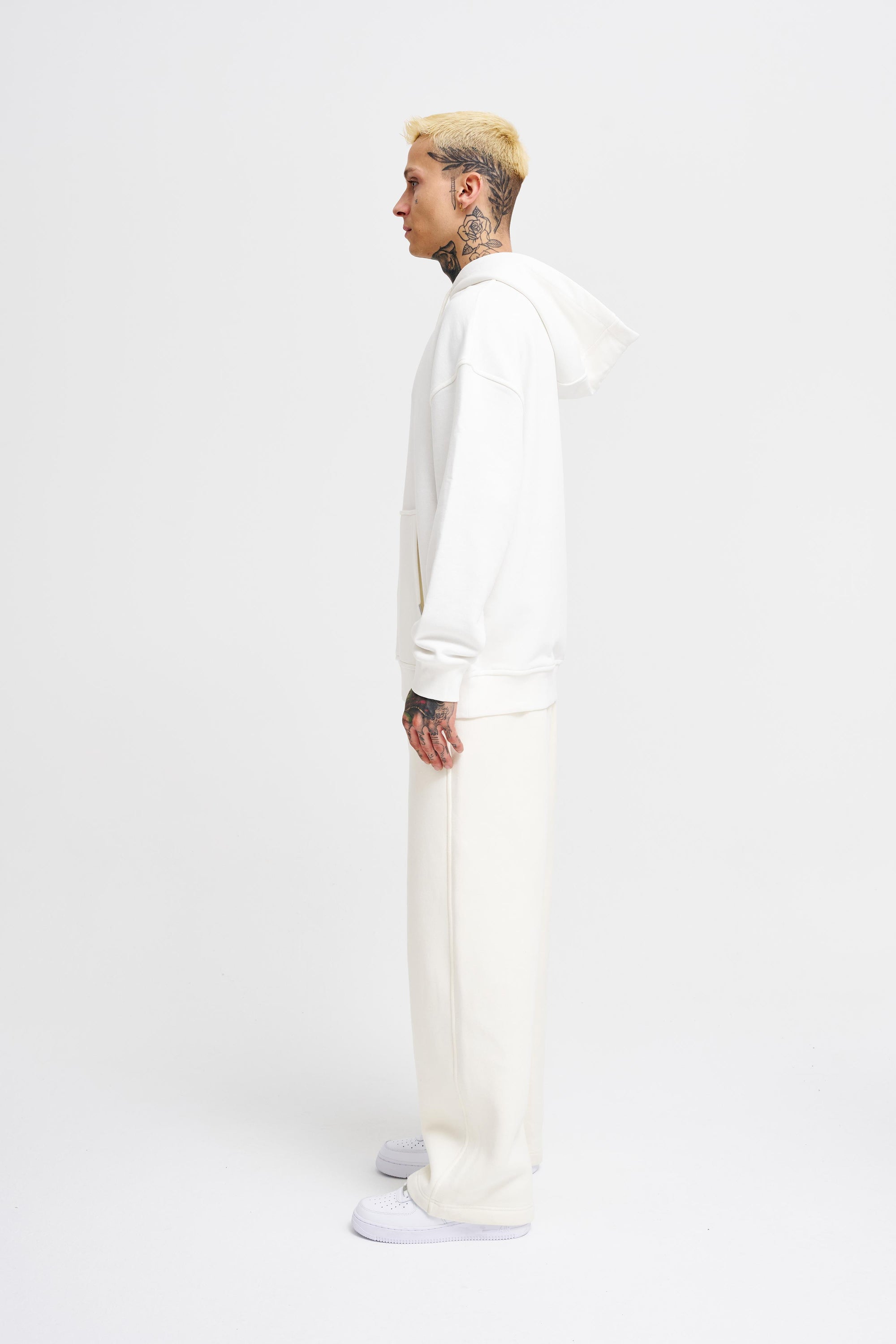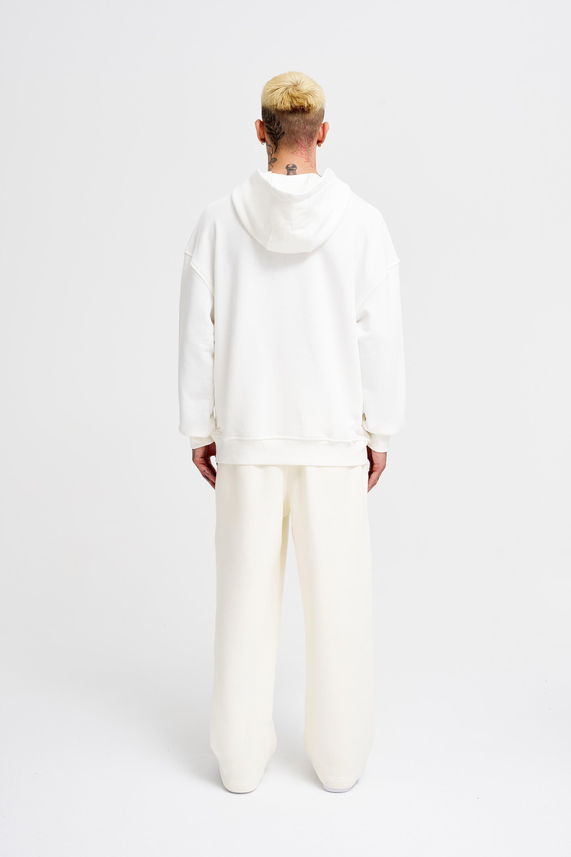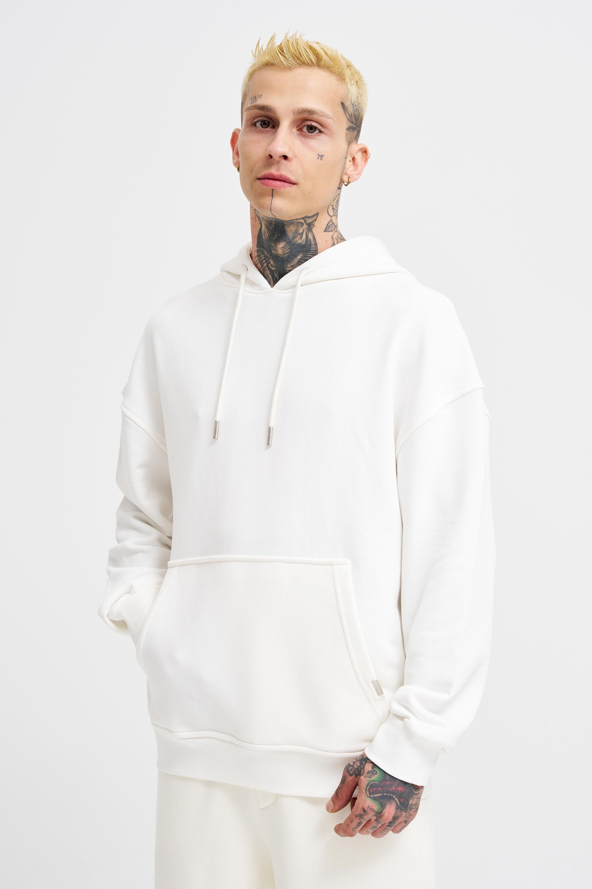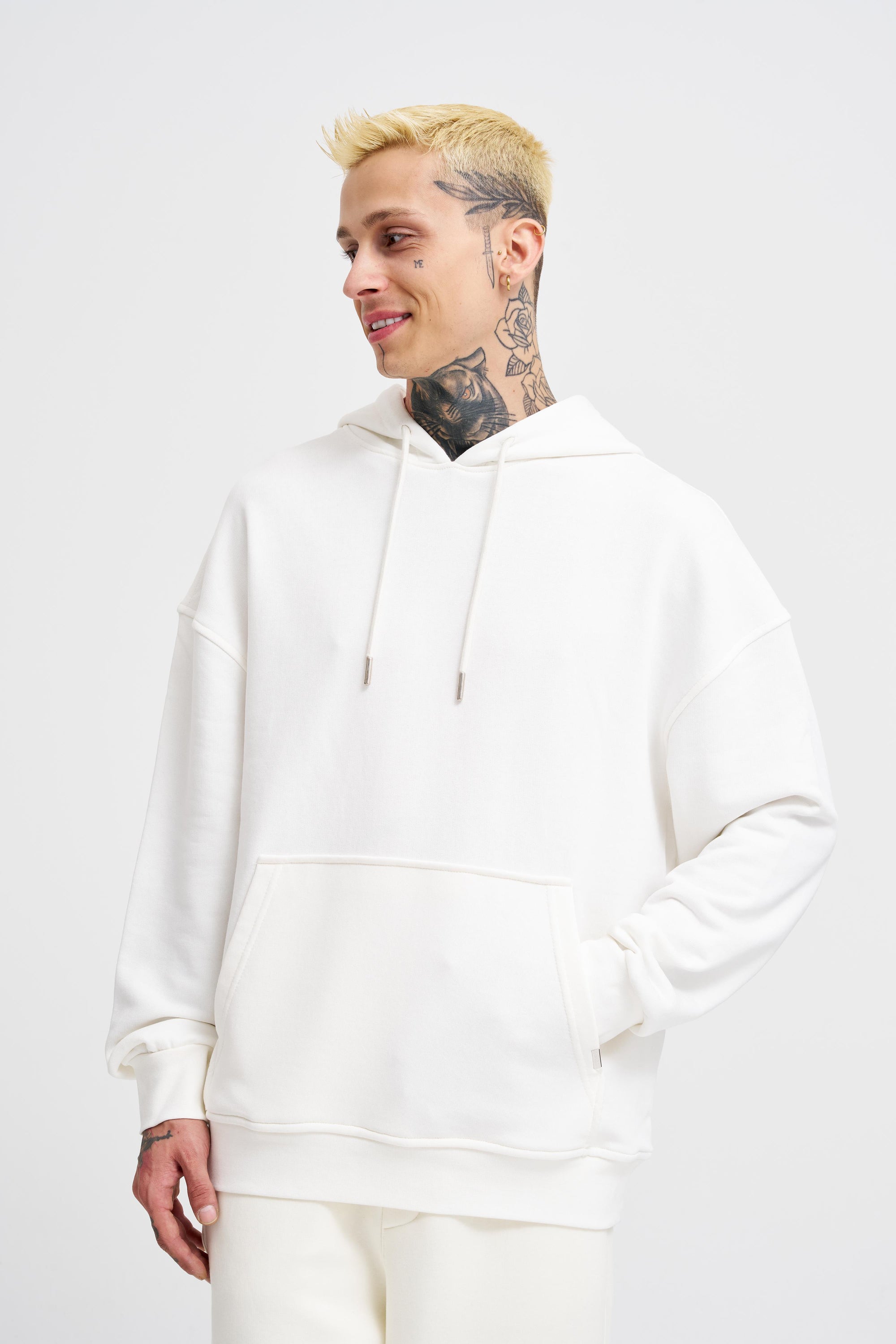 Erkek Kapüşonlu Oversize Sweatshirt Ekru