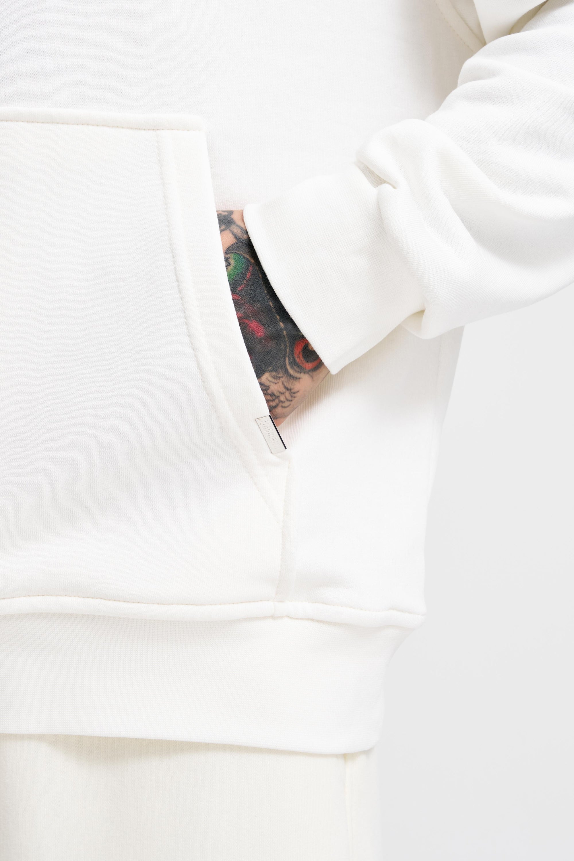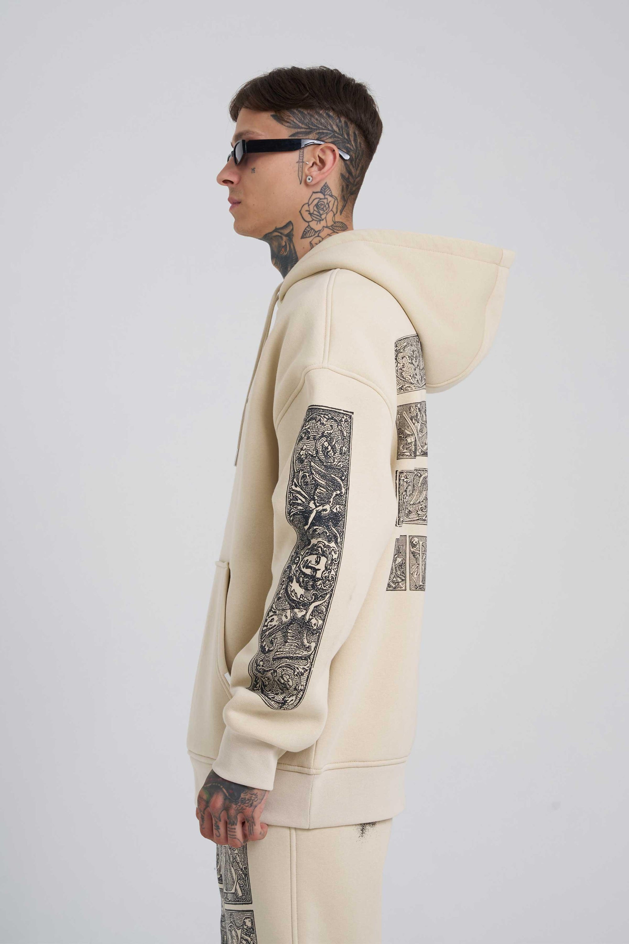 Erkek Nakışlı Kanguru Cepli Oversize Sweatshirt Ekru