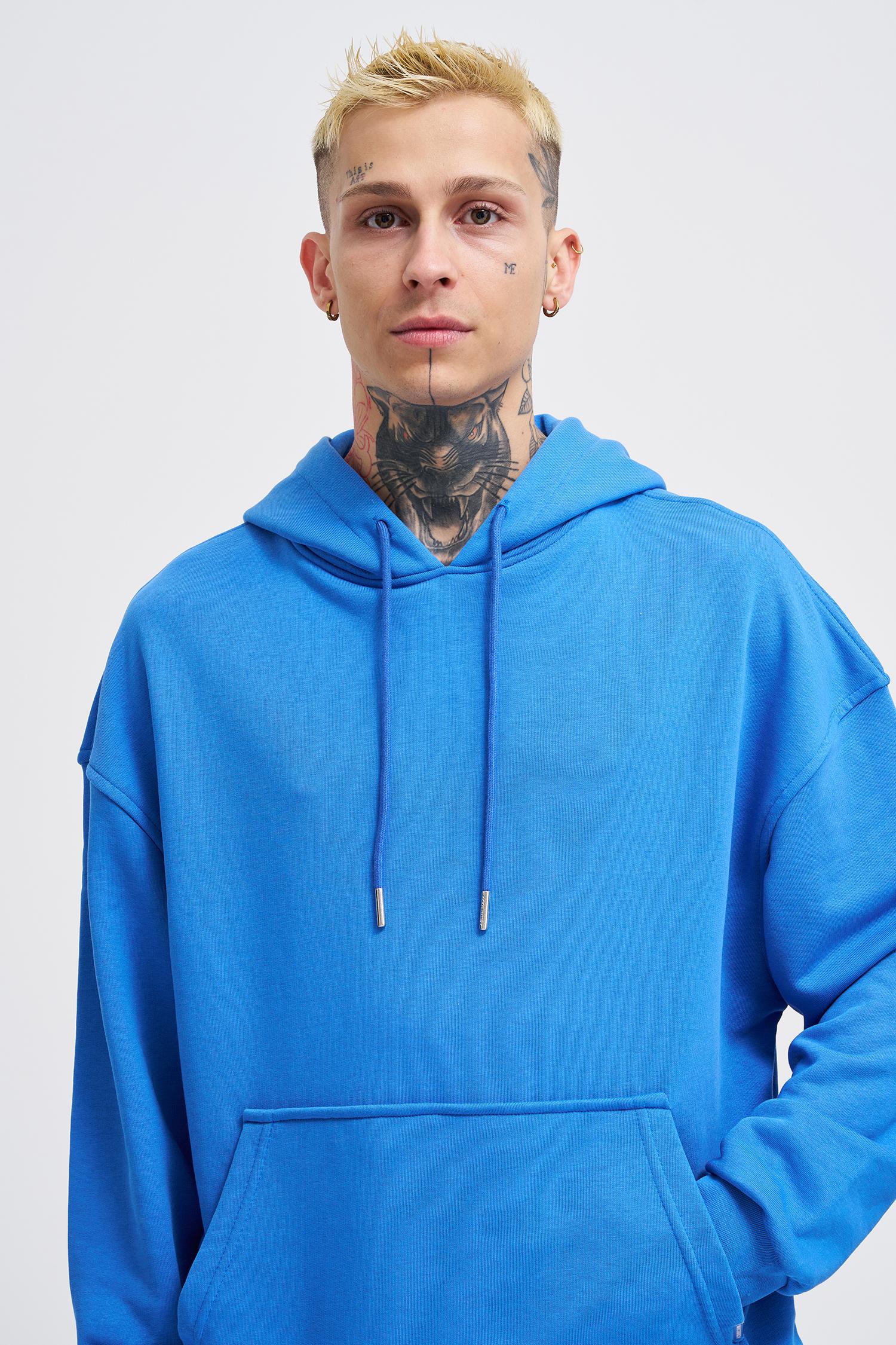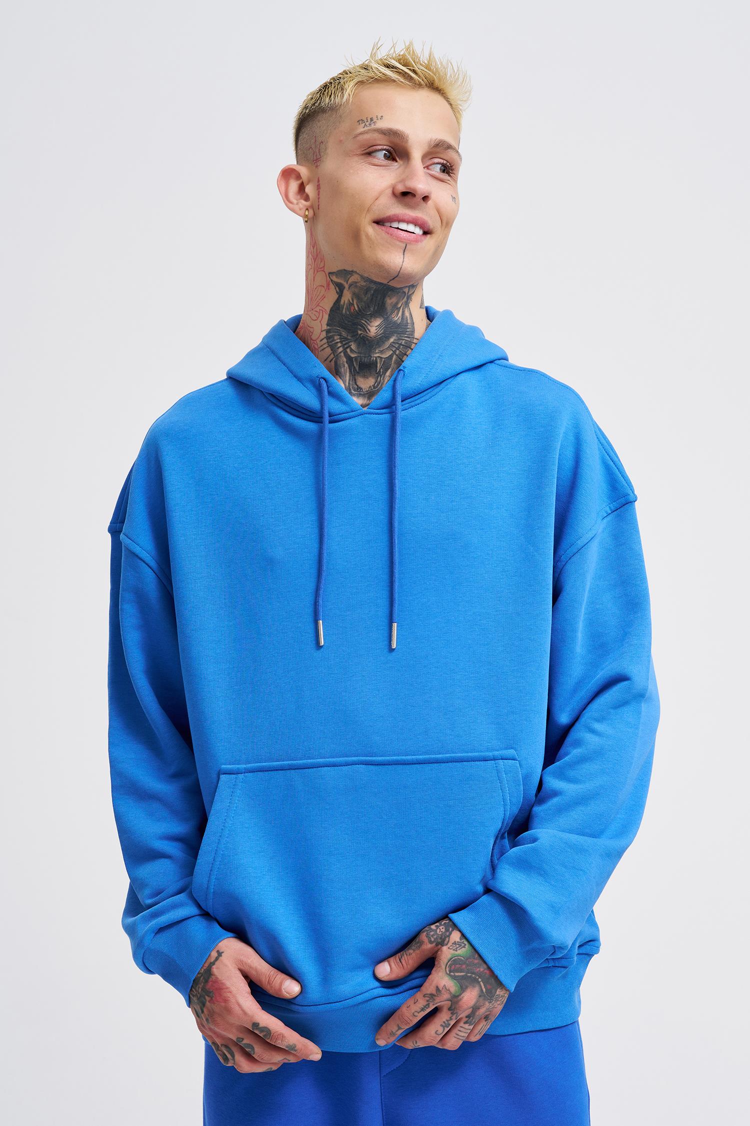 Erkek Kapüşonlu Oversize Sweatshirt Saks Mavi