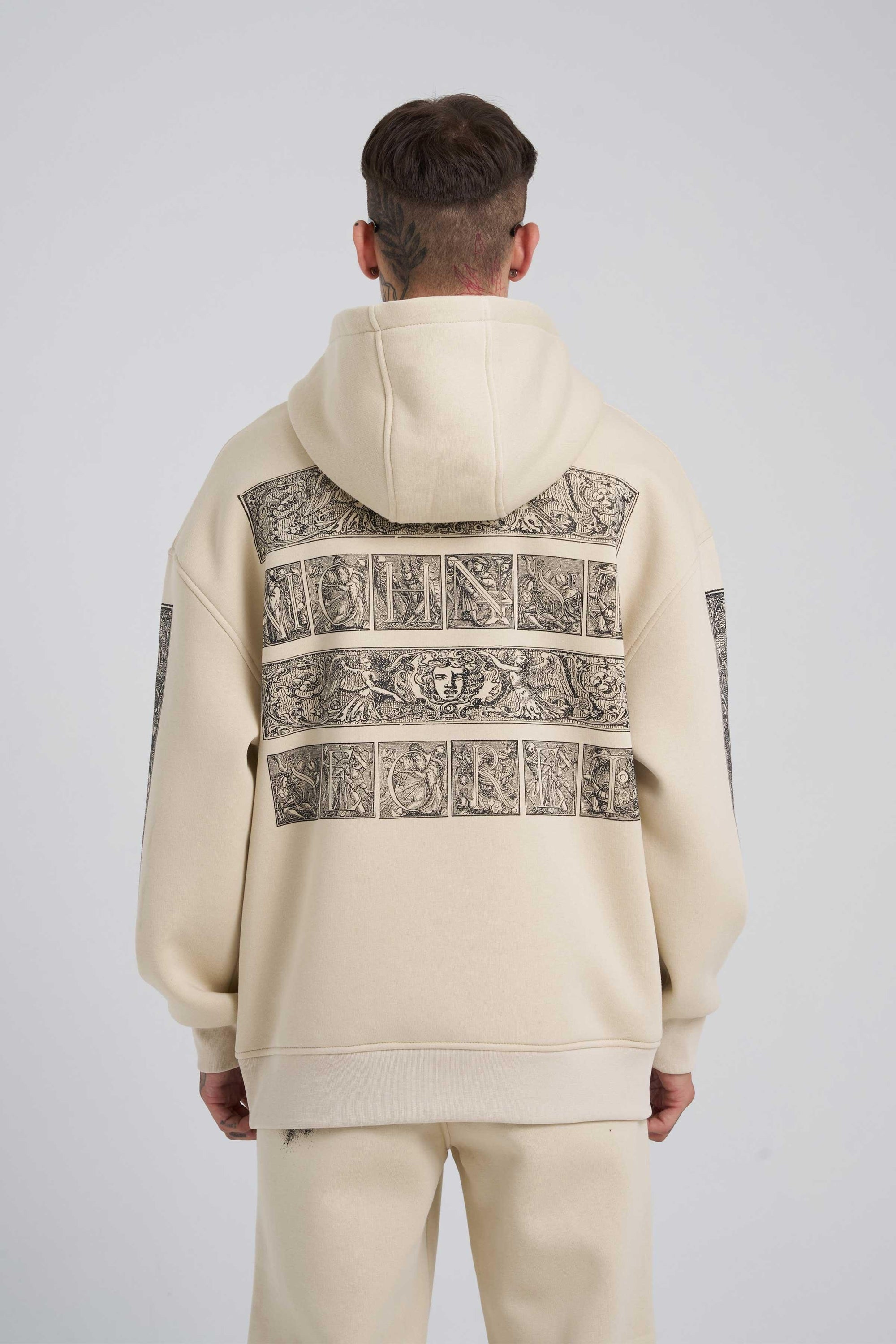 Erkek Machinist Secret Baskılı Kapüşonlu Sweatshirt Açık Bej