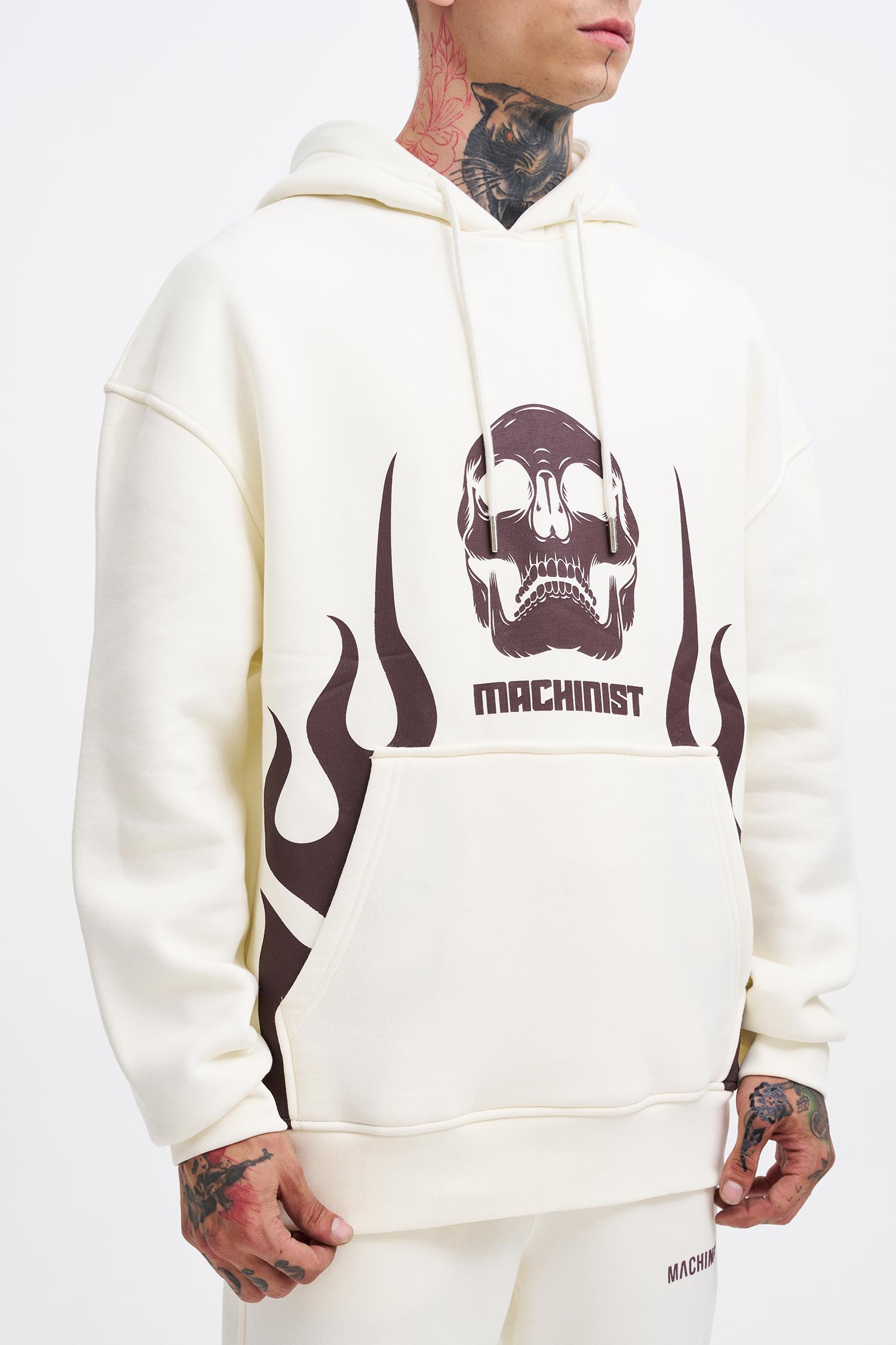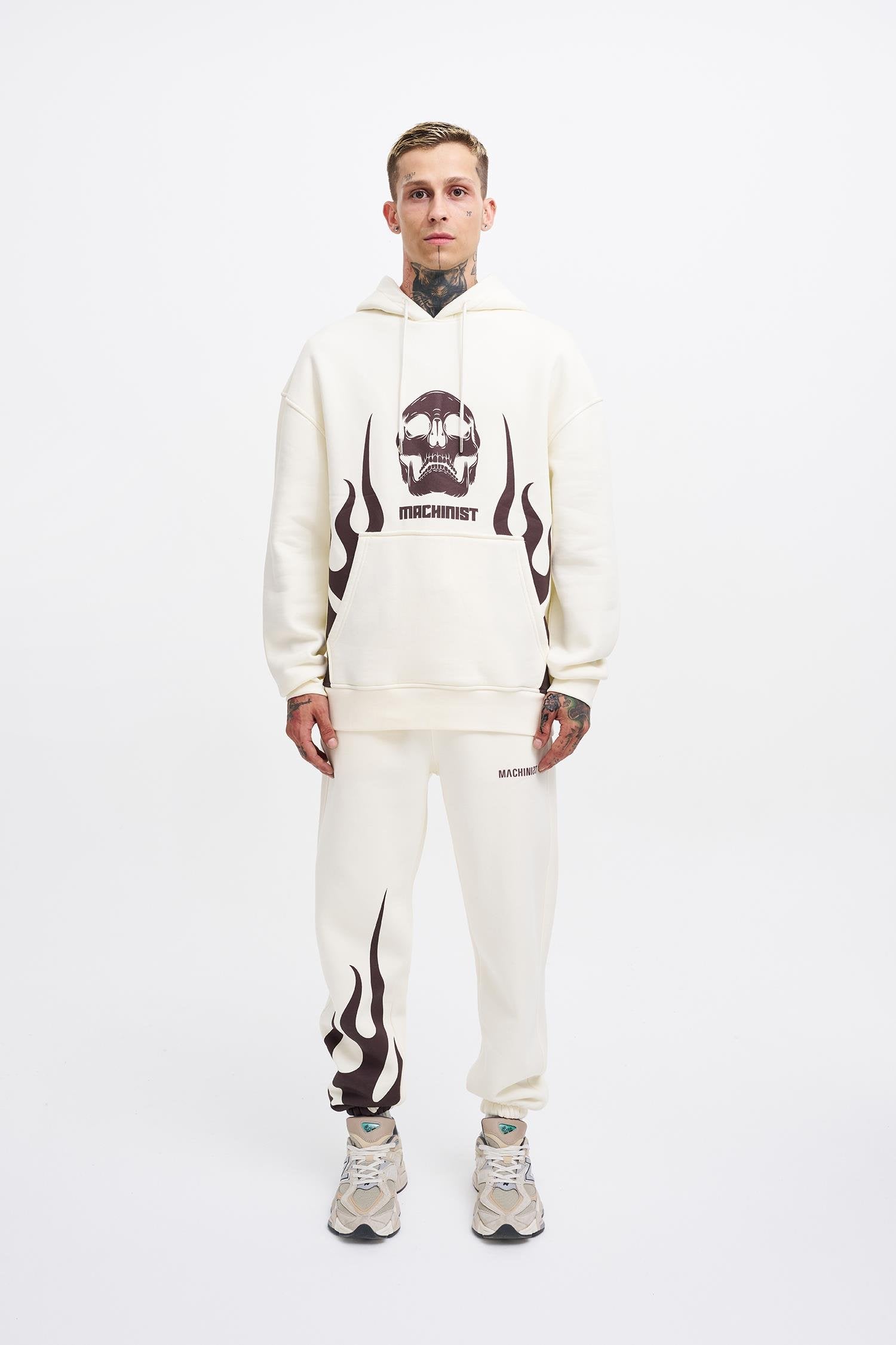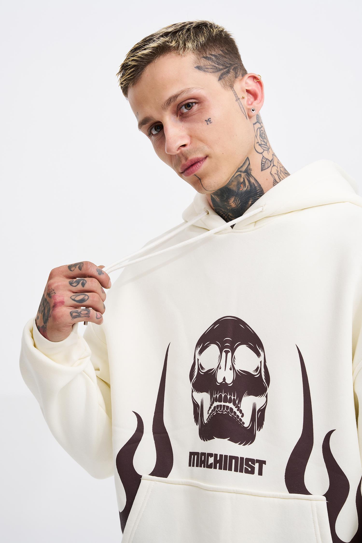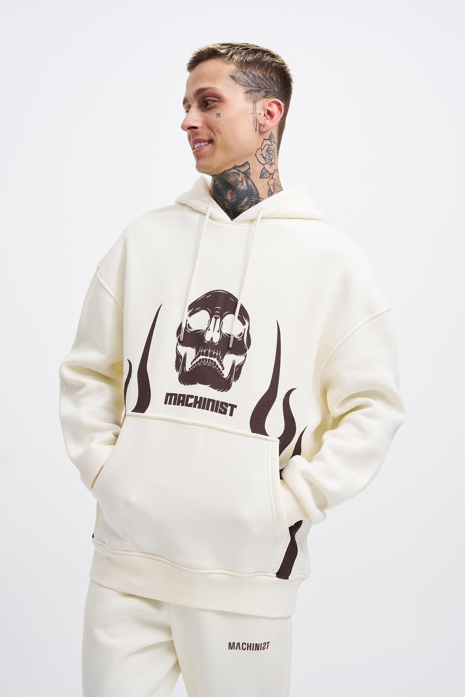 Erkek Oversize Fire Baskılı Sweatshirt Ekru