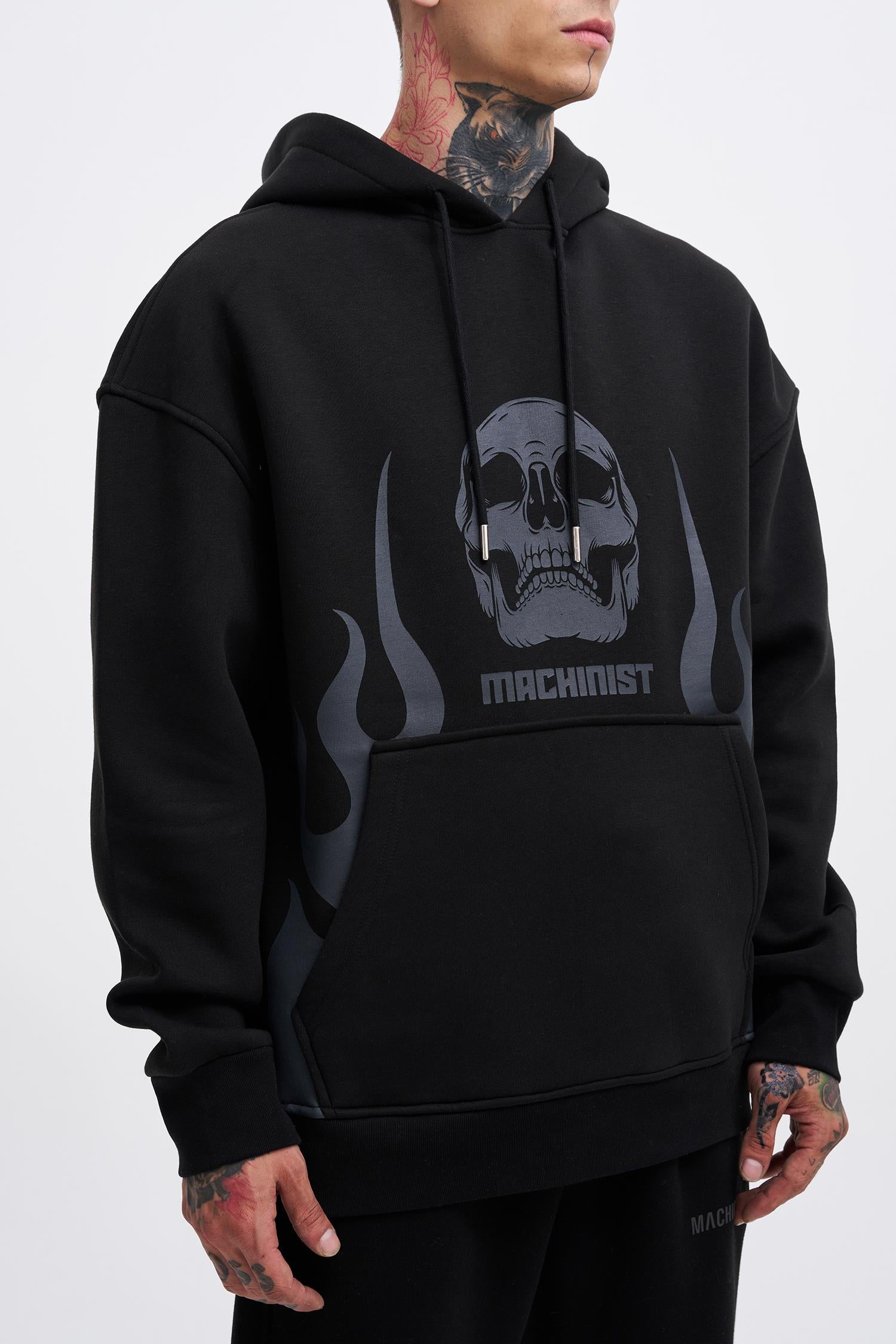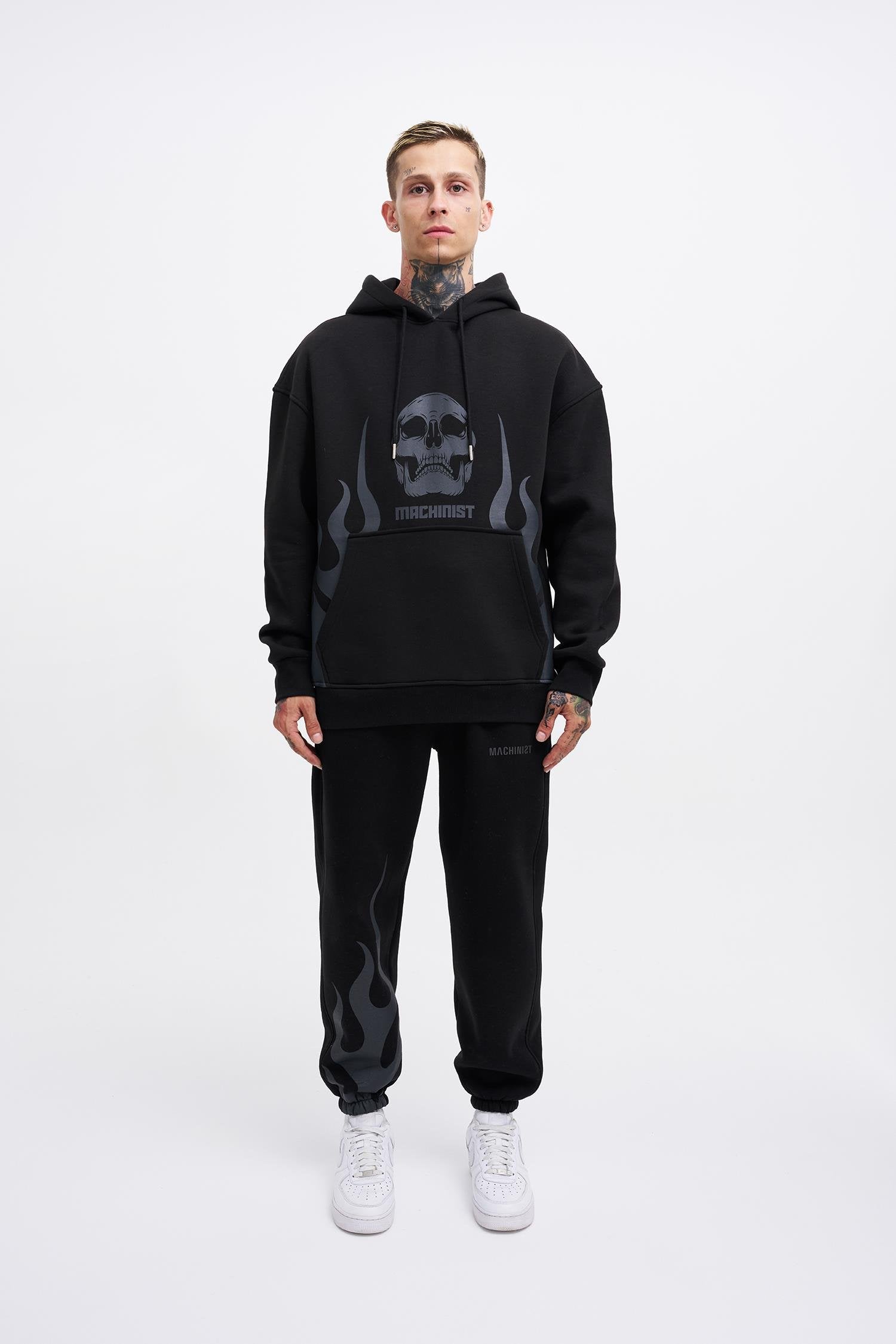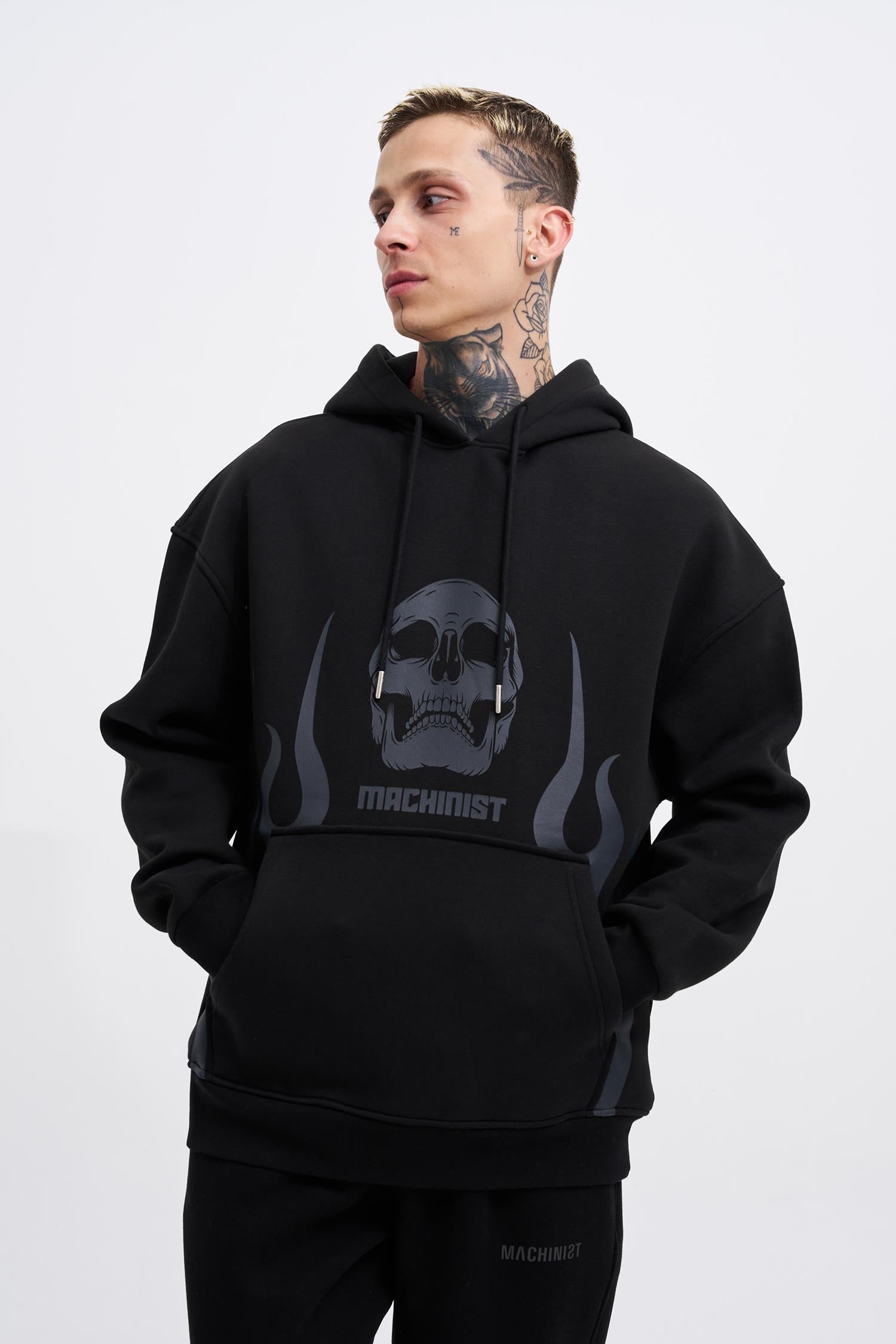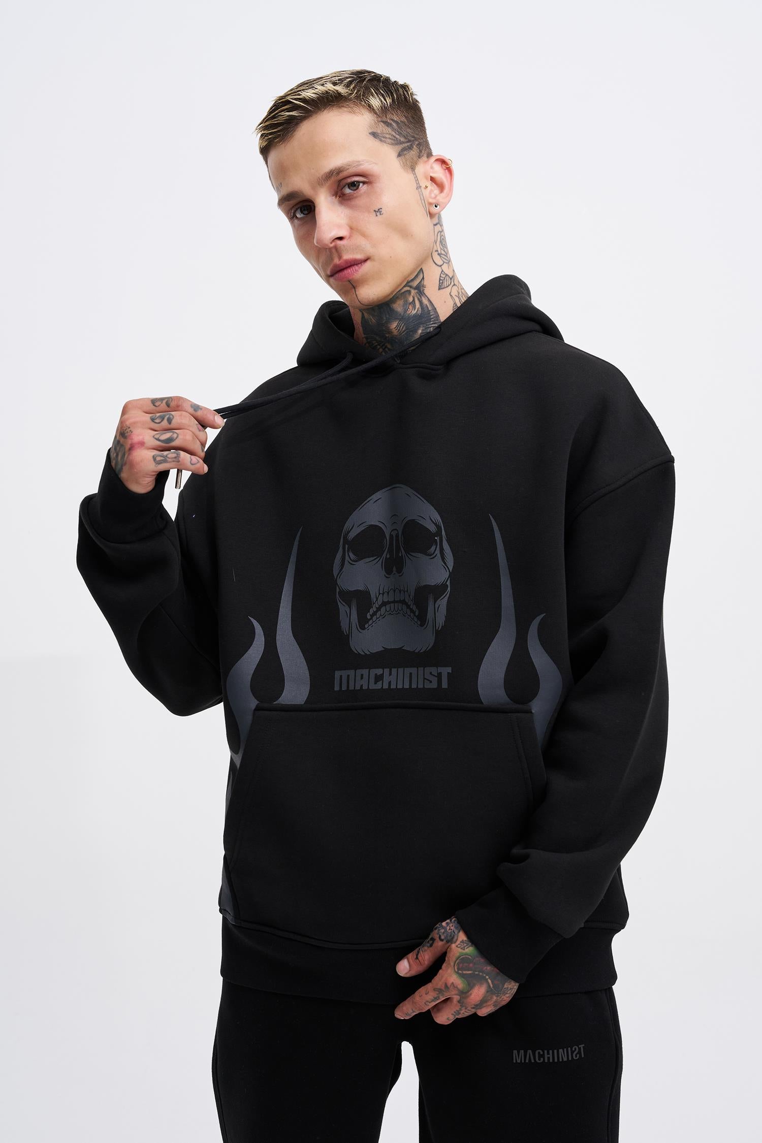 Erkek Oversize Fire Baskılı Sweatshirt Siyah