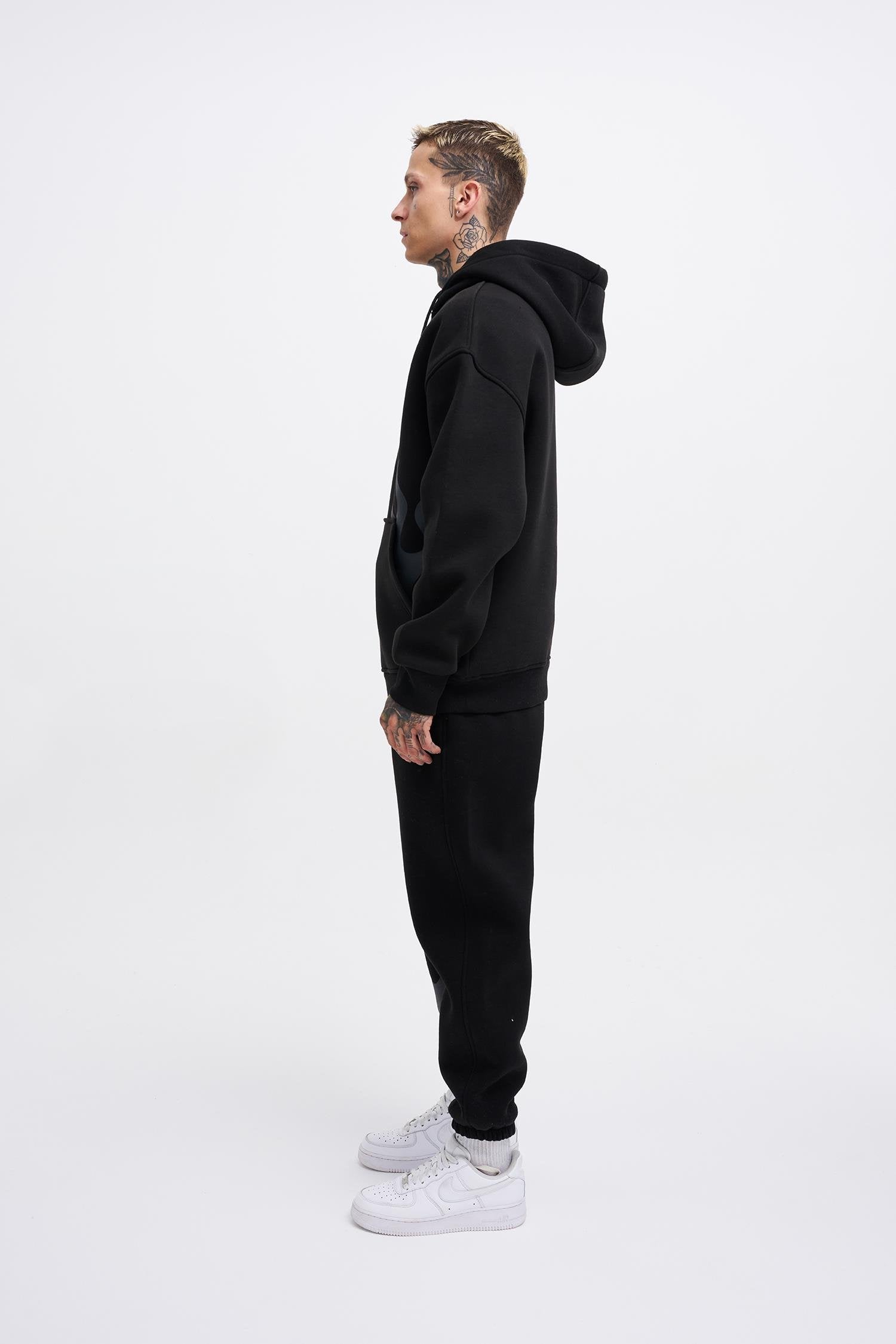 Erkek Oversize Fermuarlı Cepli Kapüşonlu Basic Sweatshirt Siyah
