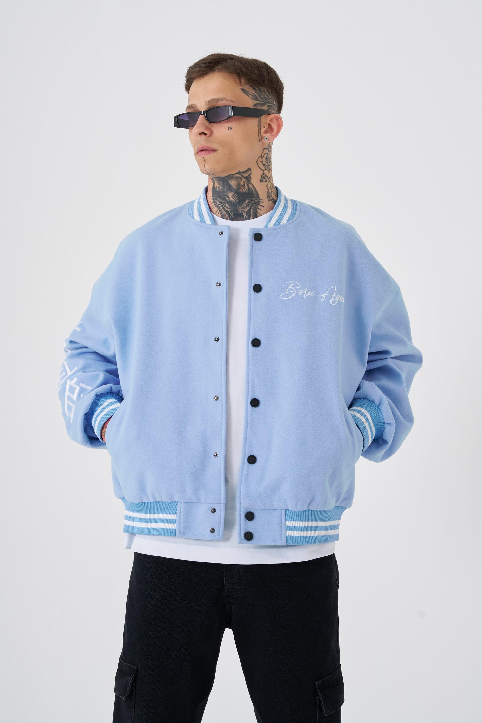 Erkek Born Again Style Oversize Bomber Ceket Açık Mavi
