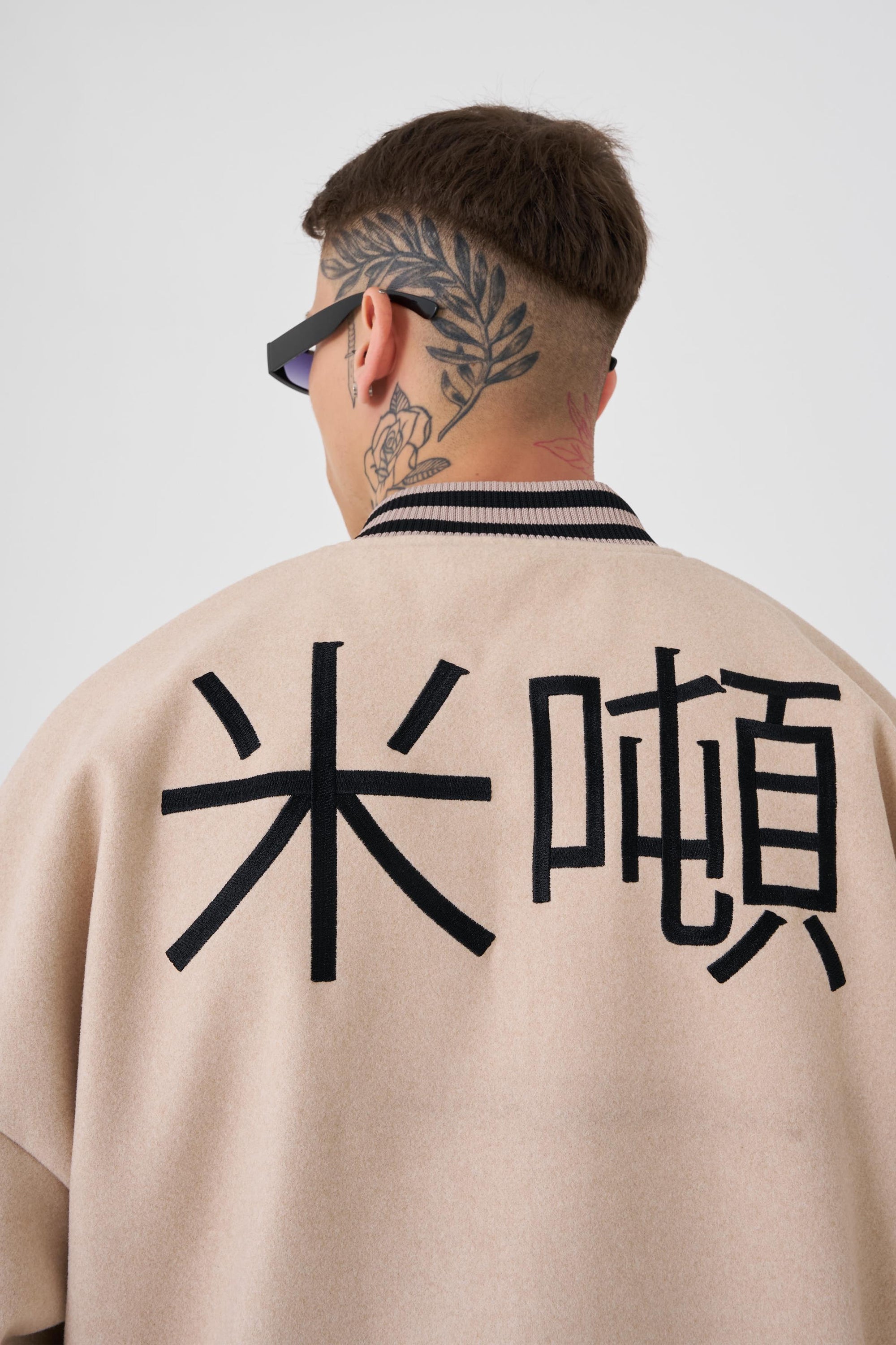 Erkek Hell Fire Club Oversize Bomber Ceket Bej
