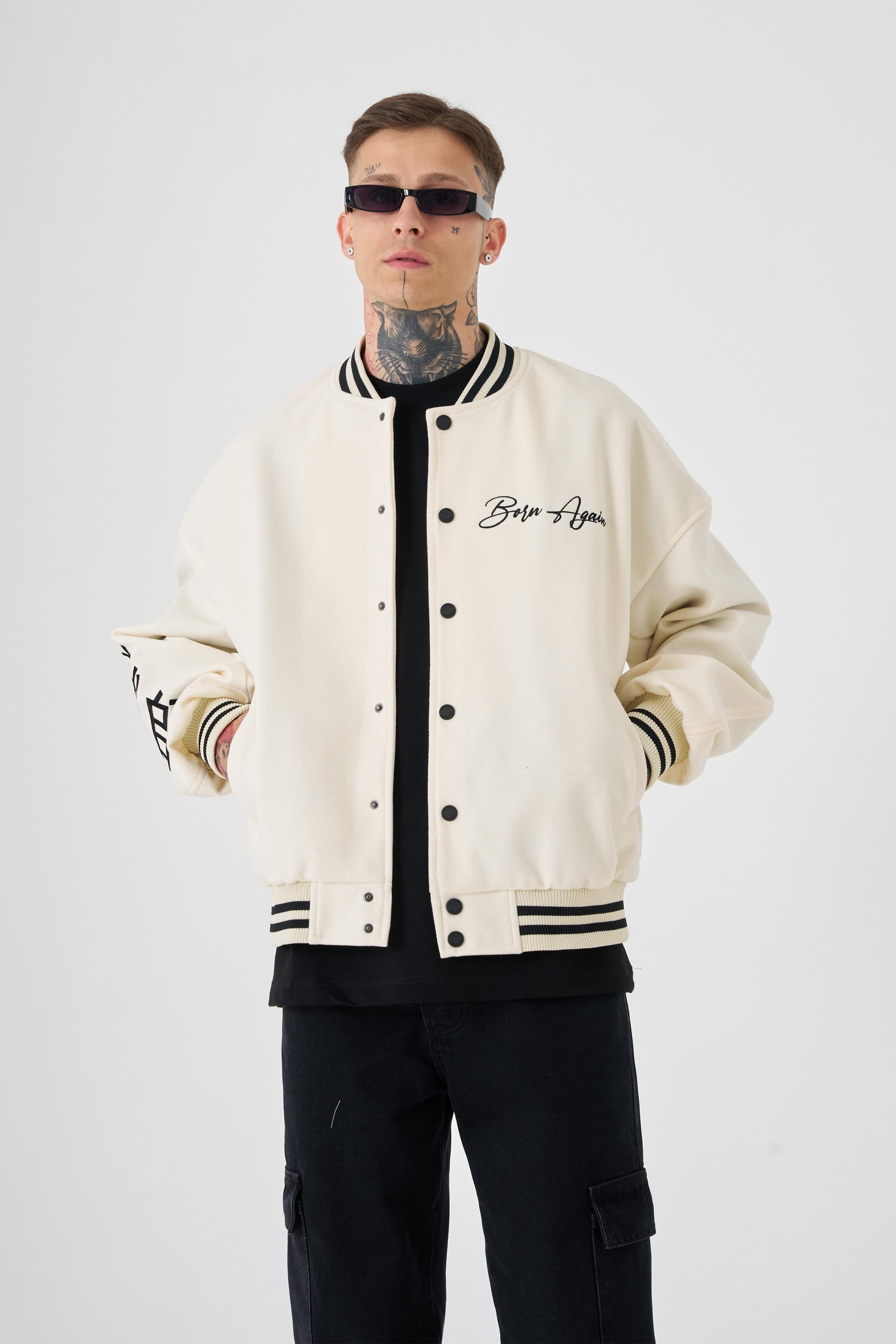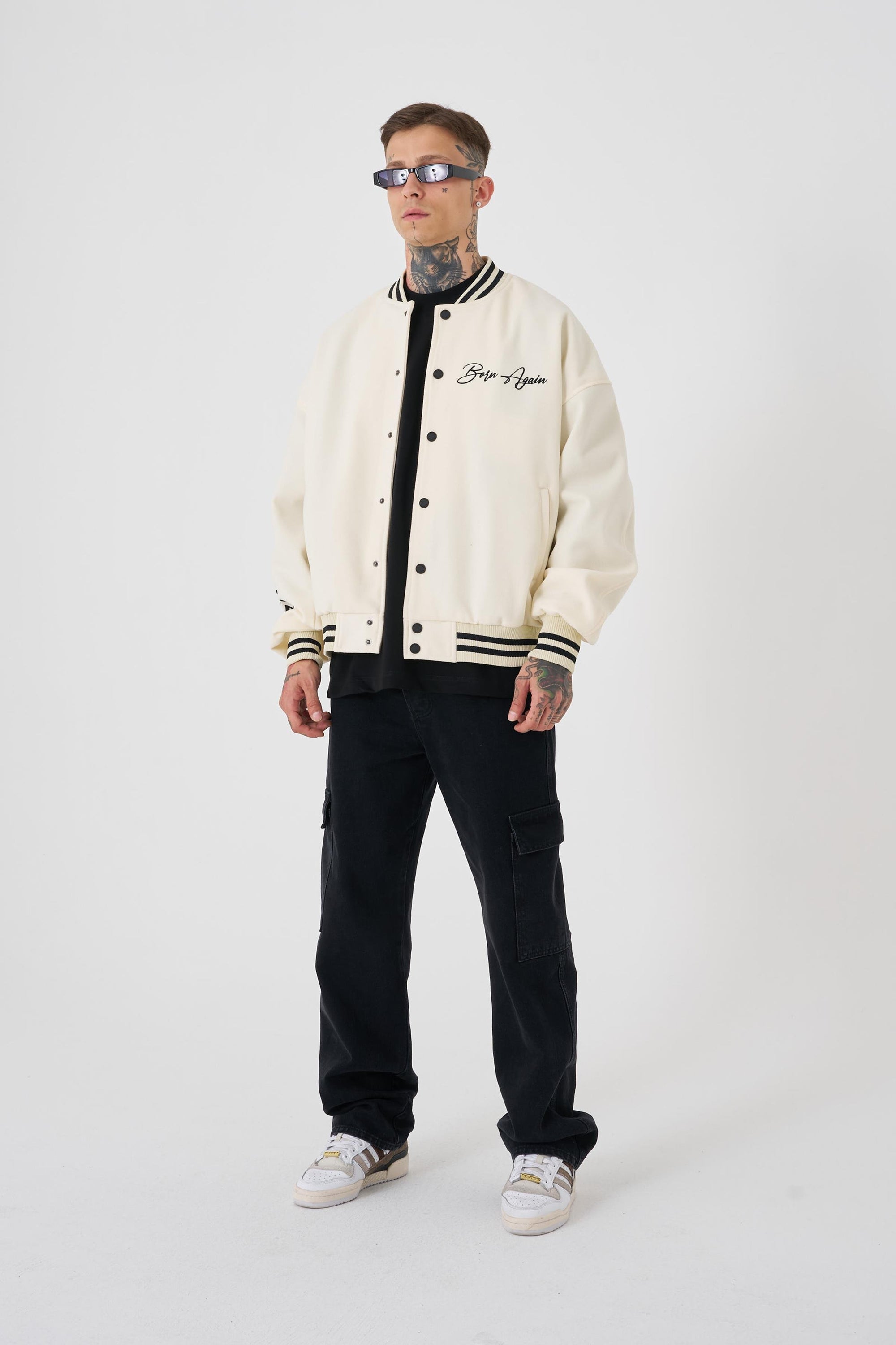 Erkek Born Again Style Oversize Bomber Ceket Ekru