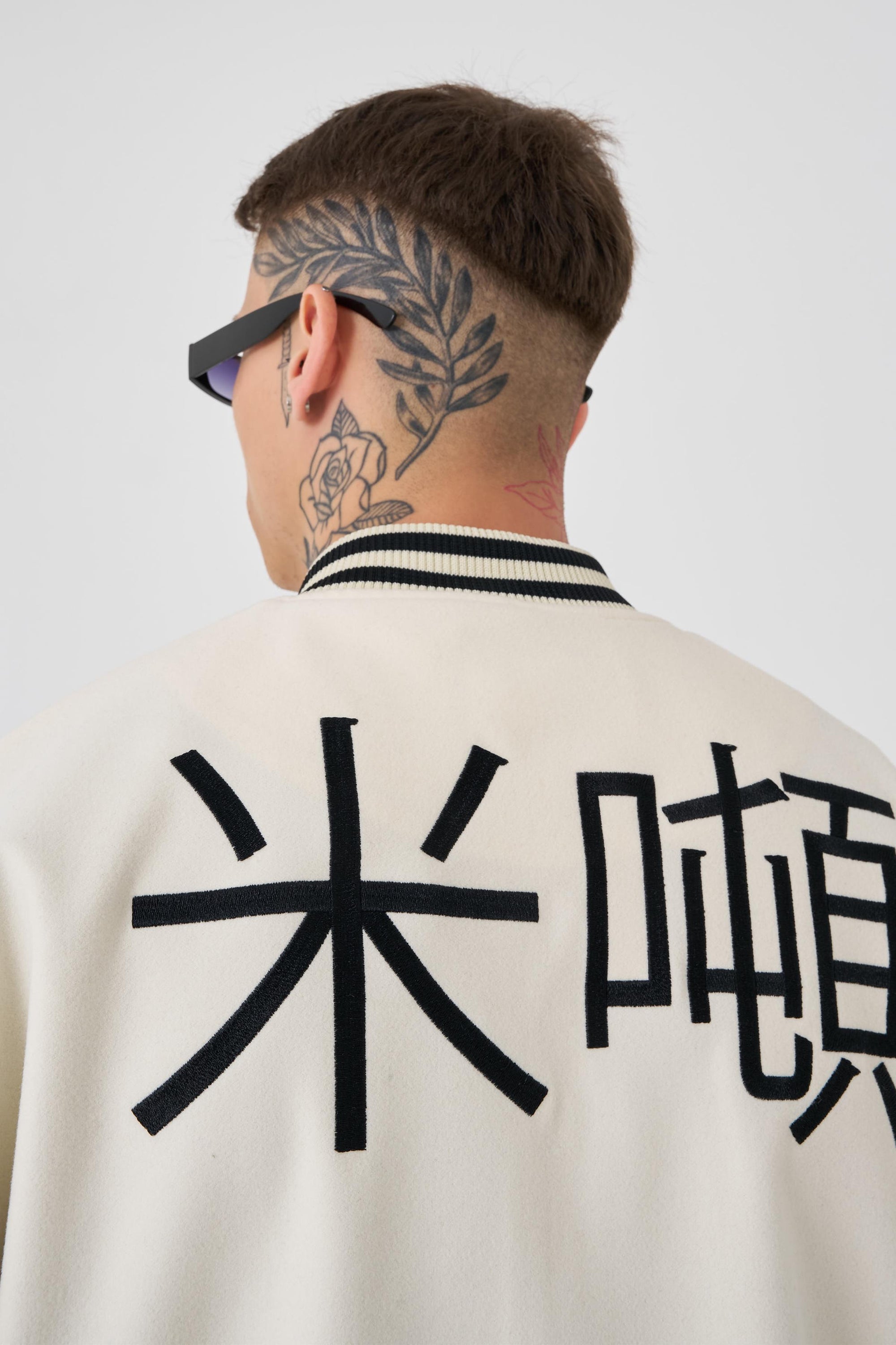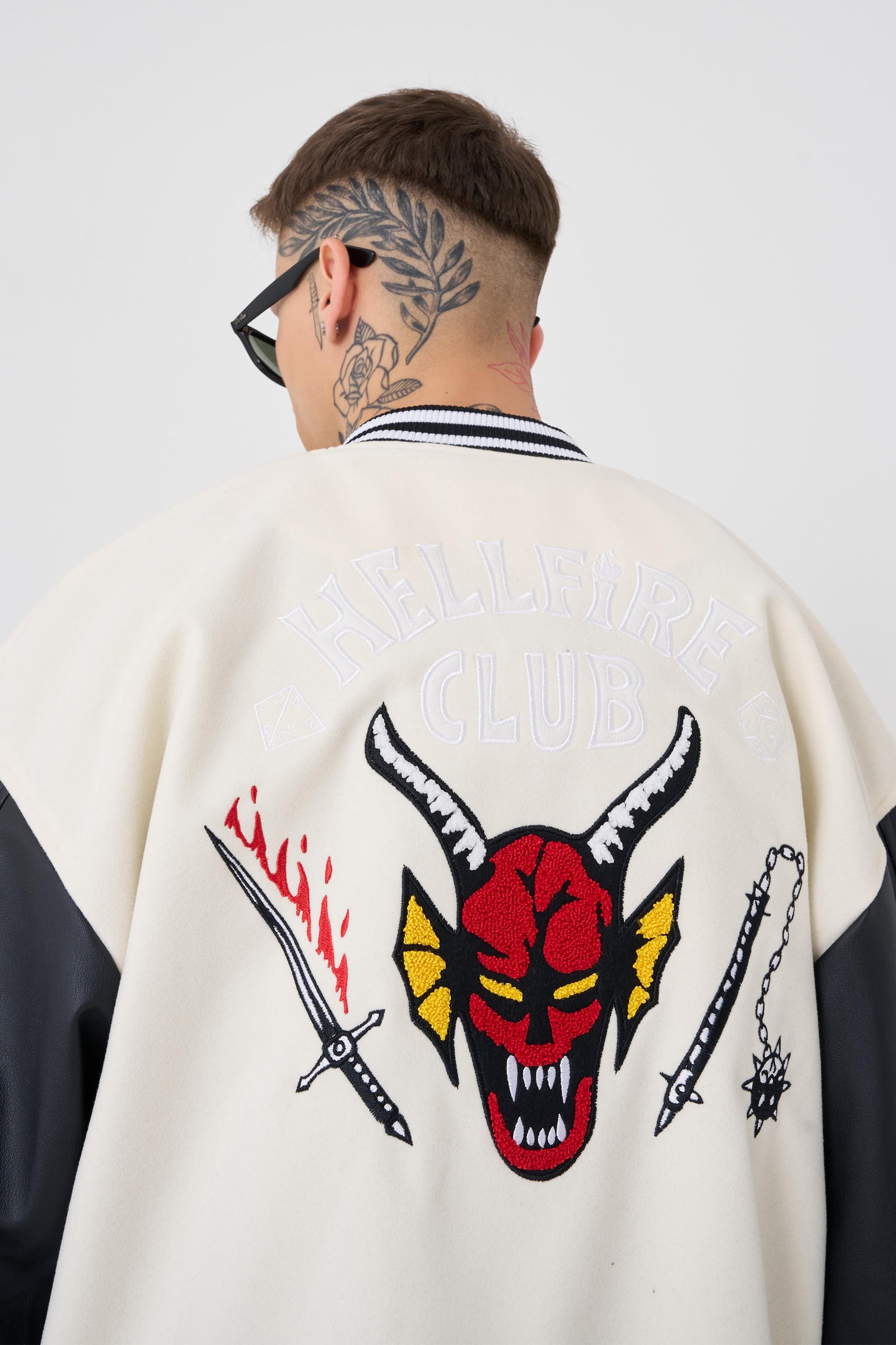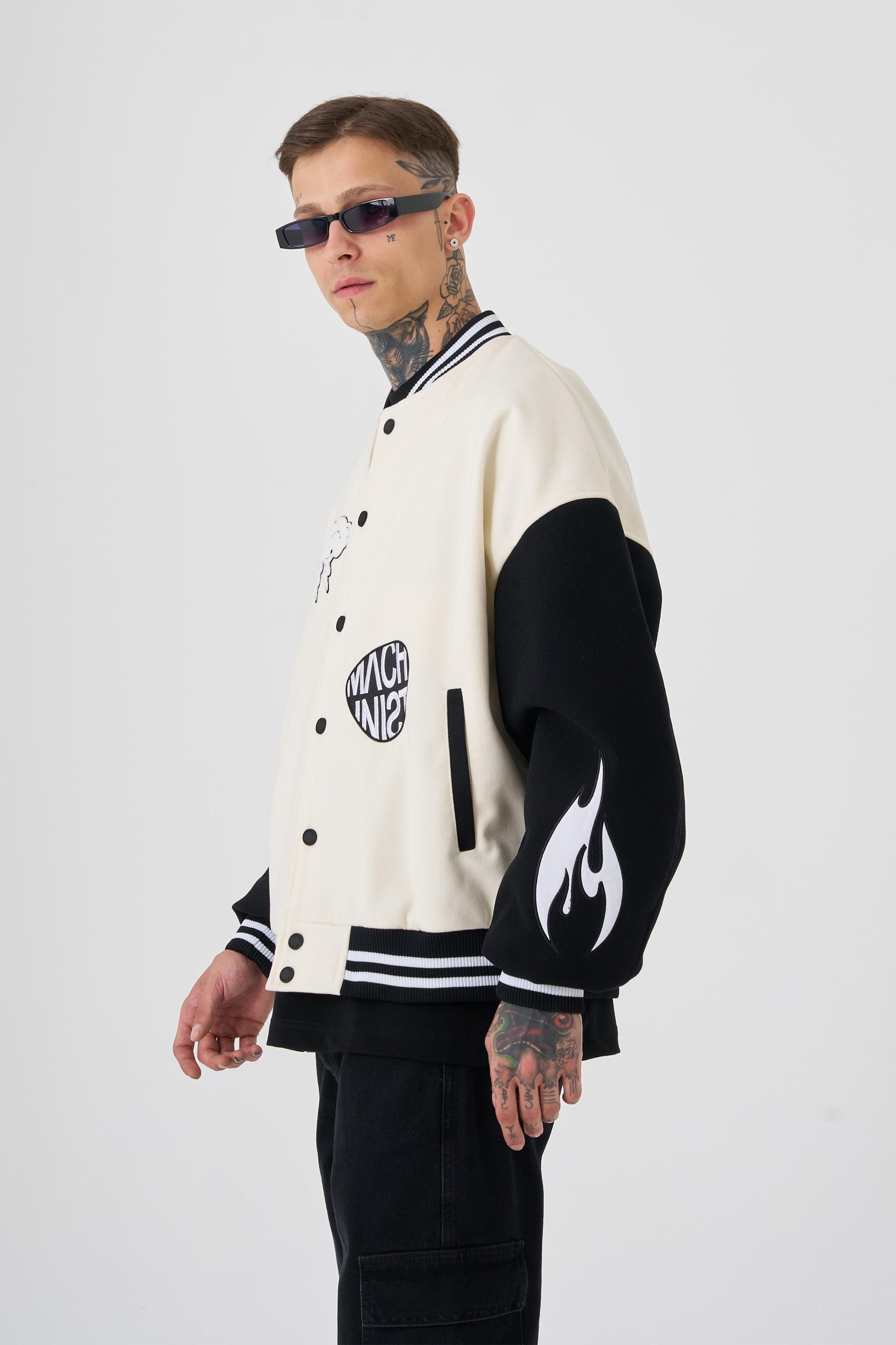Erkek Hell Fire Club Oversize Bomber Ceket Ekru
