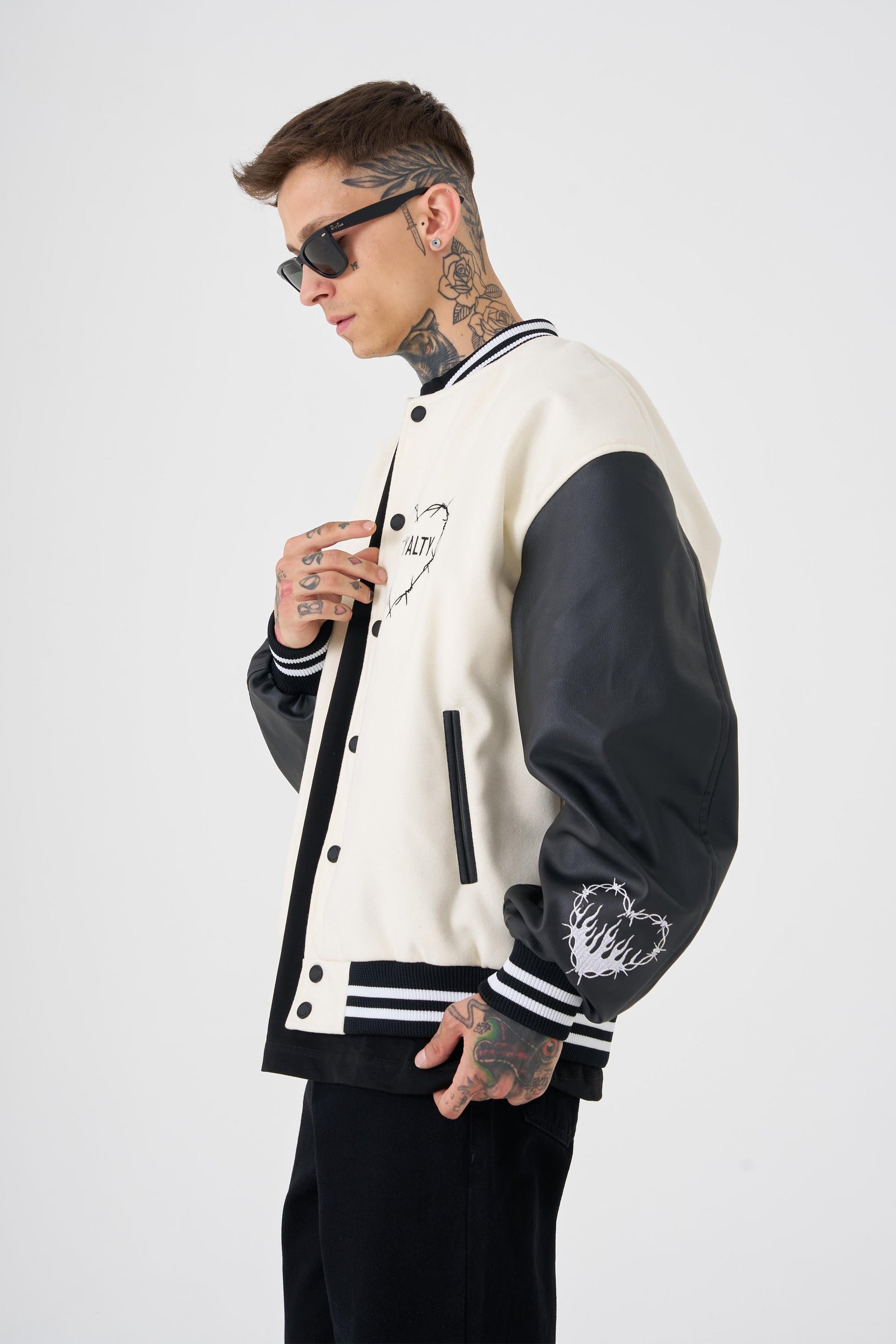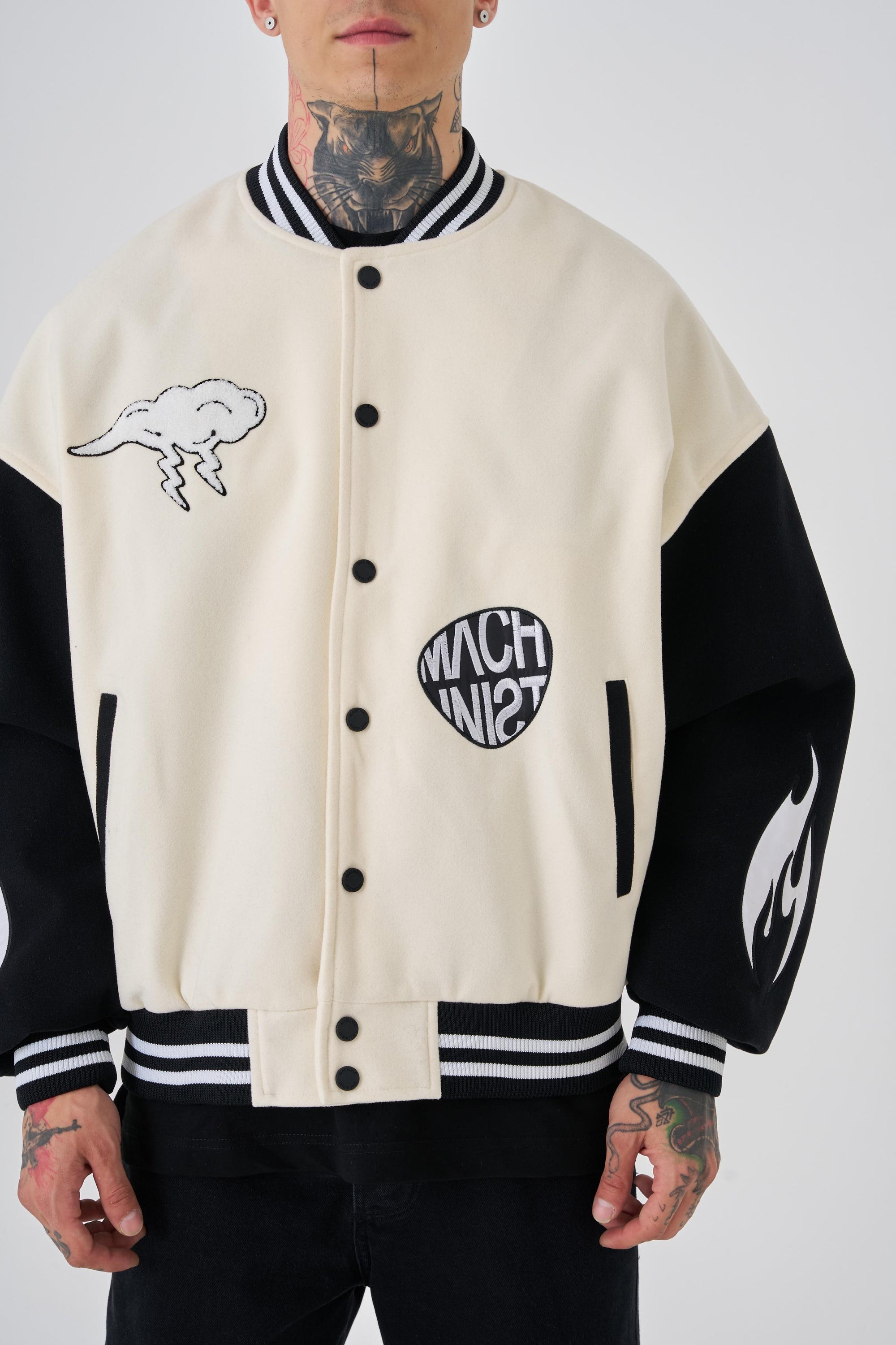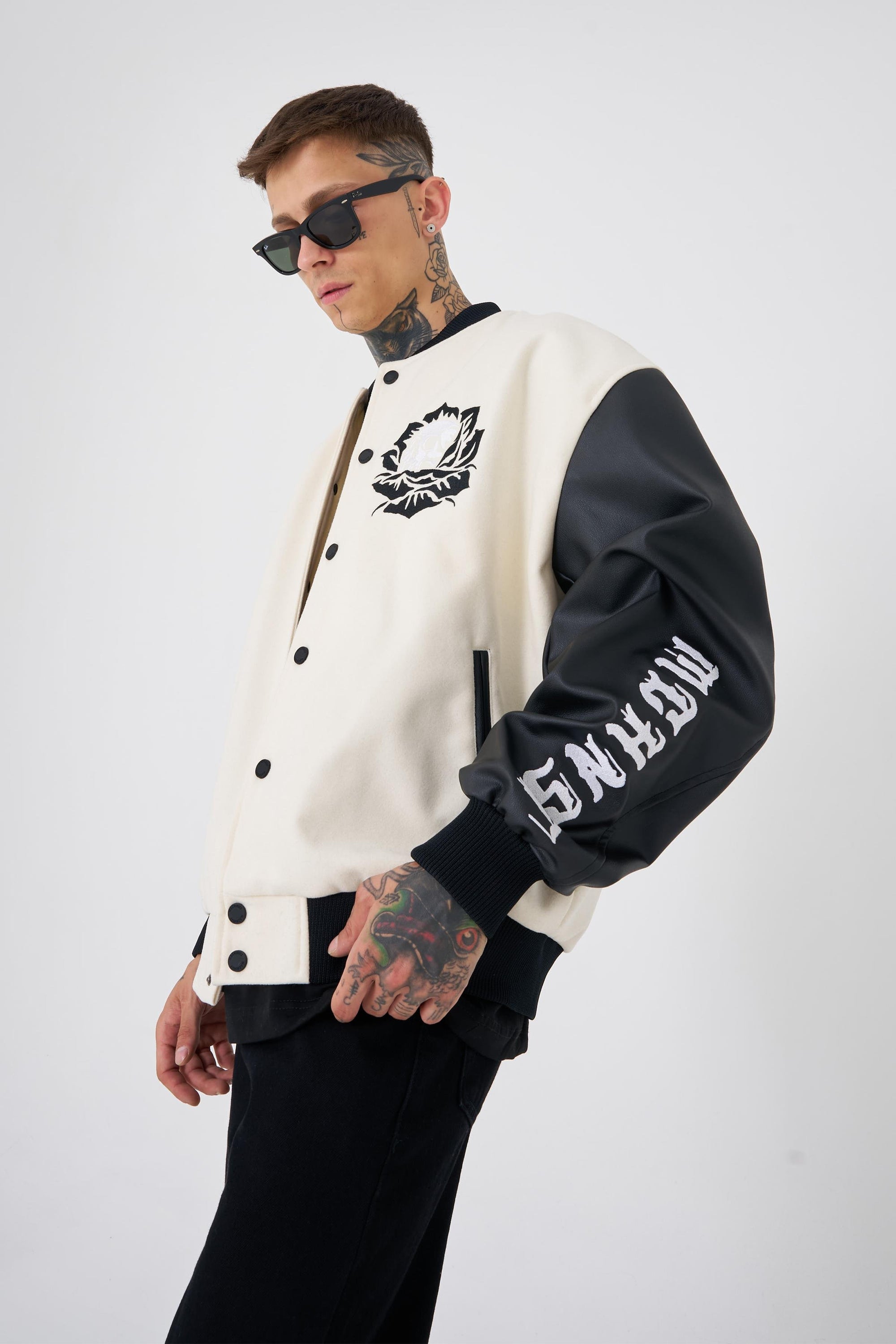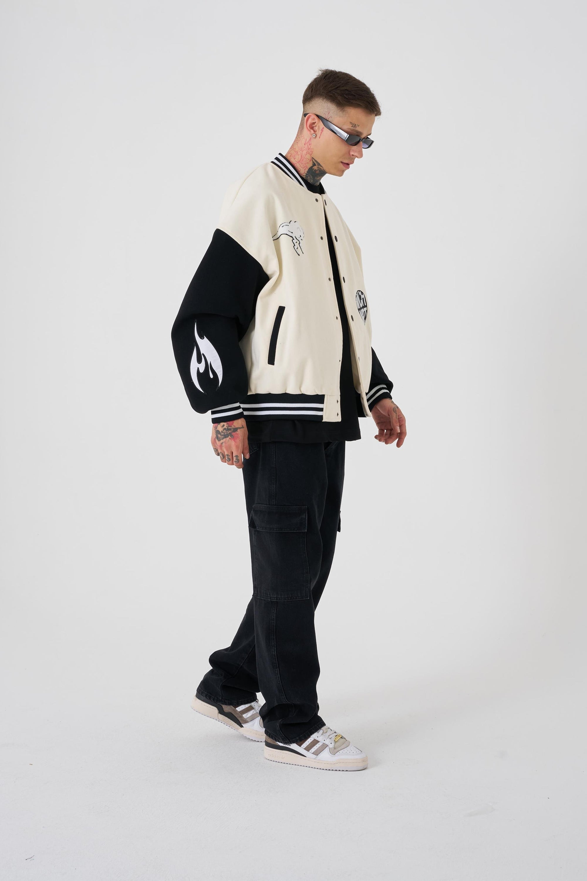 Erkek Hell Fire Club Oversize Bomber Ceket Ekru