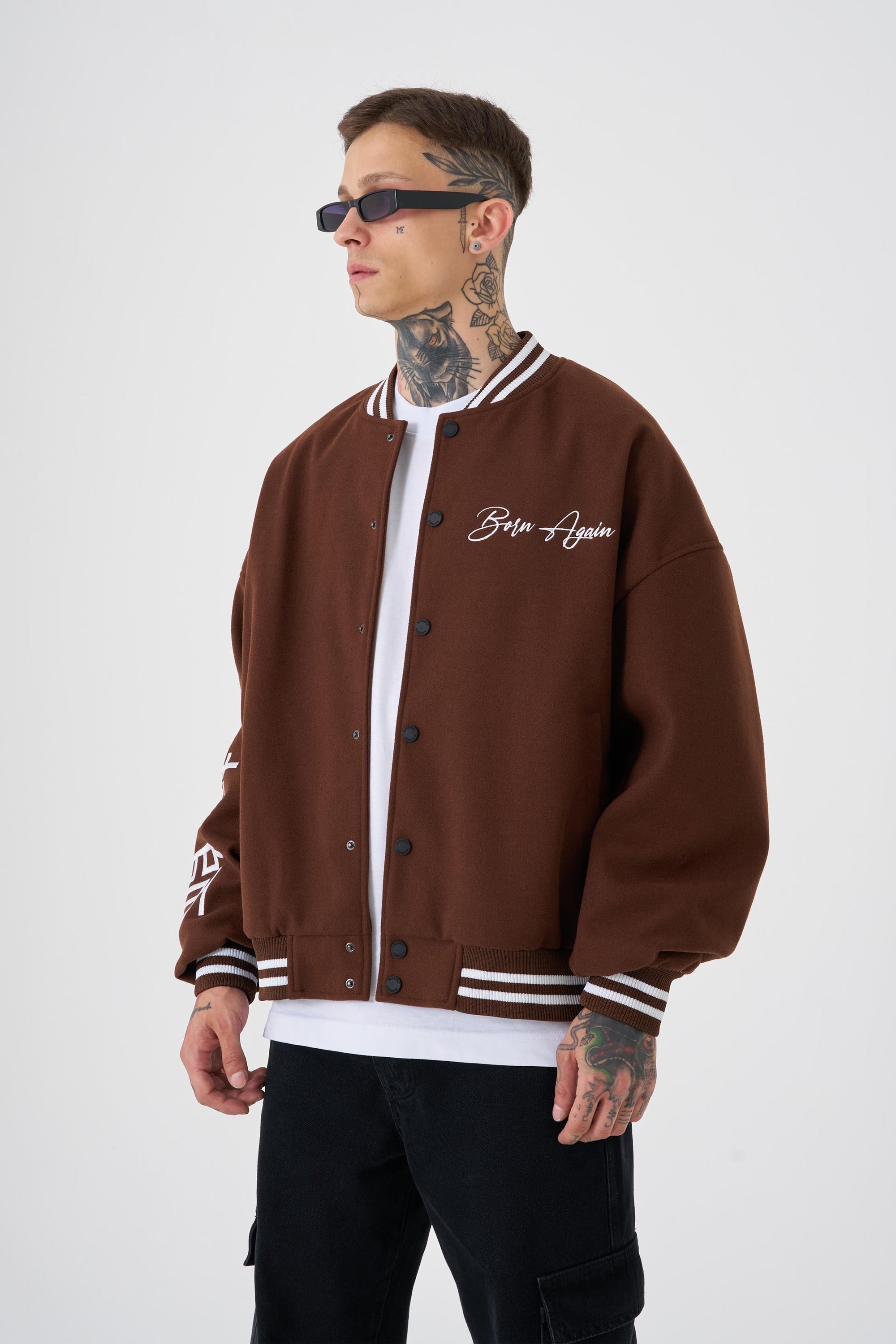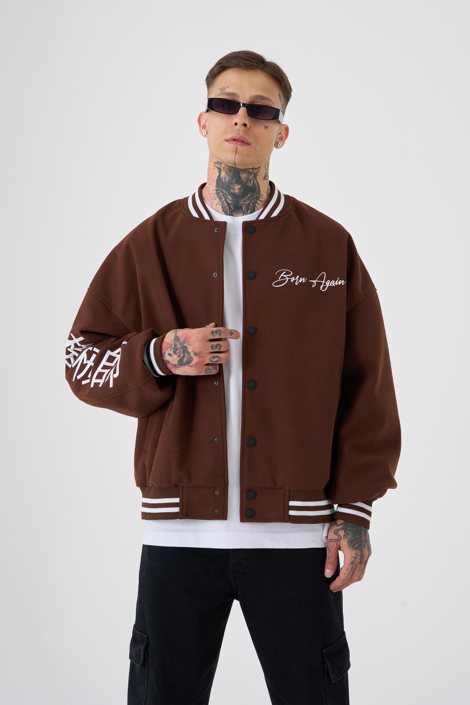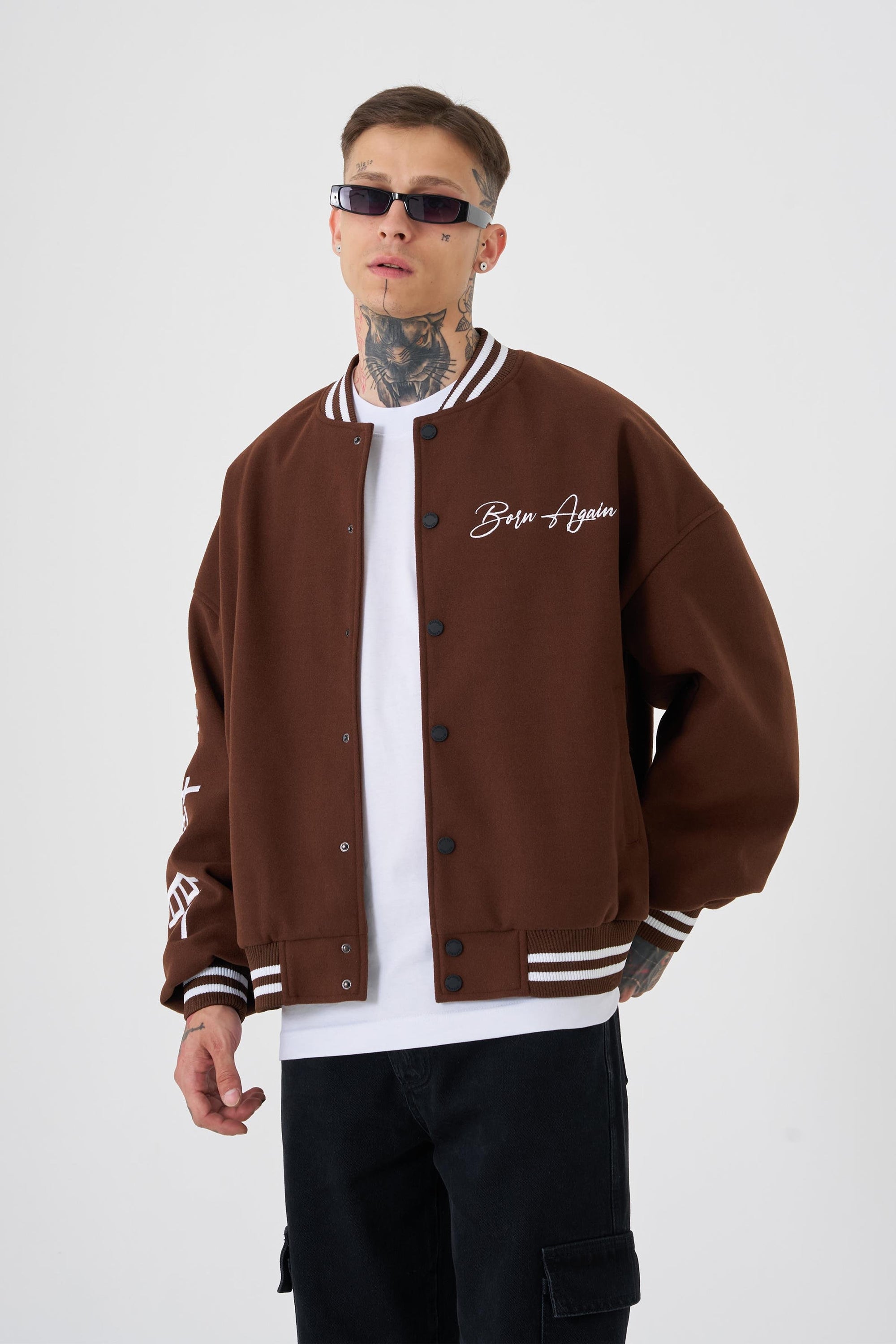 Erkek Born Again Style Oversize Bomber Ceket Kahverengi