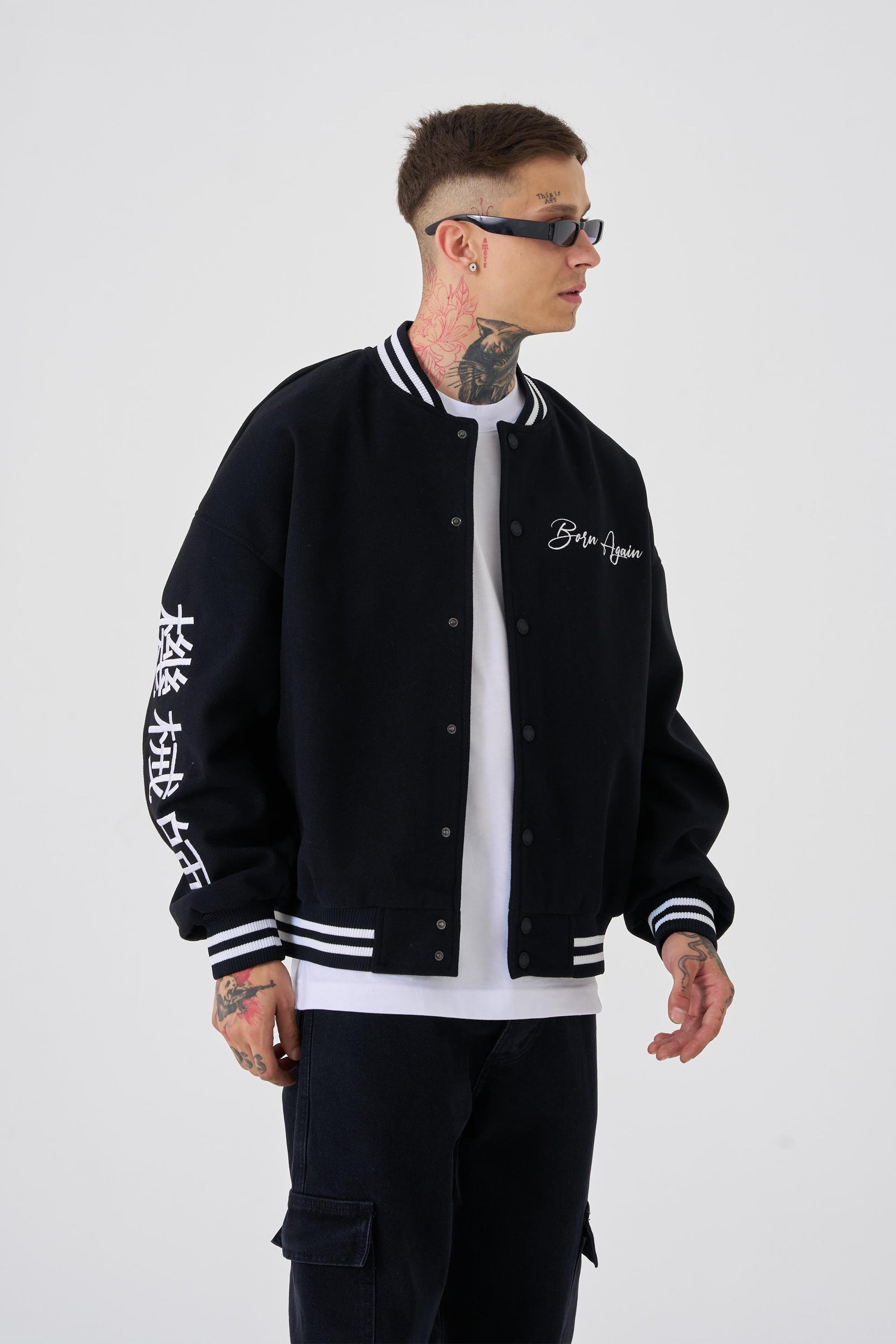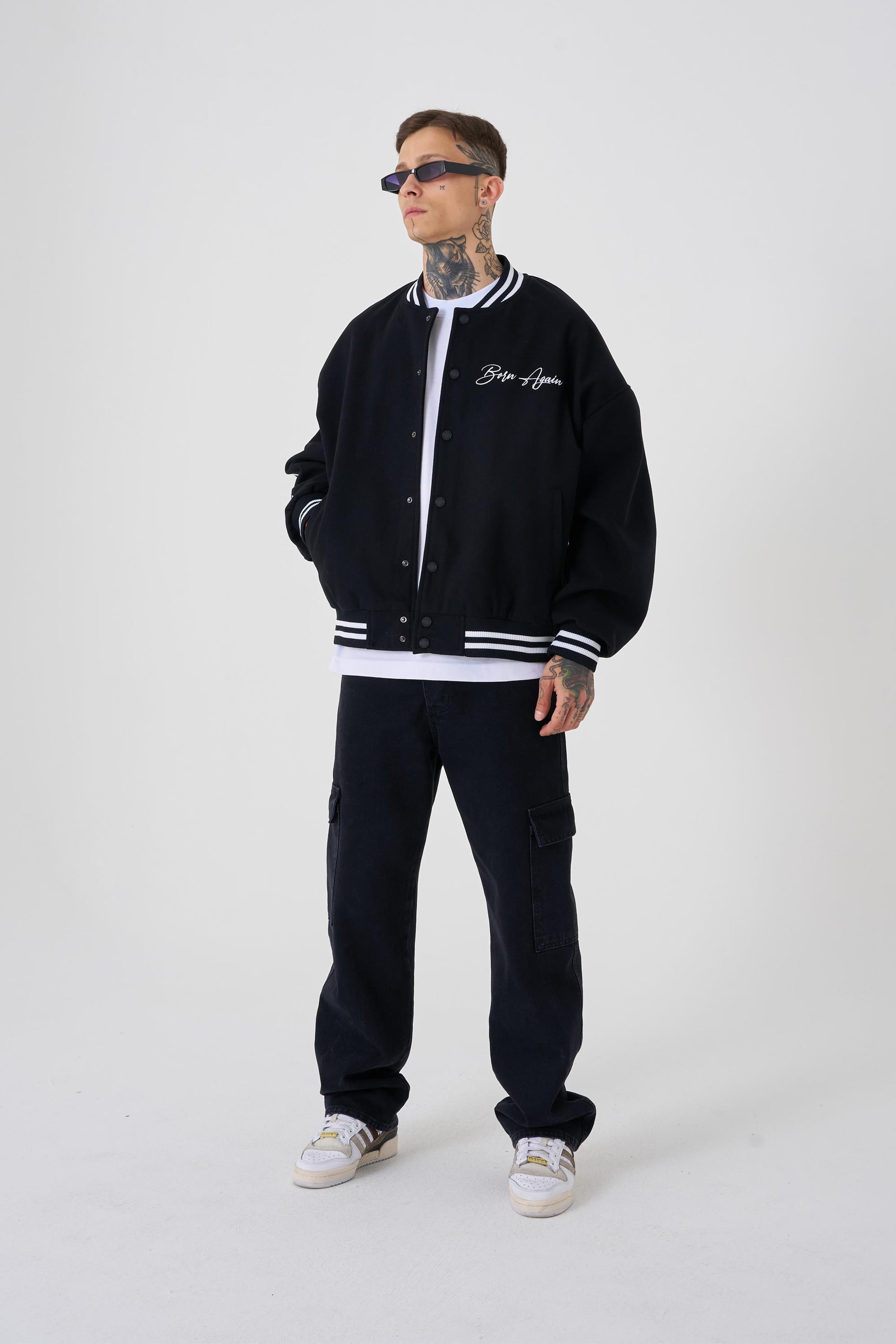 Erkek Born Again Style Oversize Bomber Ceket Siyah