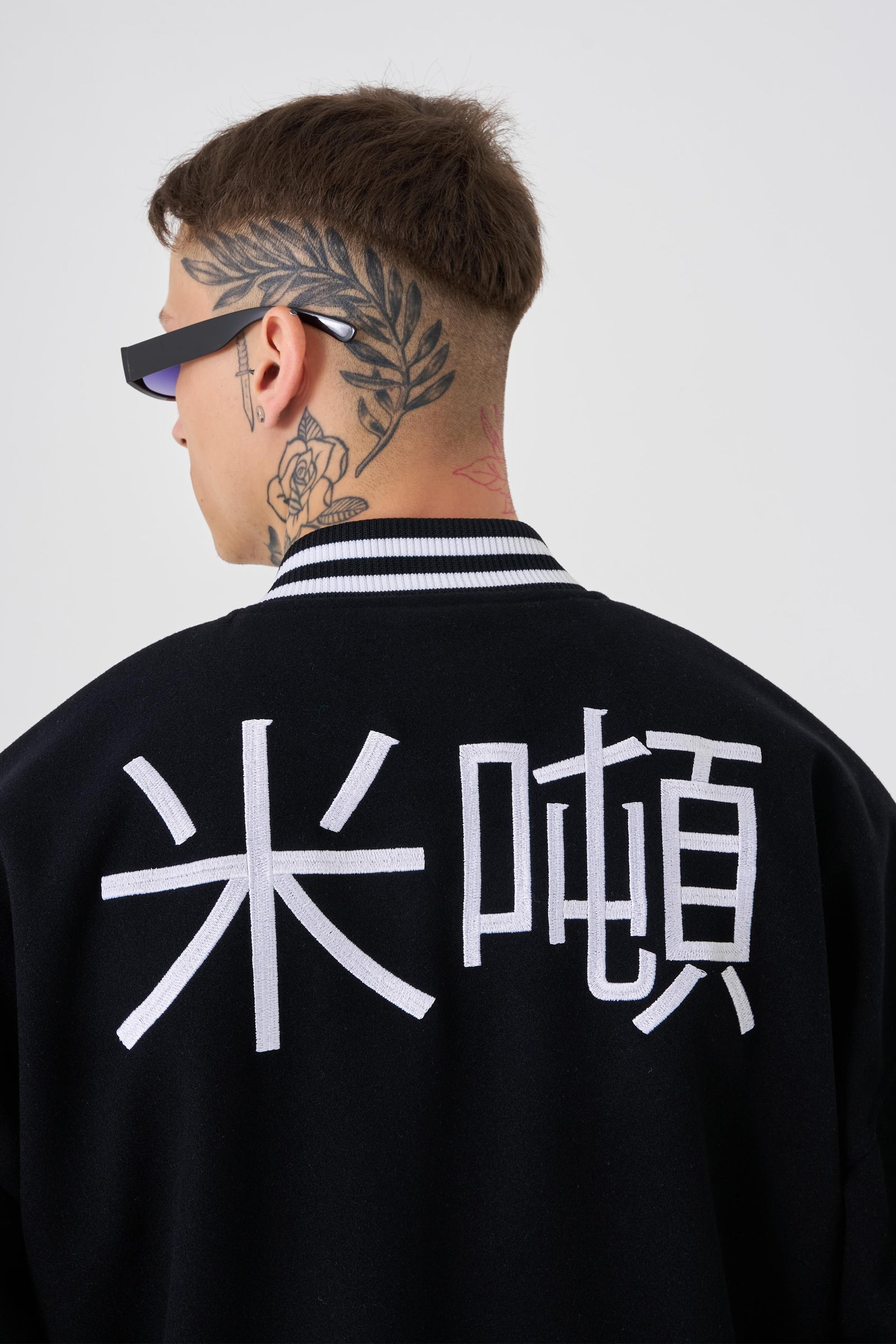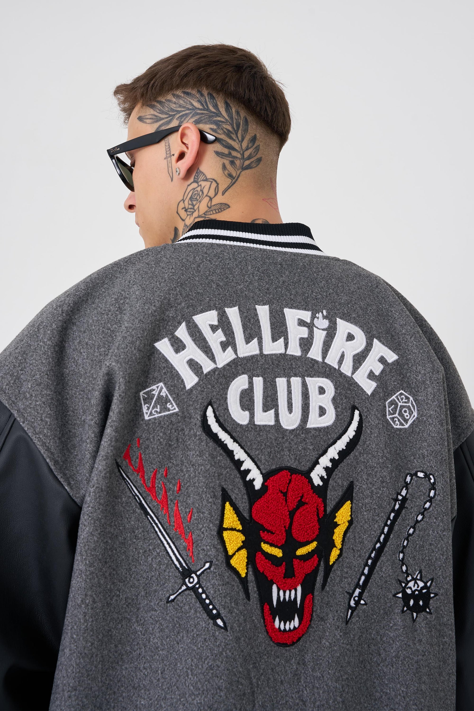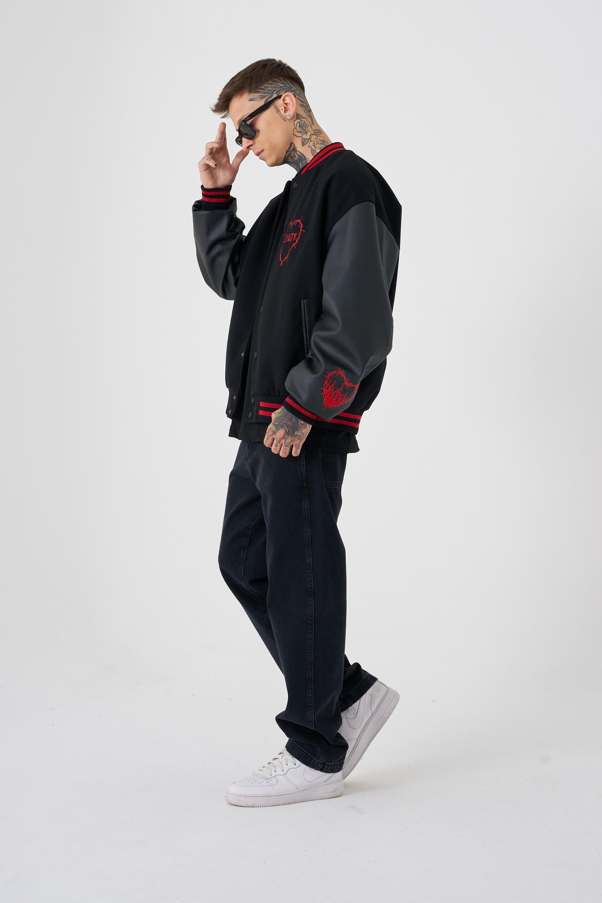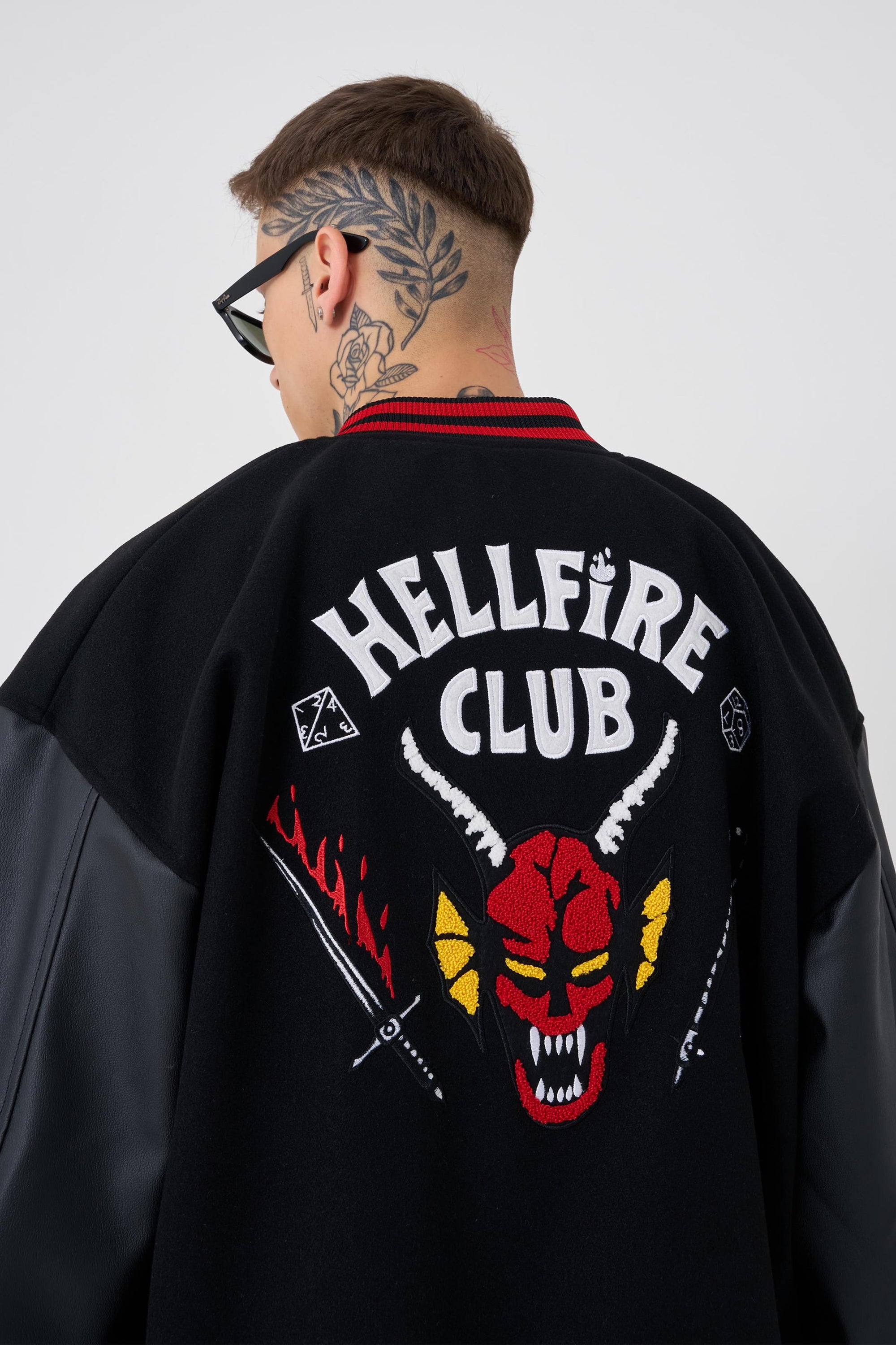 Erkek Hell Fire Club Oversize Bomber Ceket Siyah