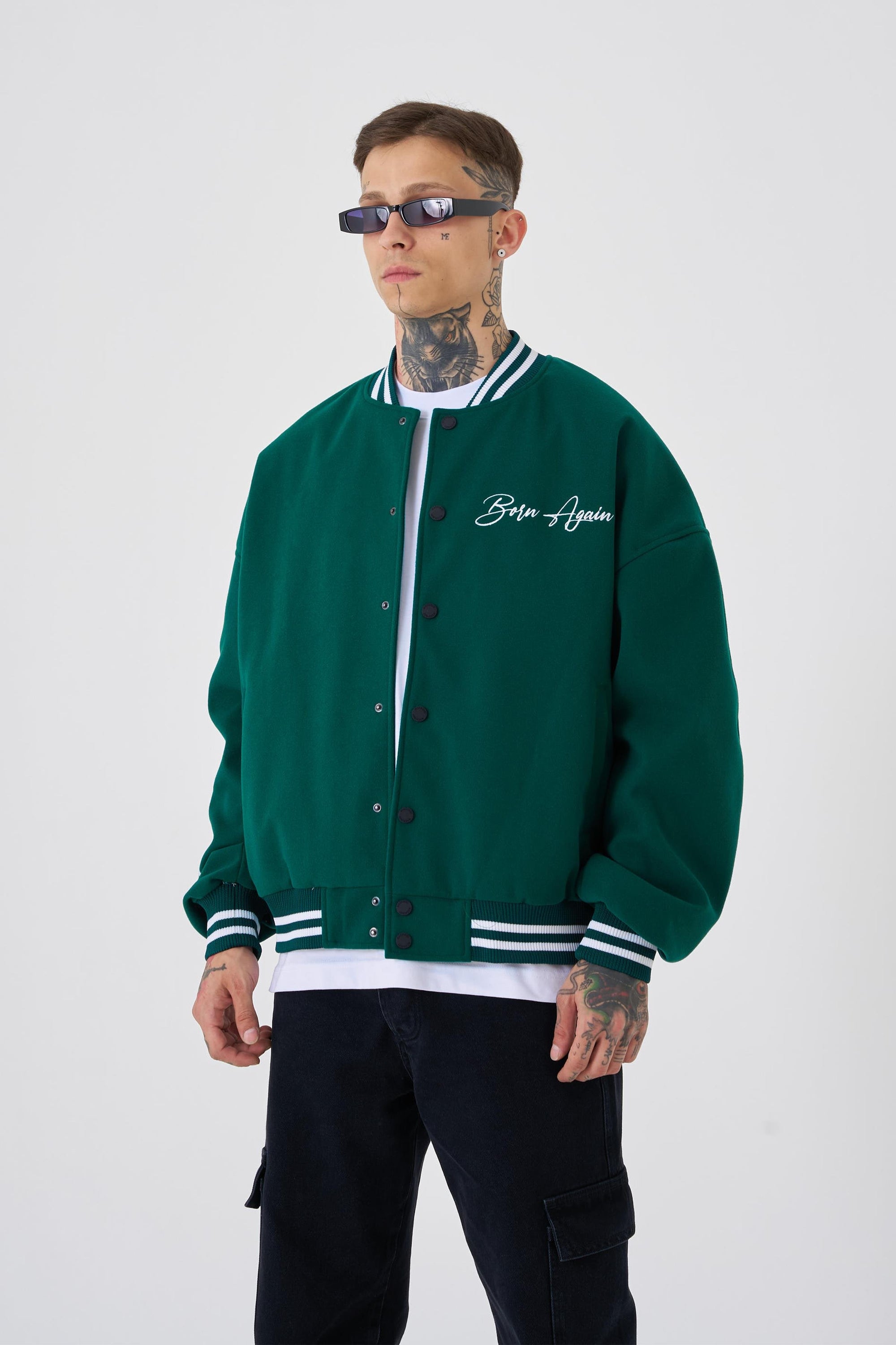 Erkek Born Again Style Oversize Bomber Ceket Yeşil
