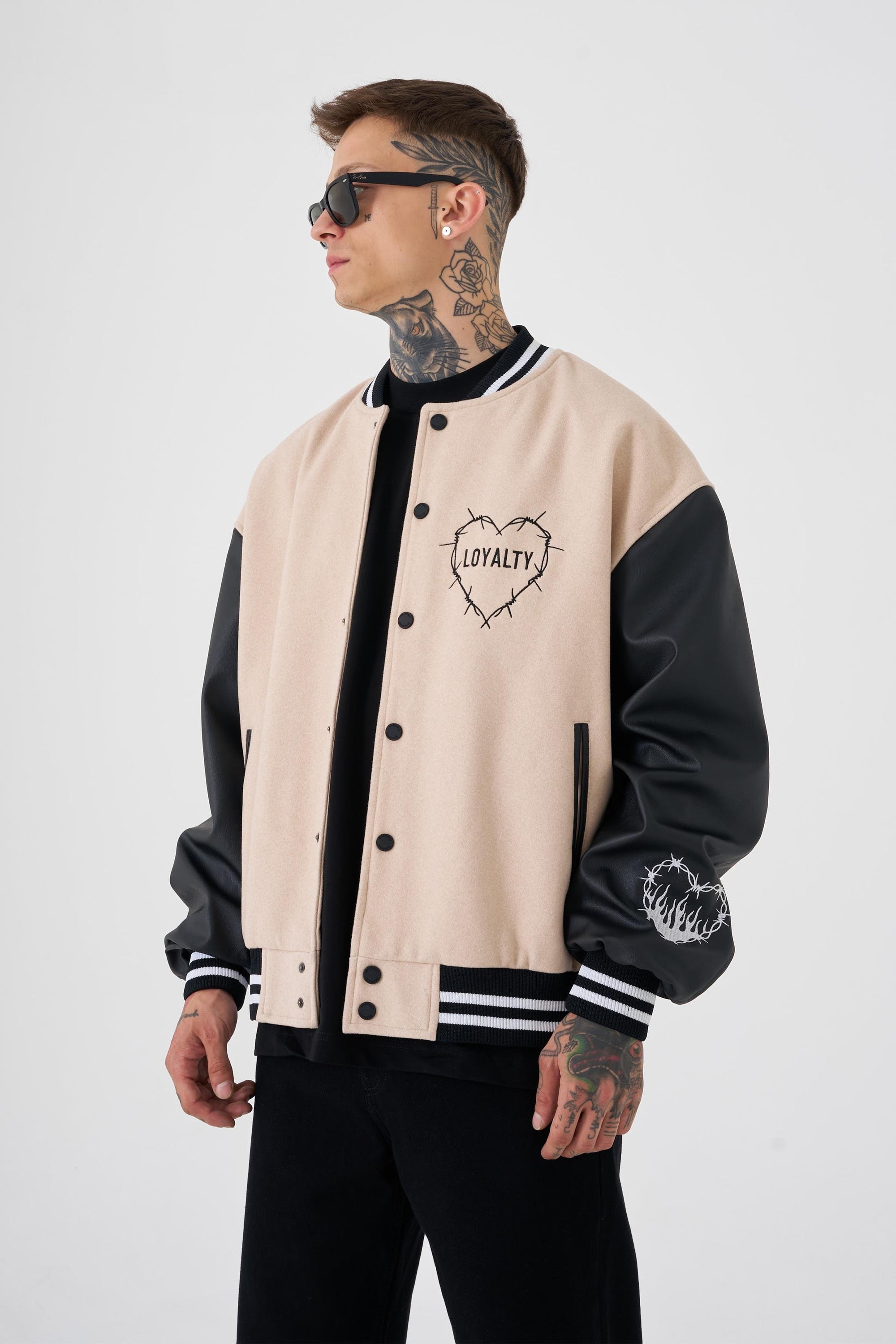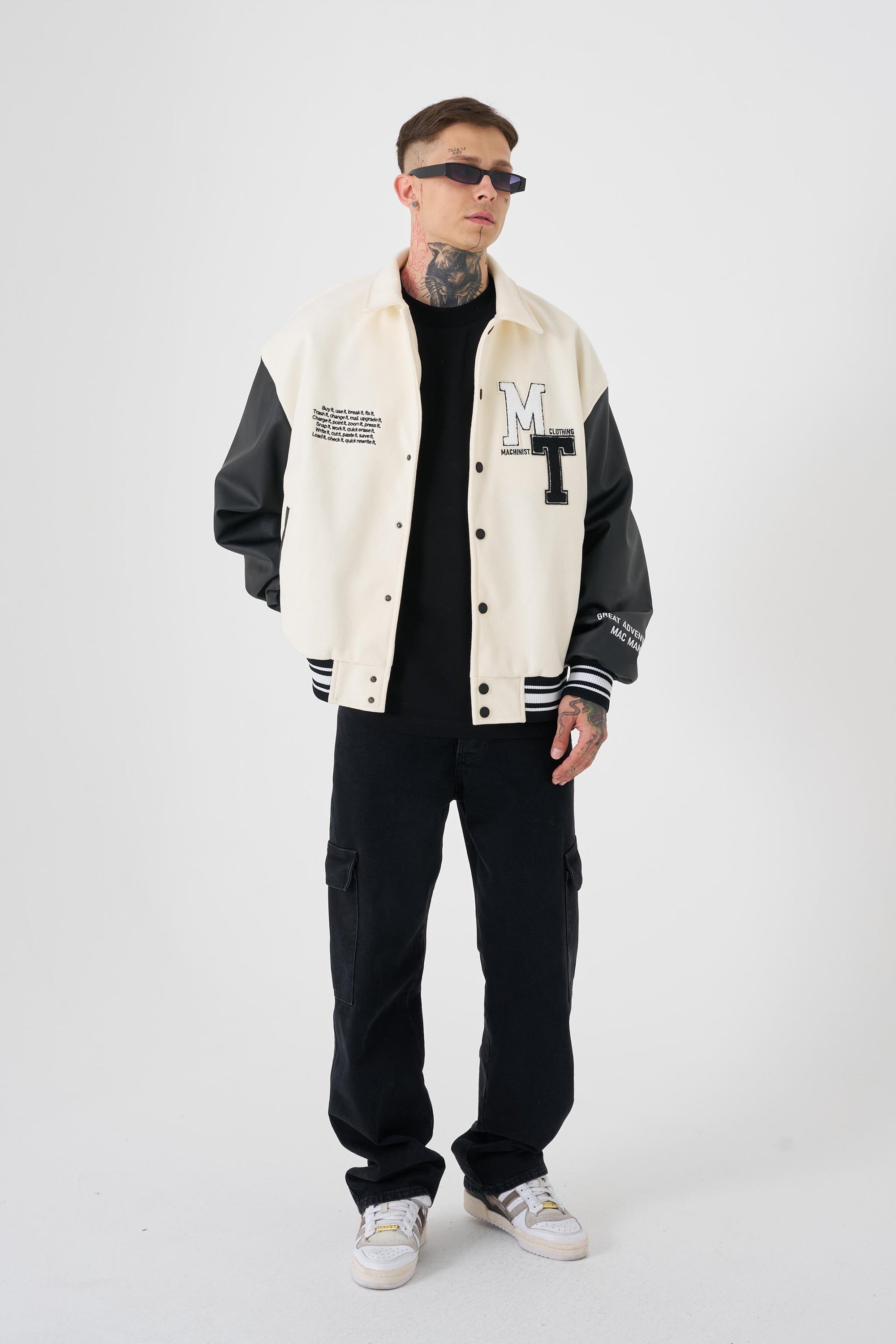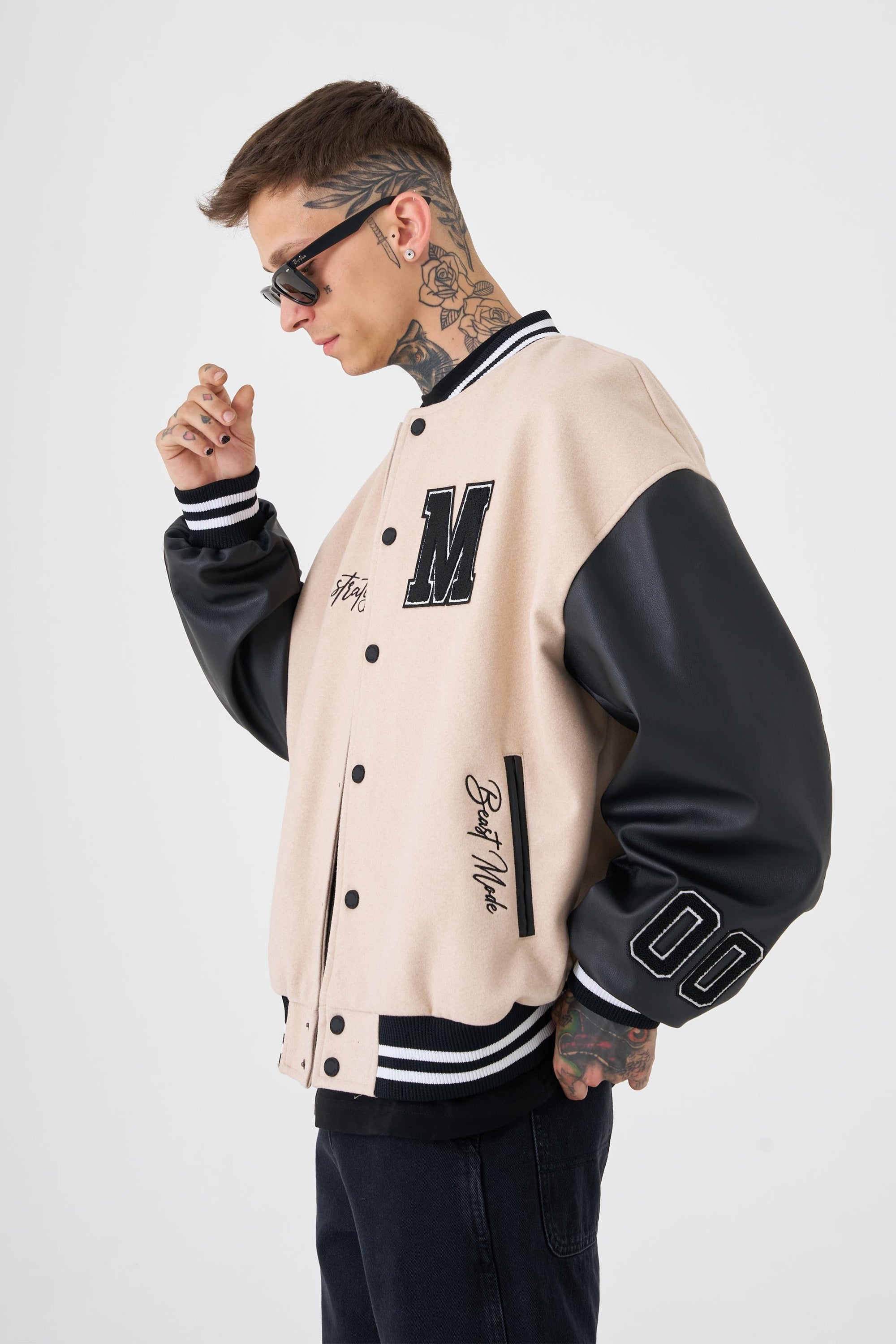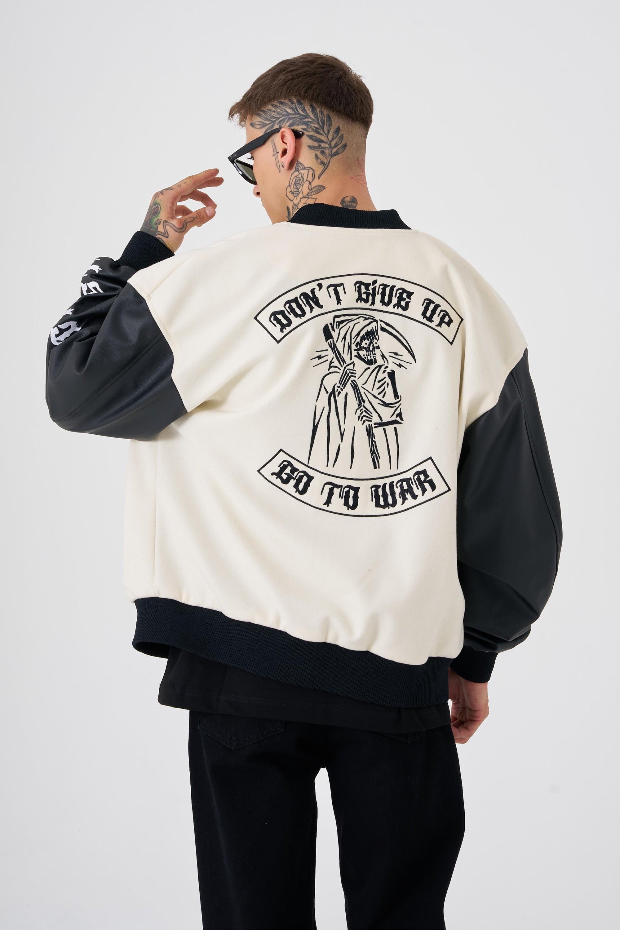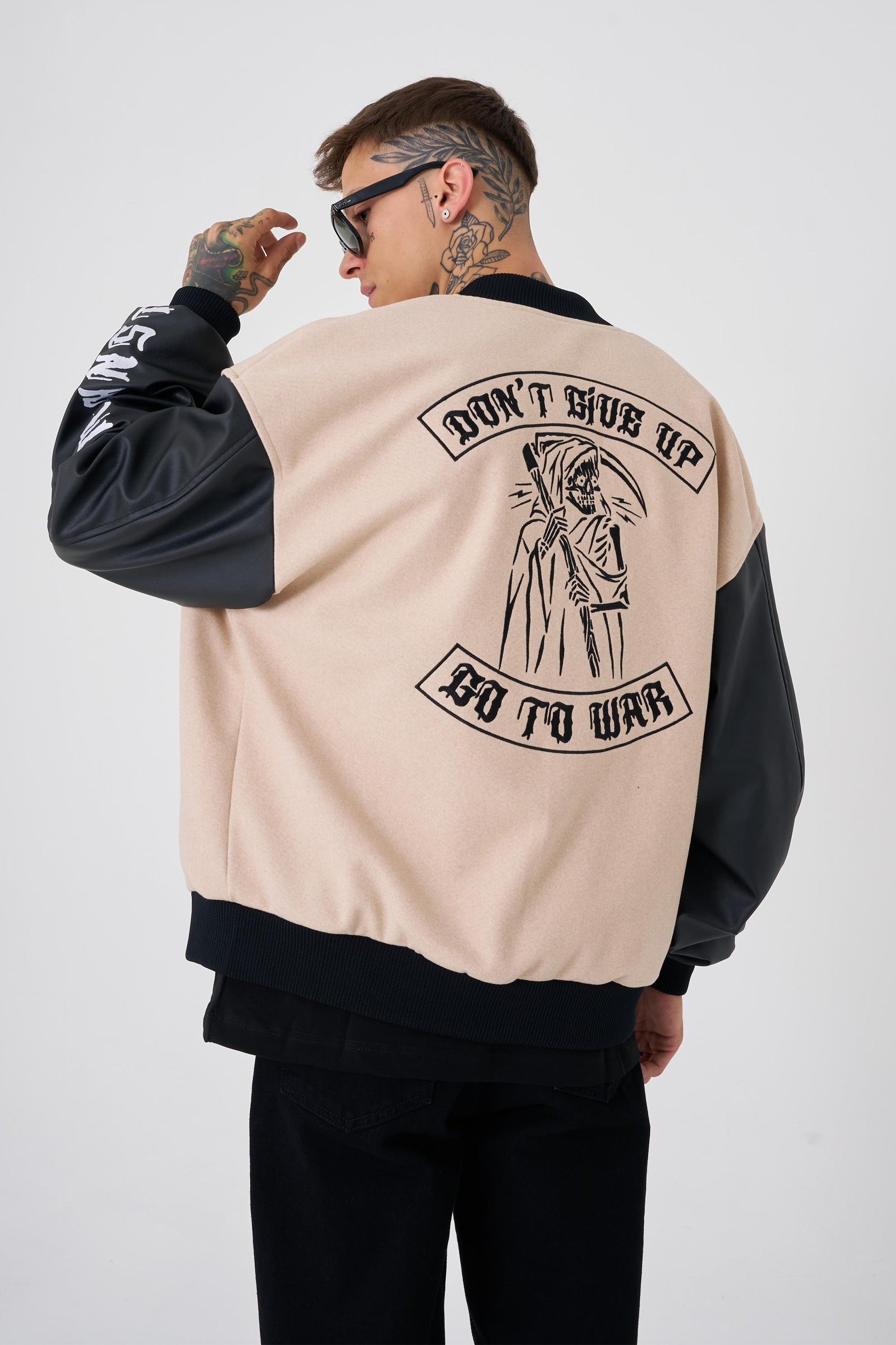 Erkek Go To War Oversize Bomber Ceket Ekru