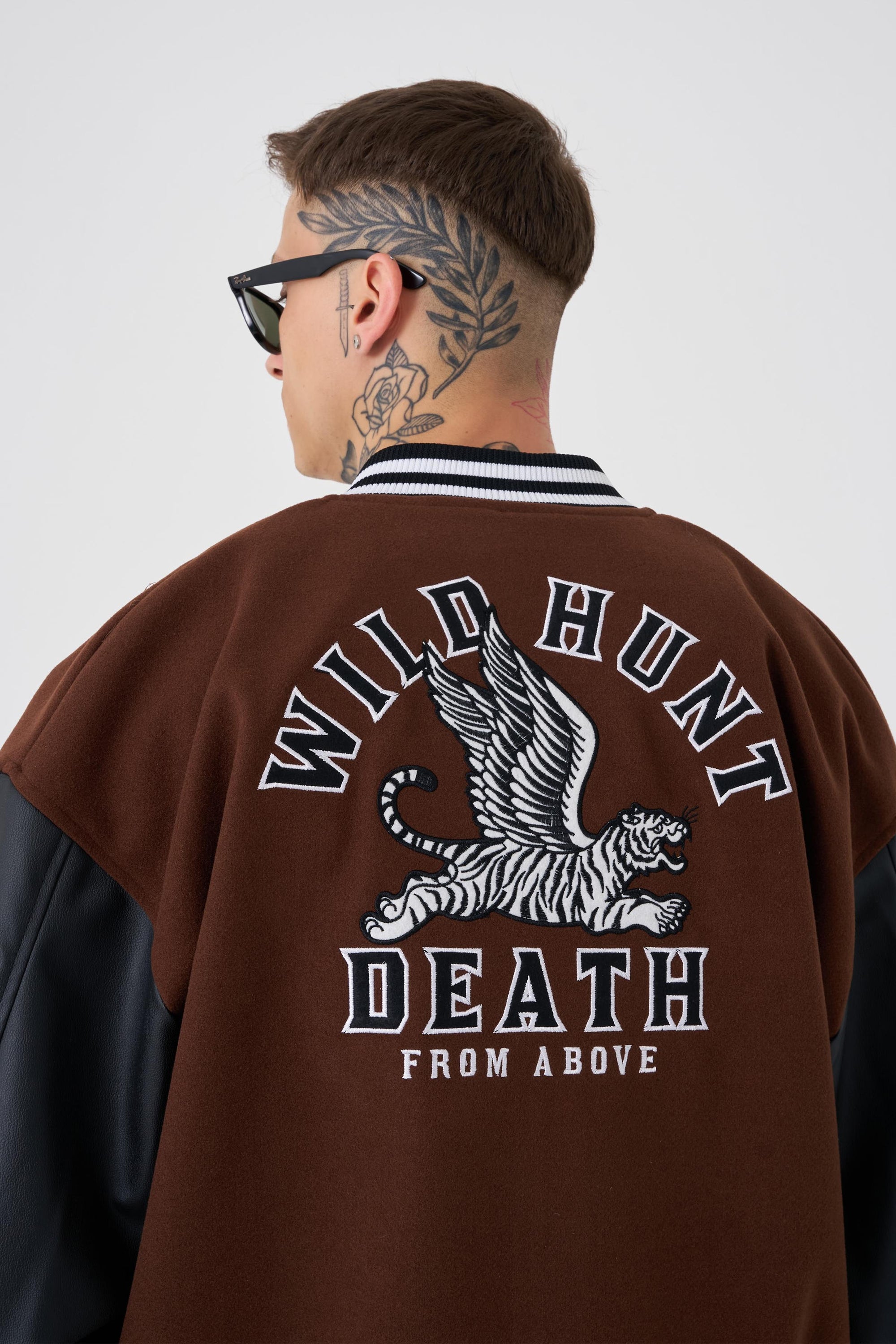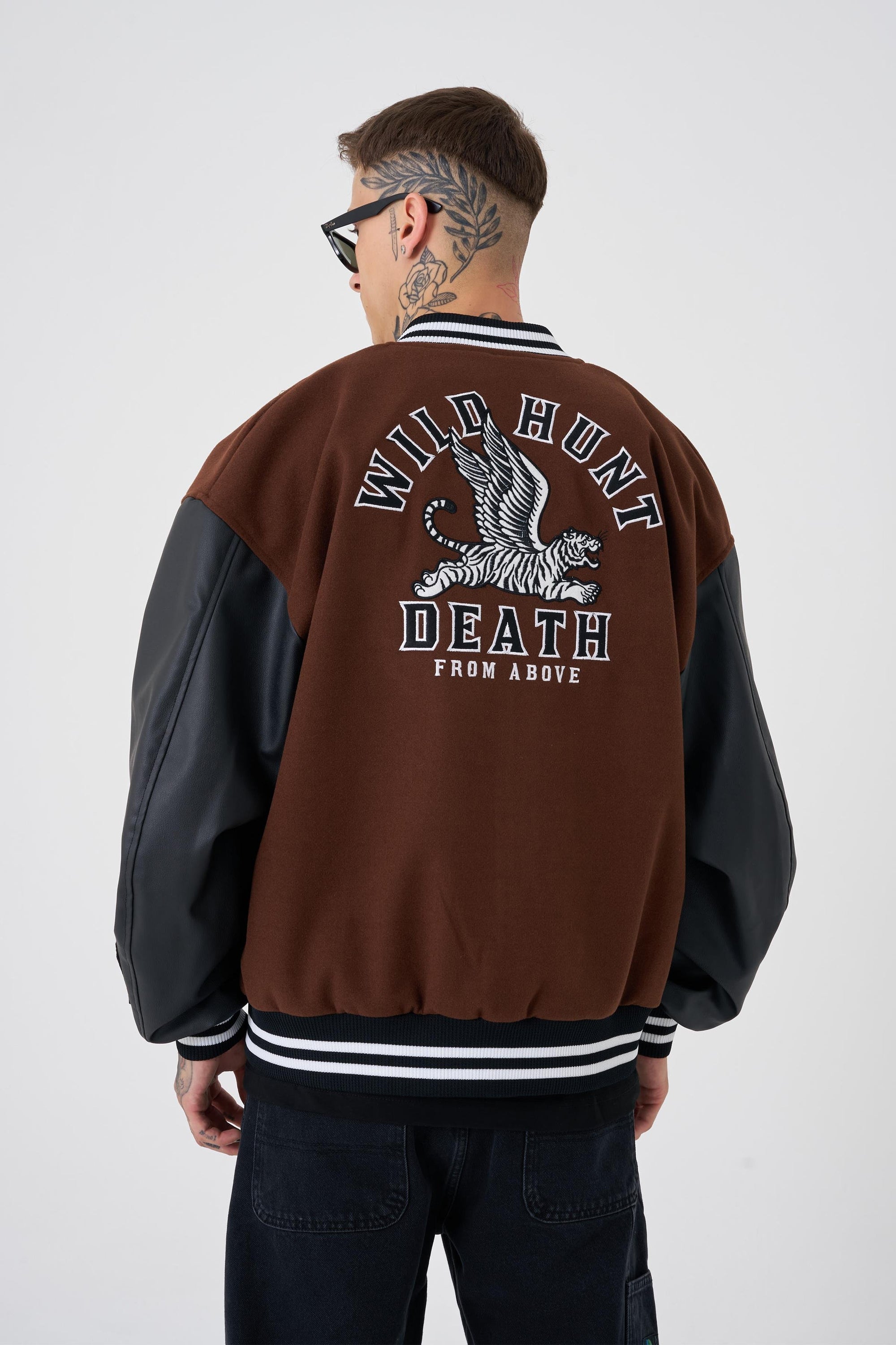 Erkek Wild Hunt Death Oversize Bomber Ceket Kahverengi