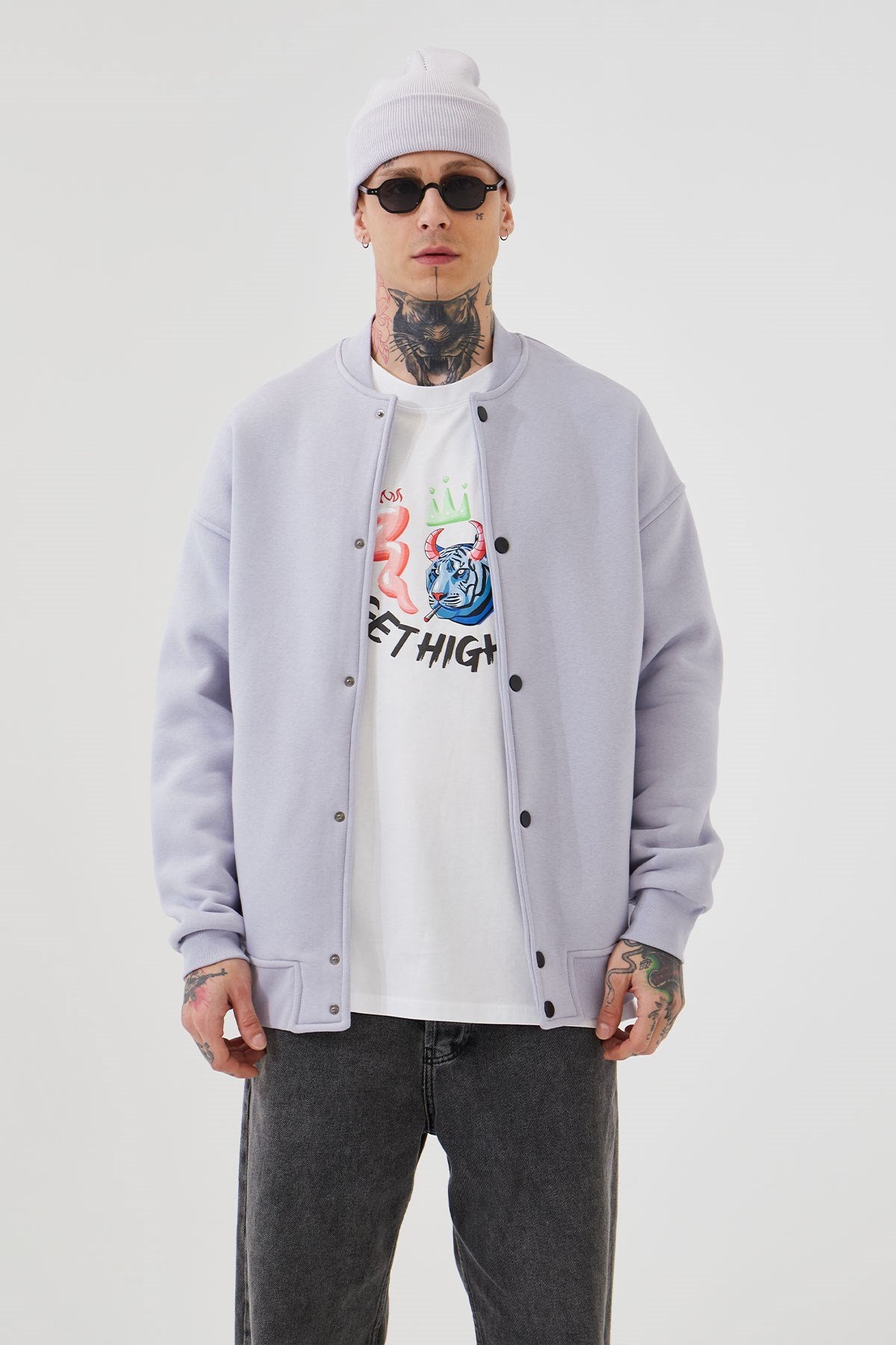 Oversize Çıtçıtlı Kolej Mont Açık Lila