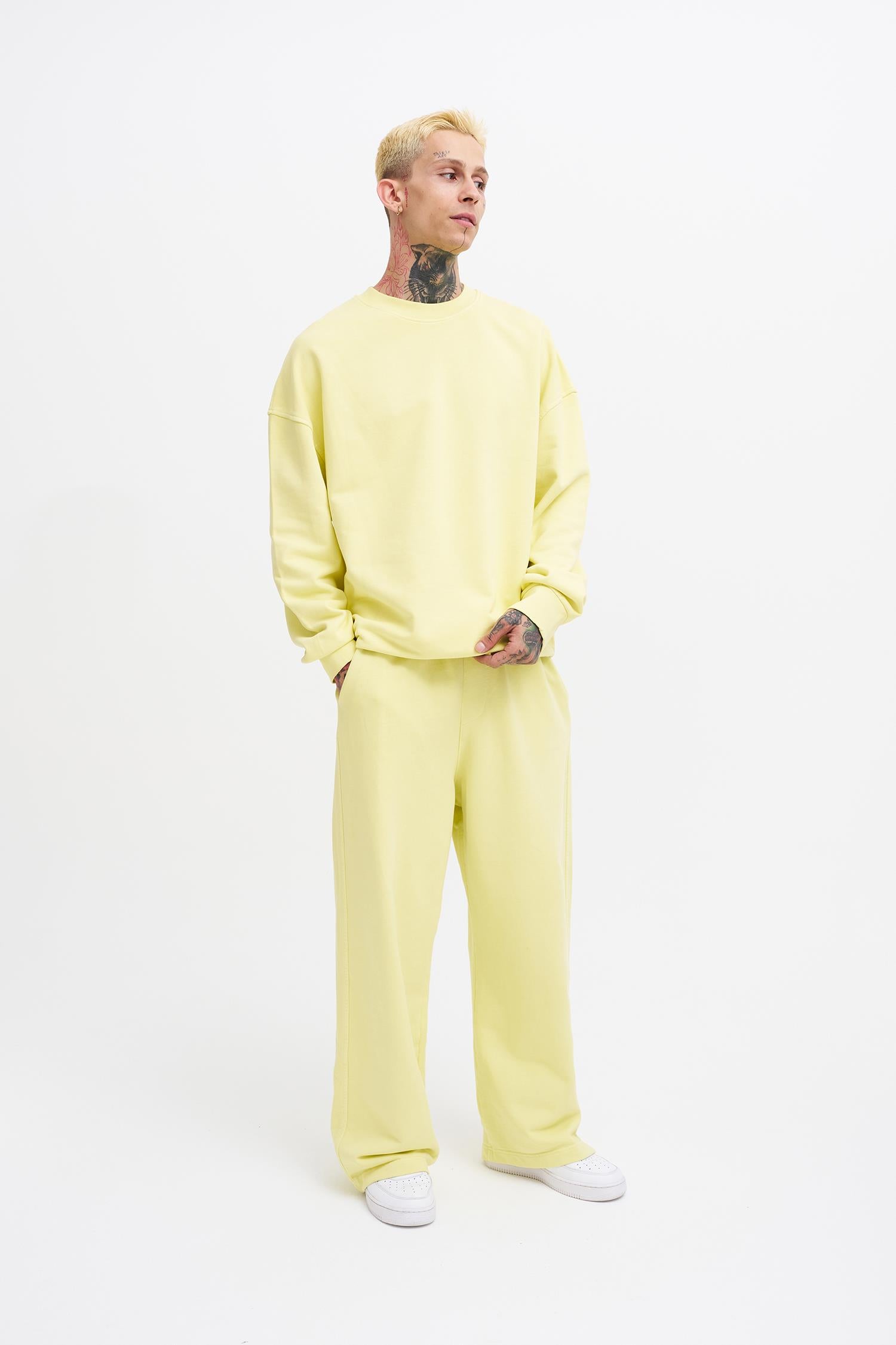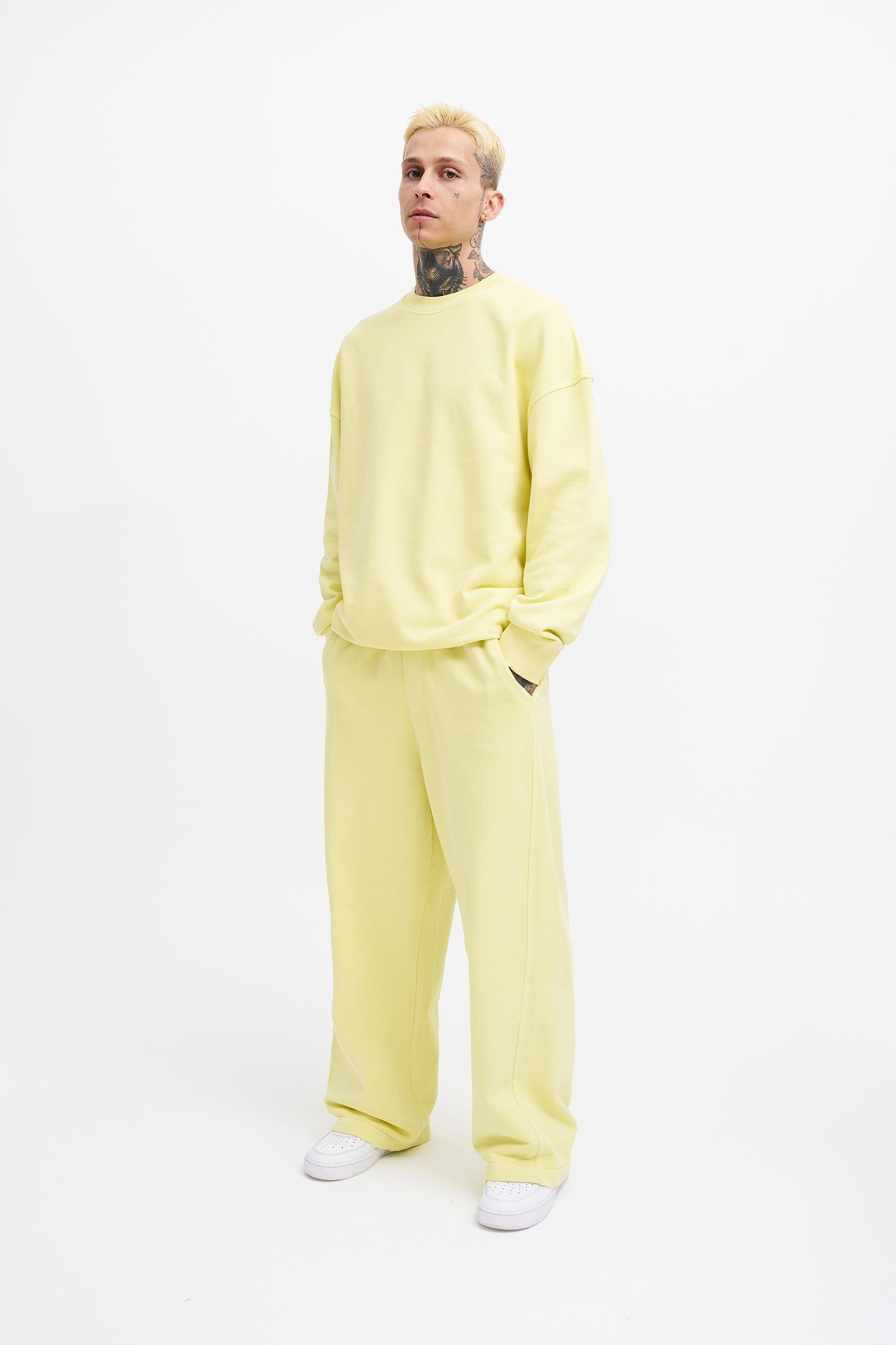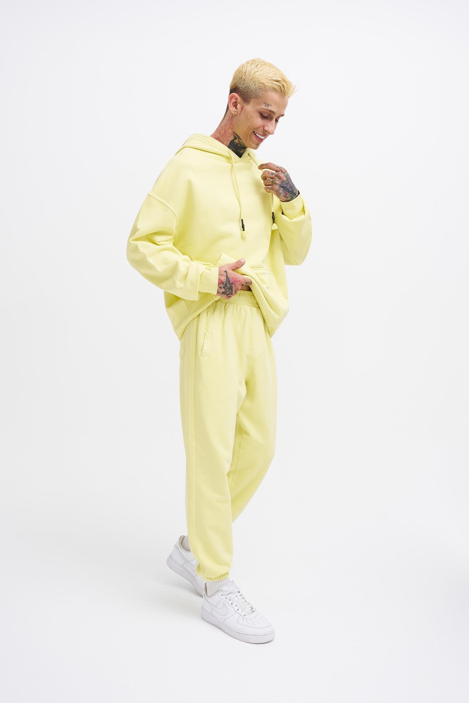 Erkek Yıkamalı Basic Baggy Eşofman Altı Açık Sarı