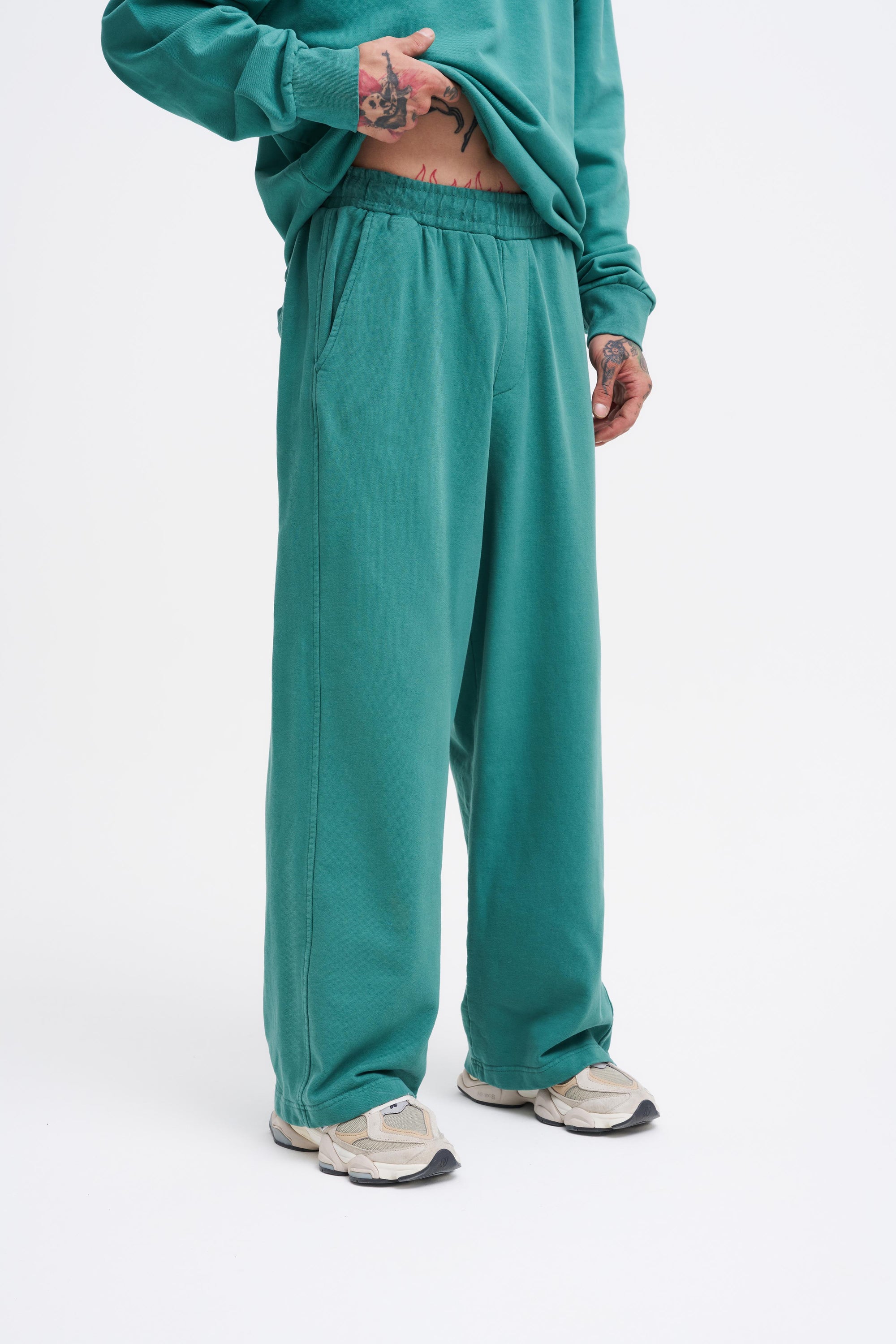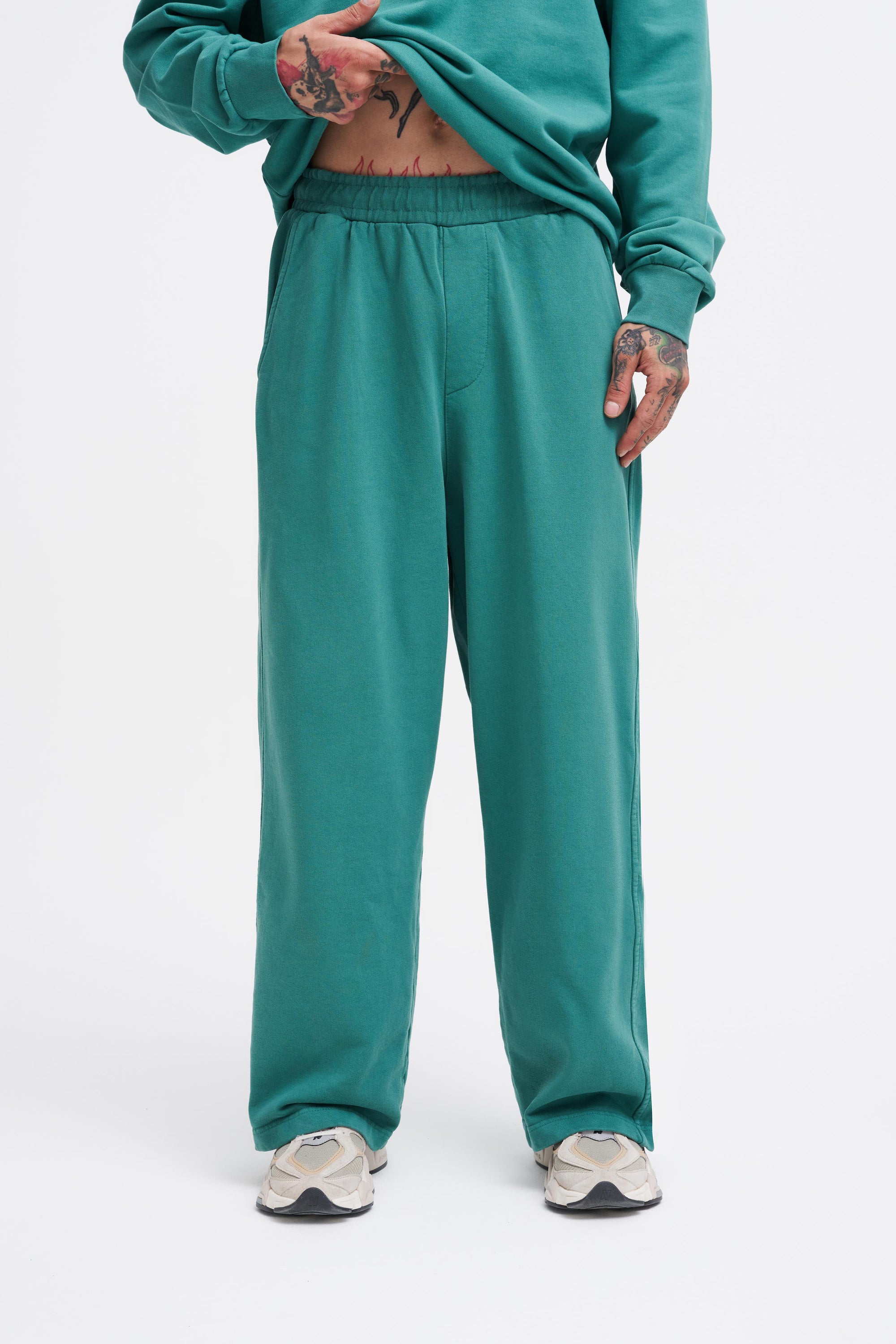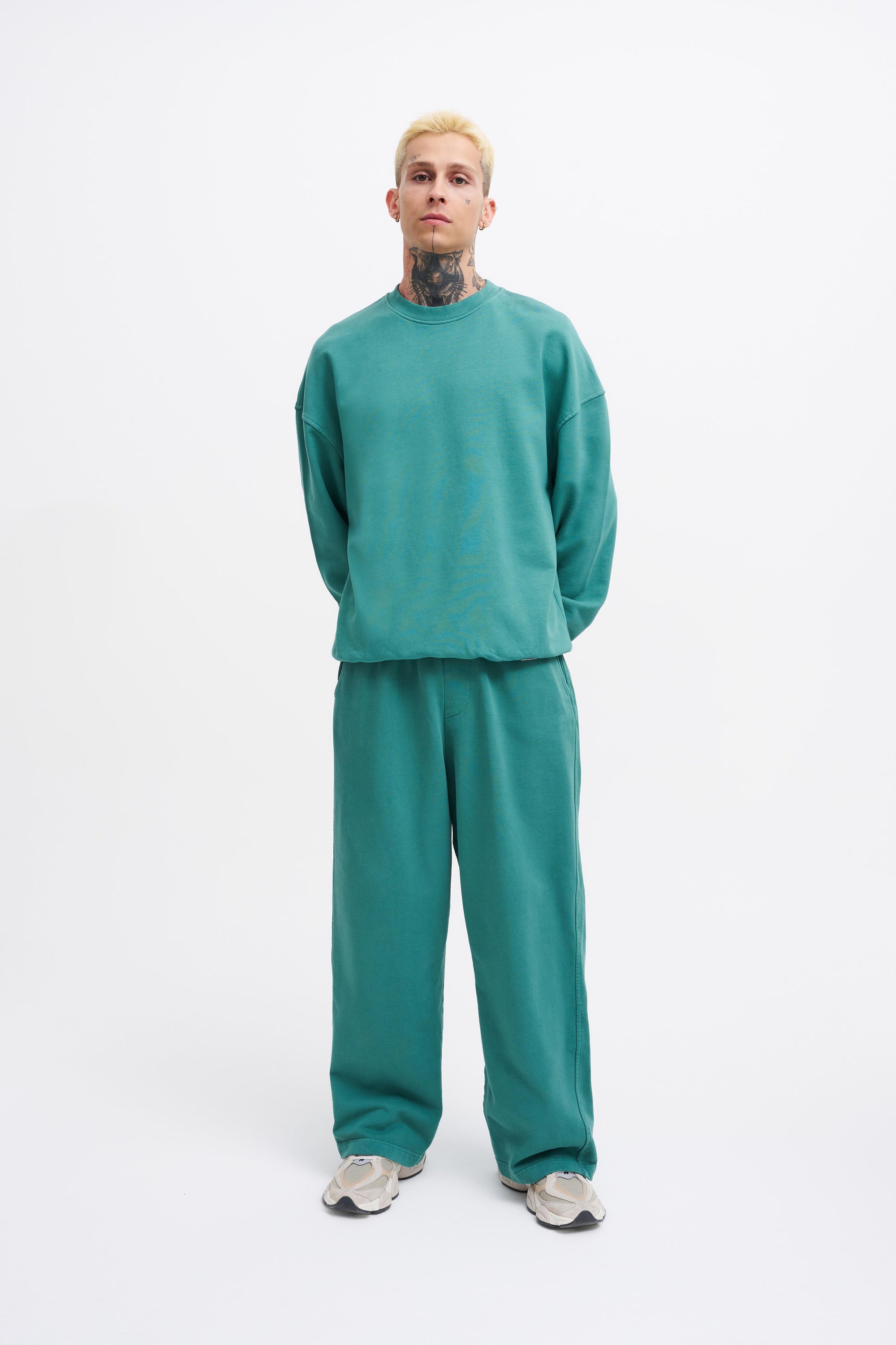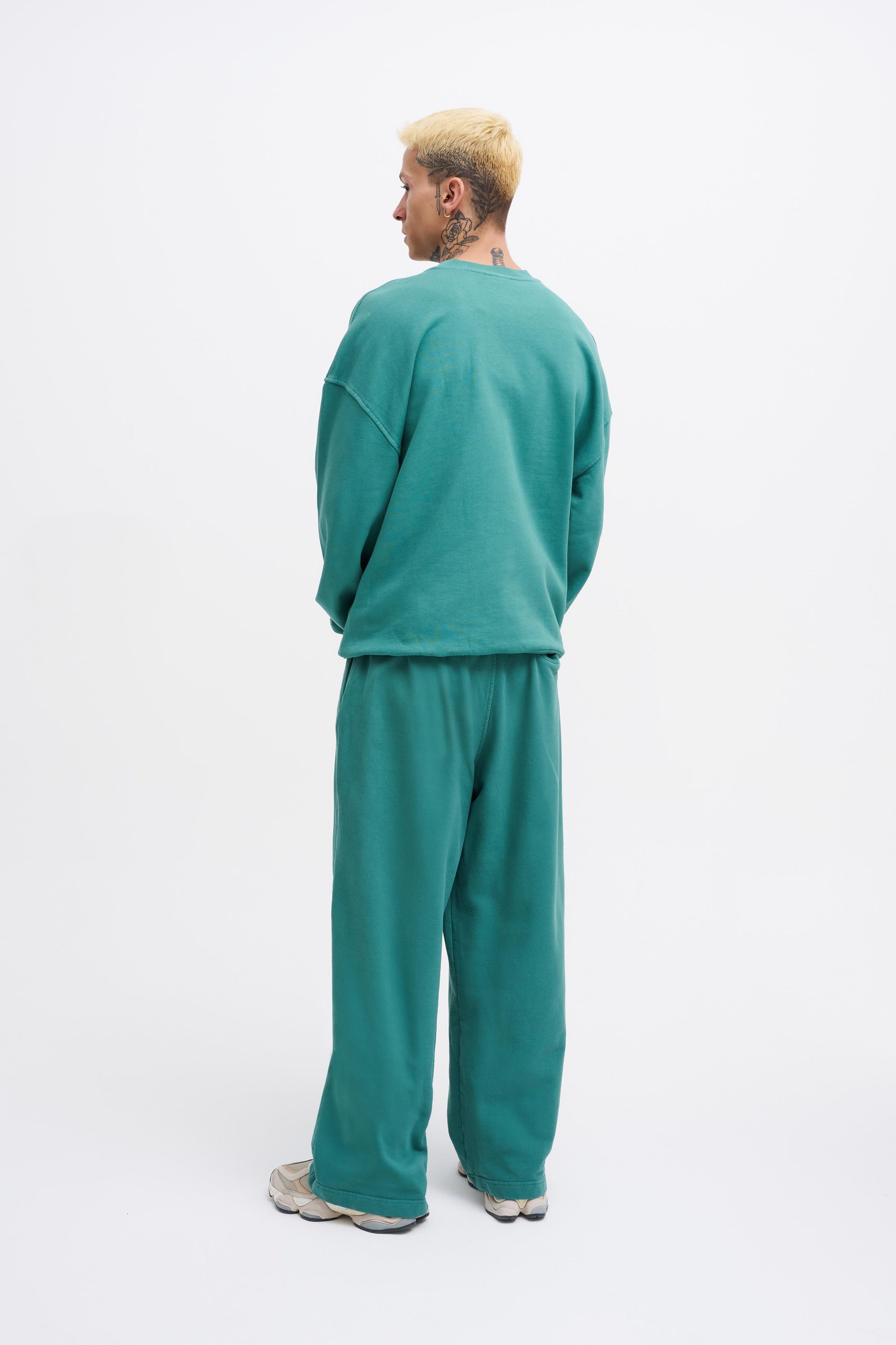 Erkek Yıkamalı Basic Baggy Eşofman Altı Yağ Yeşili