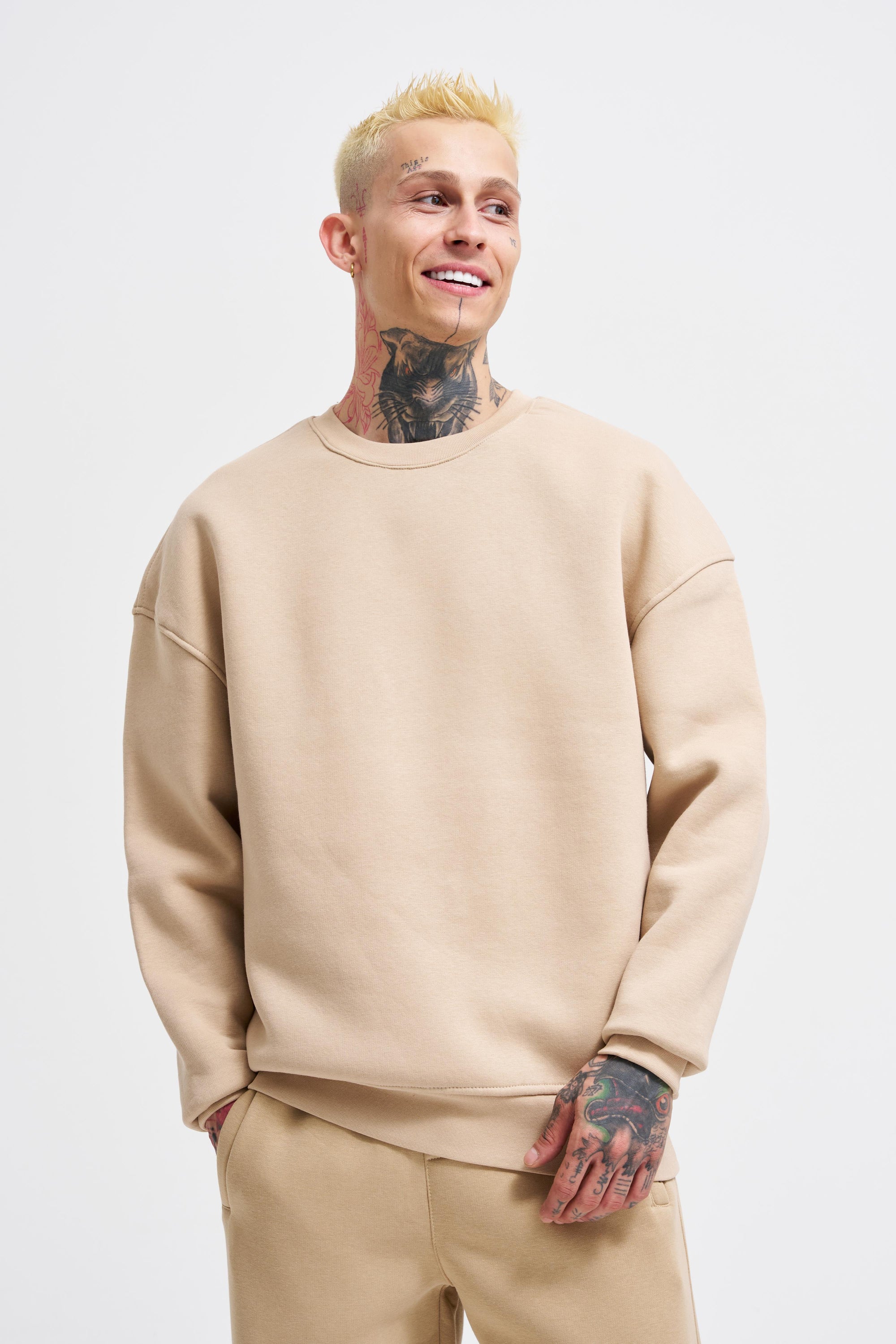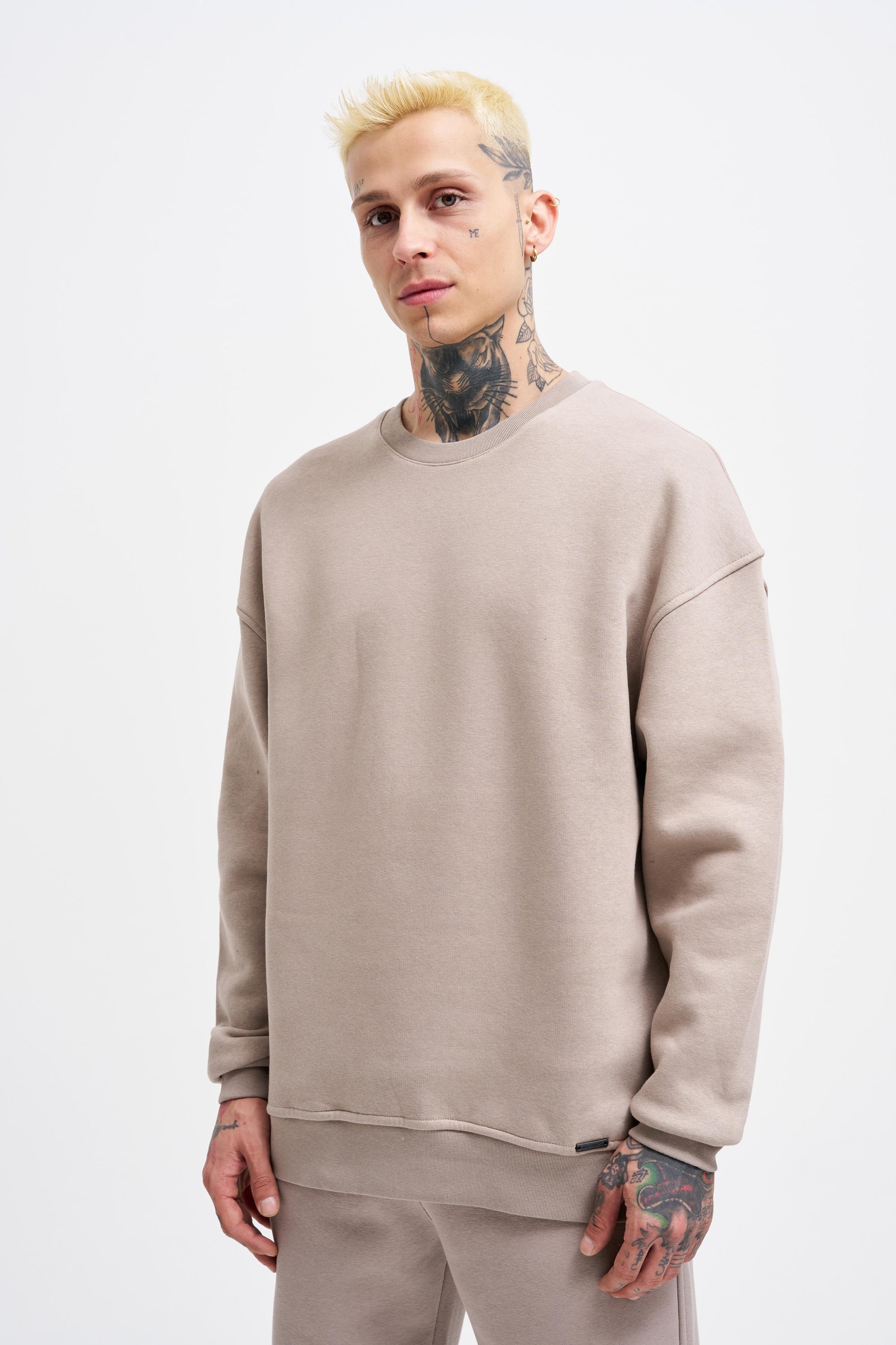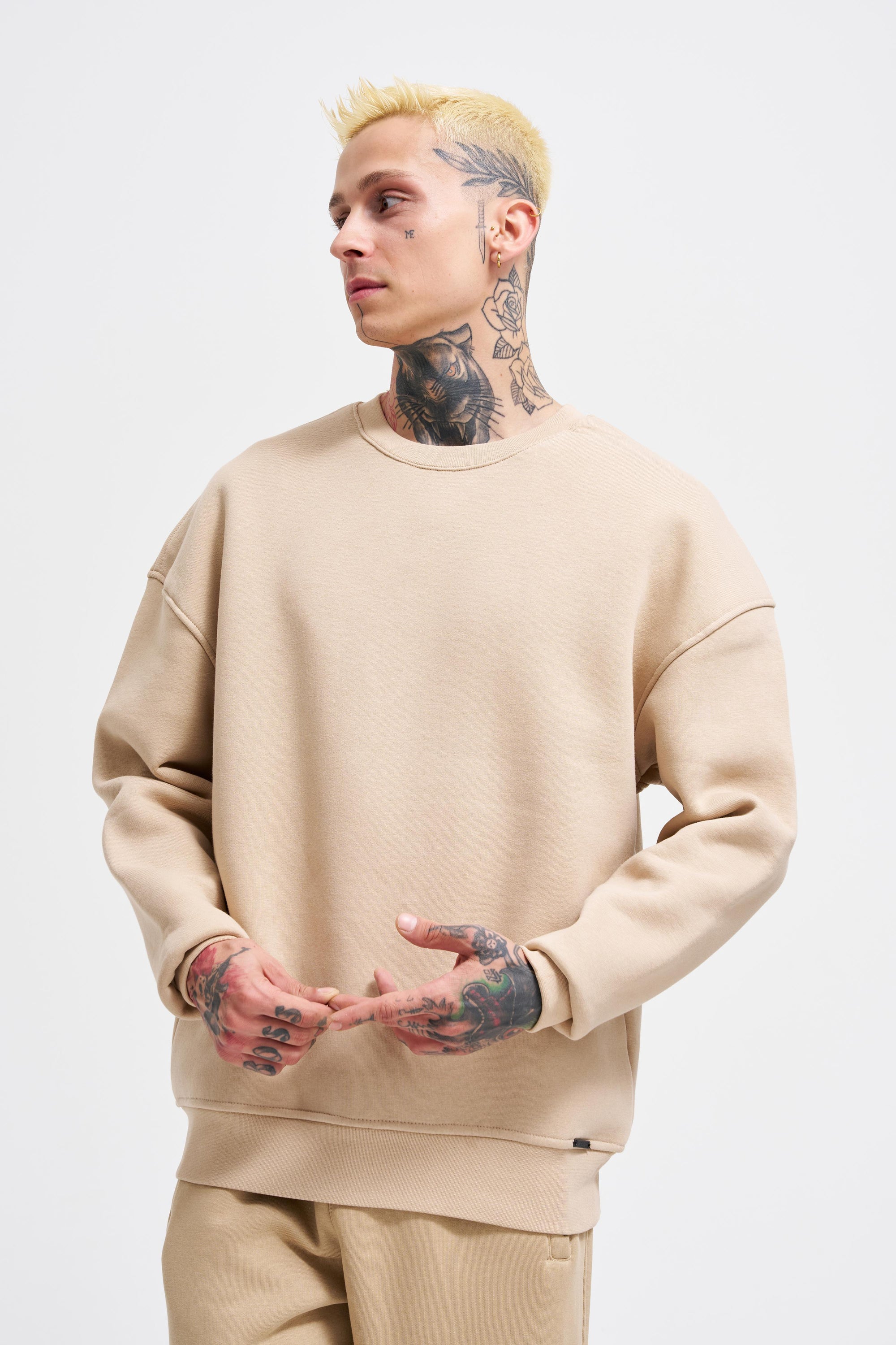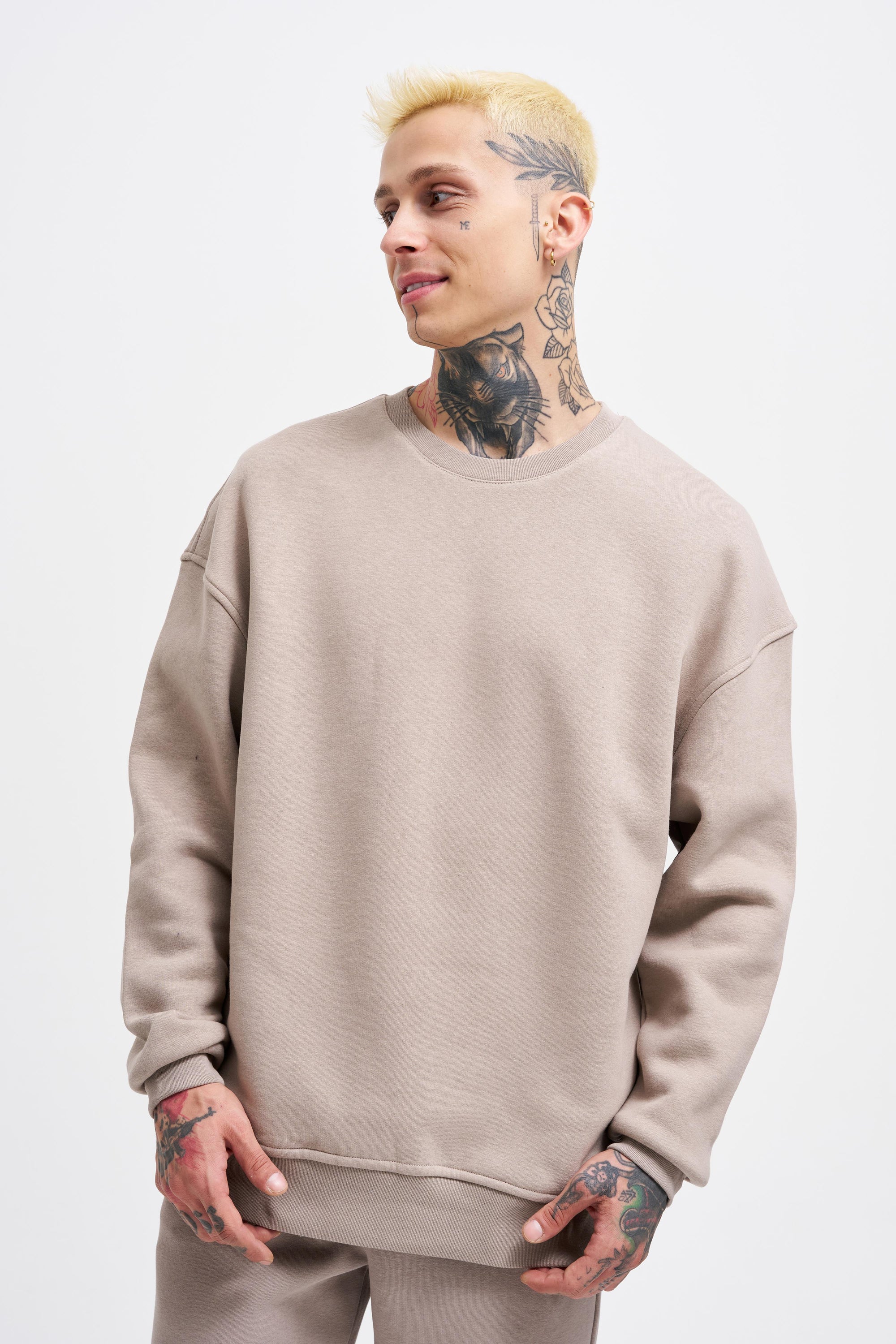 Erkek Basic Bisiklet Yaka Oversize Sweatshirt Açık Bej
