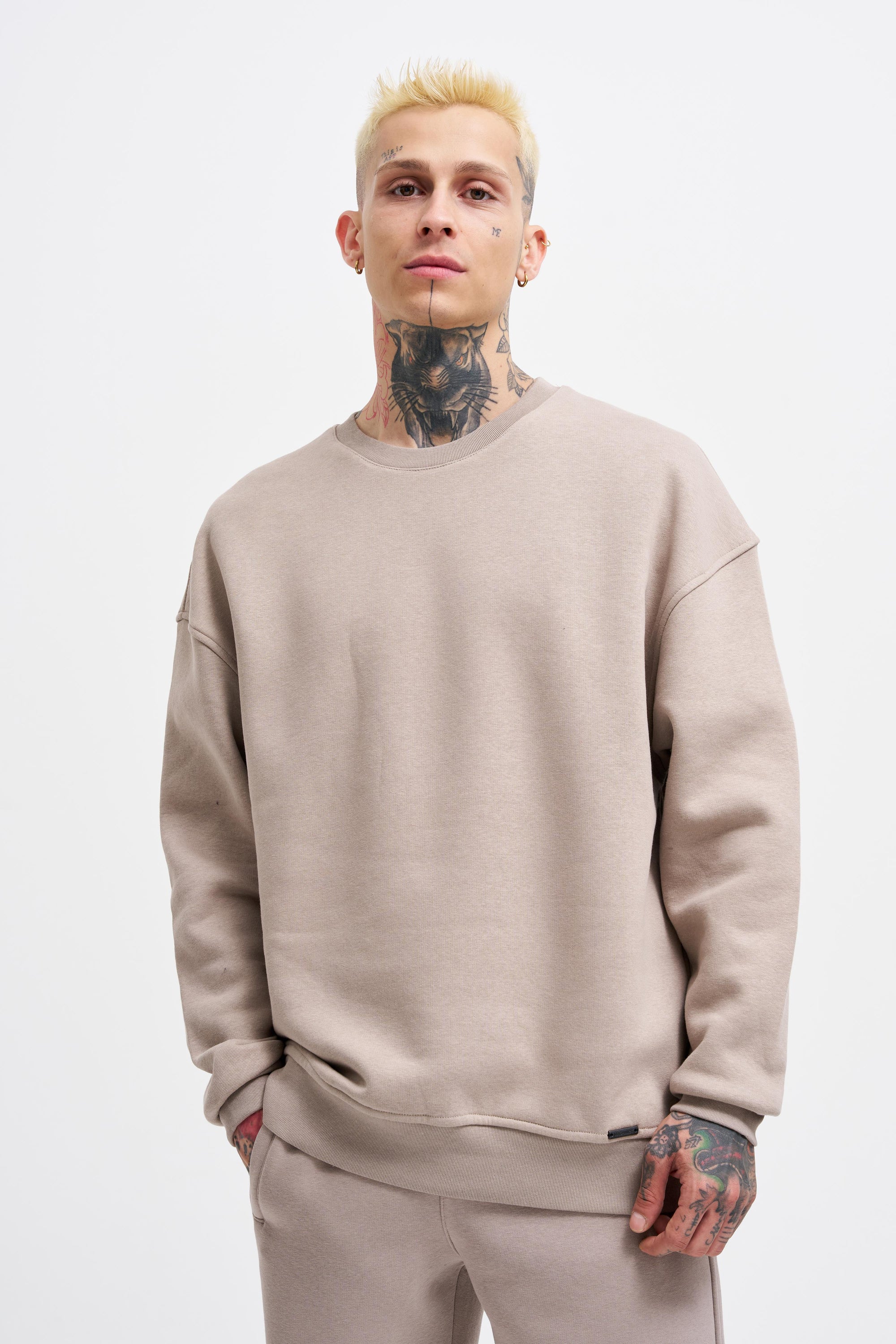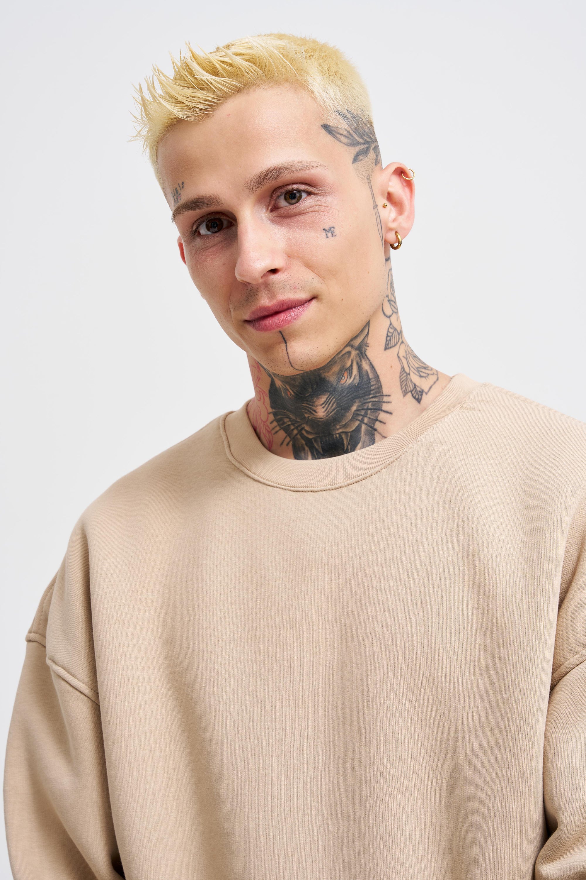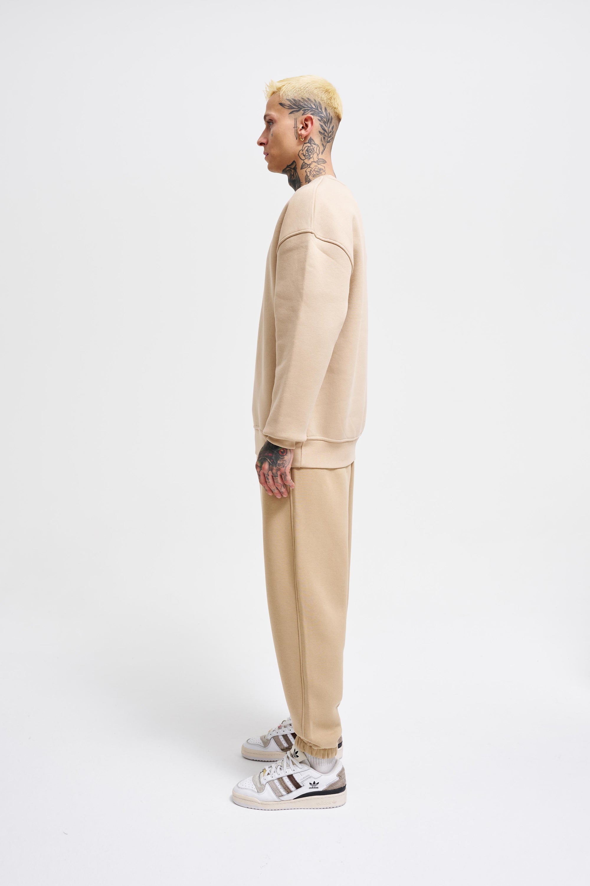 Erkek Basic Bisiklet Yaka Oversize Sweatshirt Açık Bej