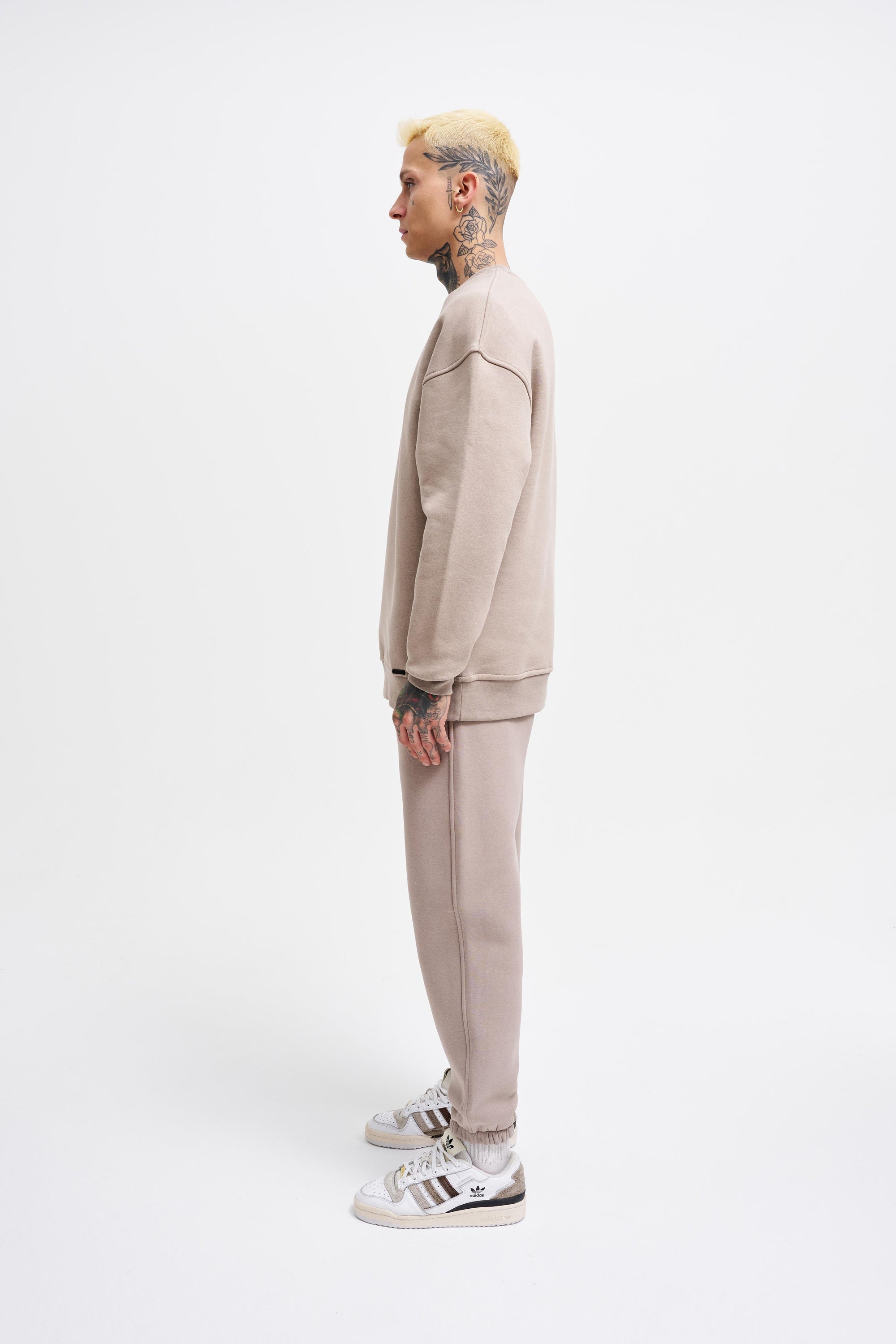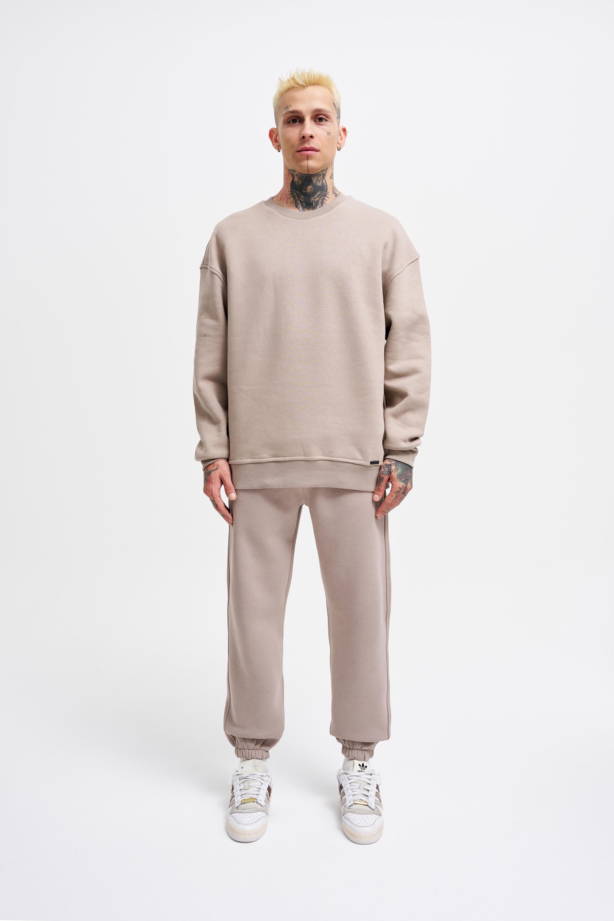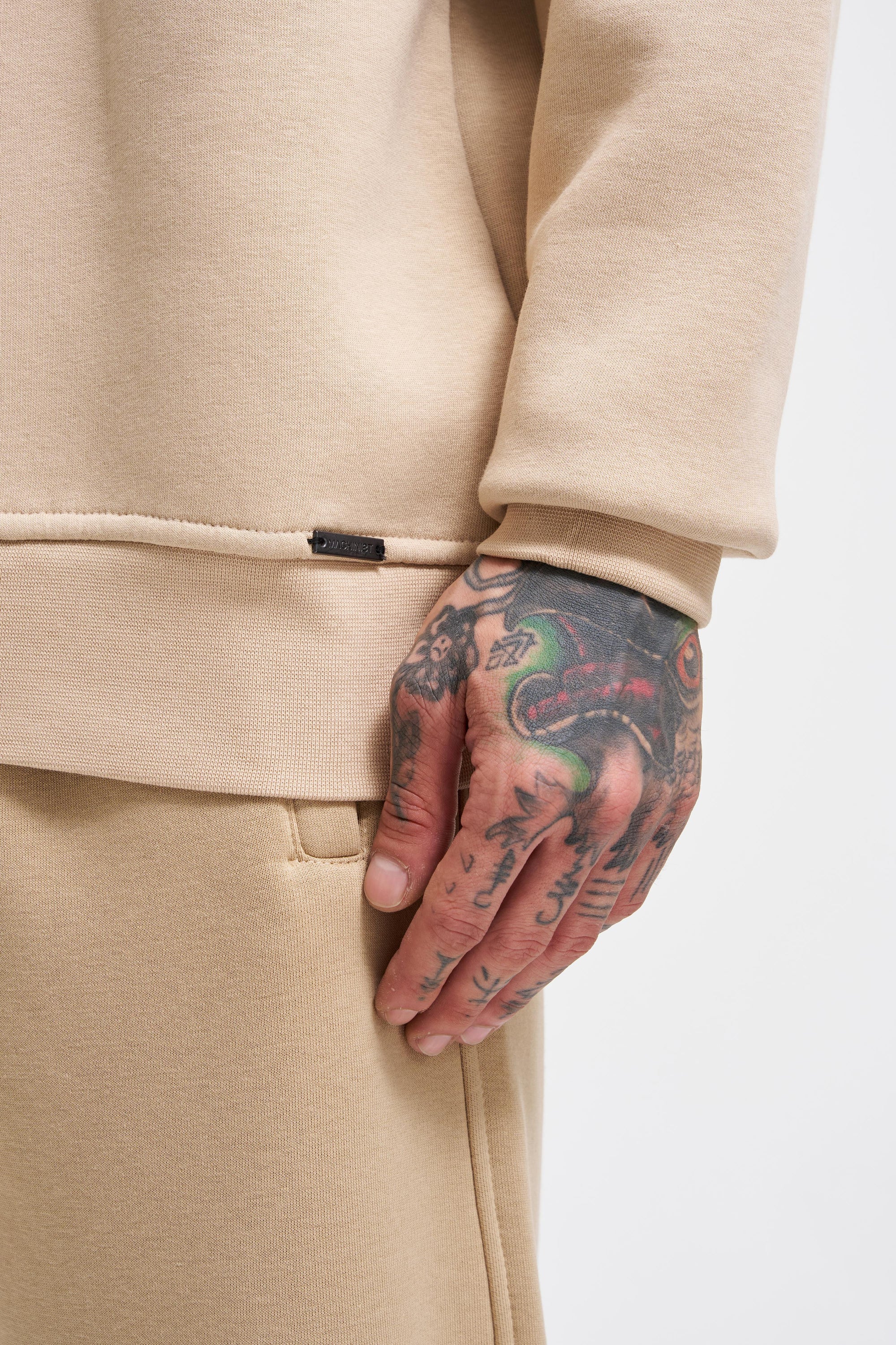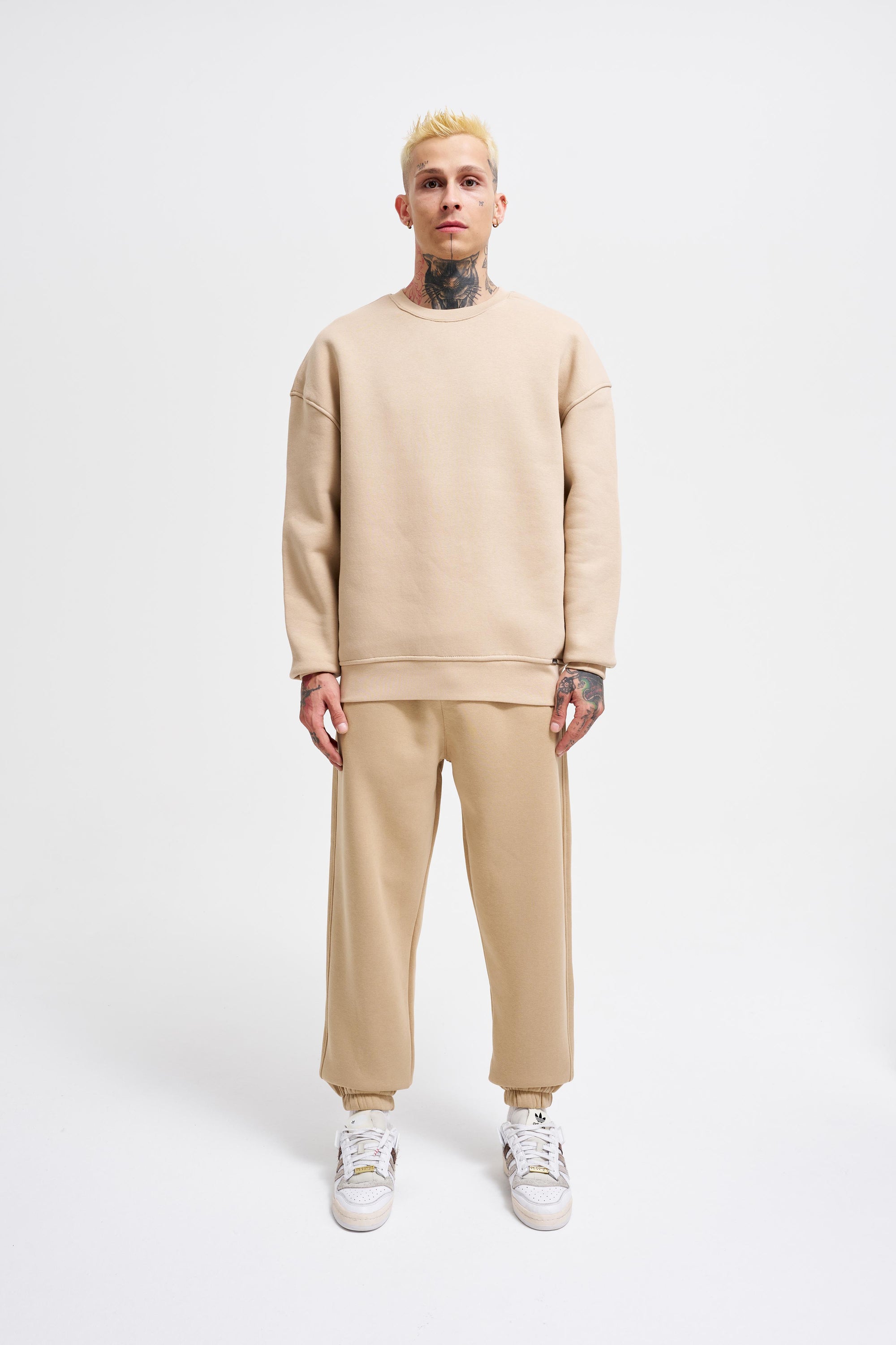 Erkek Basic Bisiklet Yaka Oversize Sweatshirt Açık Bej