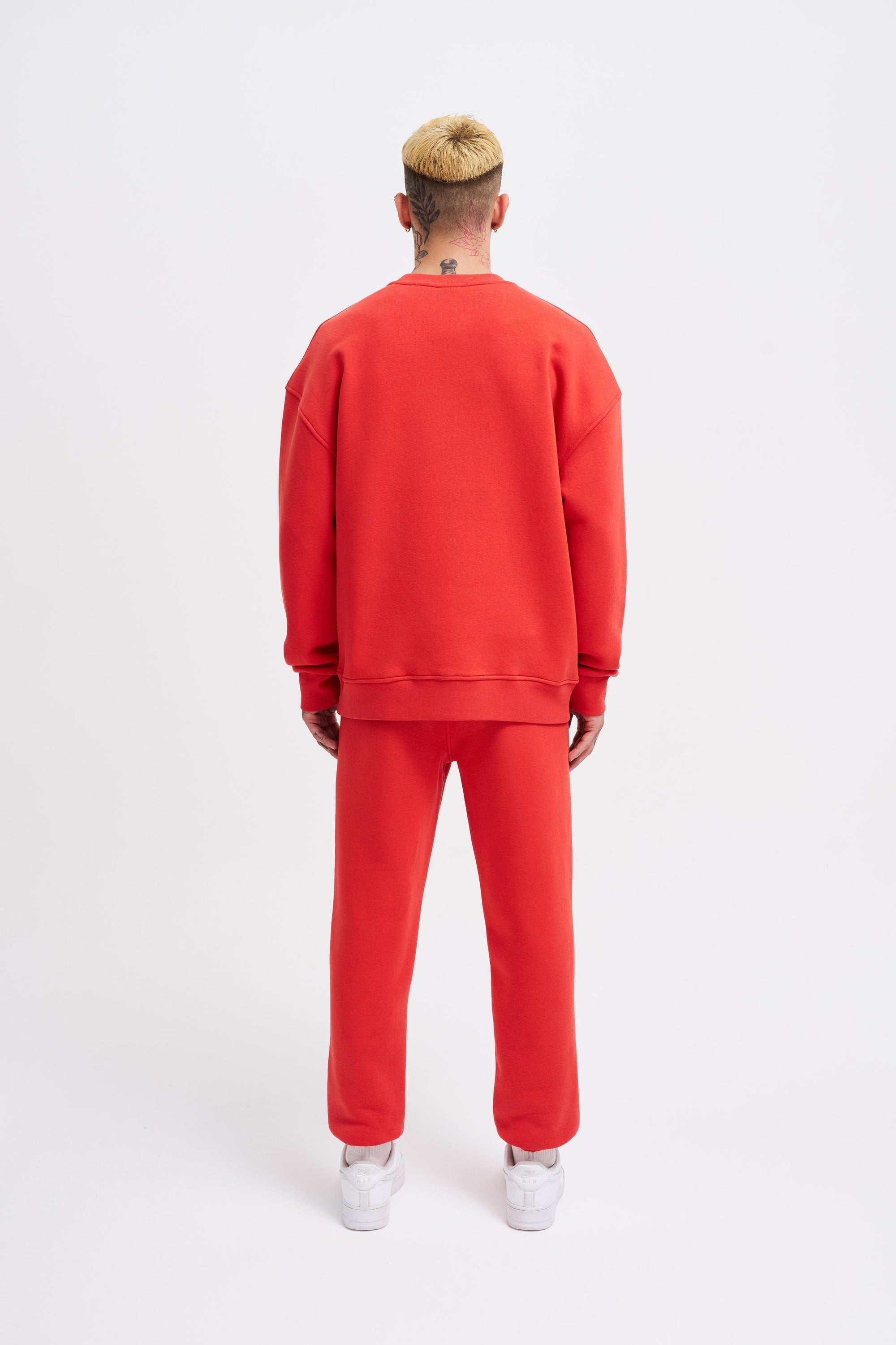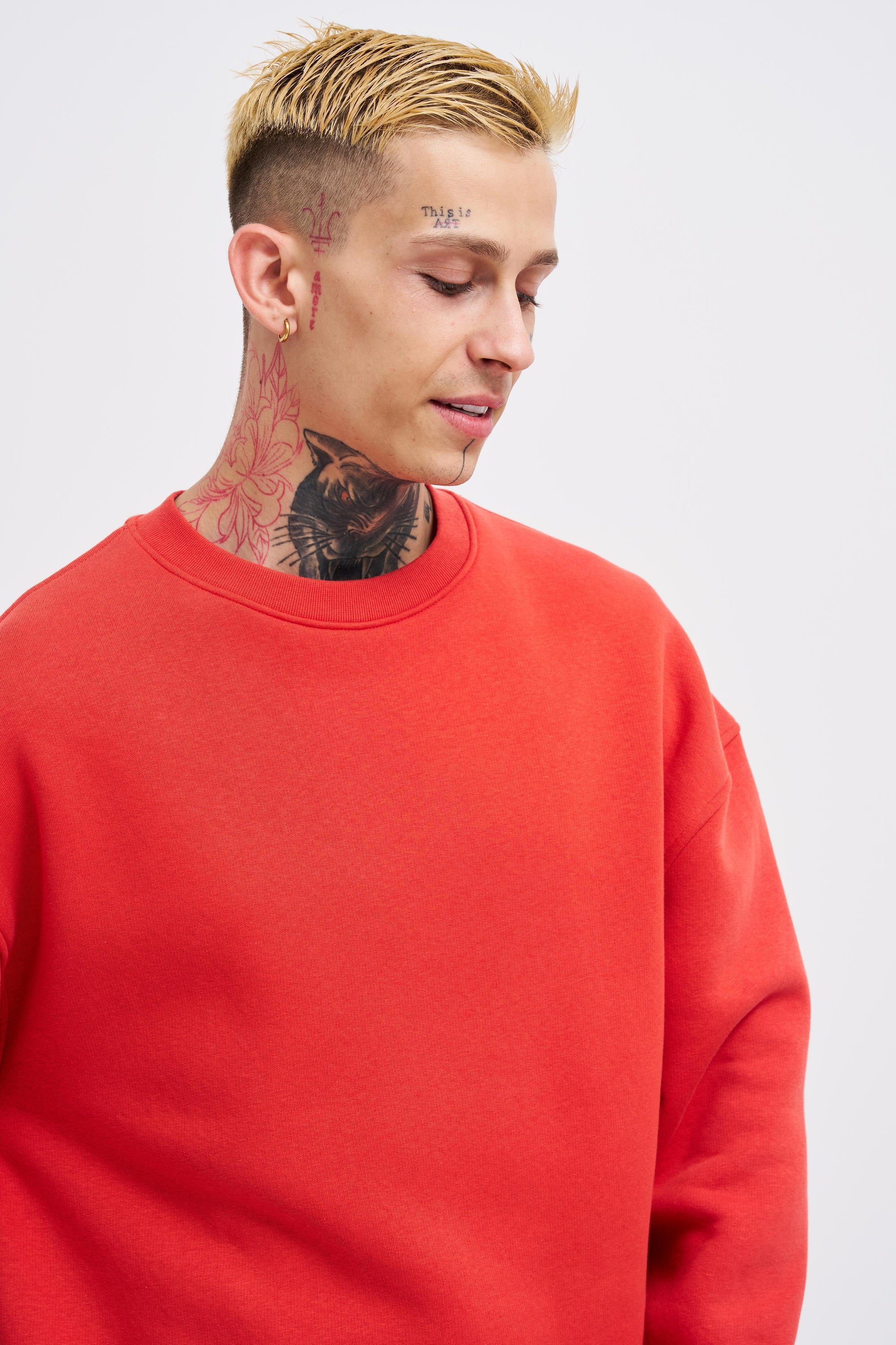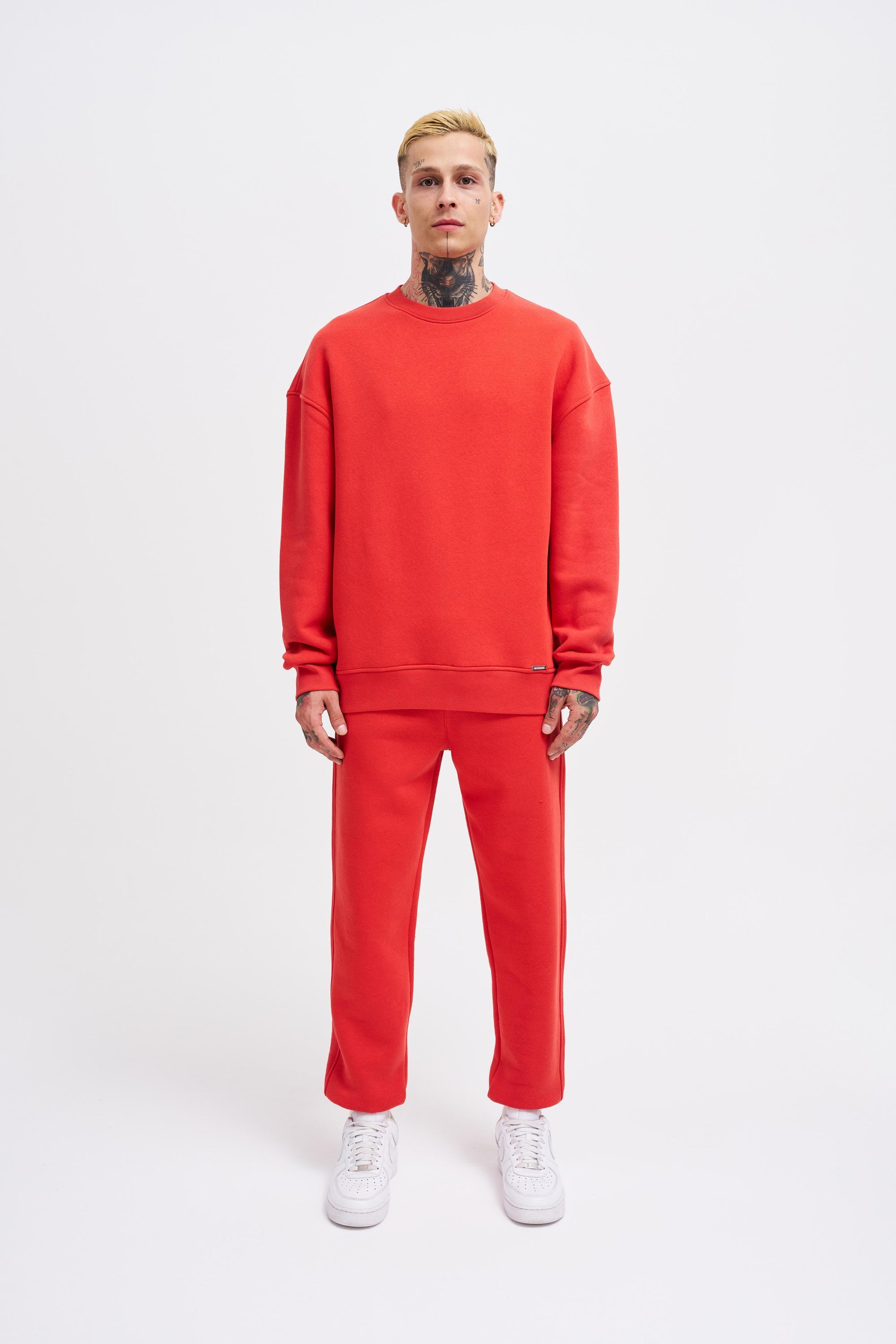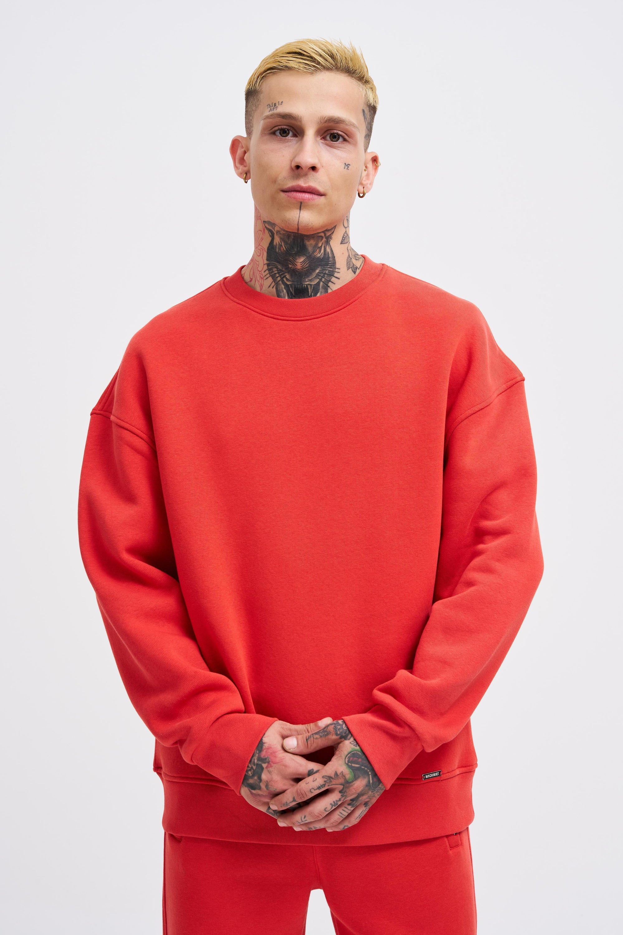 Erkek Basic Bisiklet Yaka Oversize Sweatshirt Kırmızı