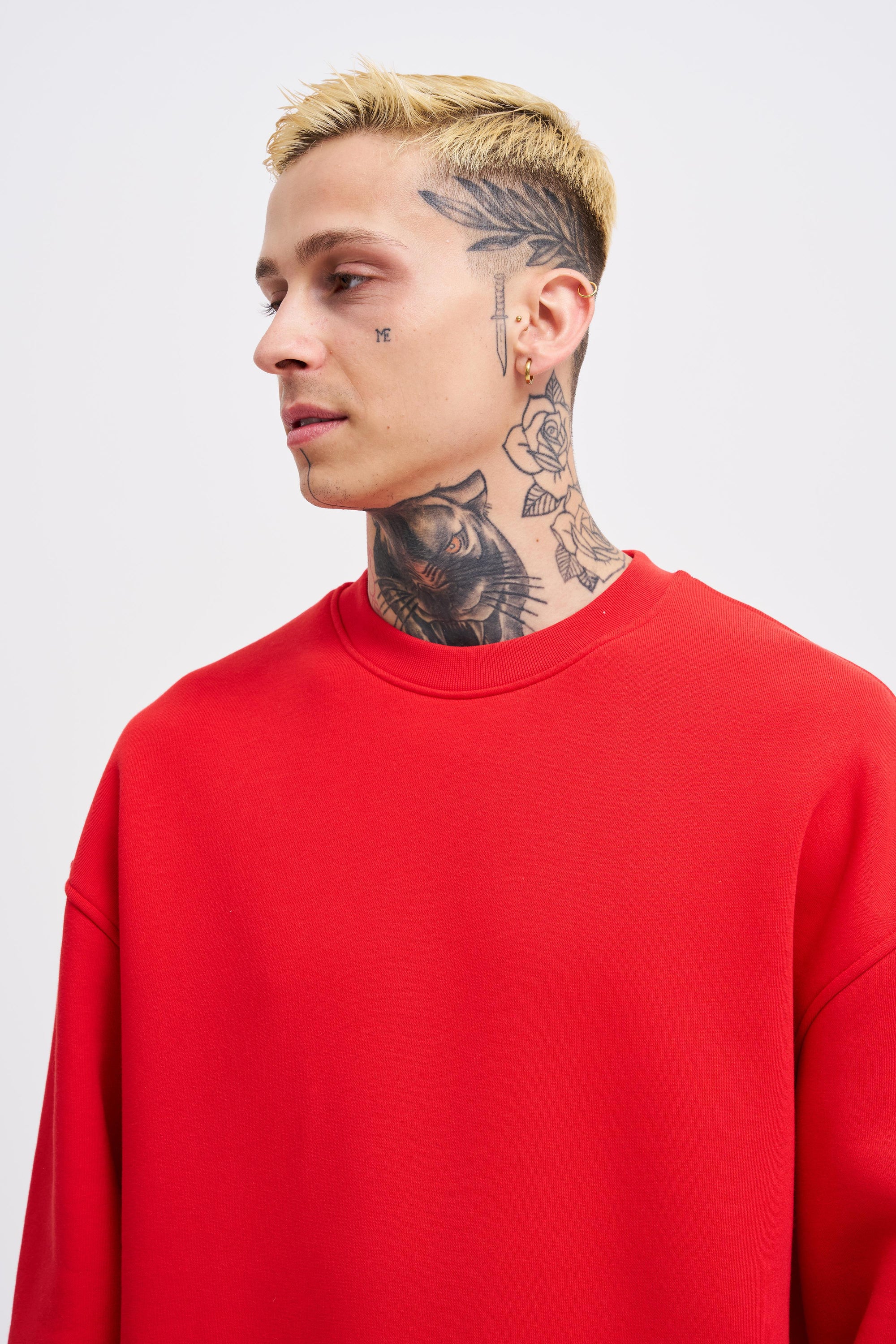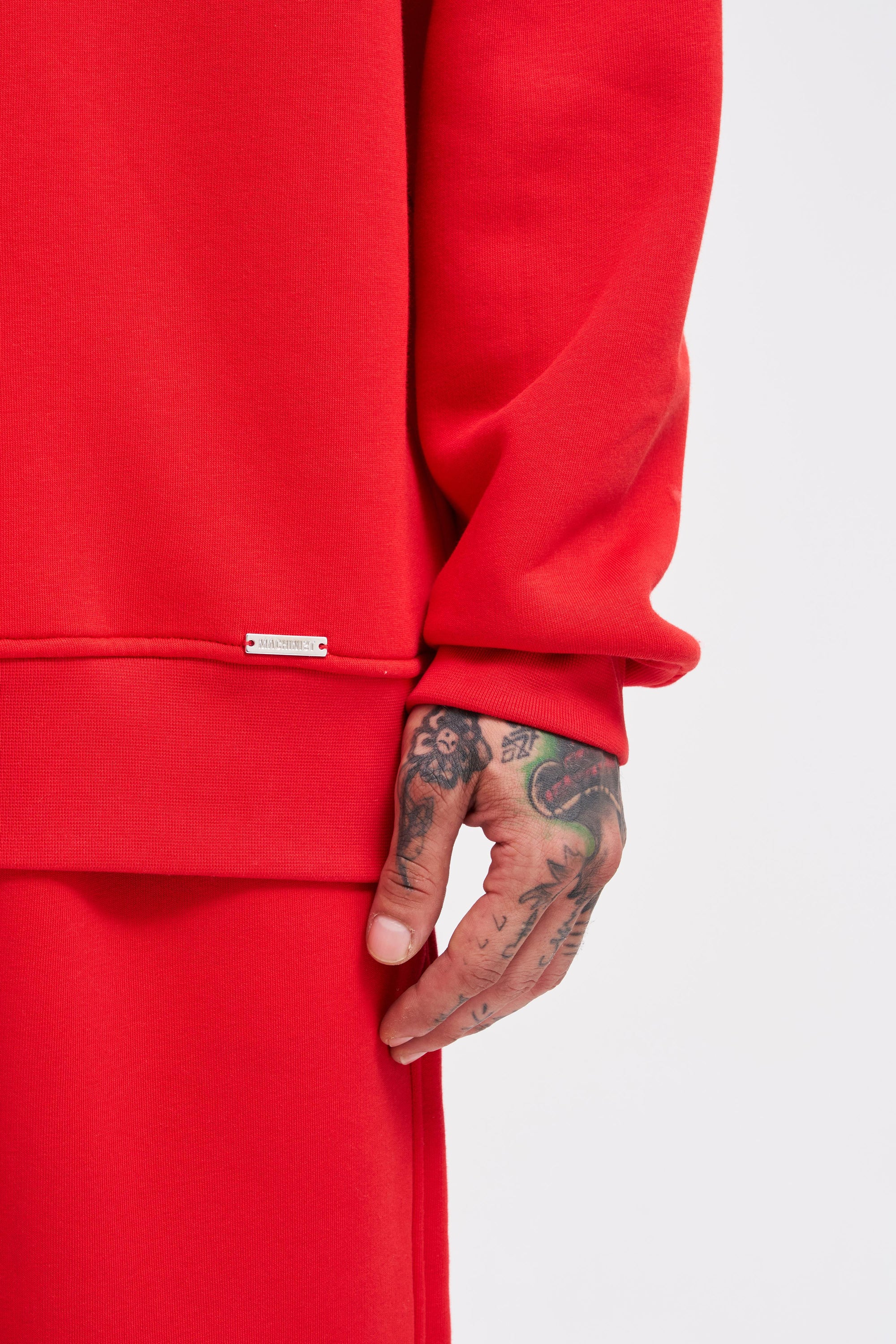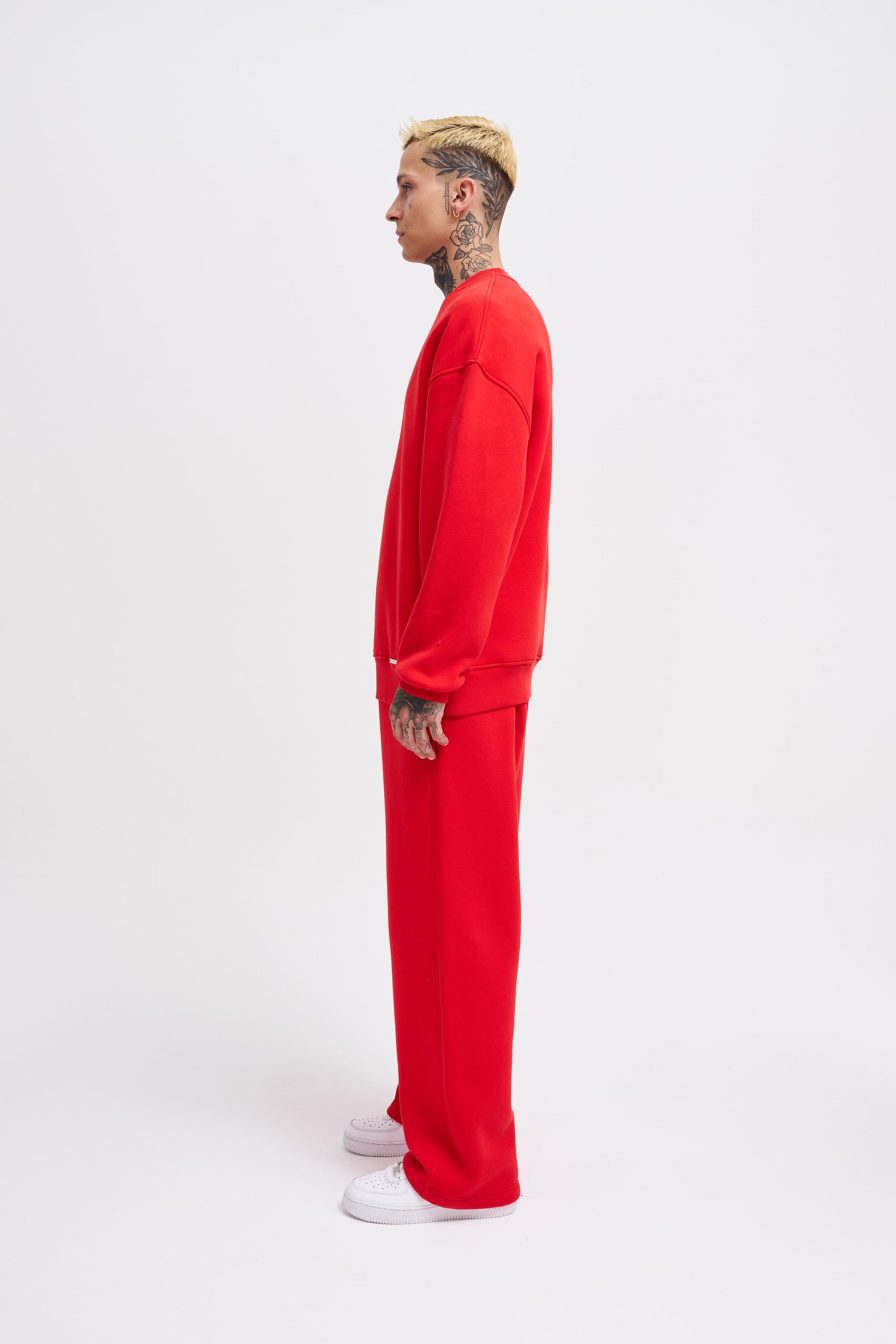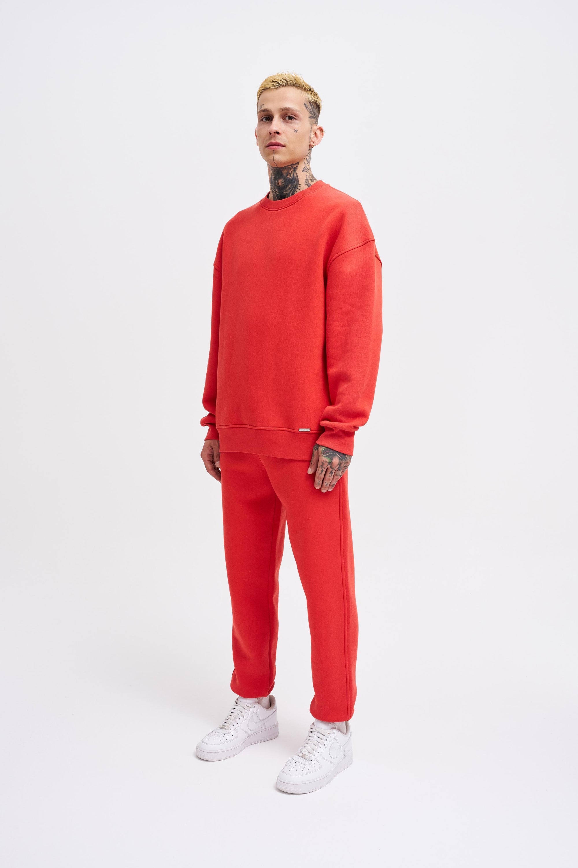 Erkek Basic Bisiklet Yaka Oversize Sweatshirt Kırmızı