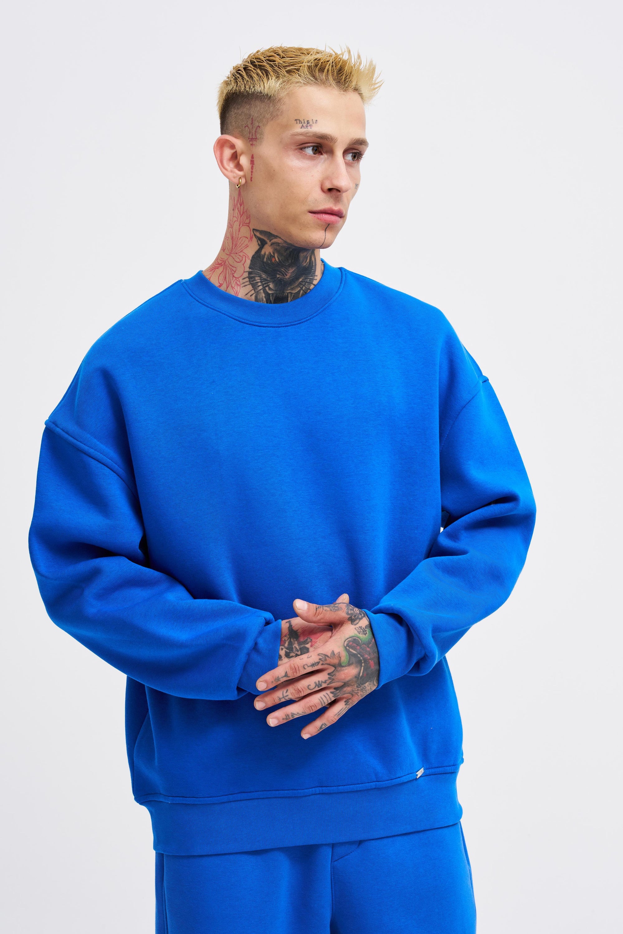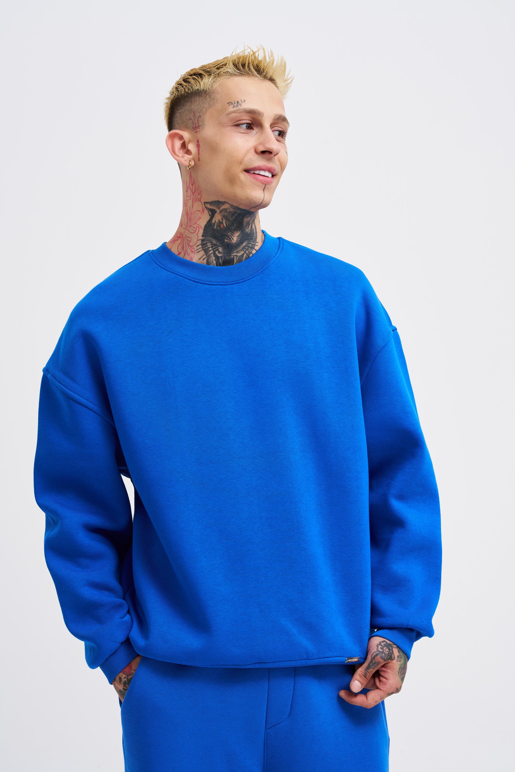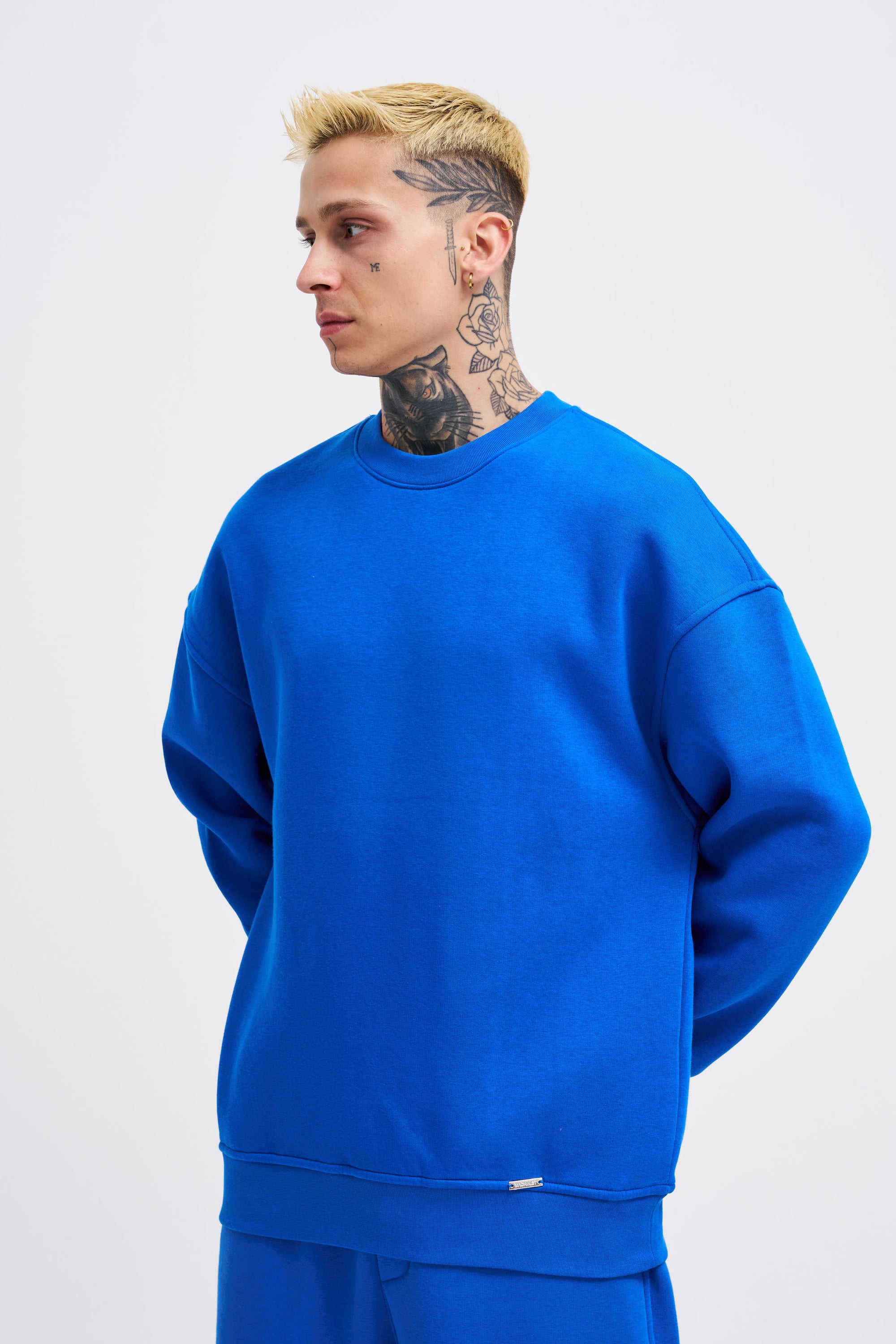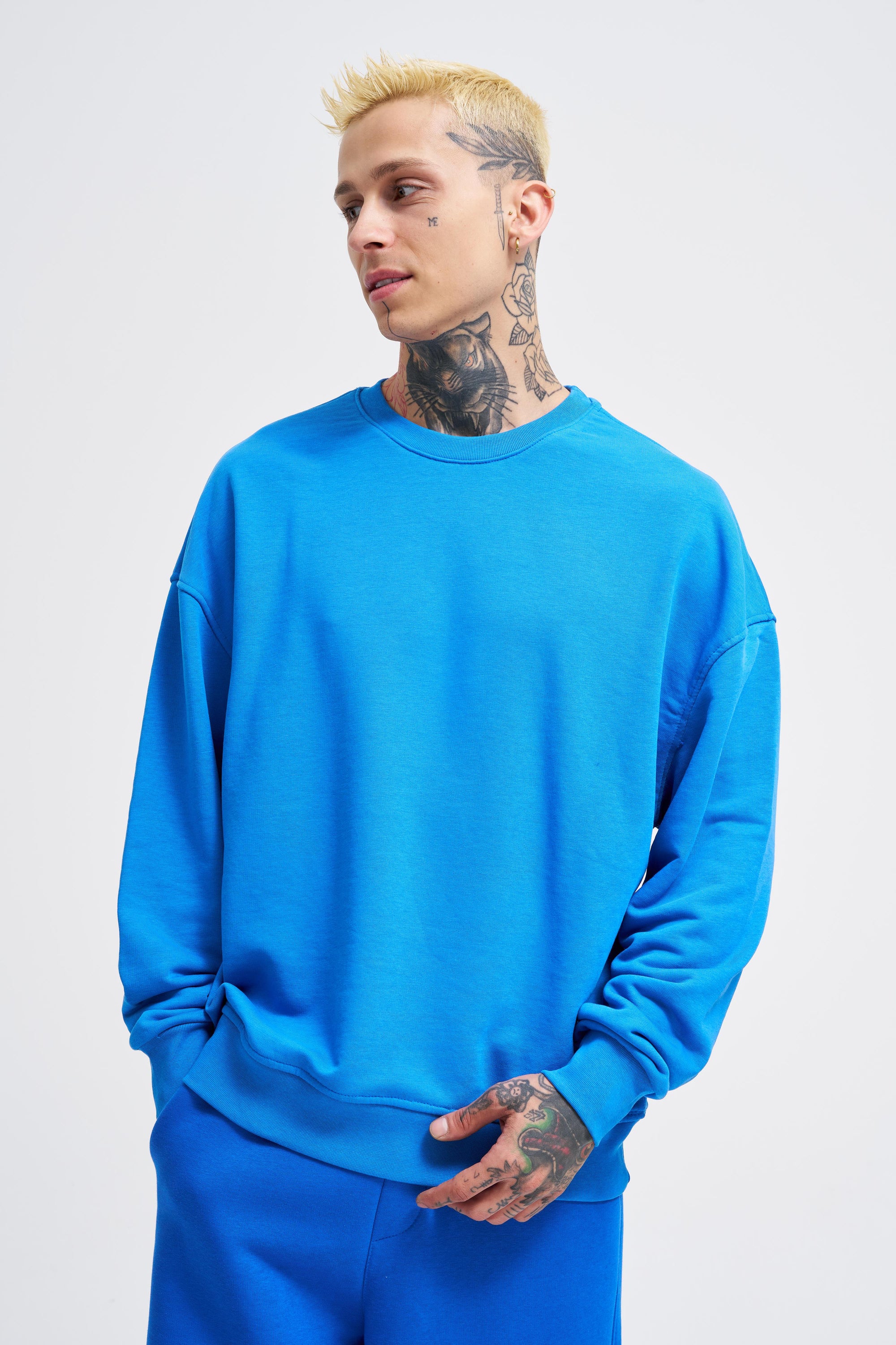 Erkek Bisiklet Yaka Basic Oversize Sweatshirt Saks Mavi