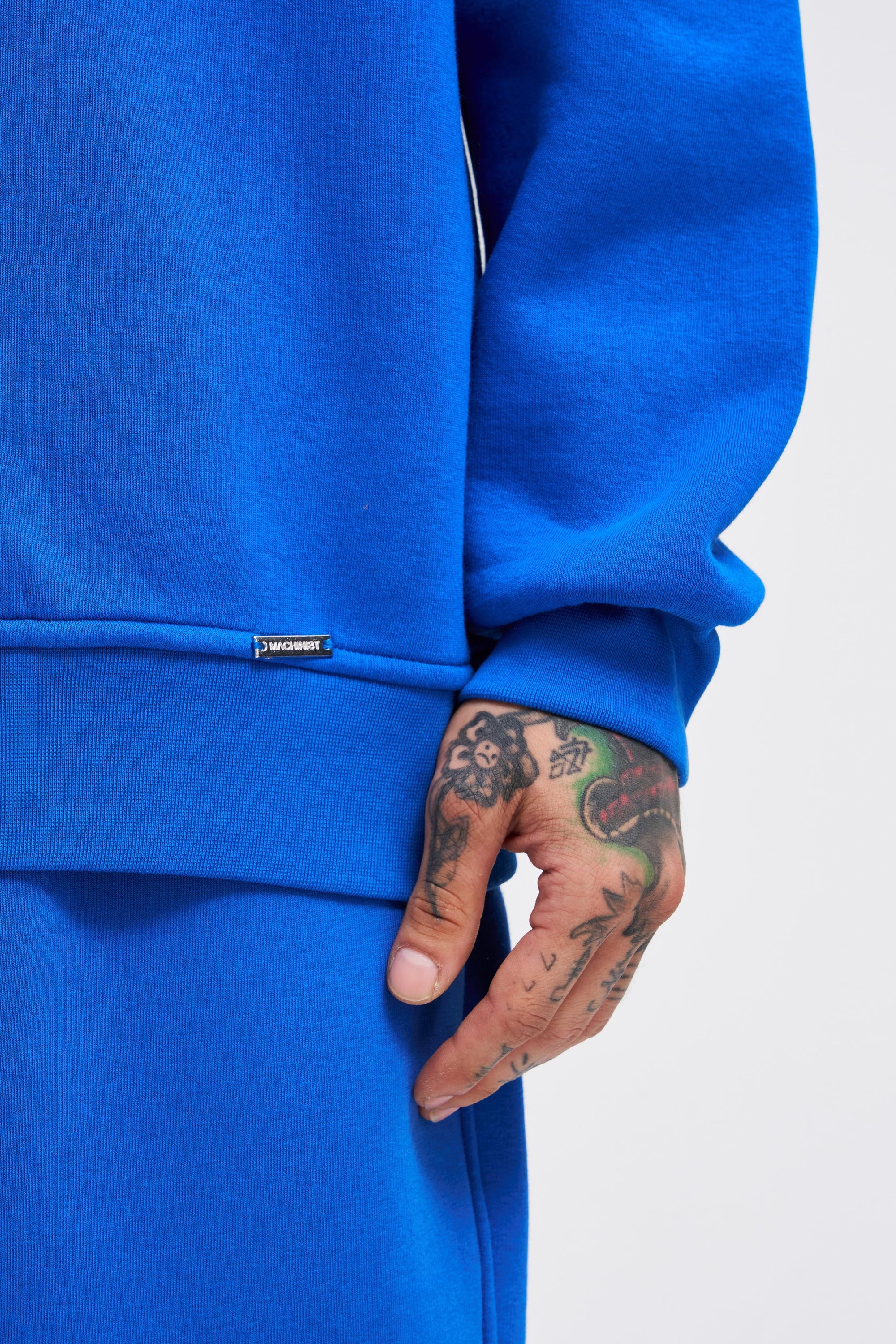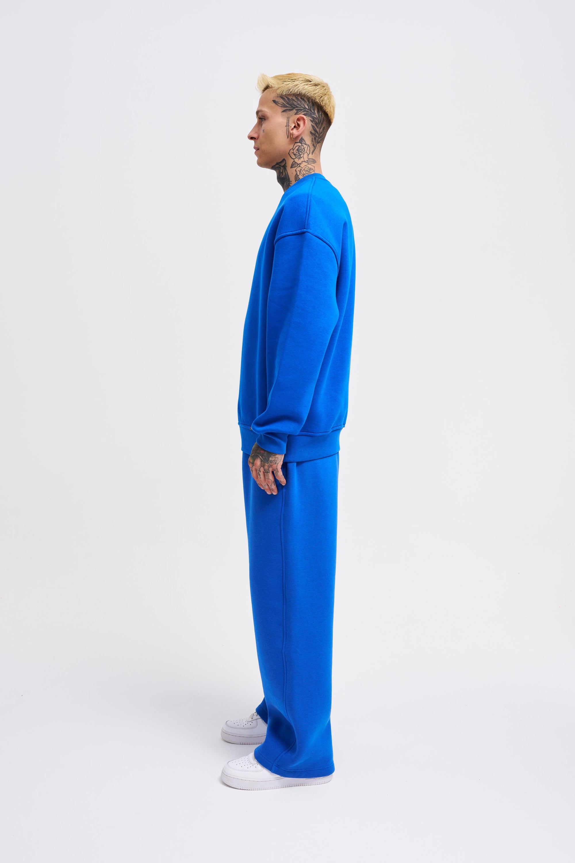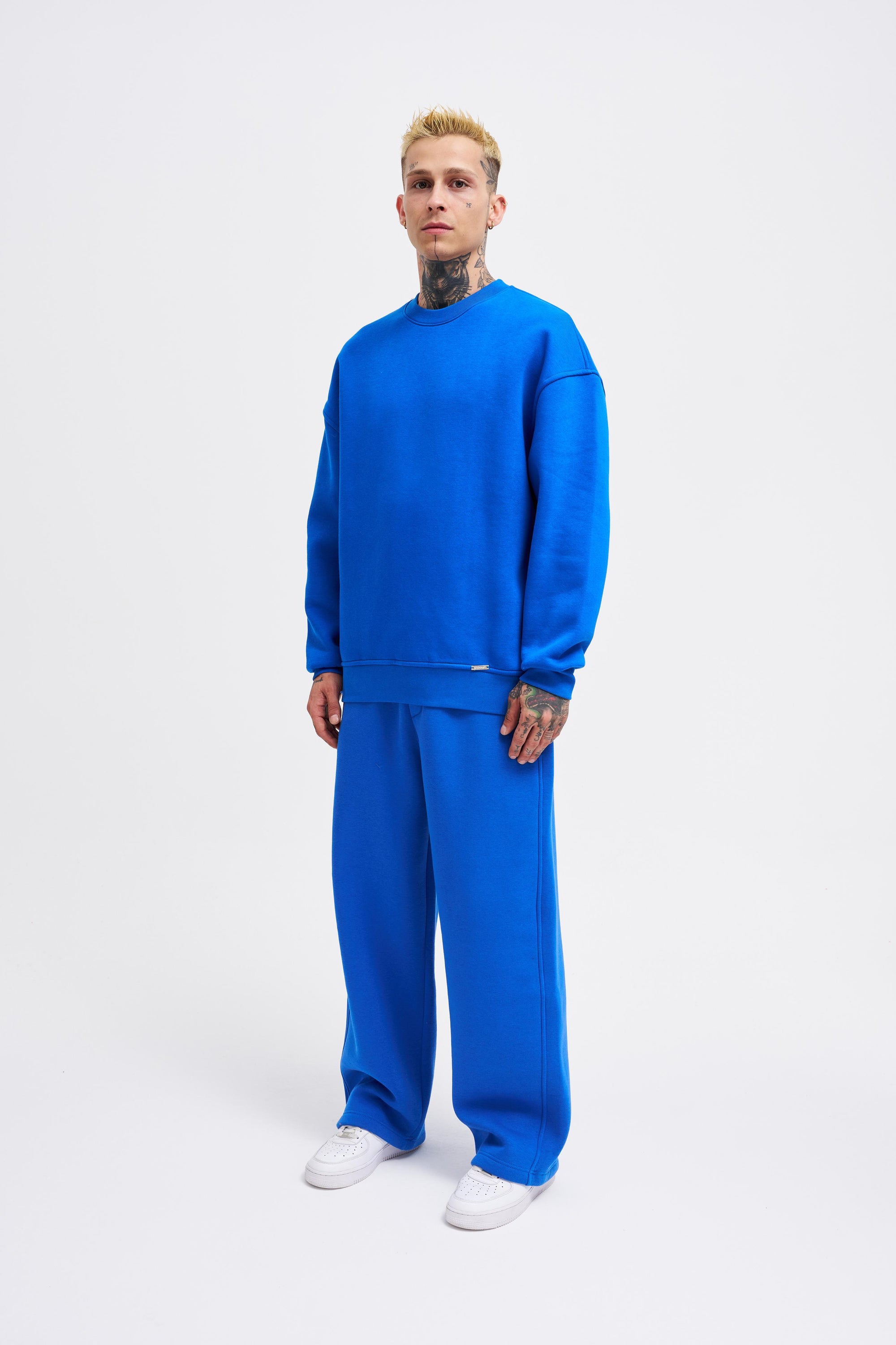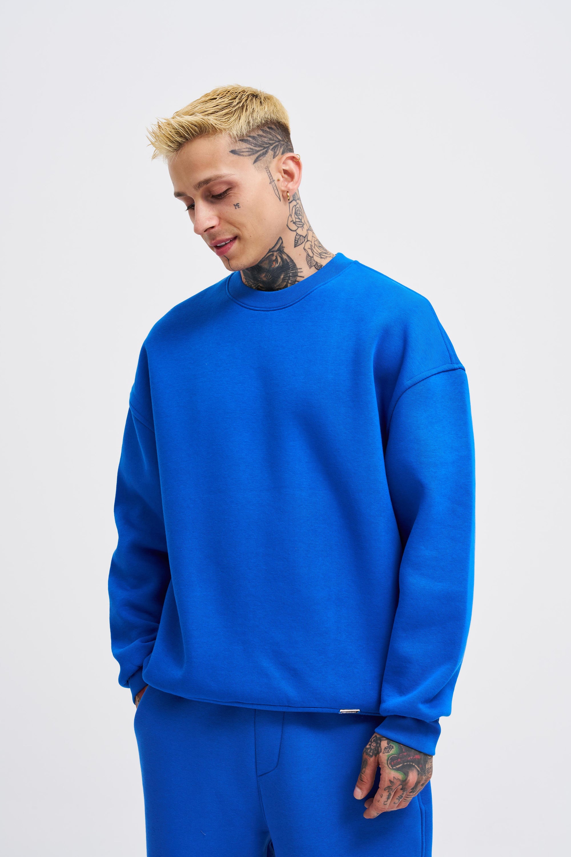 Erkek Bisiklet Yaka Basic Oversize Sweatshirt Saks Mavi
