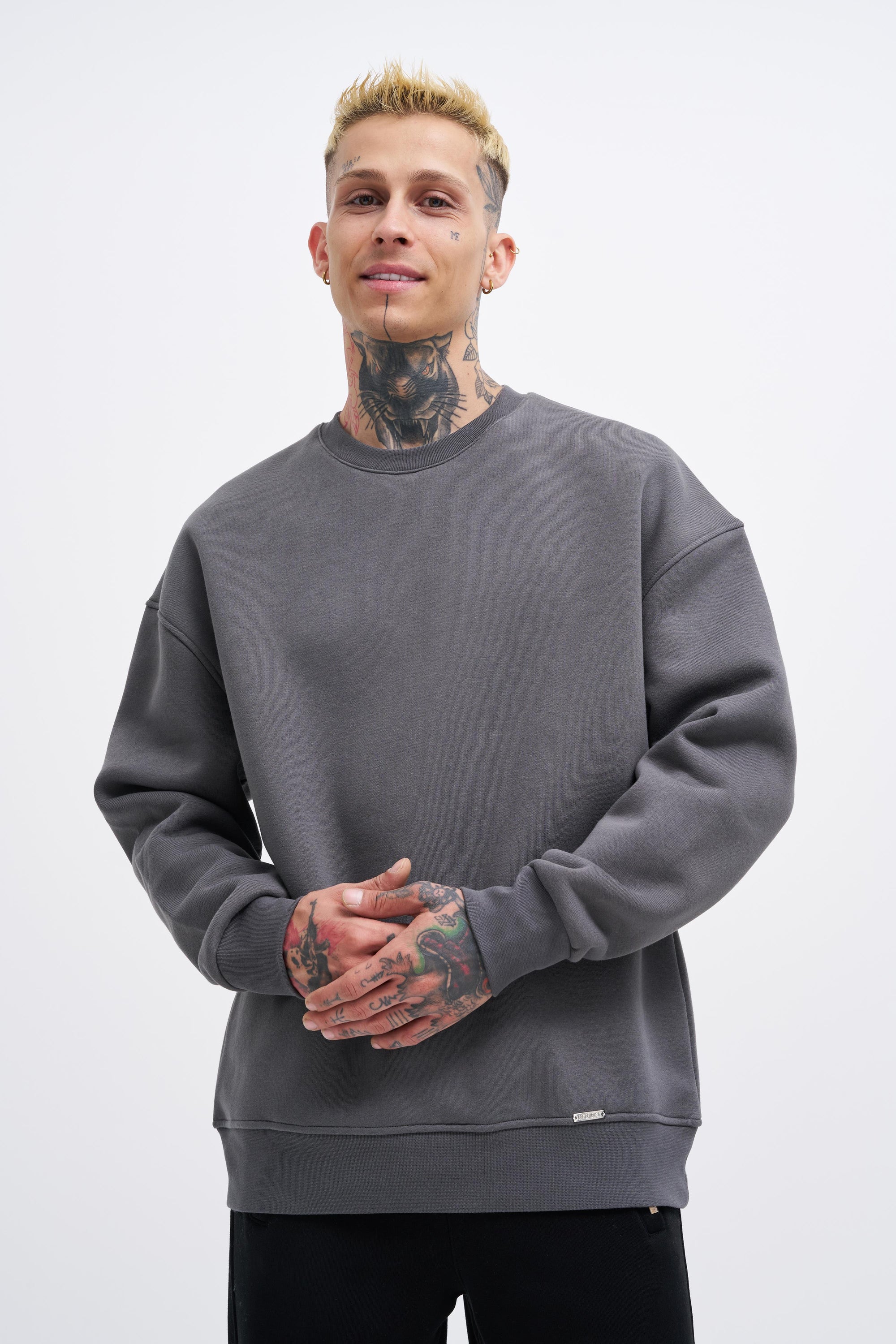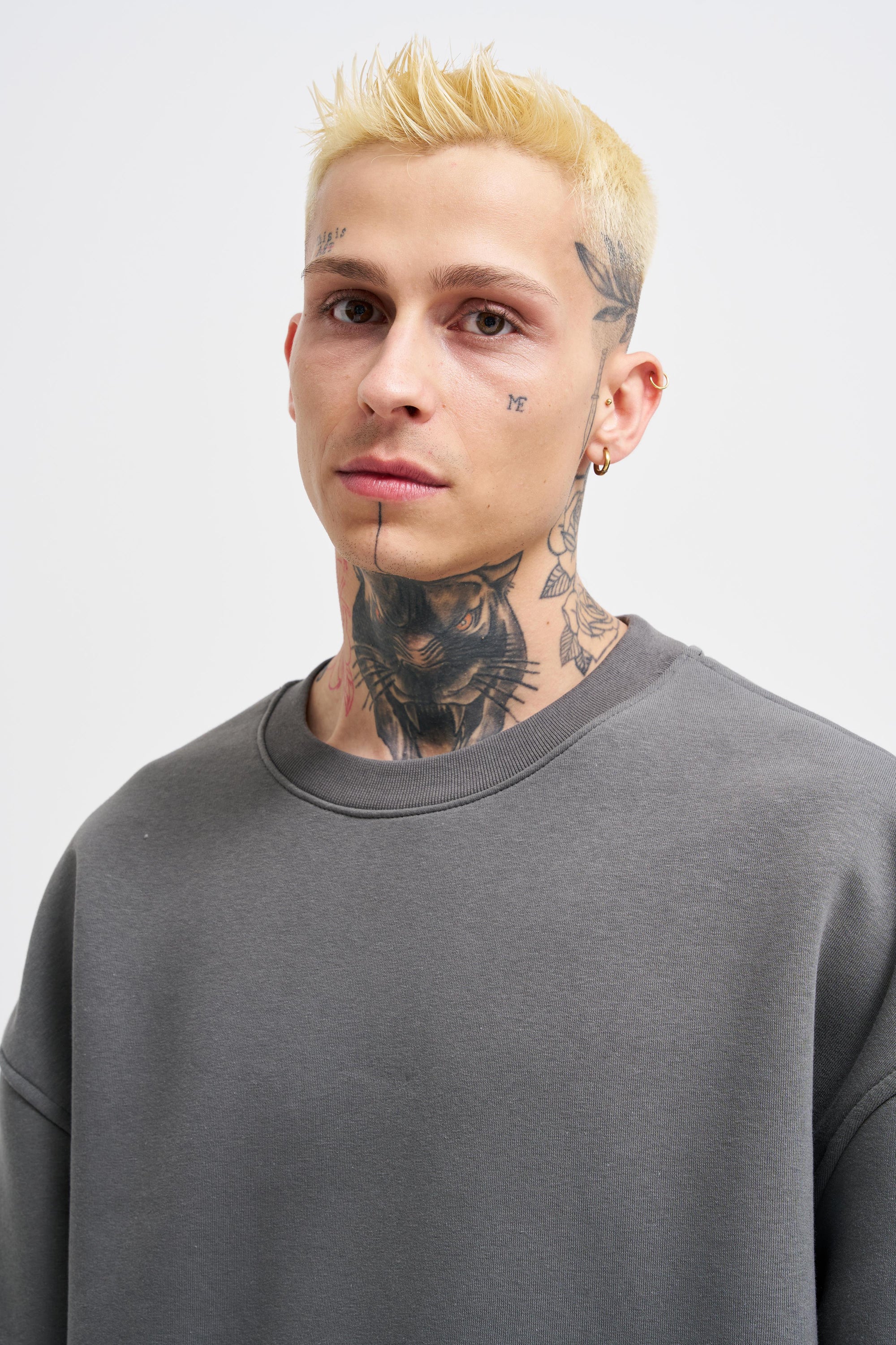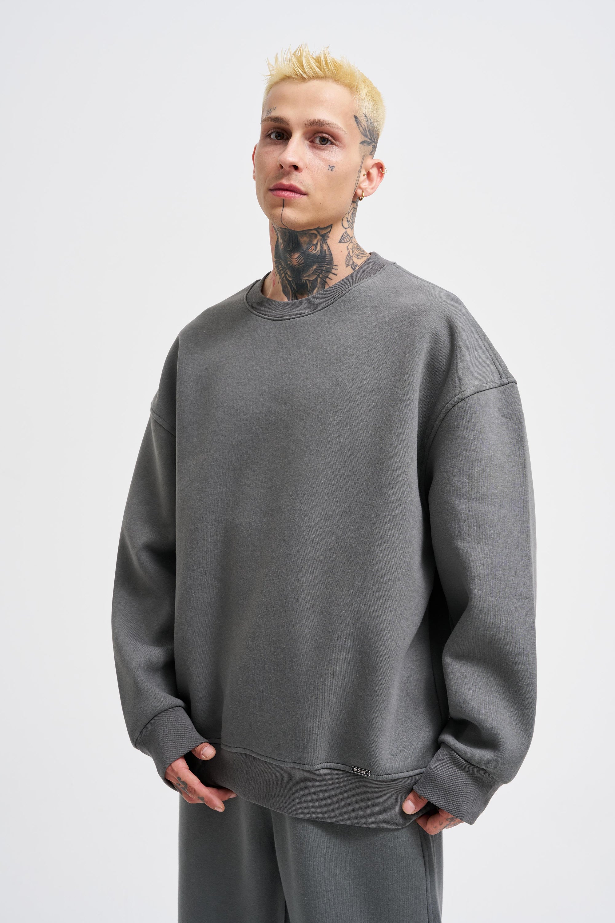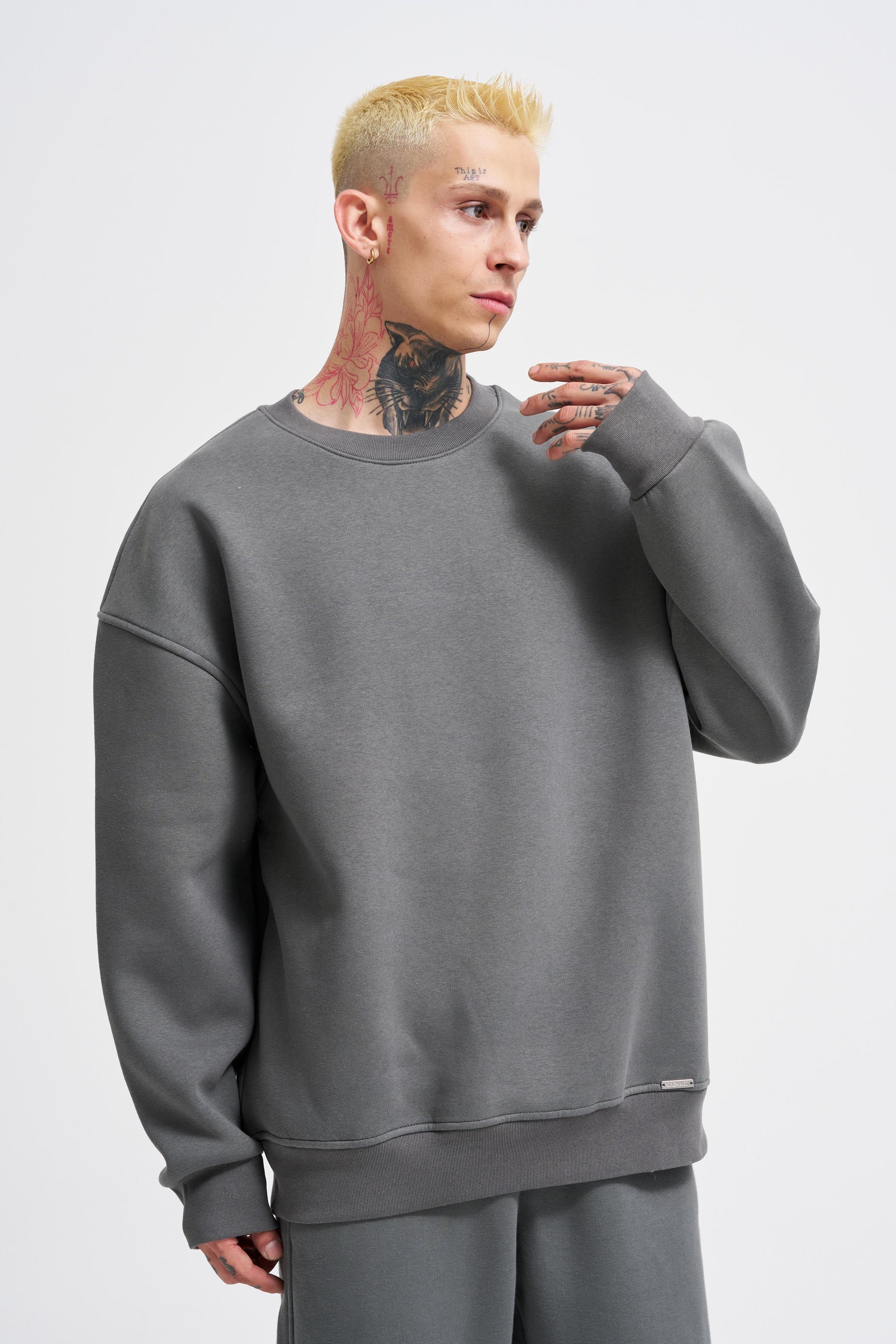 Erkek Basic Bisiklet Yaka Oversize Sweatshirt Uzay Grisi