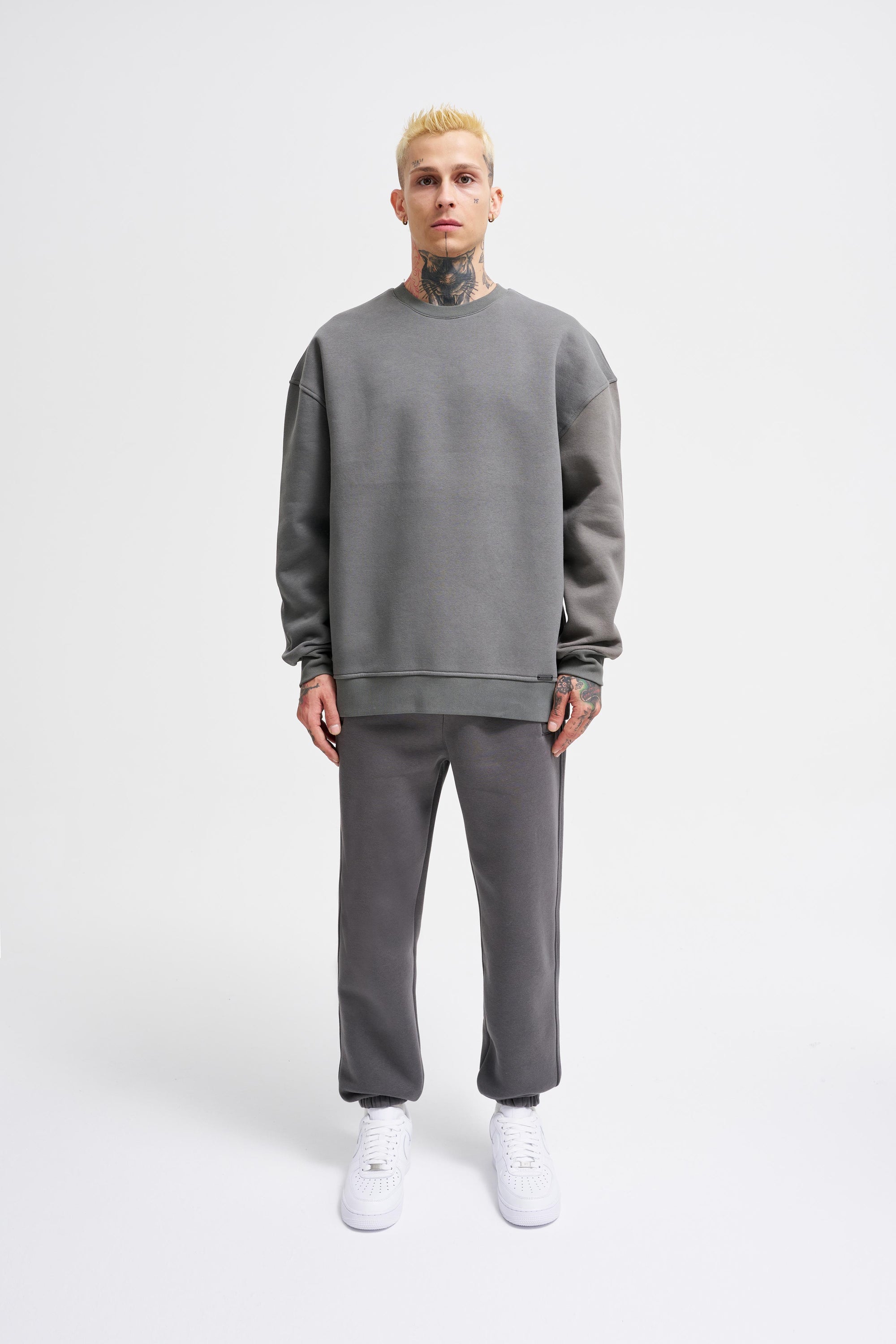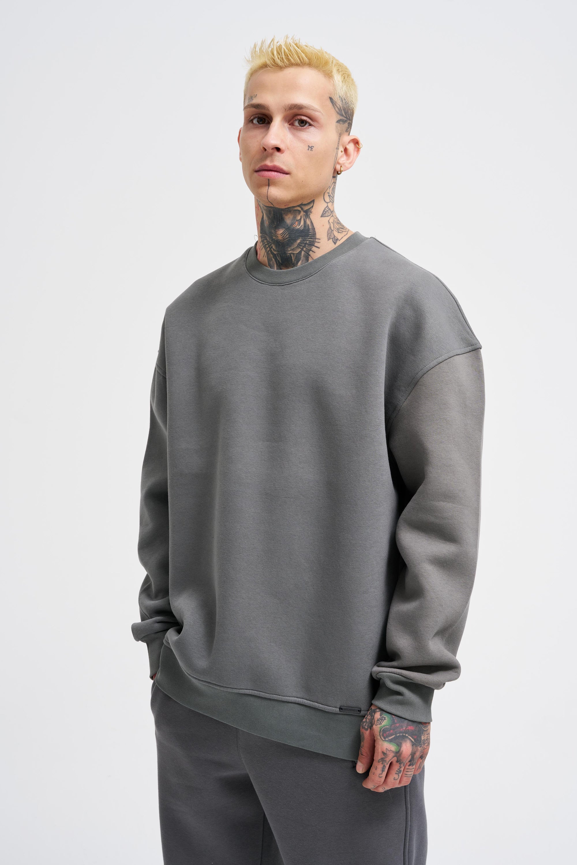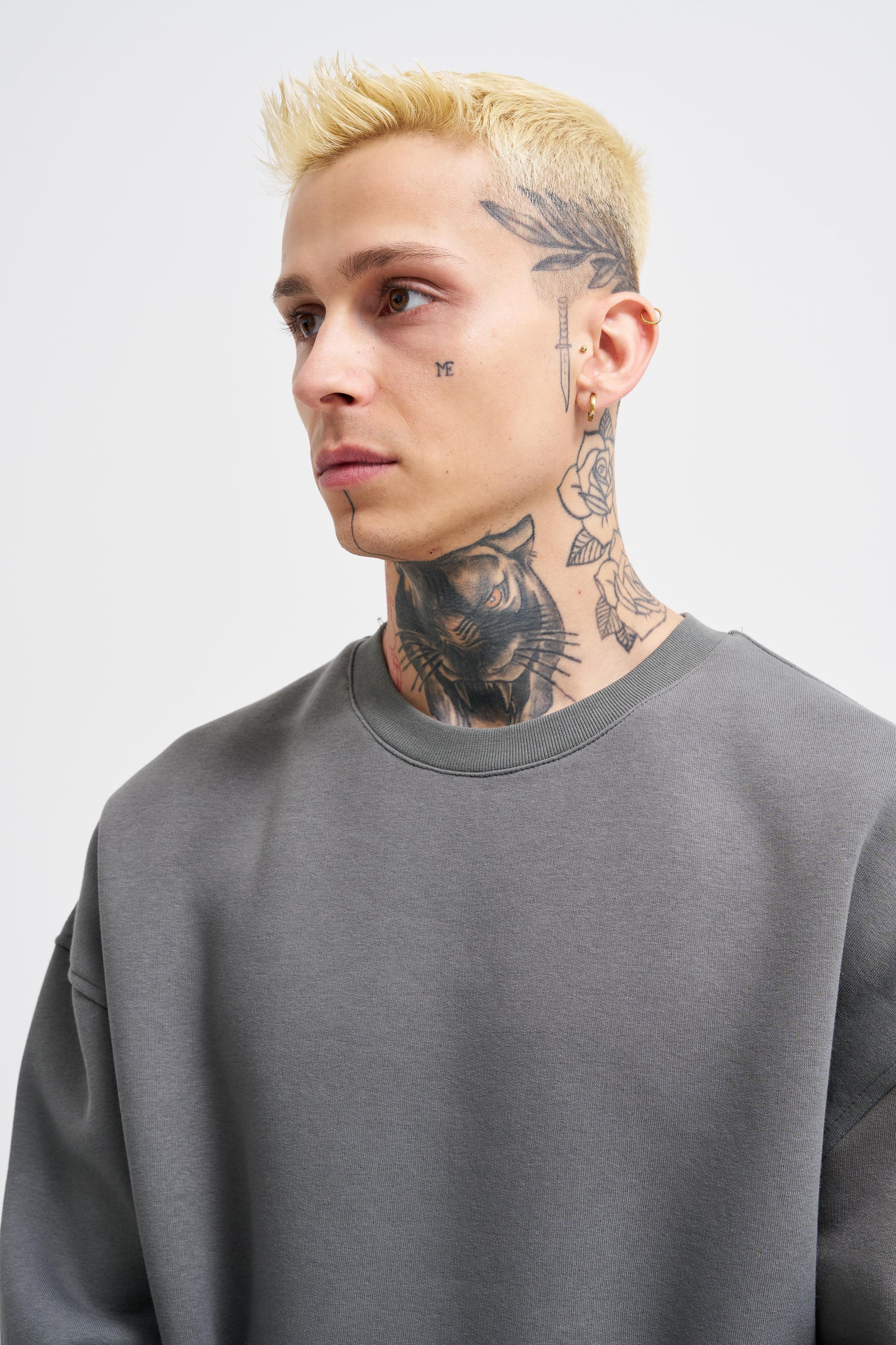 Erkek Basic Bisiklet Yaka Oversize Sweatshirt Uzay Grisi