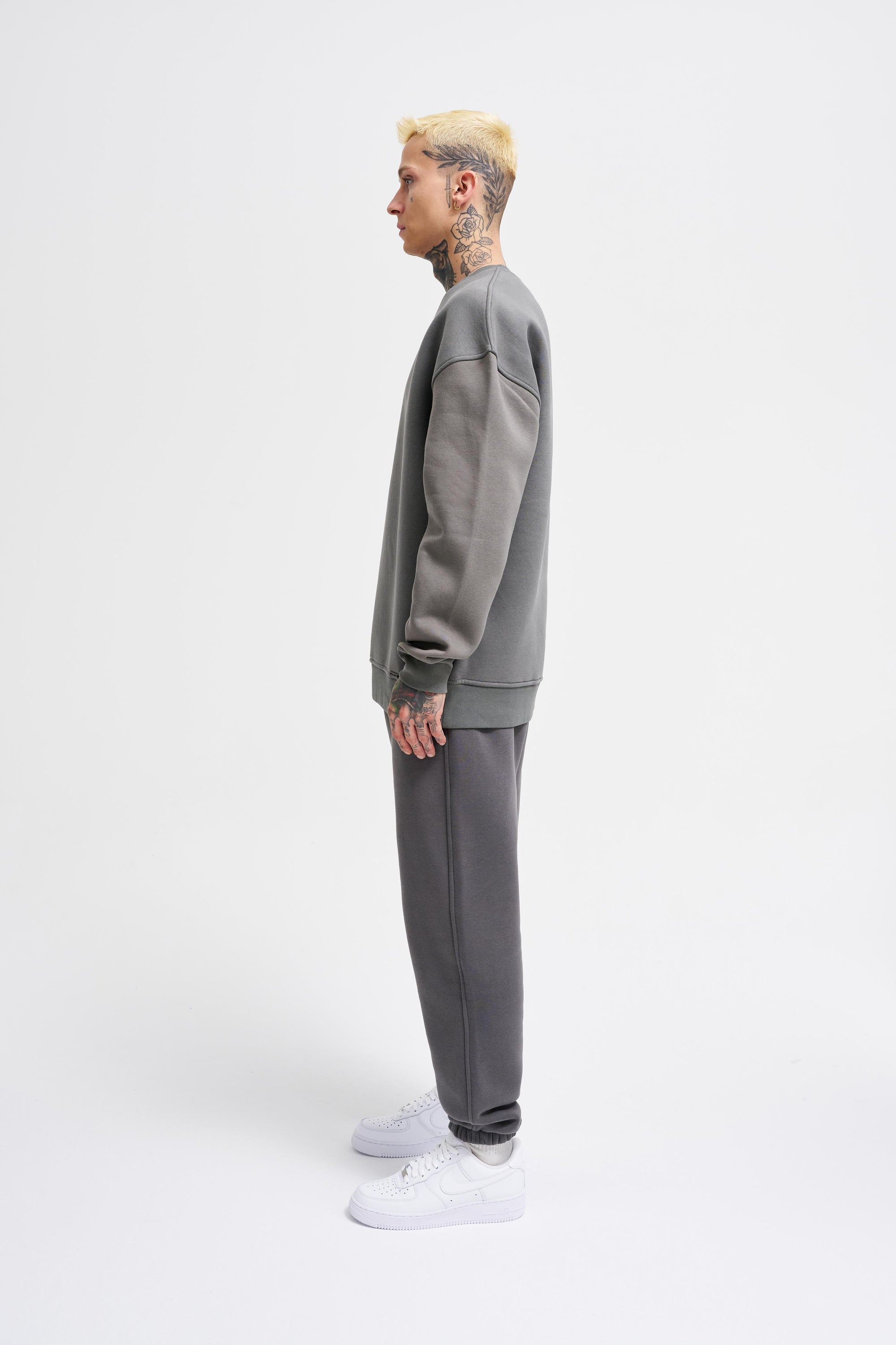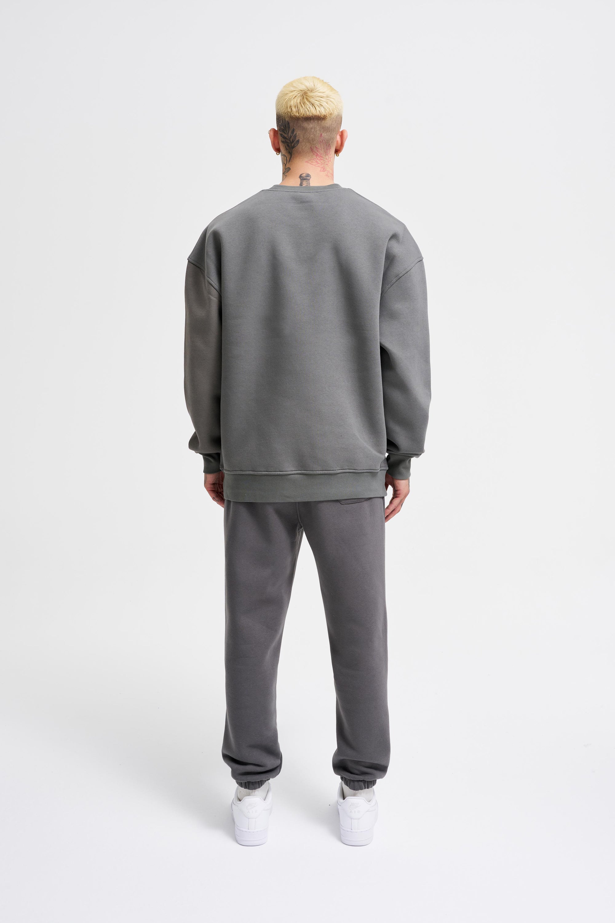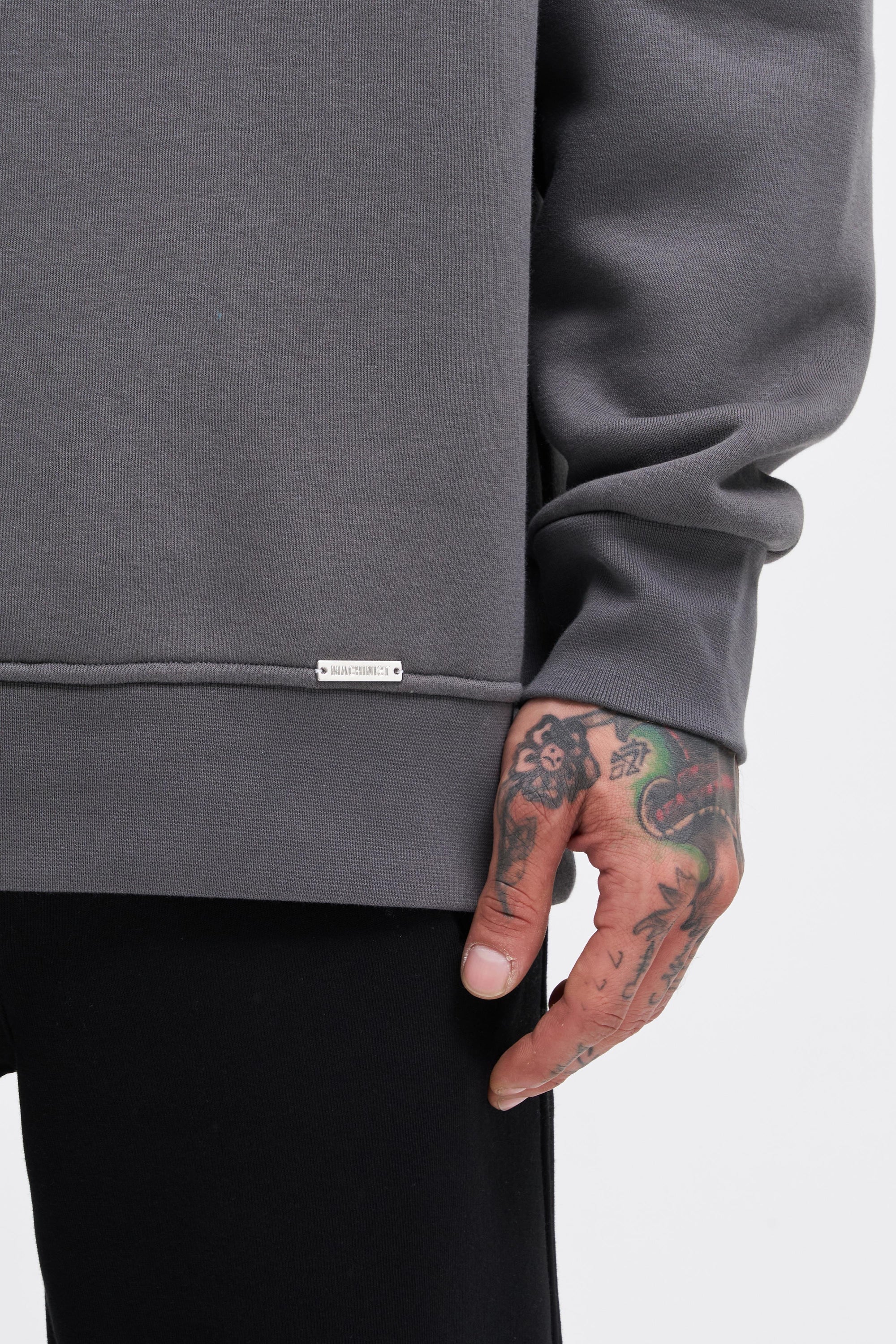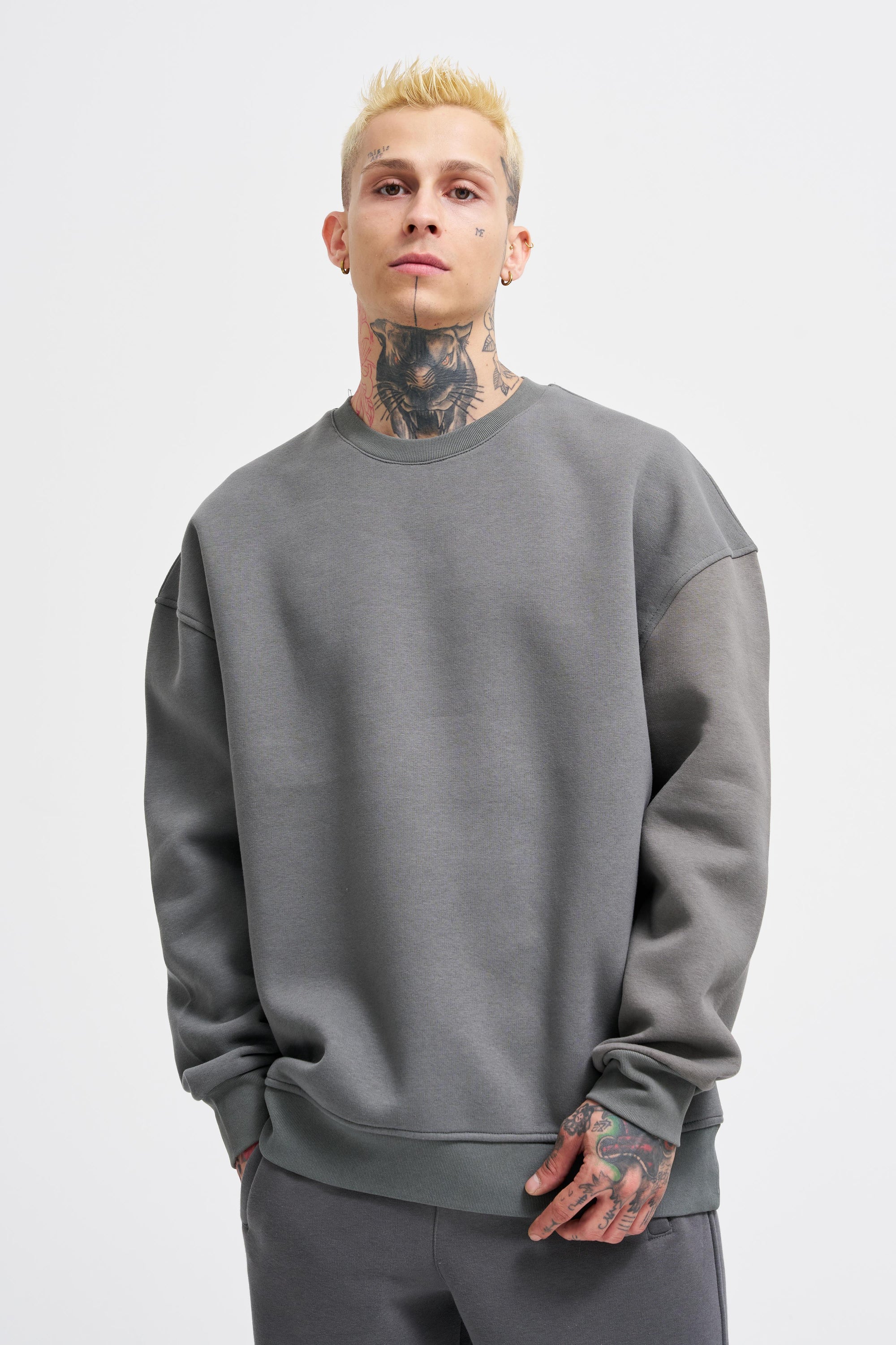Erkek Basic Bisiklet Yaka Oversize Sweatshirt Uzay Grisi