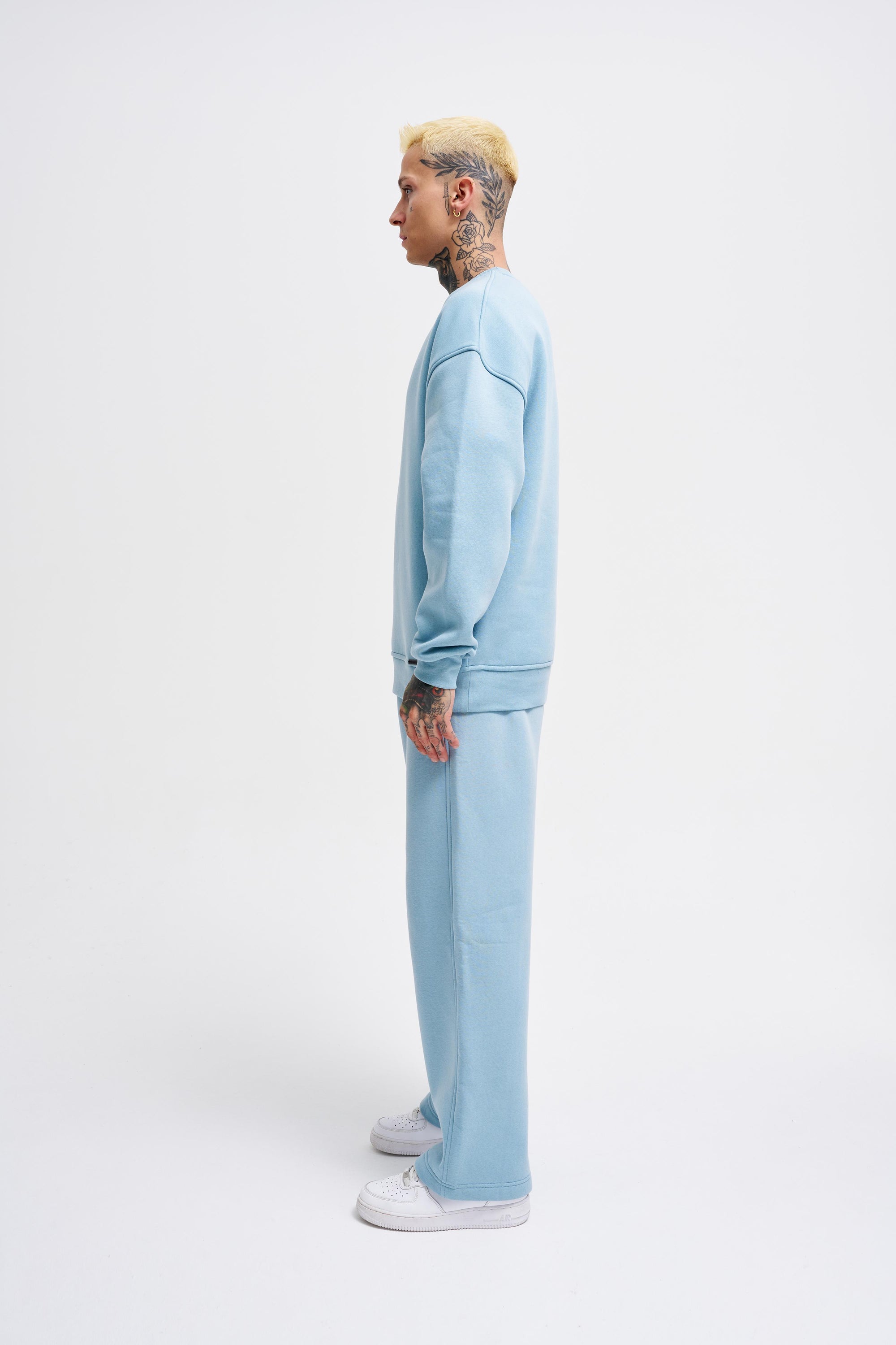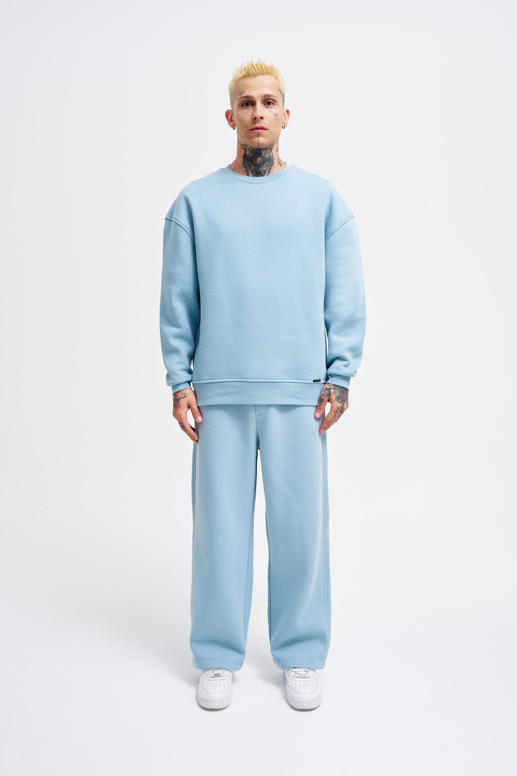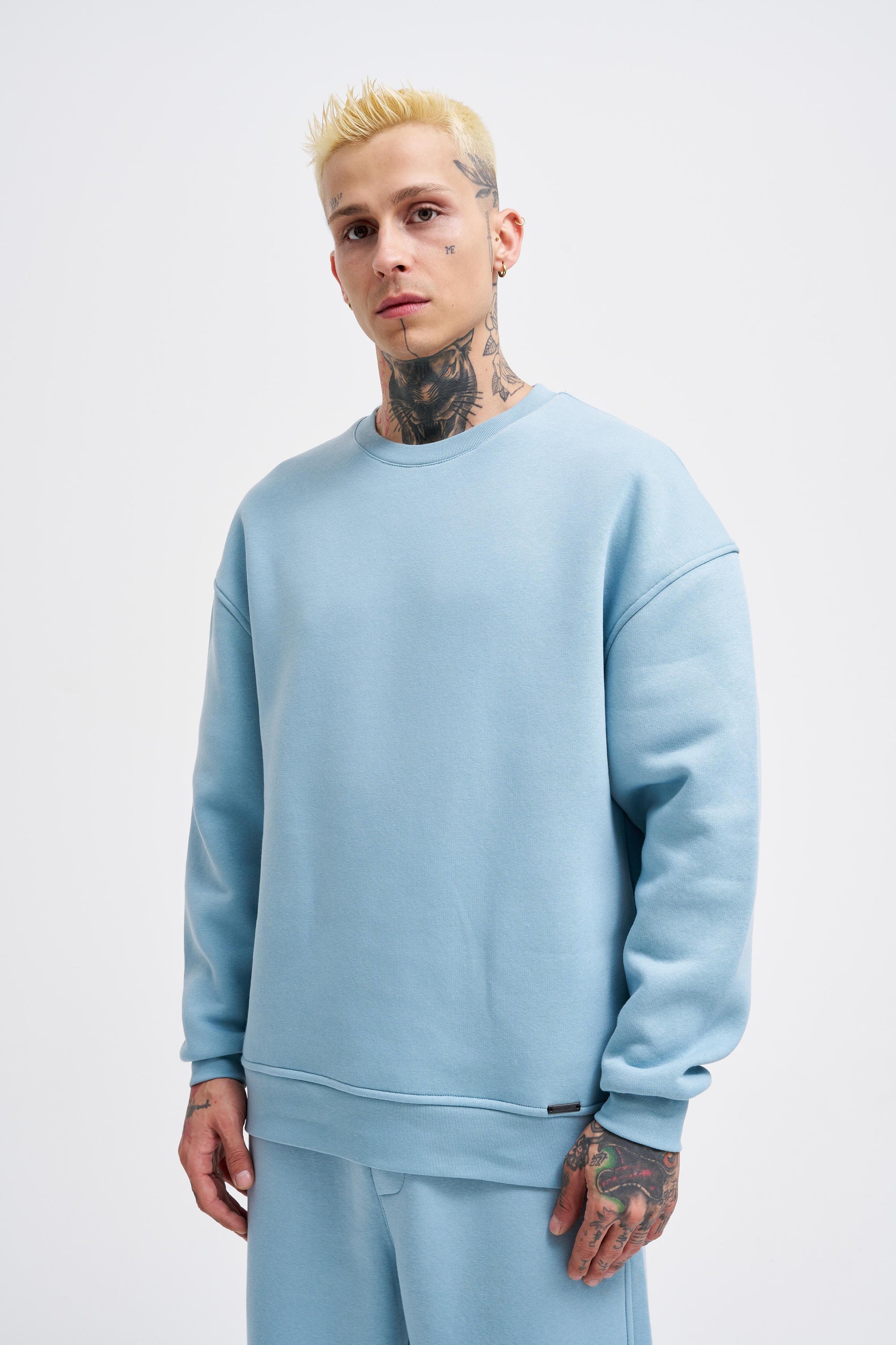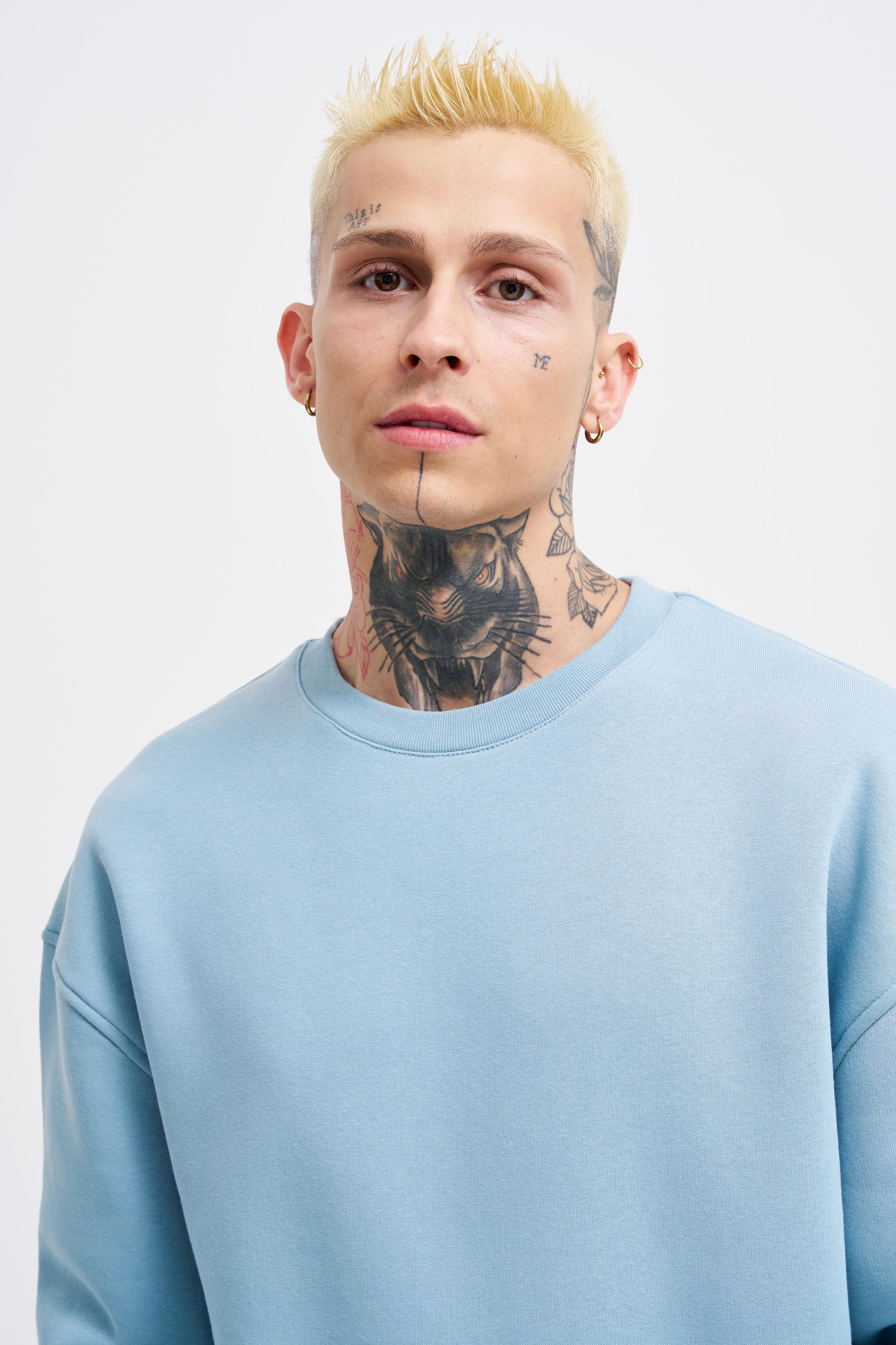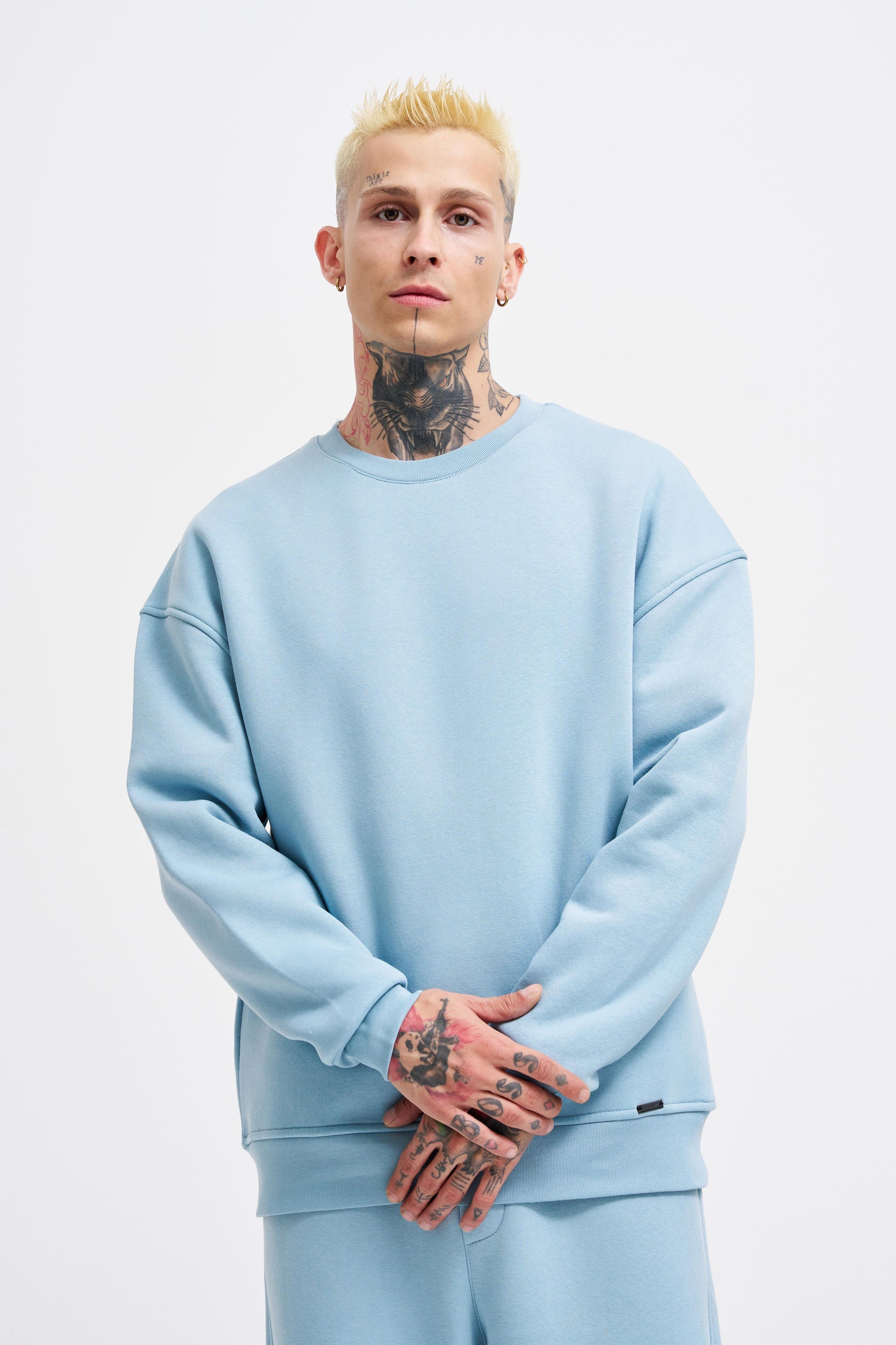 Erkek Basic Bisiklet Yaka Oversize Sweatshirt Açık Mavi