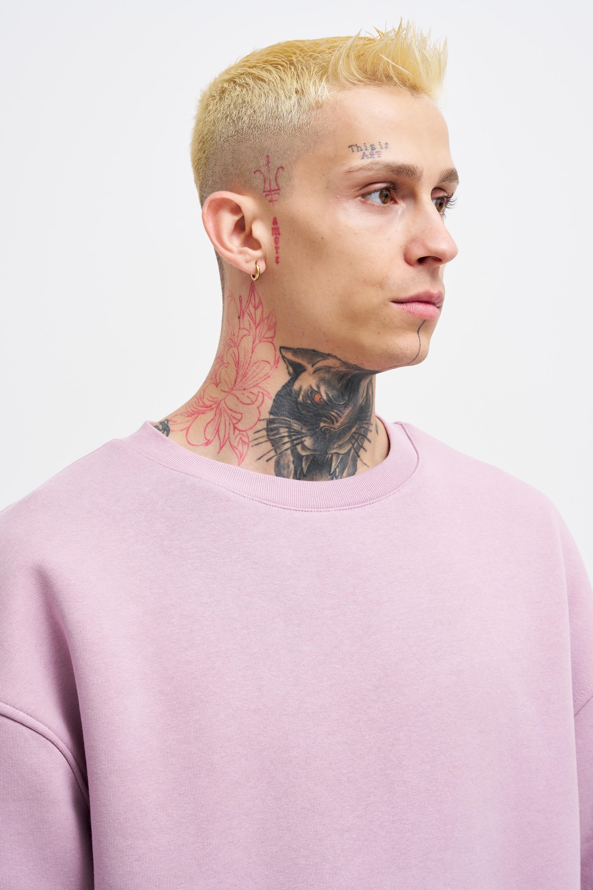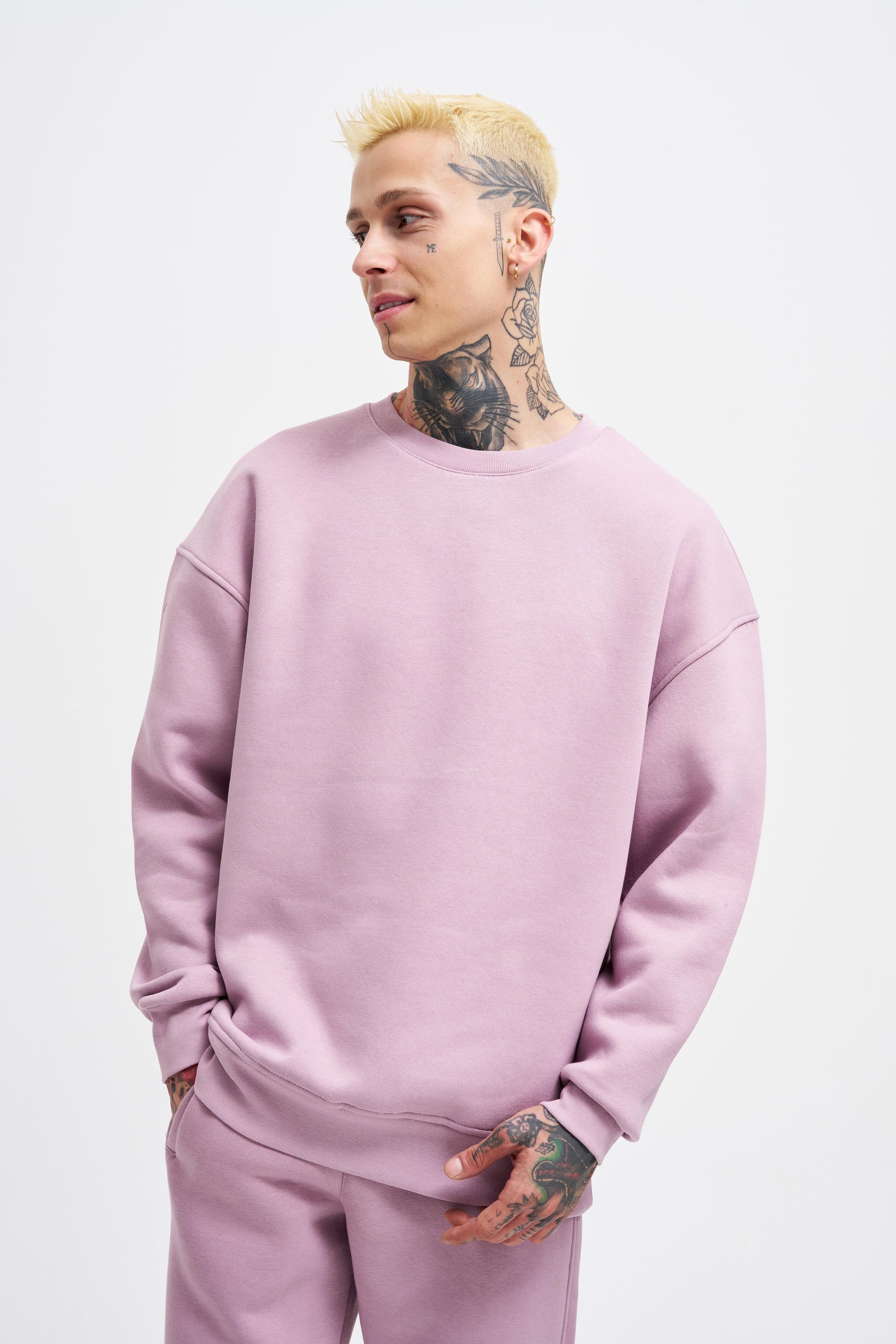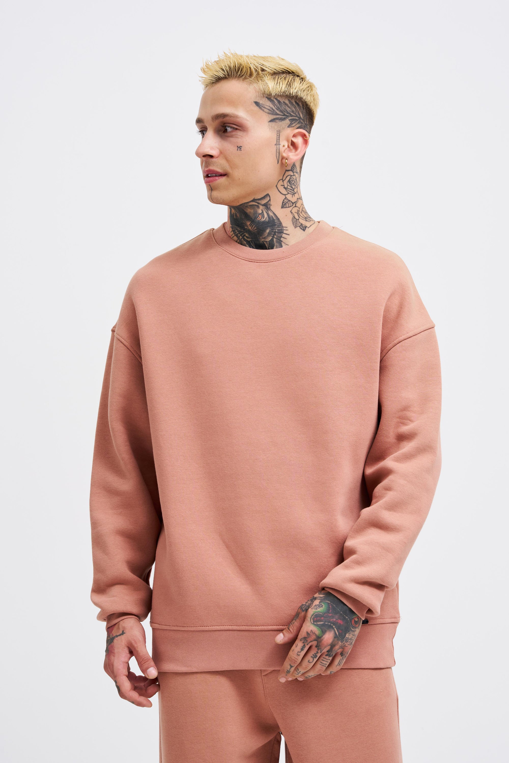 Erkek Basic Bisiklet Yaka Oversize Sweatshirt Kirli Pembe
