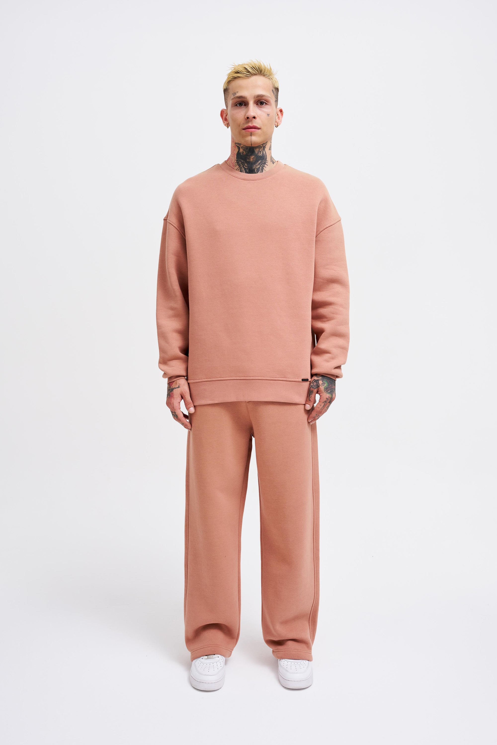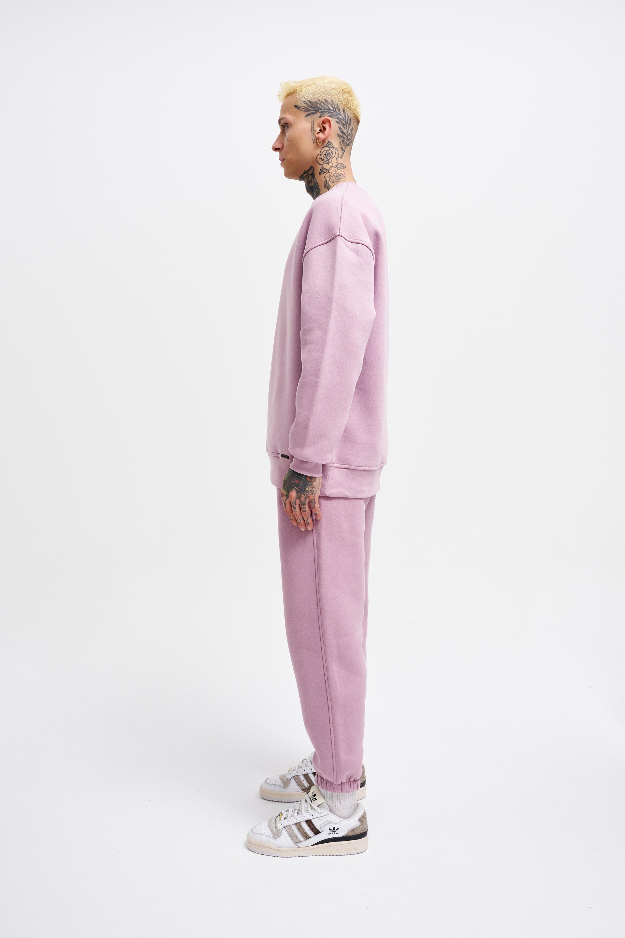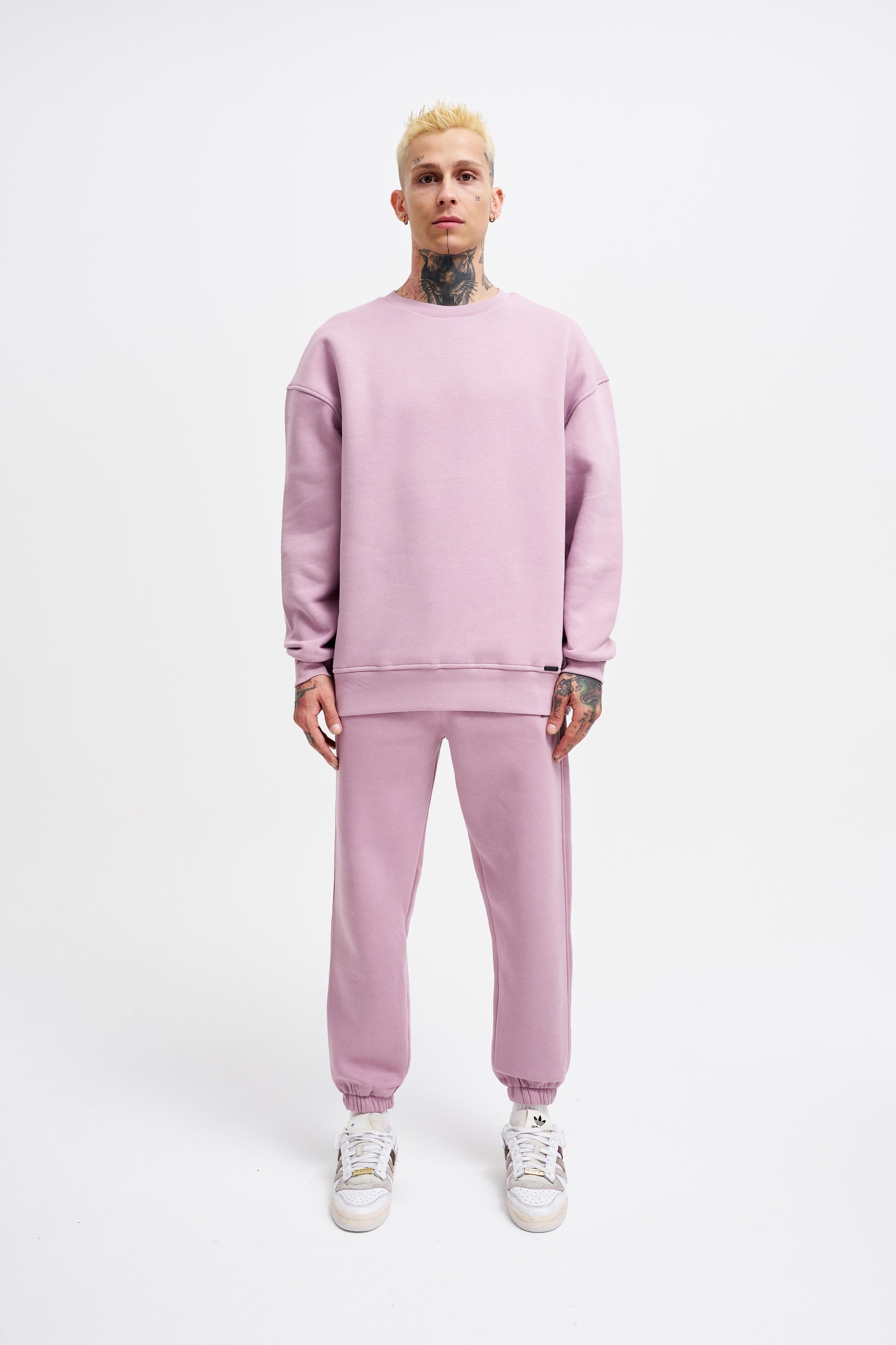 Erkek Basic Bisiklet Yaka Oversize Sweatshirt Kirli Pembe