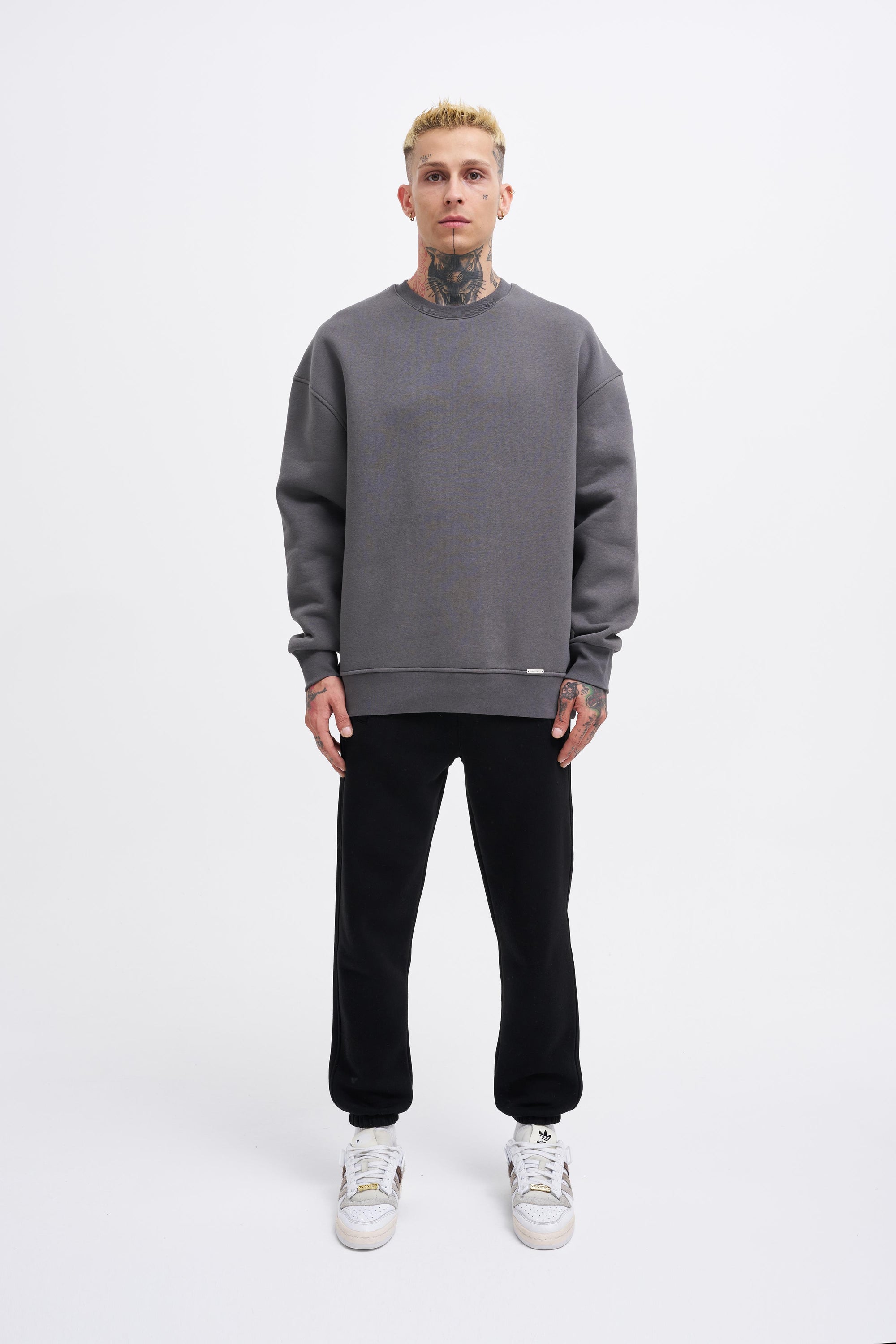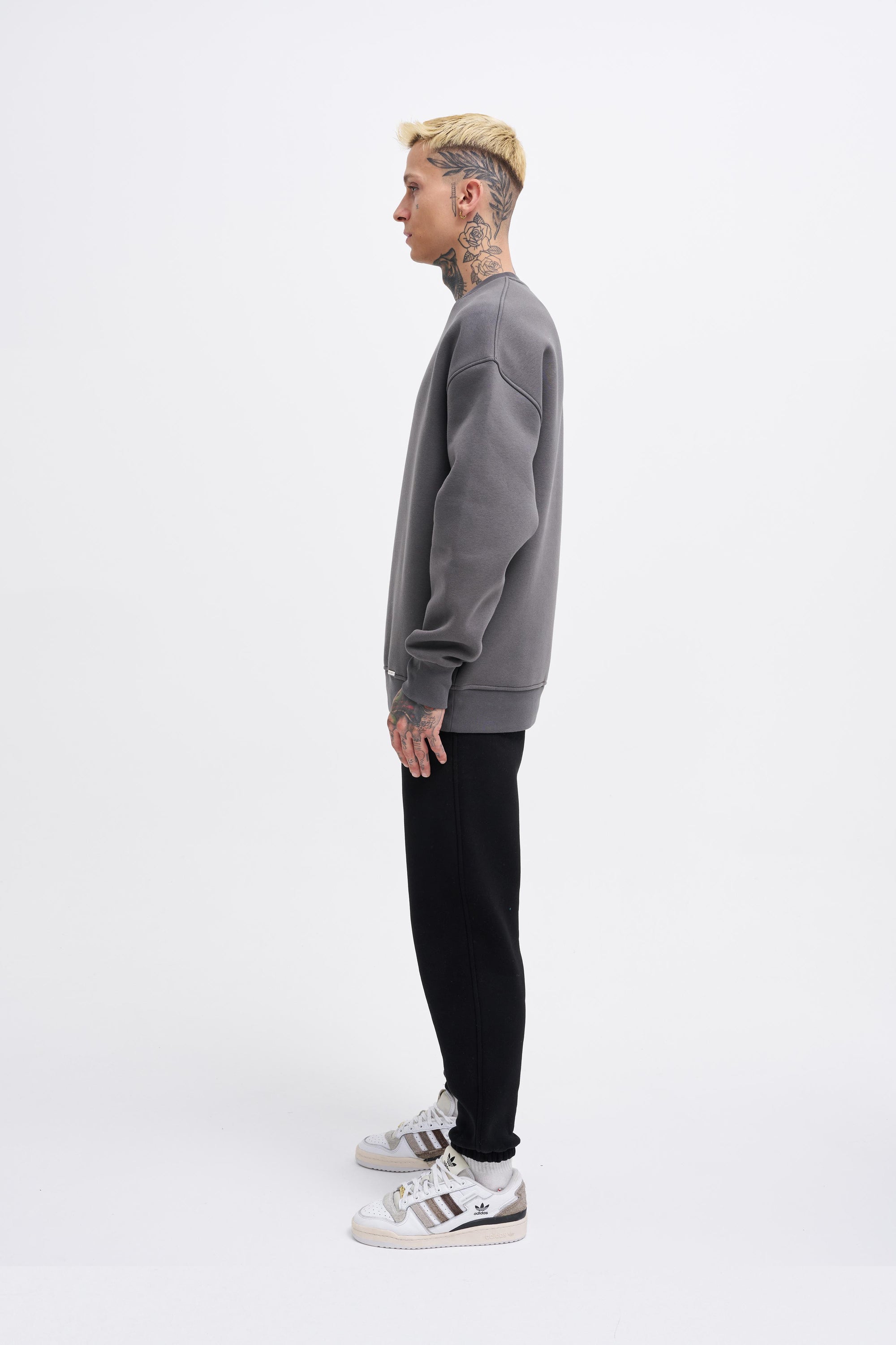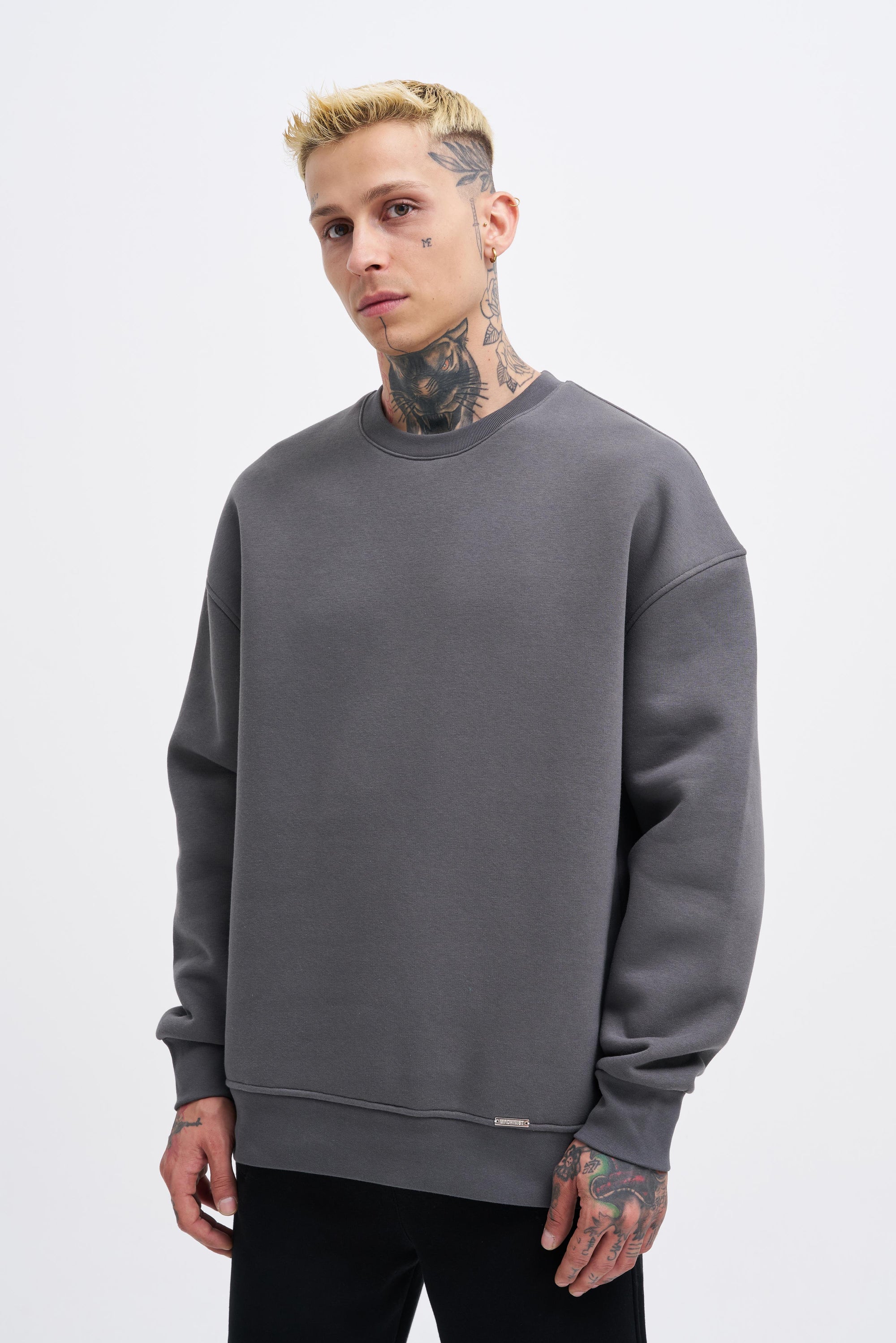 Erkek Basic Bisiklet Yaka Oversize Sweatshirt Antrasit