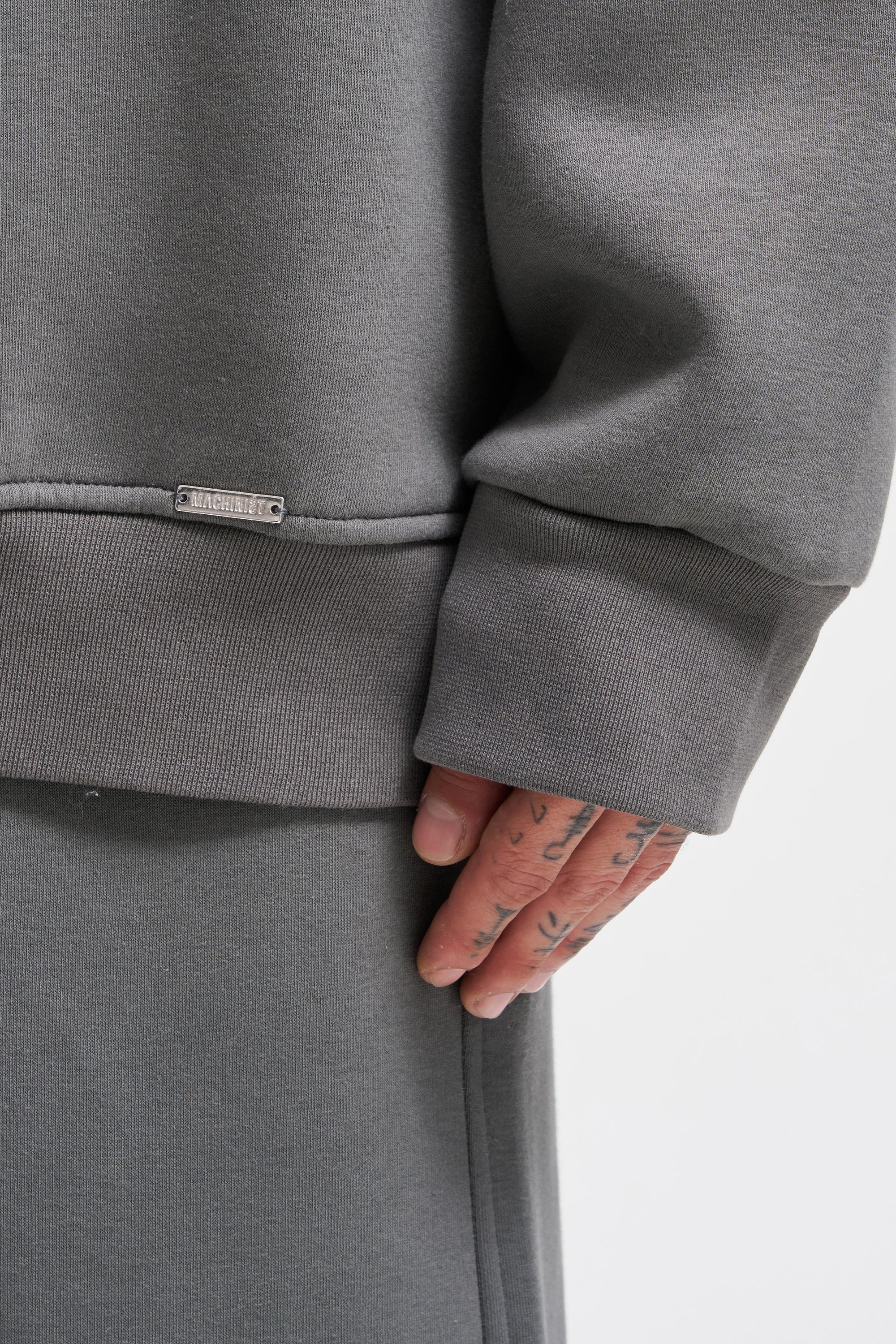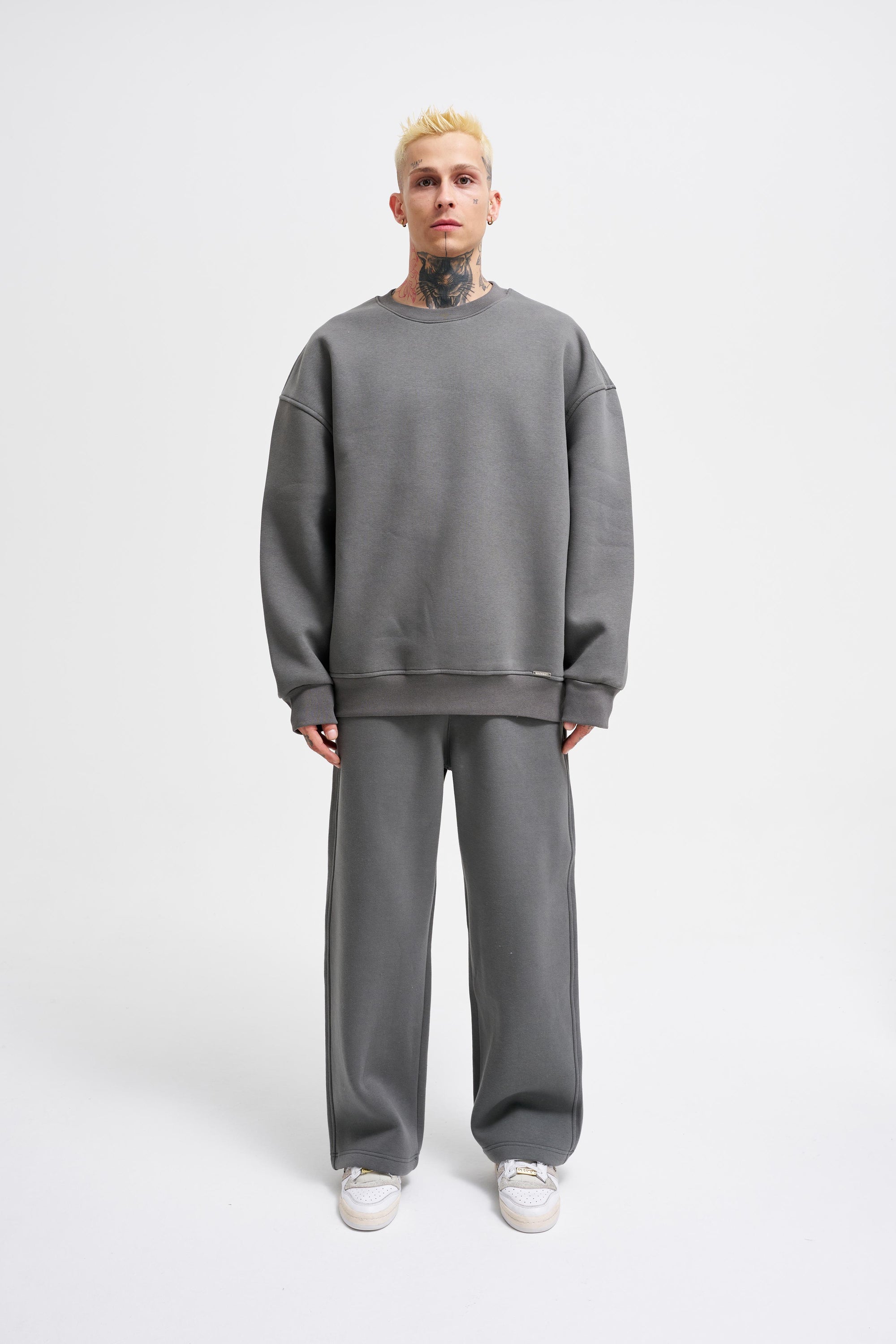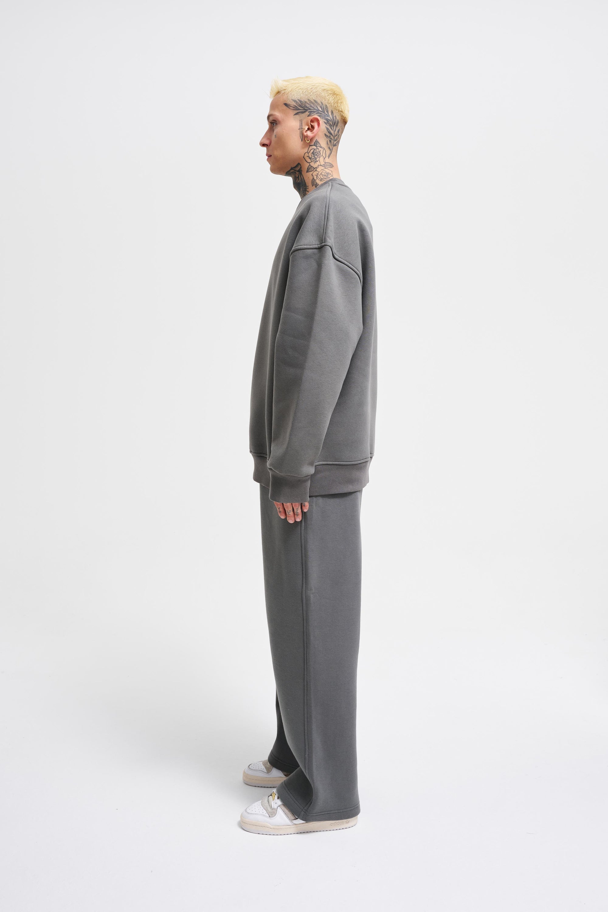 Erkek Basic Bisiklet Yaka Oversize Sweatshirt Antrasit
