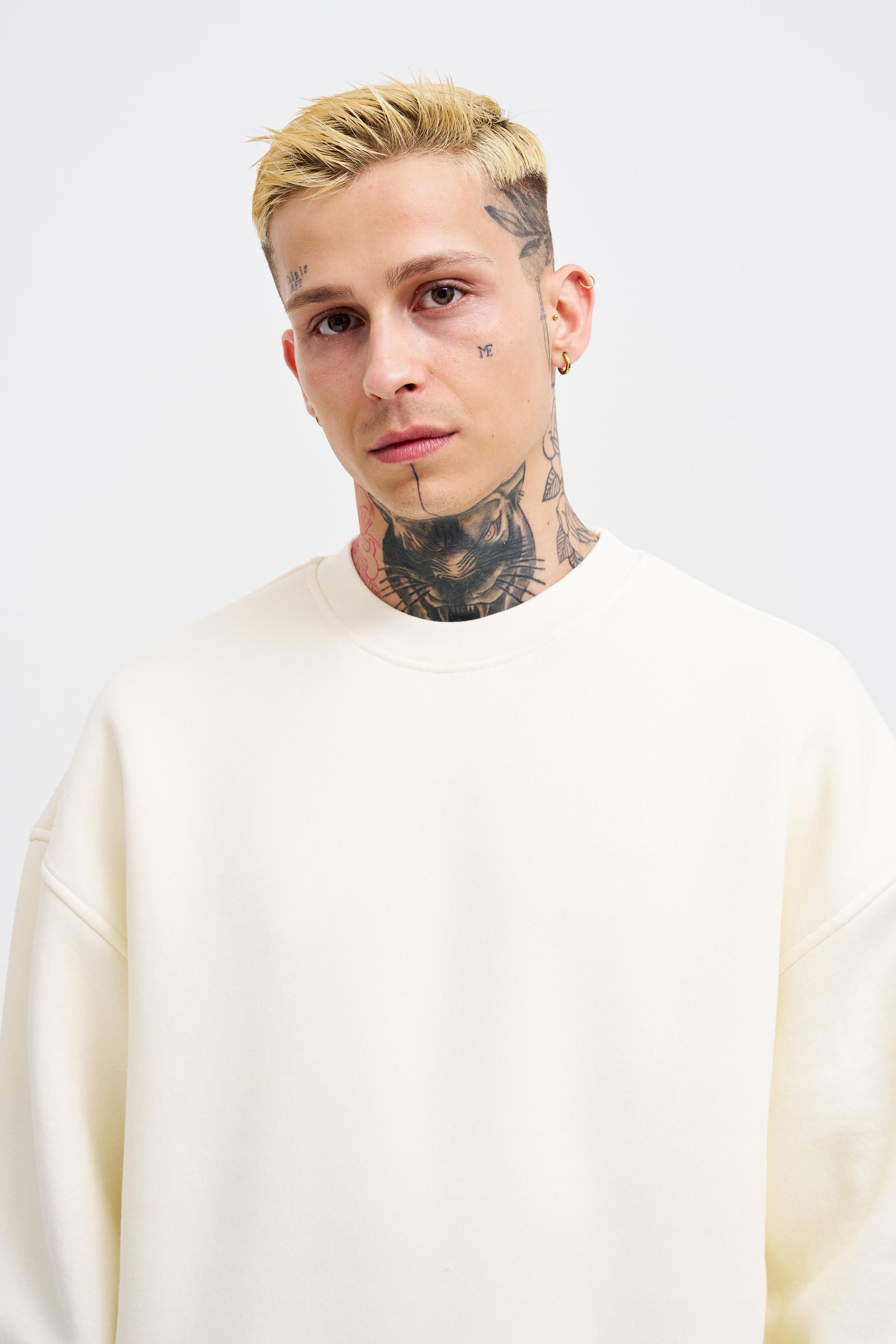 Erkek Basic Bisiklet Yaka Oversize Sweatshirt Ekru