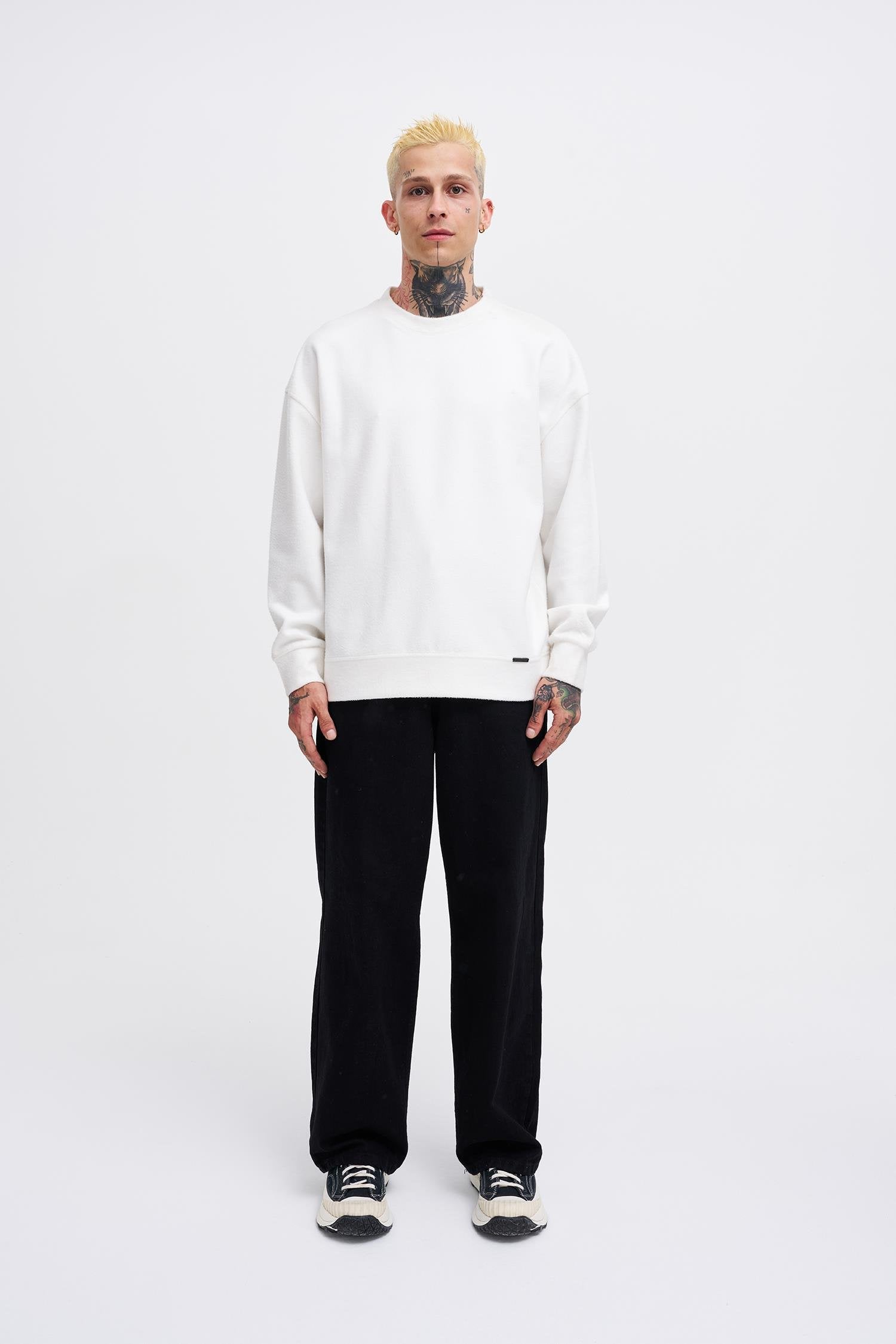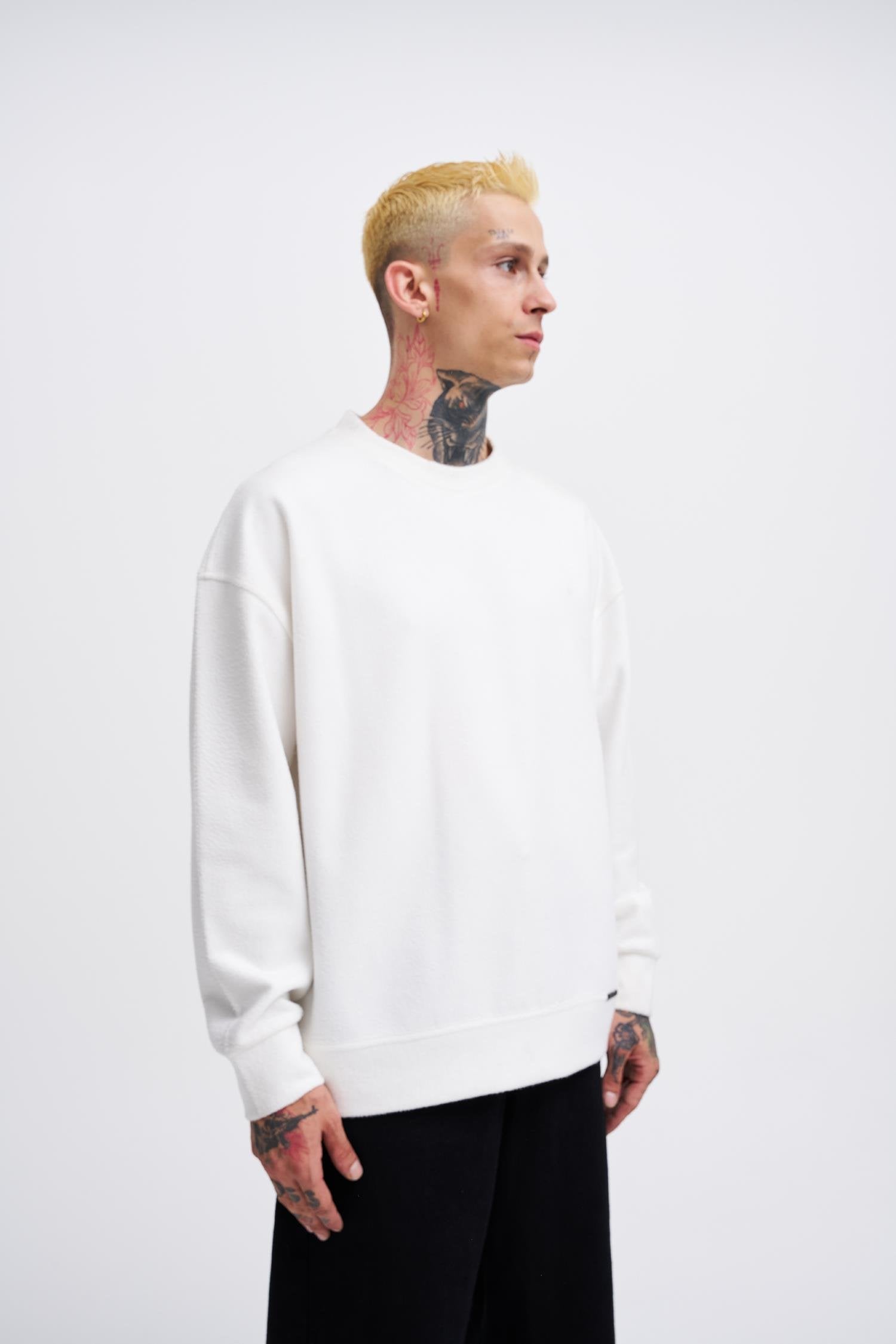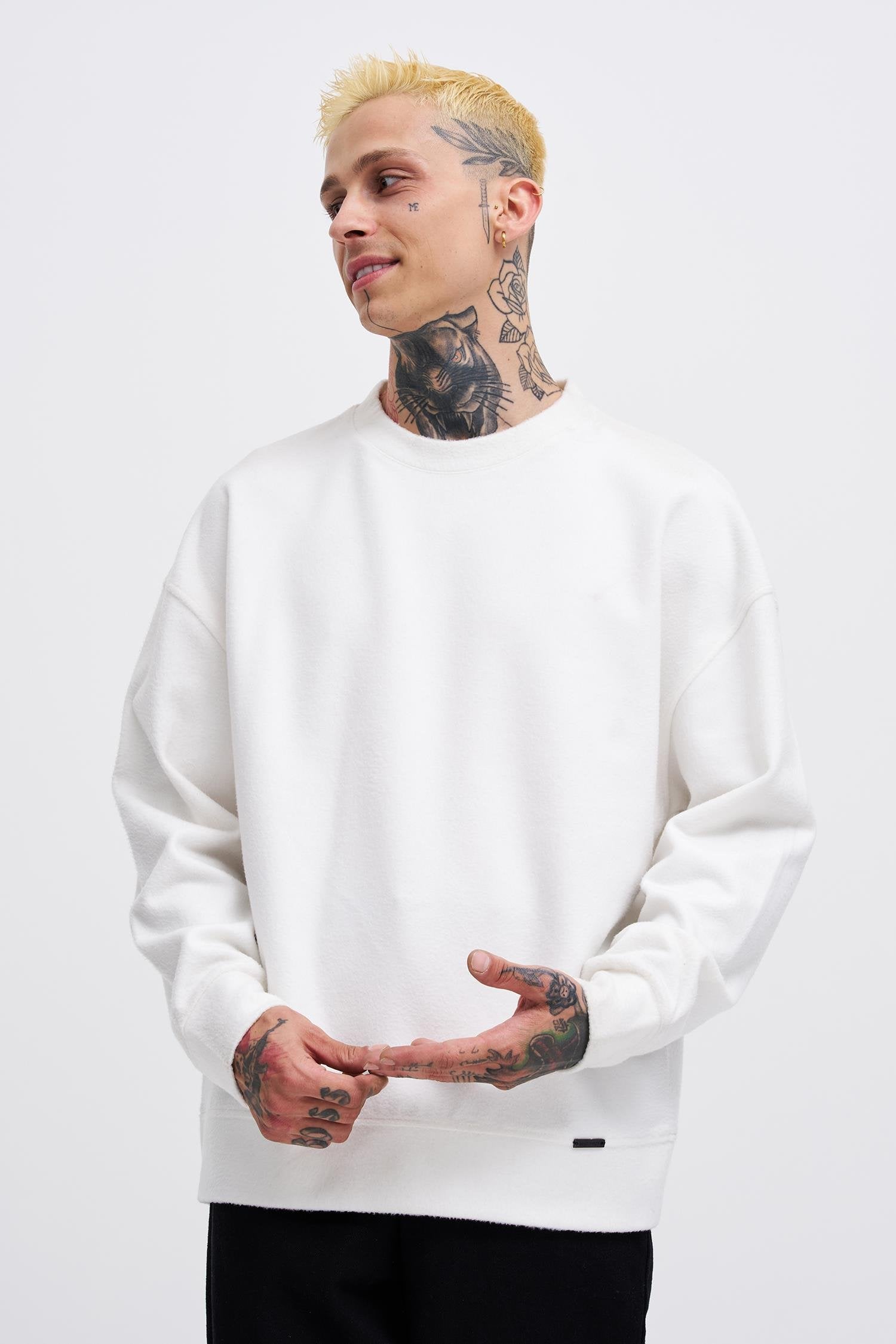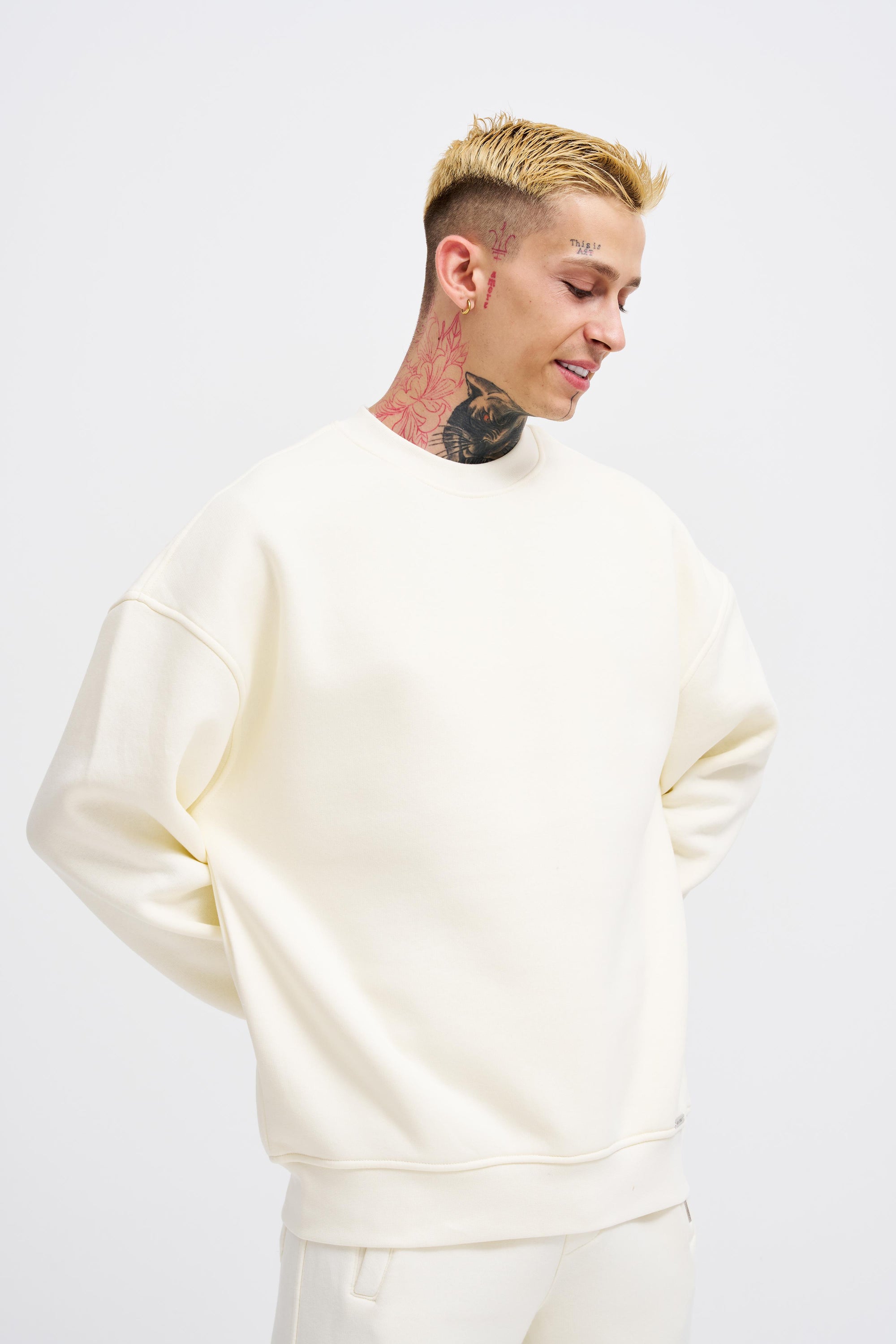 Erkek Ponte Kaşmir Oversize Sweatshirt Ekru