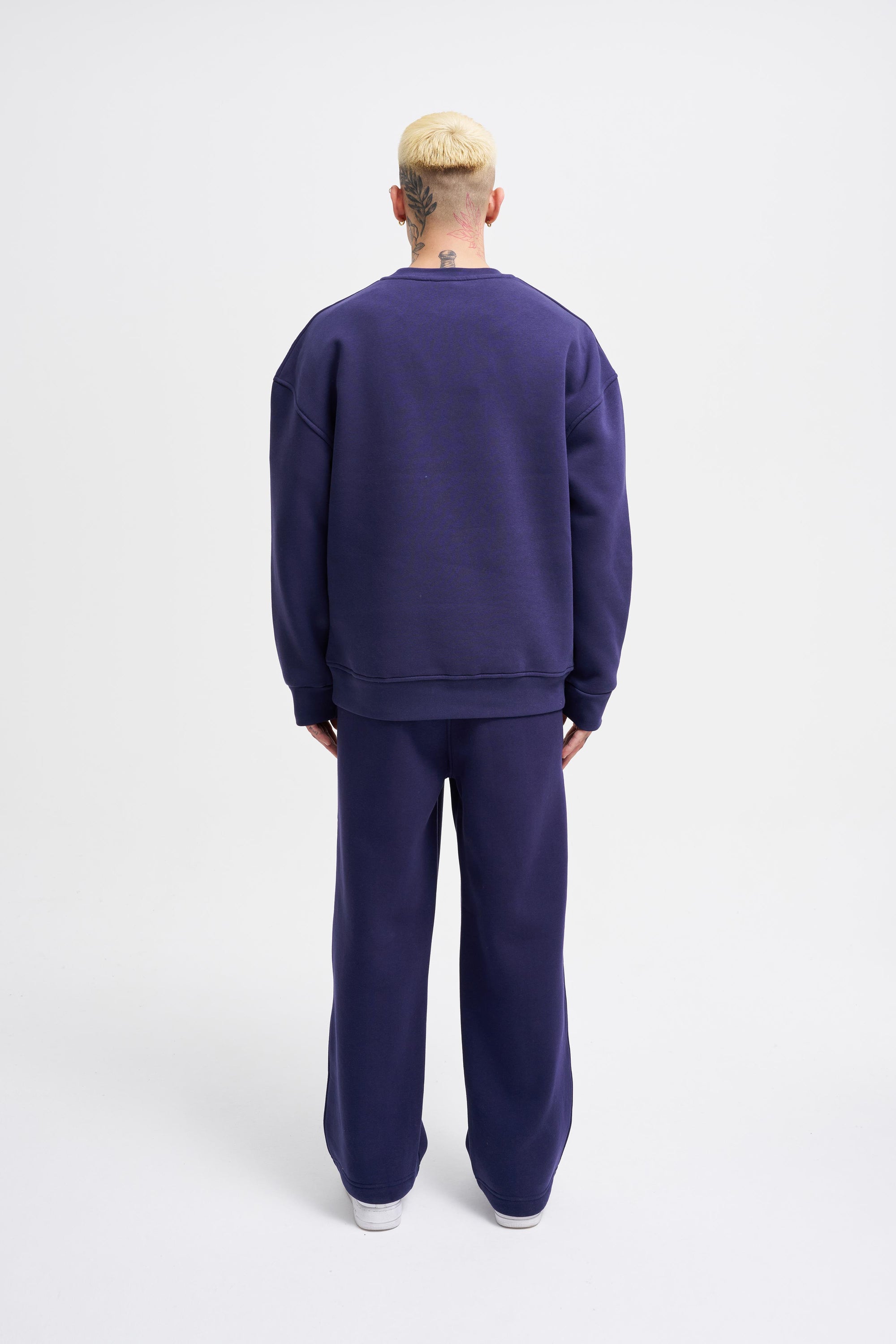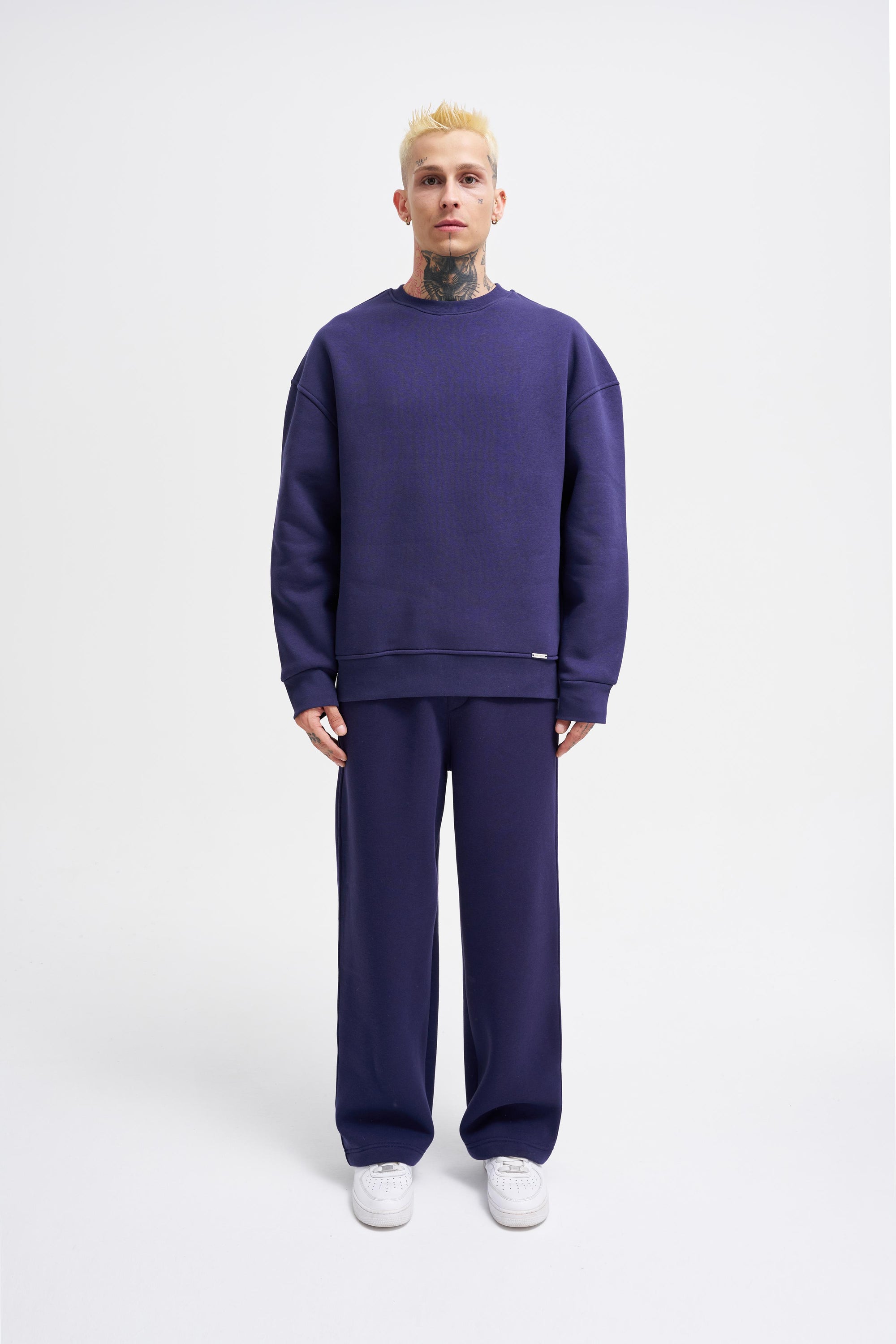Erkek Basic Bisiklet Yaka Oversize Sweatshirt Gece Mavisi