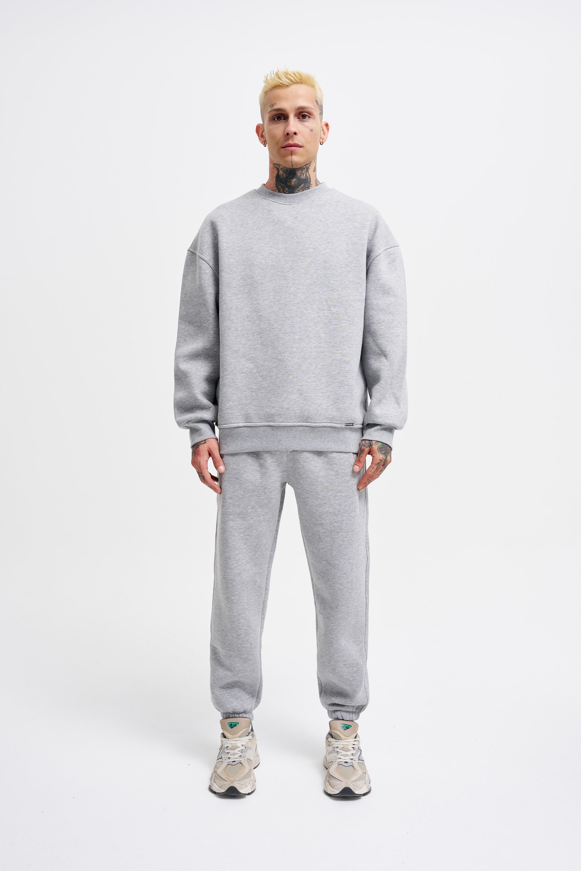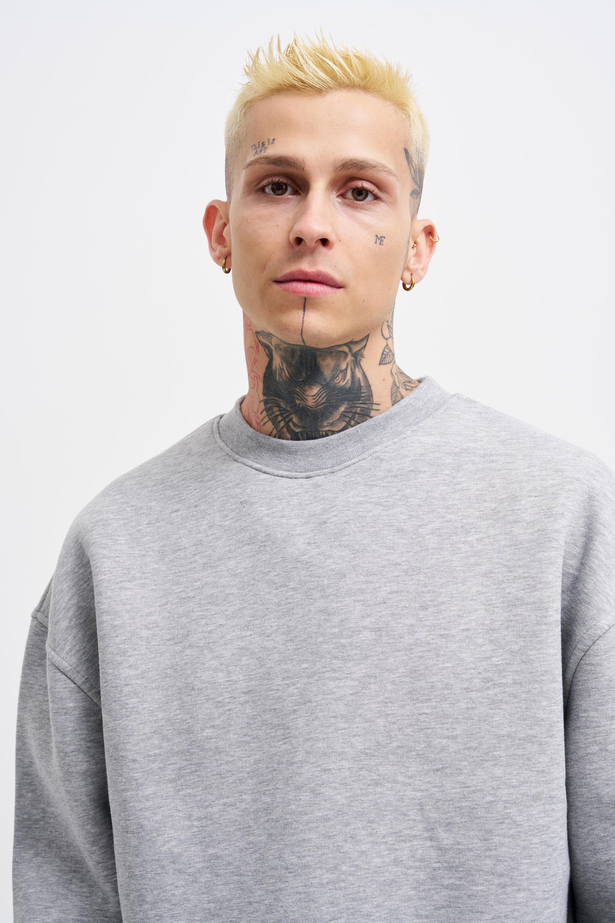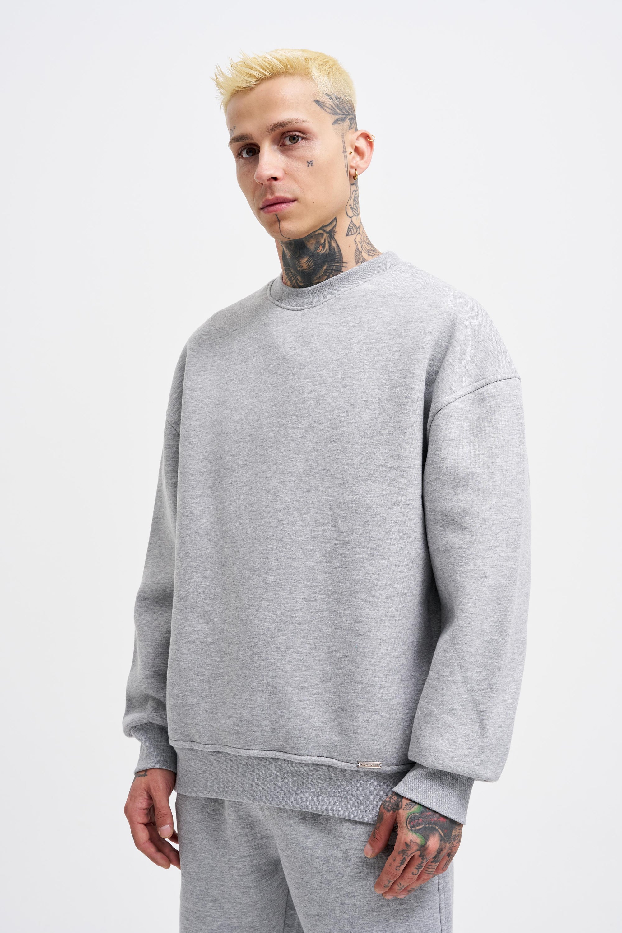 Erkek Basic Bisiklet Yaka Oversize Sweatshirt Gri Melanj