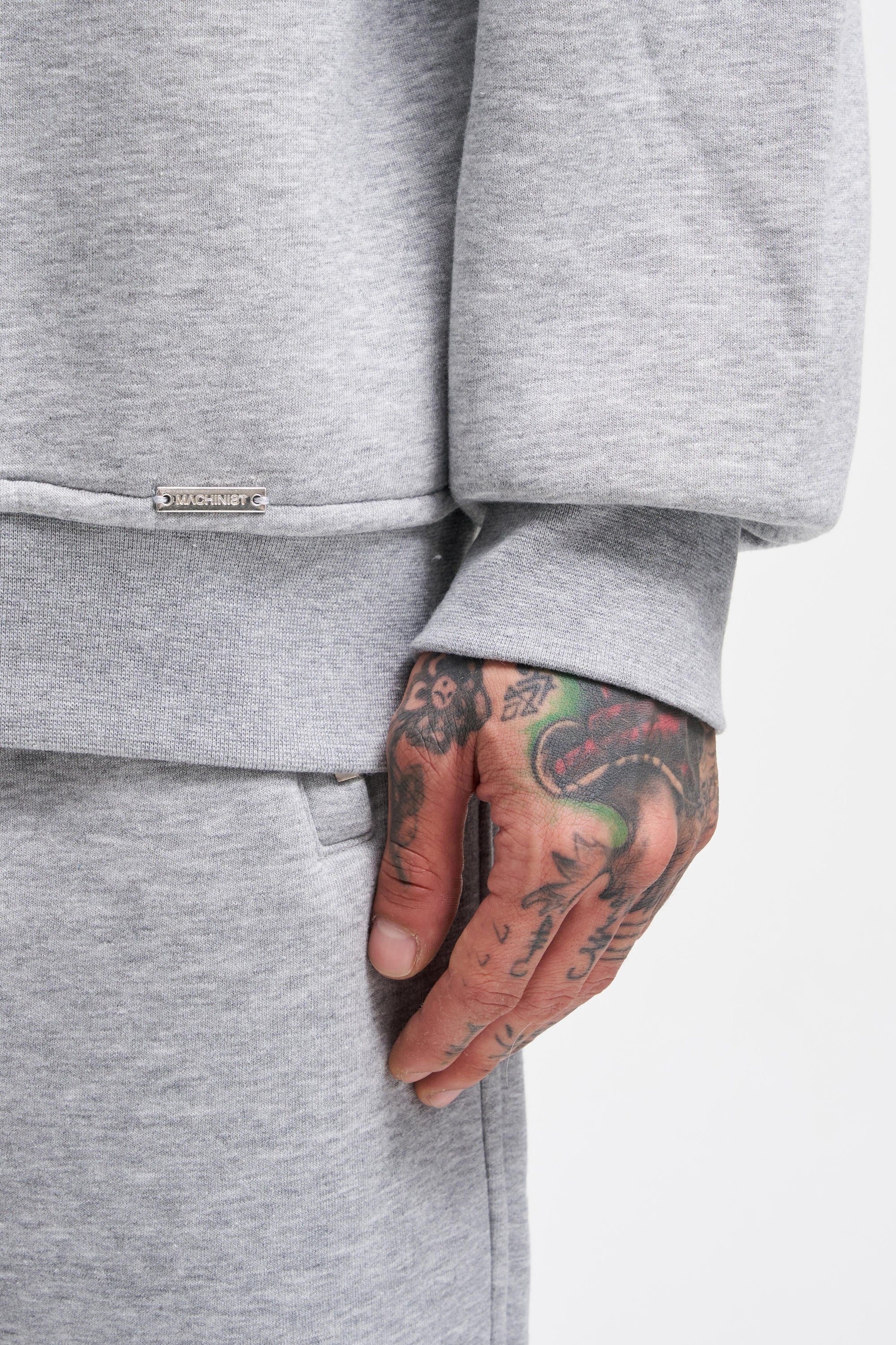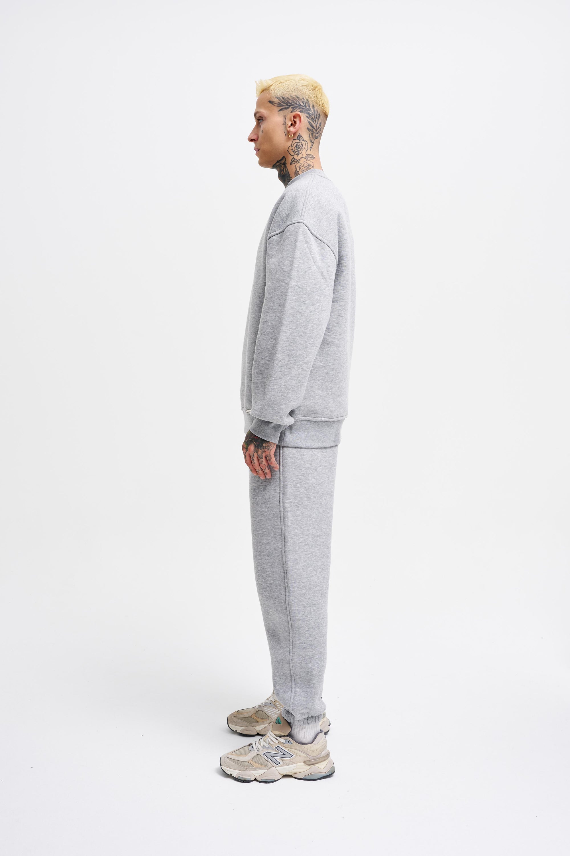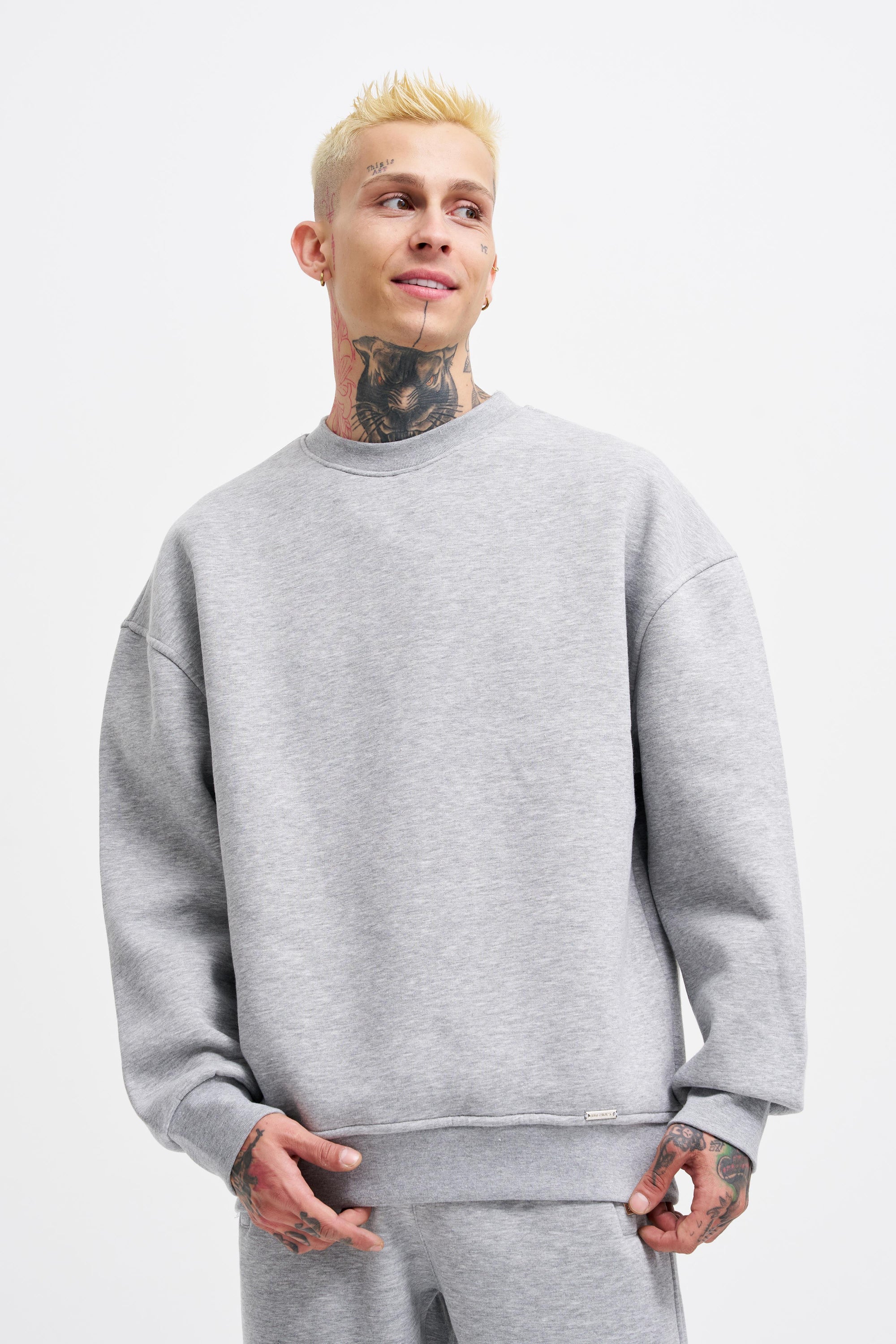 Erkek Basic Bisiklet Yaka Oversize Sweatshirt Gri Melanj
