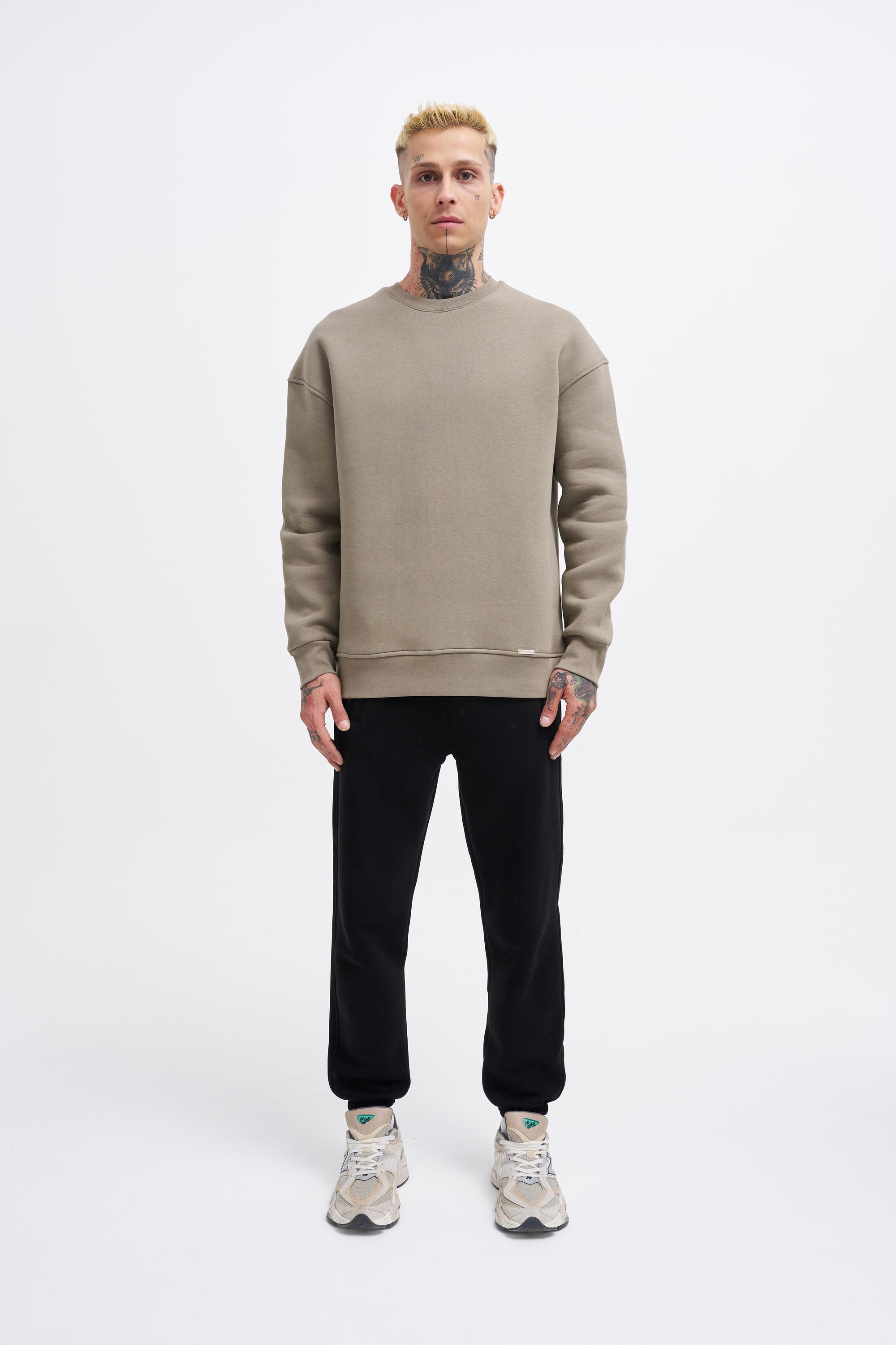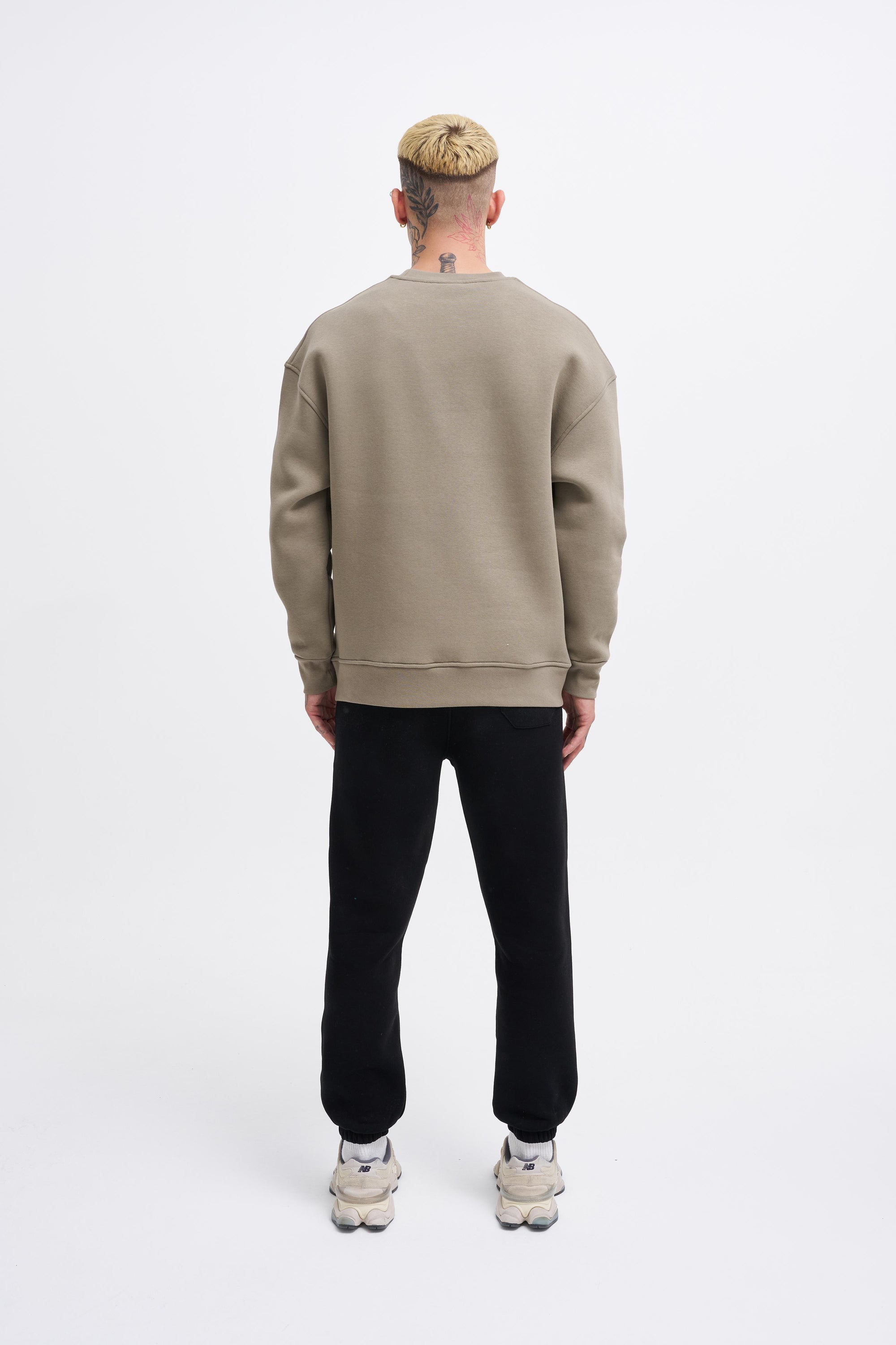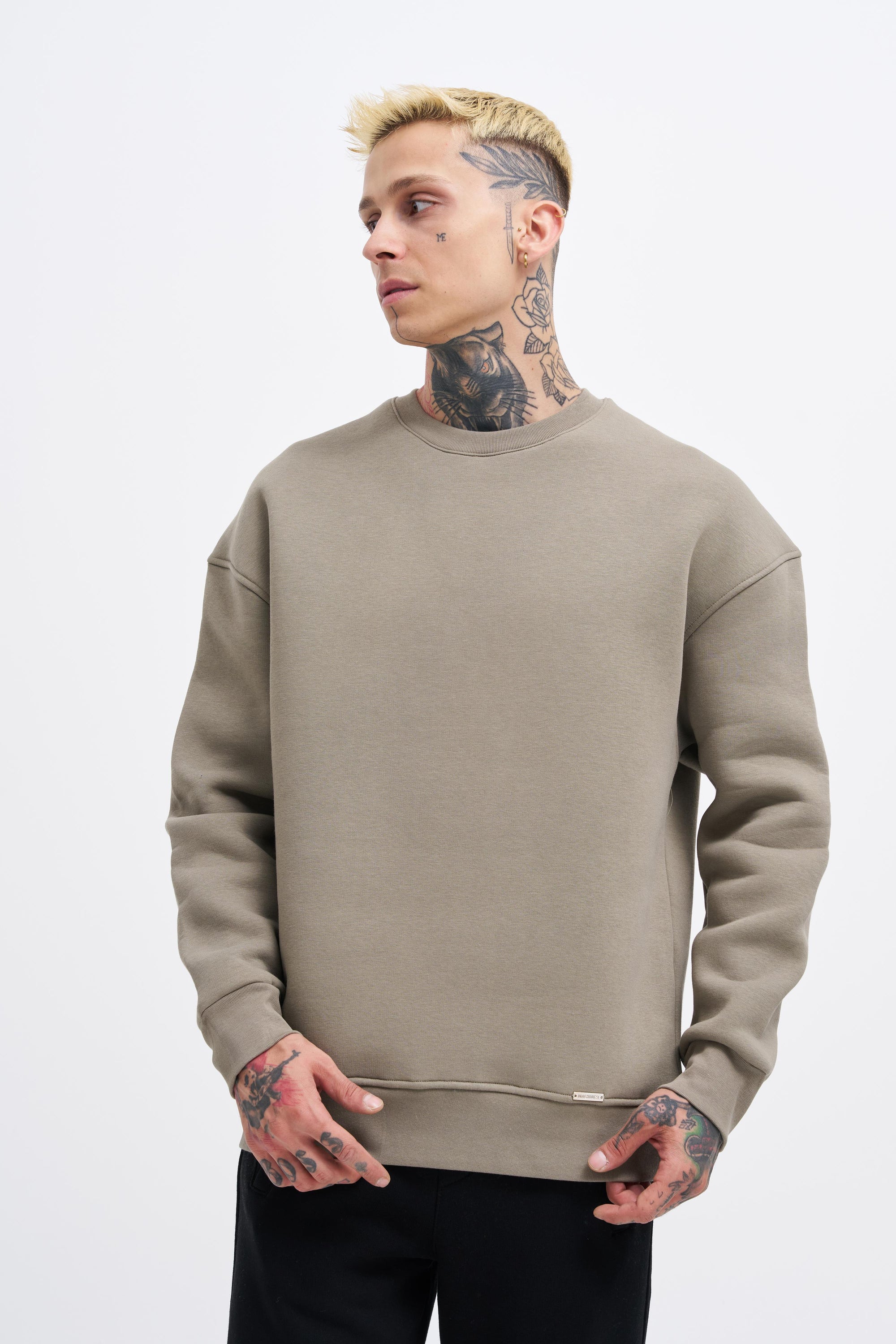 Erkek Basic Bisiklet Yaka Oversize Sweatshirt Haki