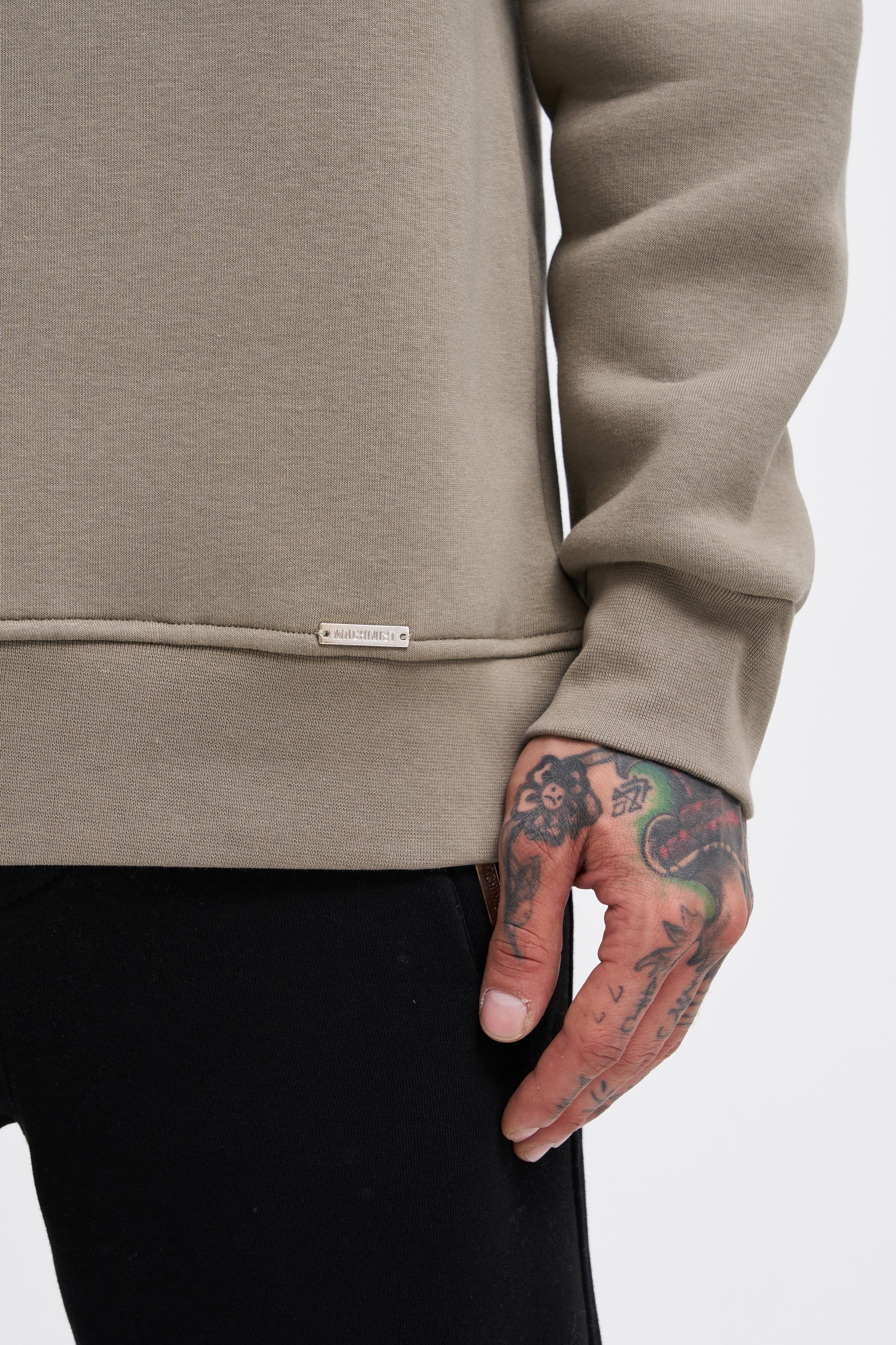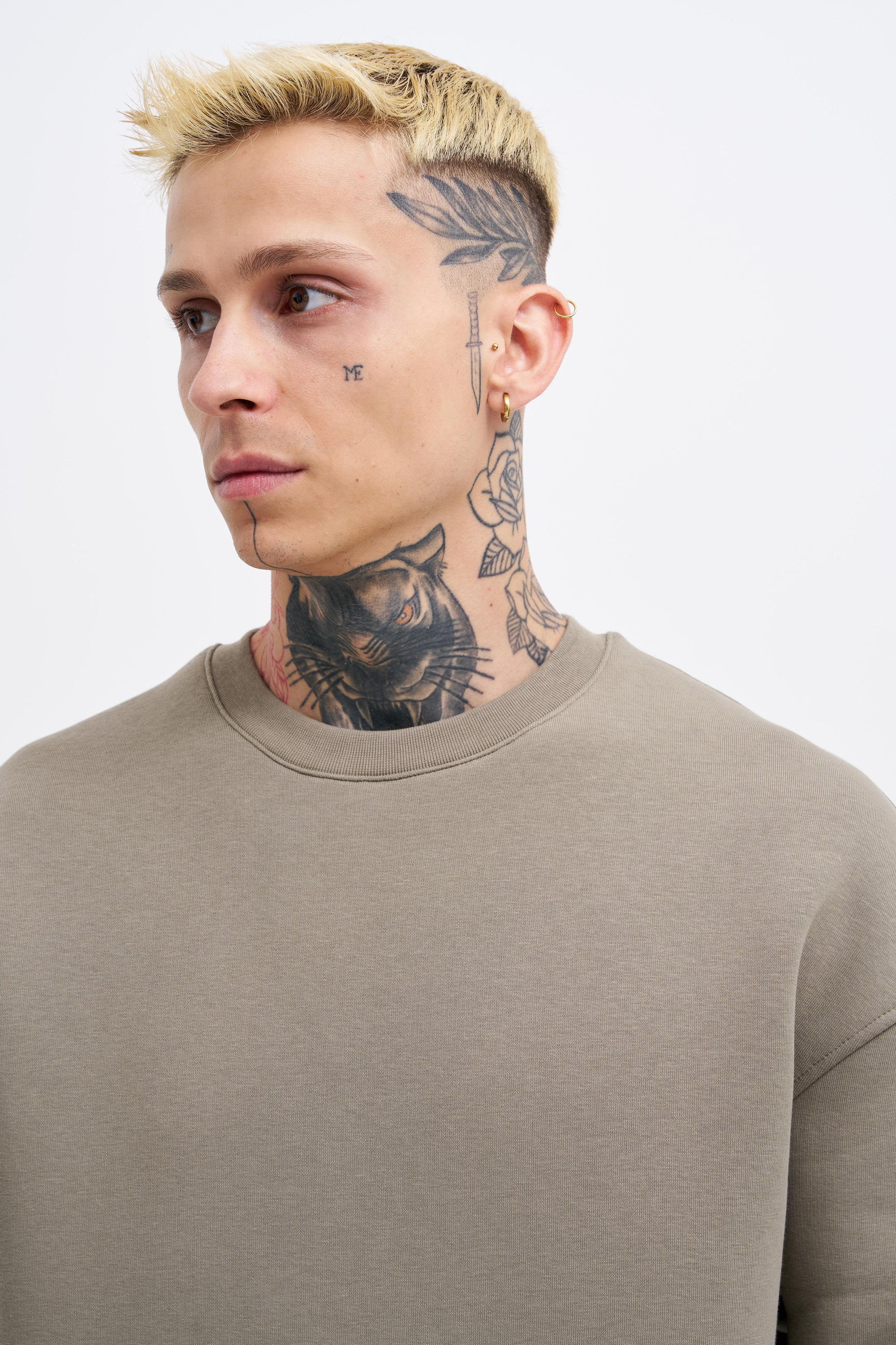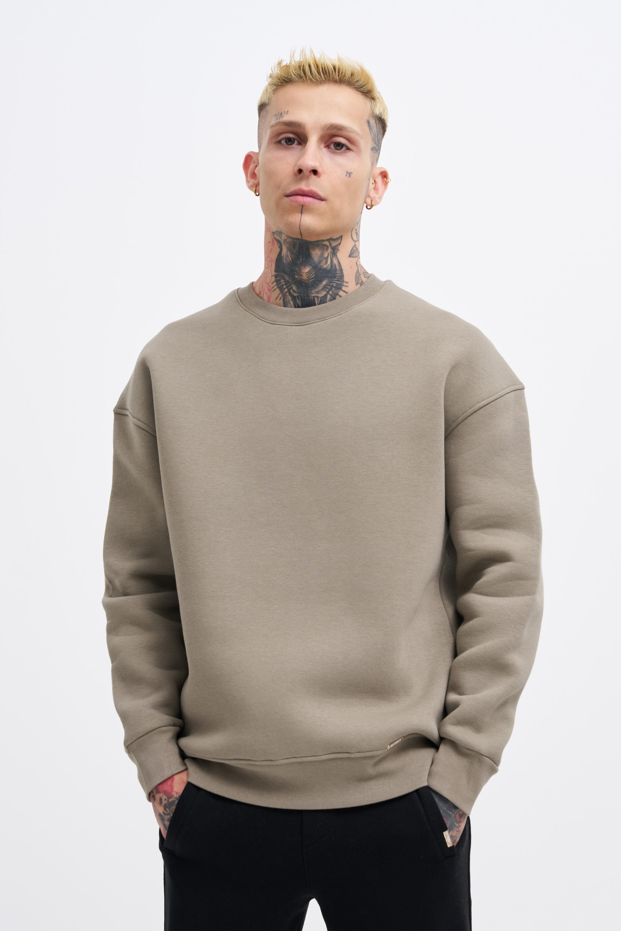 Erkek Basic Bisiklet Yaka Oversize Sweatshirt Haki