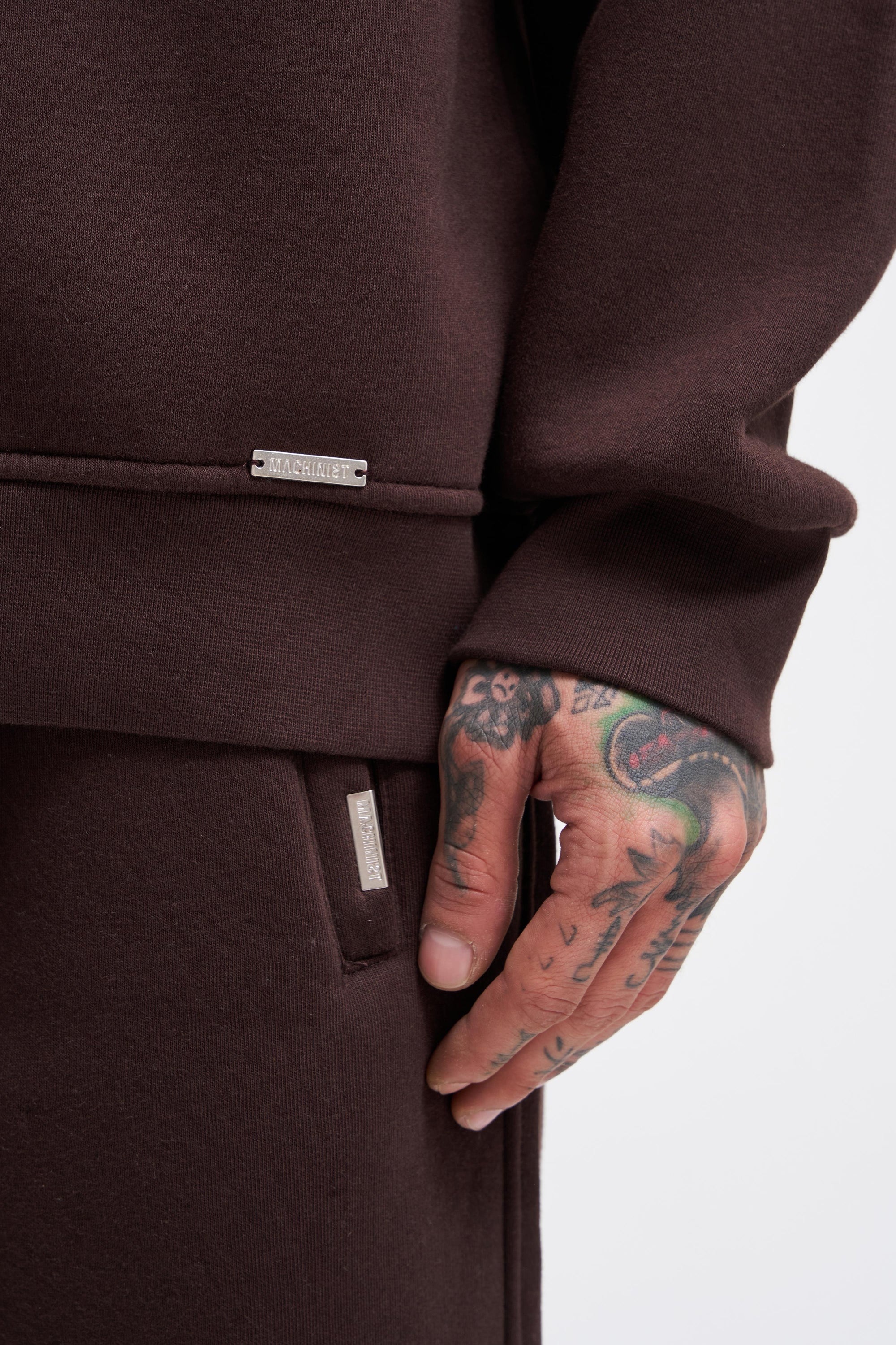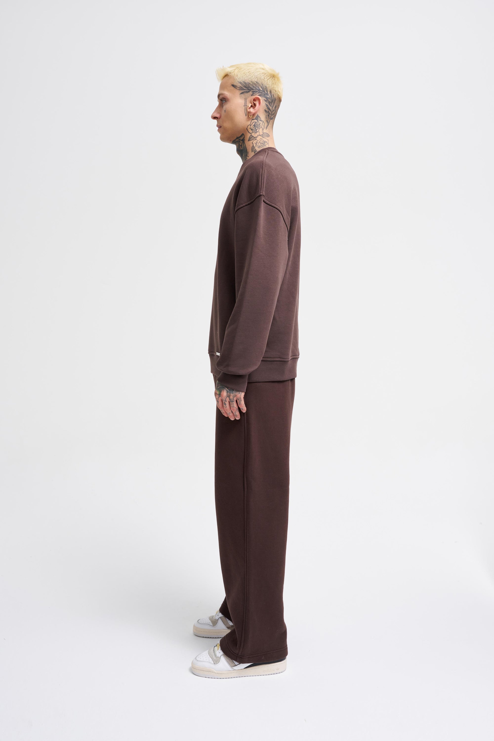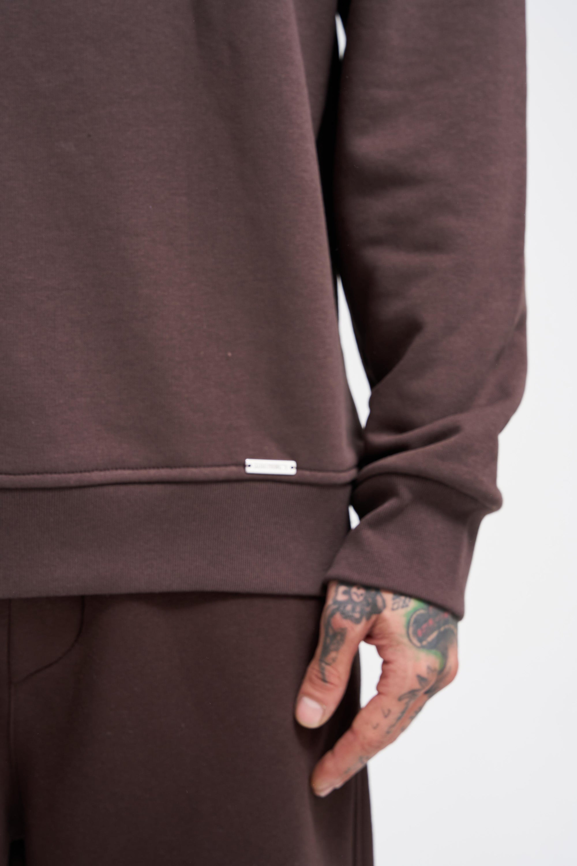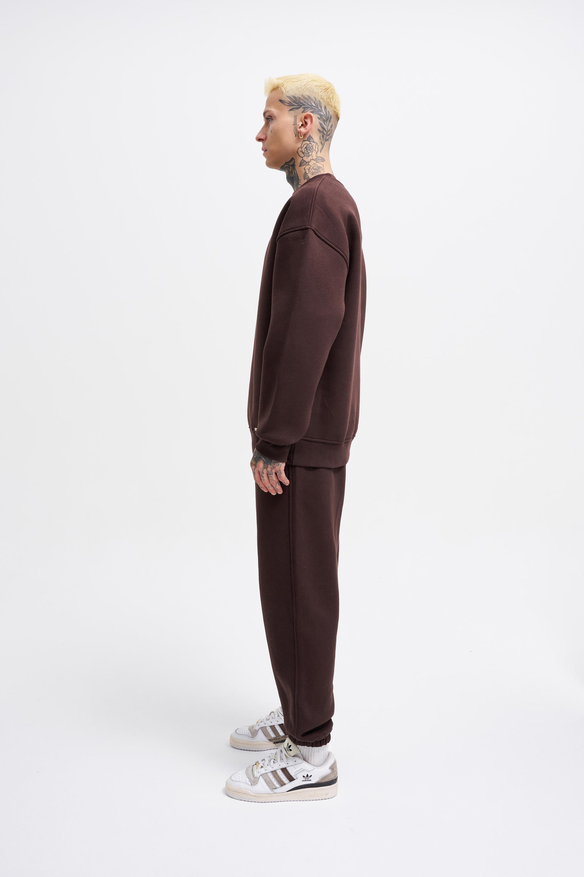 Erkek Basic Bisiklet Yaka Oversize Sweatshirt Koyu Kahverengi
