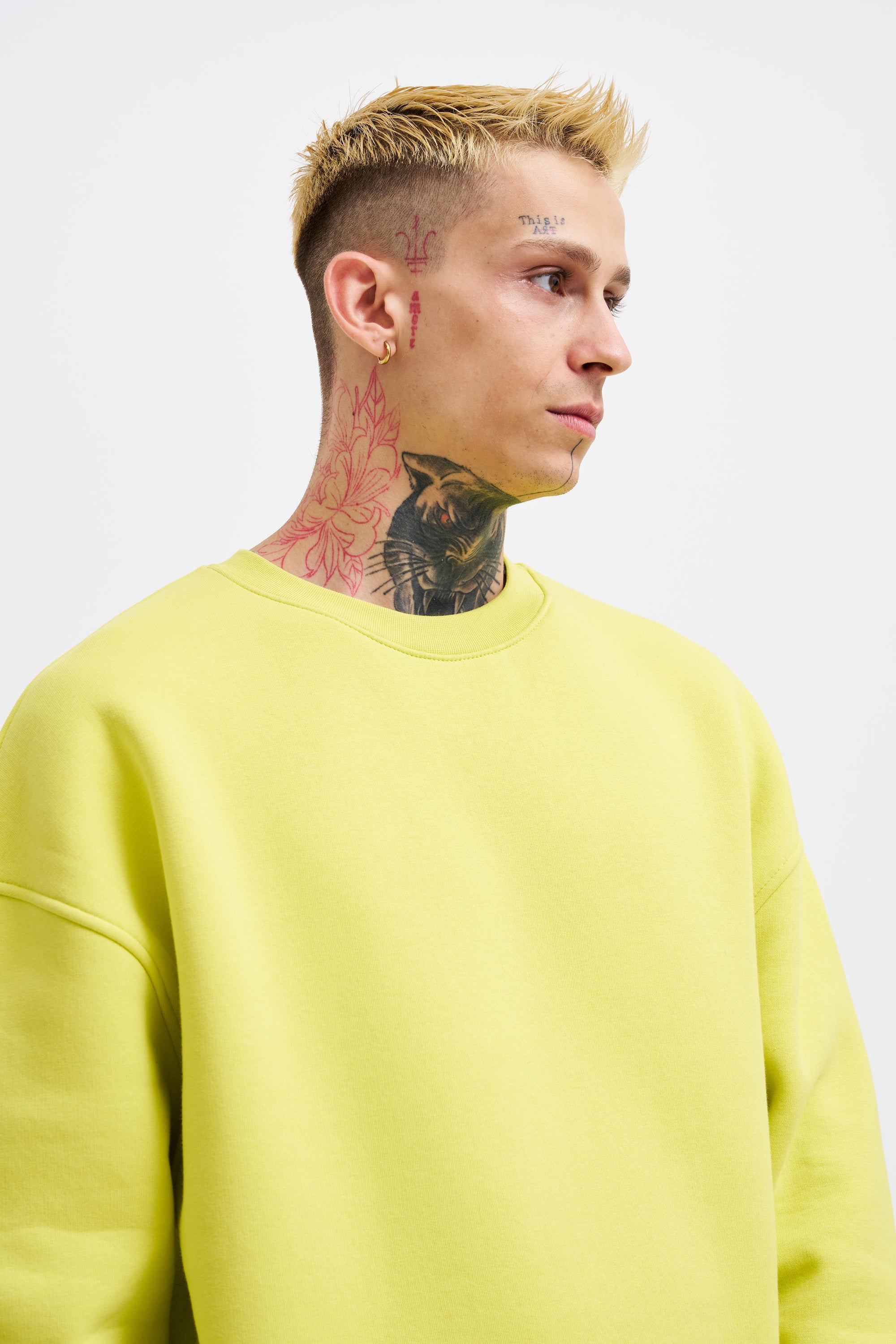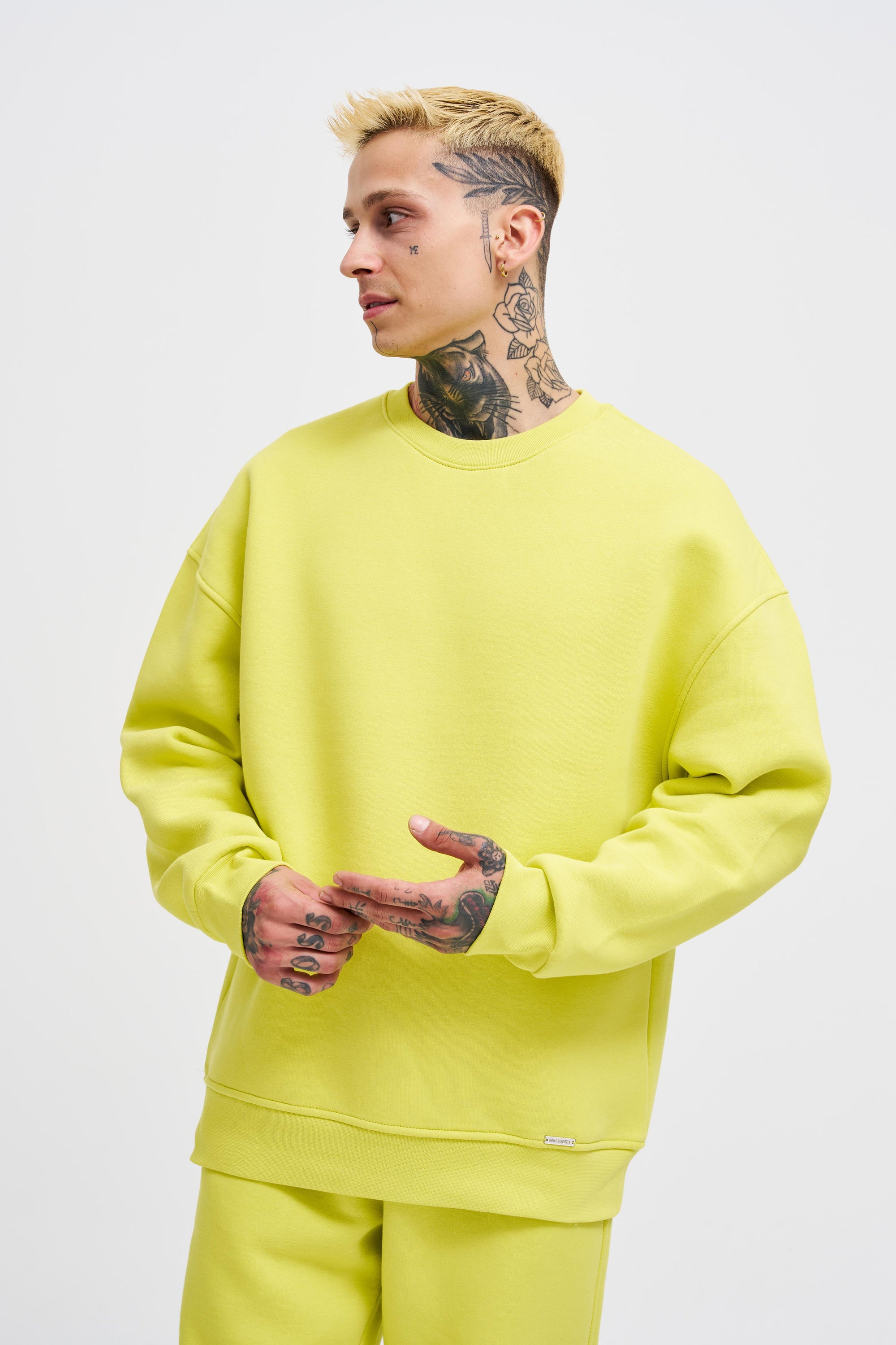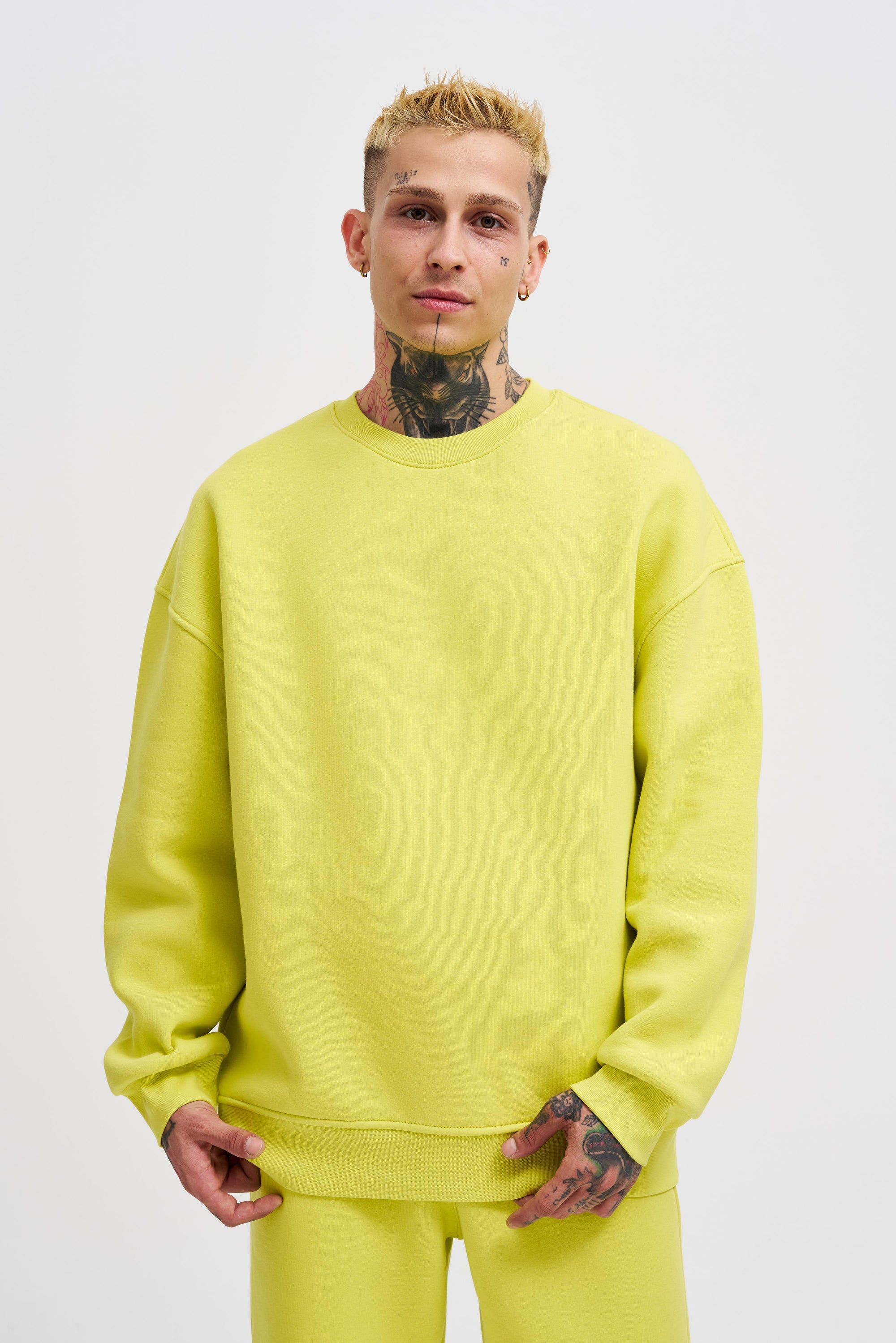Erkek Basic Bisiklet Yaka Oversize Sweatshirt Neon Sarı