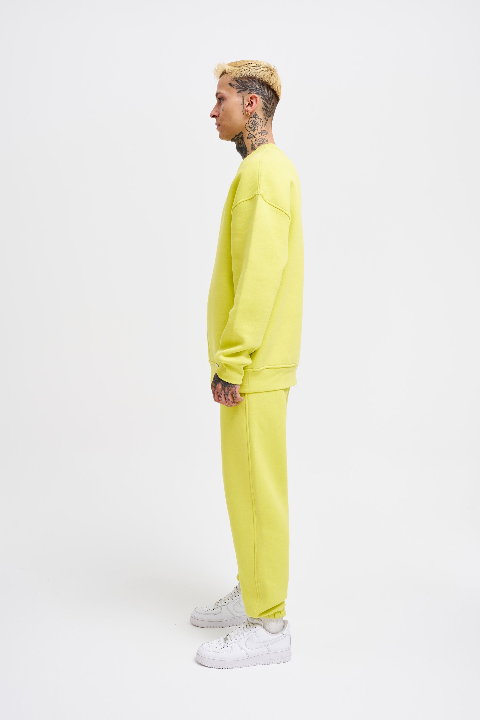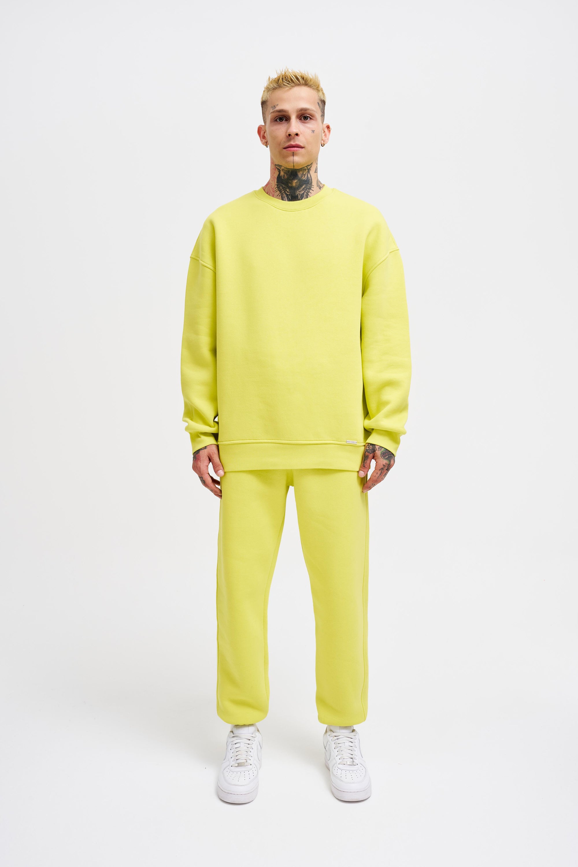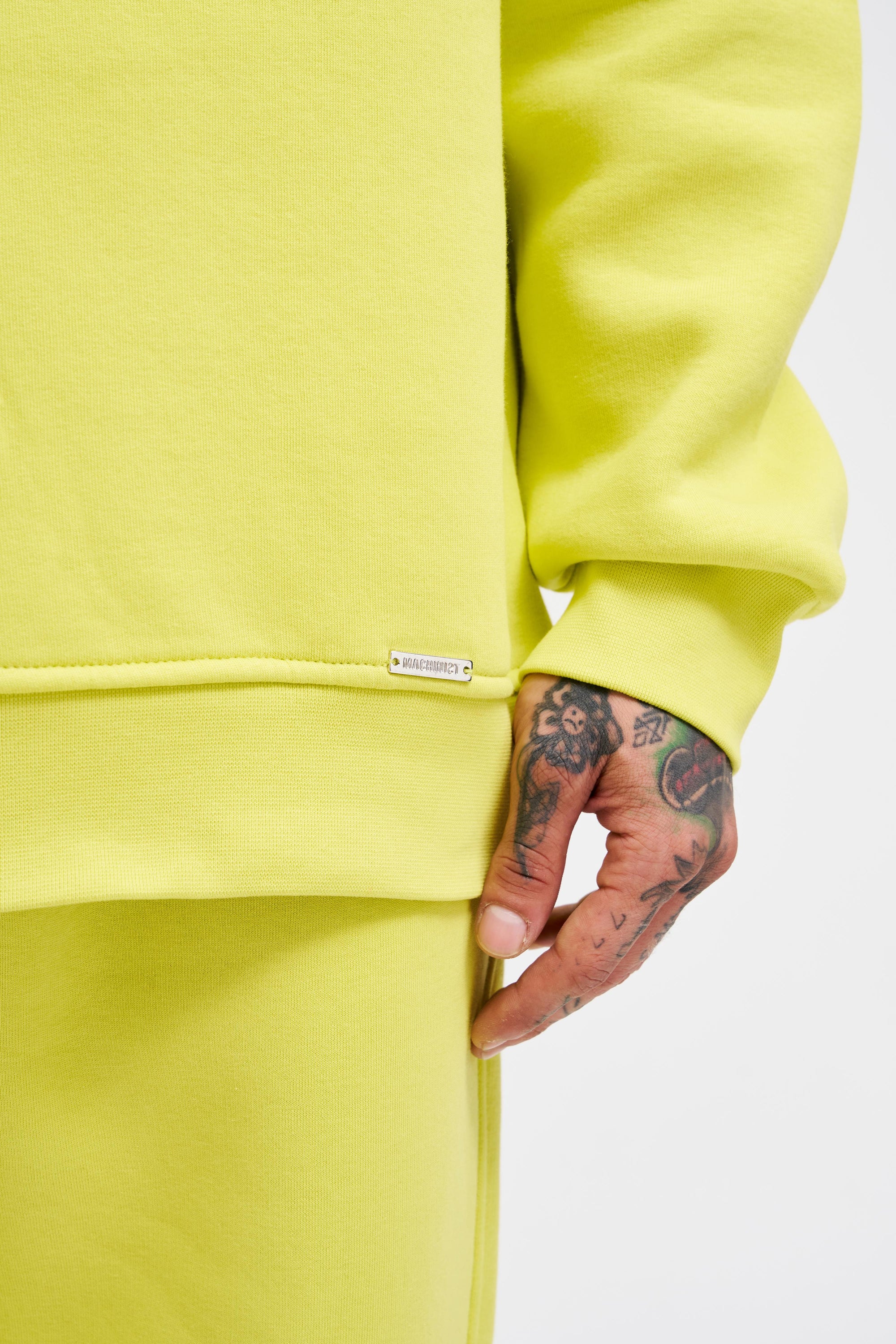 Erkek Basic Bisiklet Yaka Oversize Sweatshirt Neon Sarı
