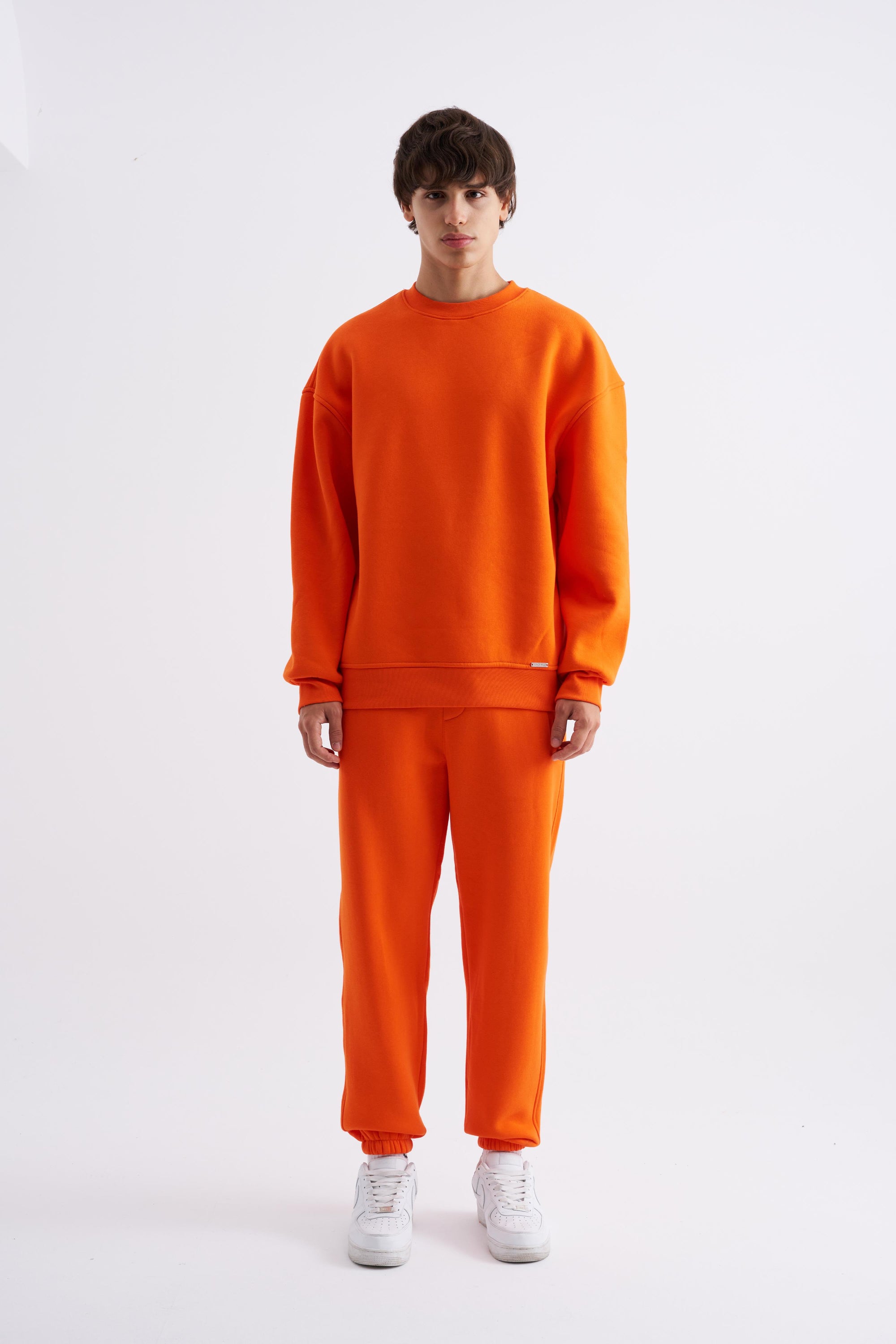 Erkek Basic Bisiklet Yaka Oversize Sweatshirt Neon Turuncu