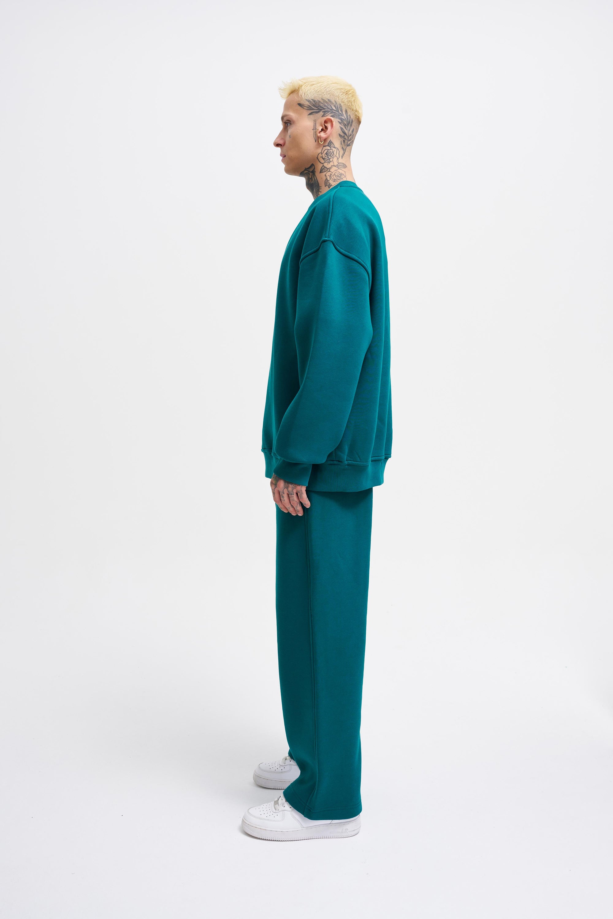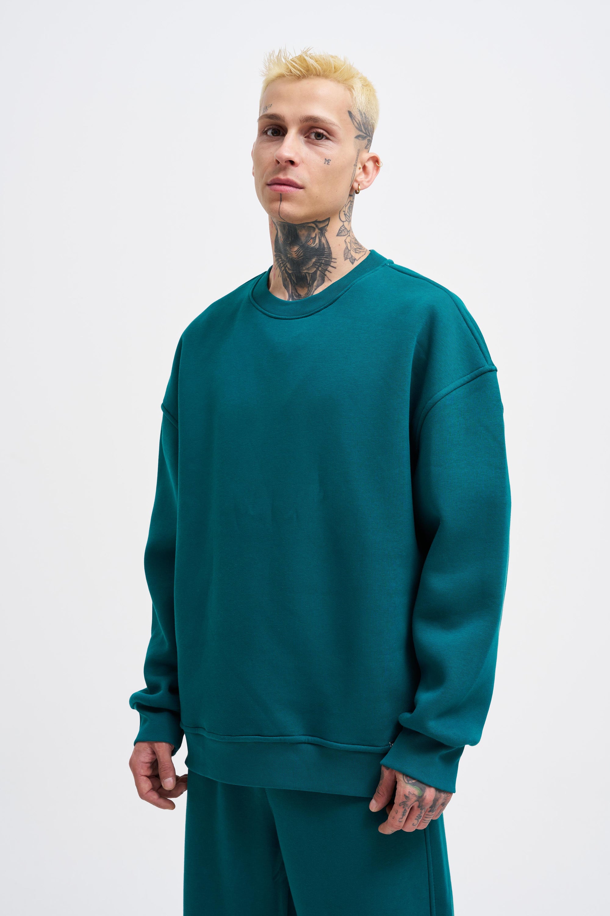 Erkek Basic Bisiklet Yaka Oversize Sweatshirt Petrol Yeşili